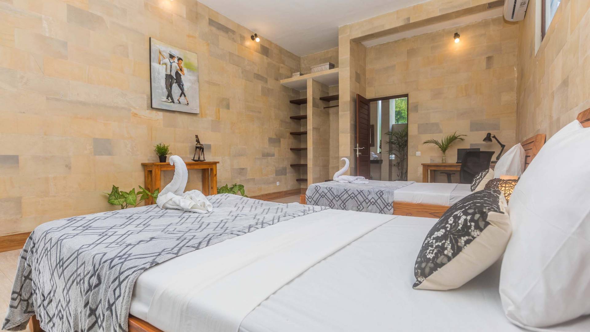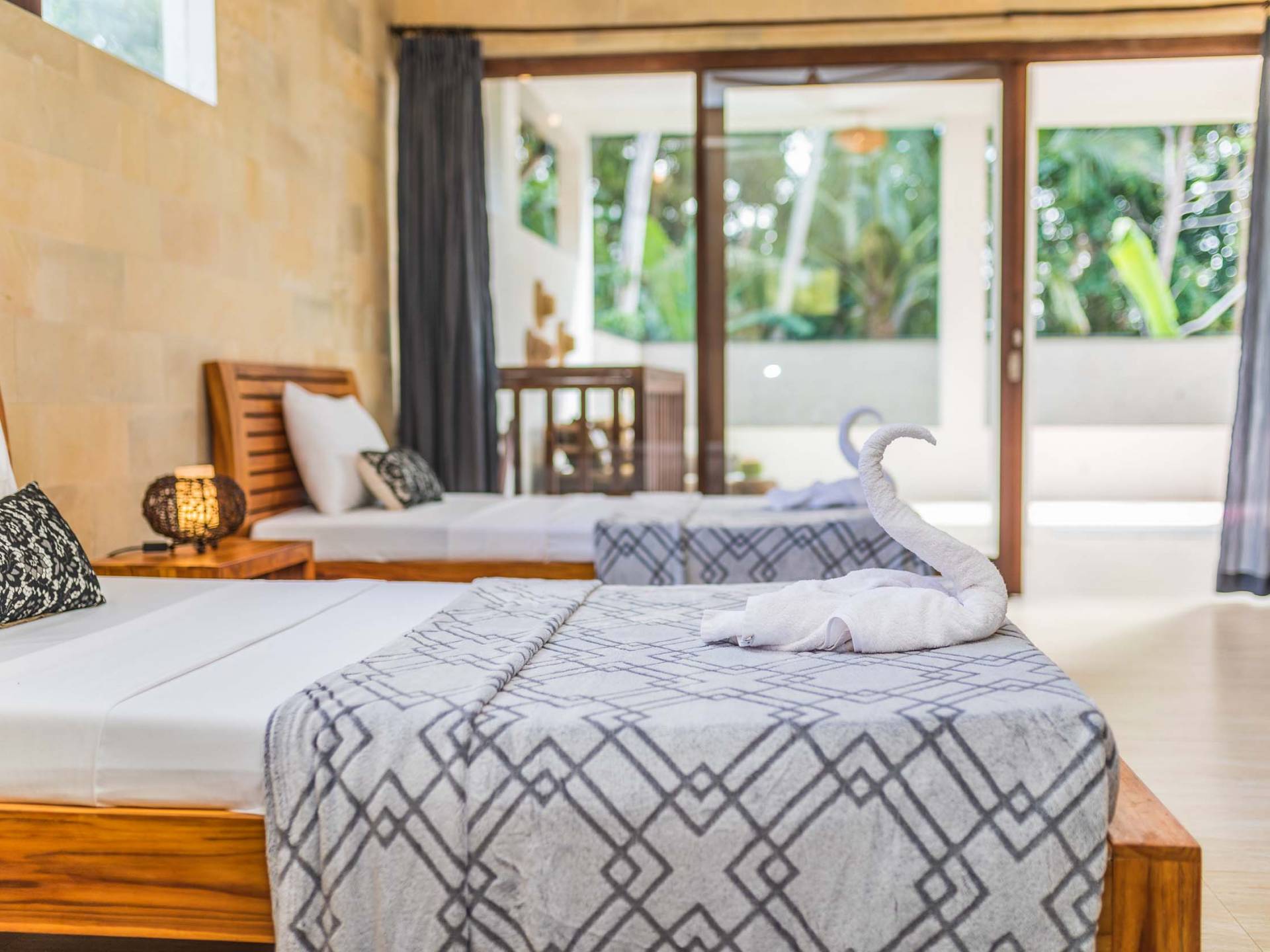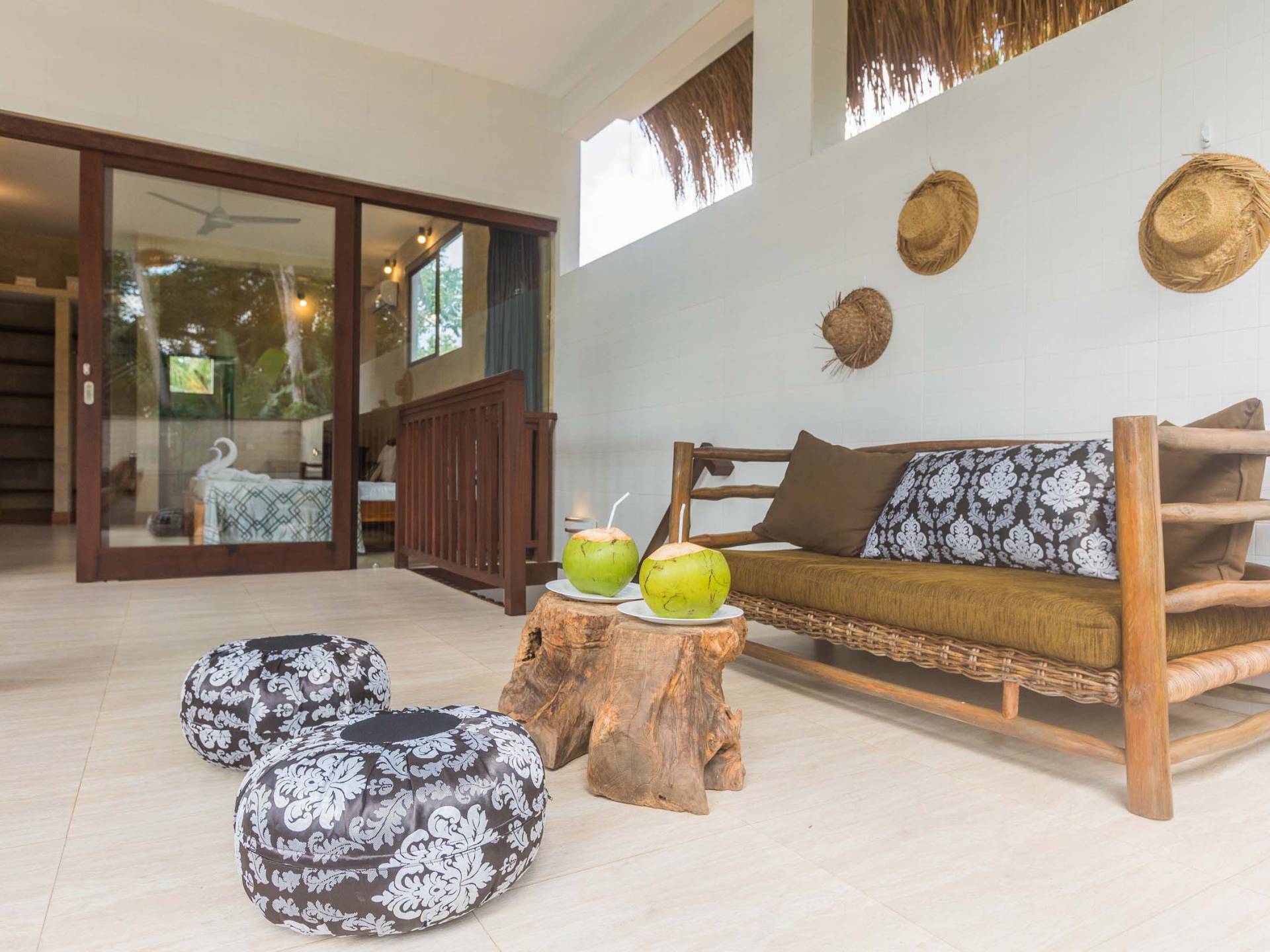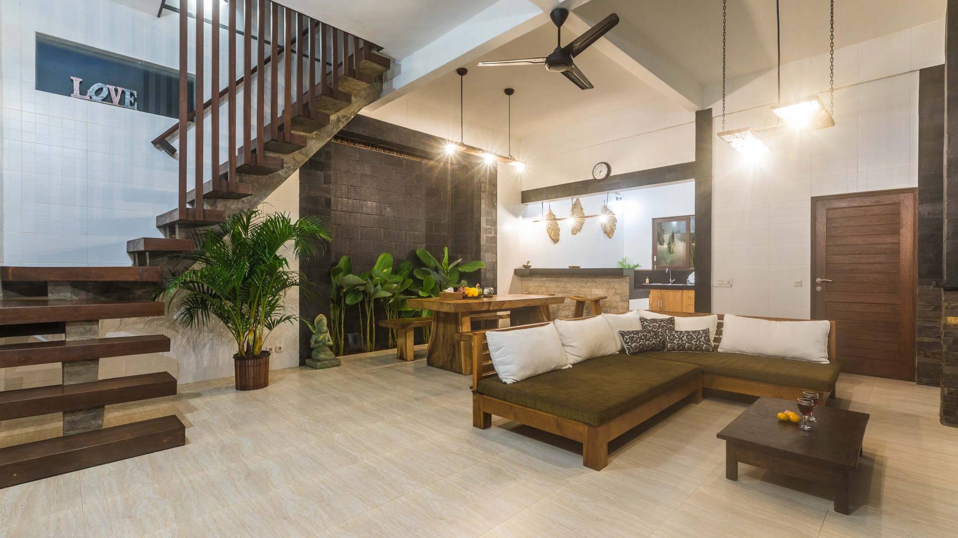 Dies ist eine verschönerte zweistöckige Villa. Ein Schlafzimmer mit Bad, Küche und Wohnzimmer befindet sich im 1. Stock. Zwei weitere Schlafzimmer mit Badezimmern, eine offene Lounge und ein Yoga-Bereich sowie ein Sky Garden-Bereich befinden sich im zweiten Stock. Es gibt schöne und sichere Treppen und einen richtigen Handlauf. Jedes Zimmer inklusive Wohnbereich und Küche ist mit einem Deckenventilator ausgestattet, so dass es im Haus immer schön und entspannt ist. Zwei Schlafzimmer sind mit Klimaanlage ausgestattet, das dritte ist mit einem Deckenventilator ausgestattet, der stark genug ist, sodass Sie möglicherweise sogar nach einer Decke fragen.