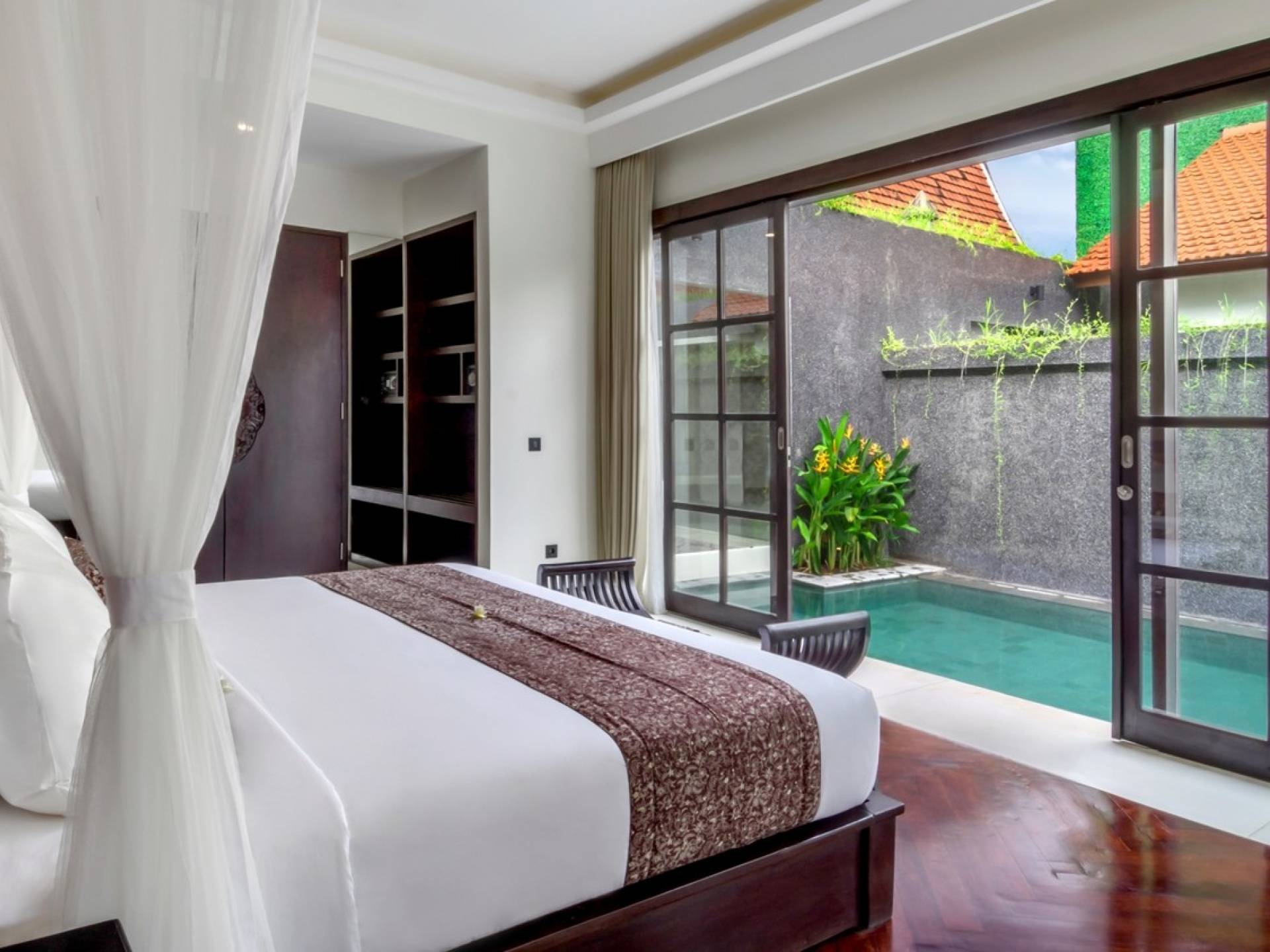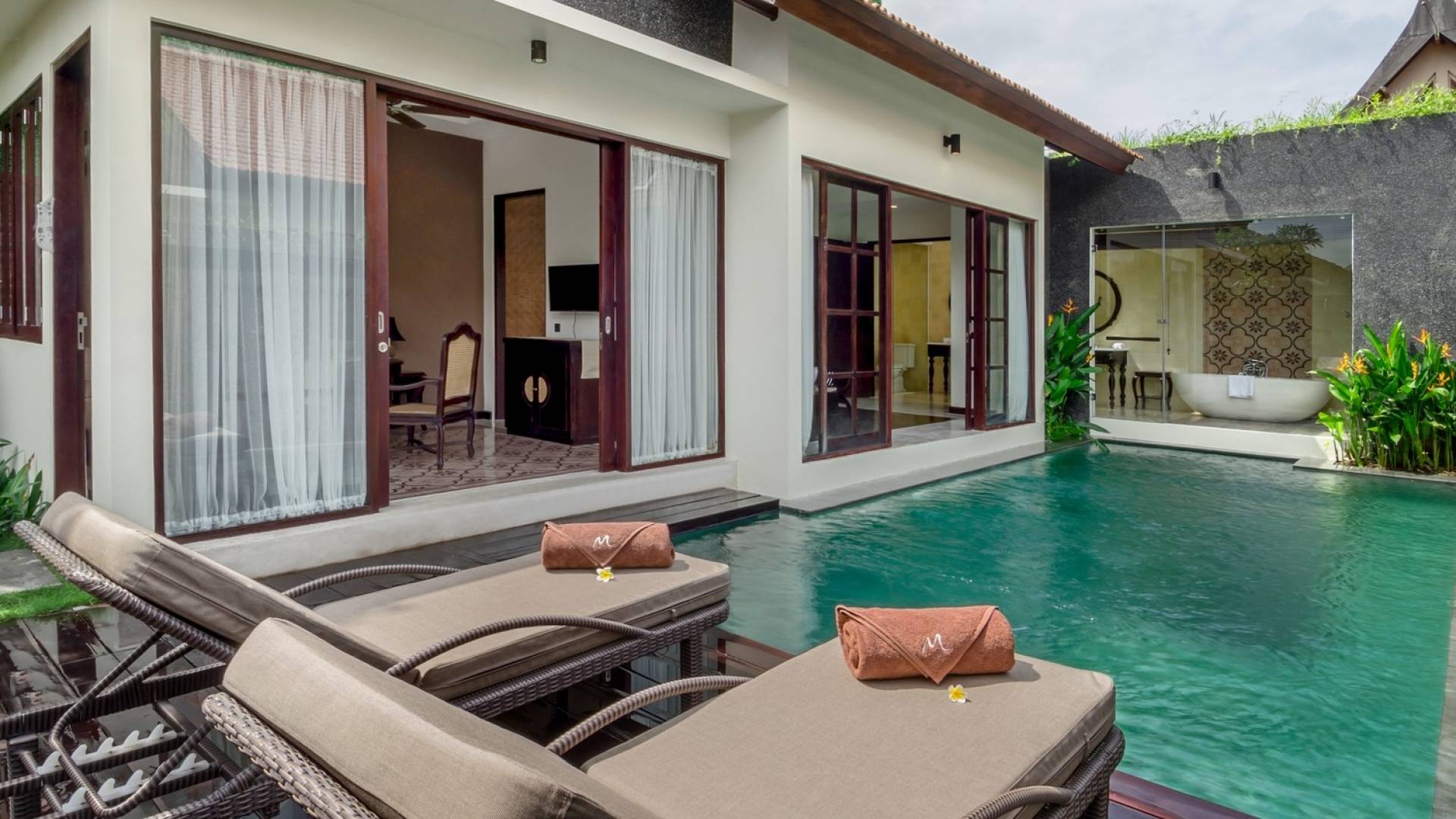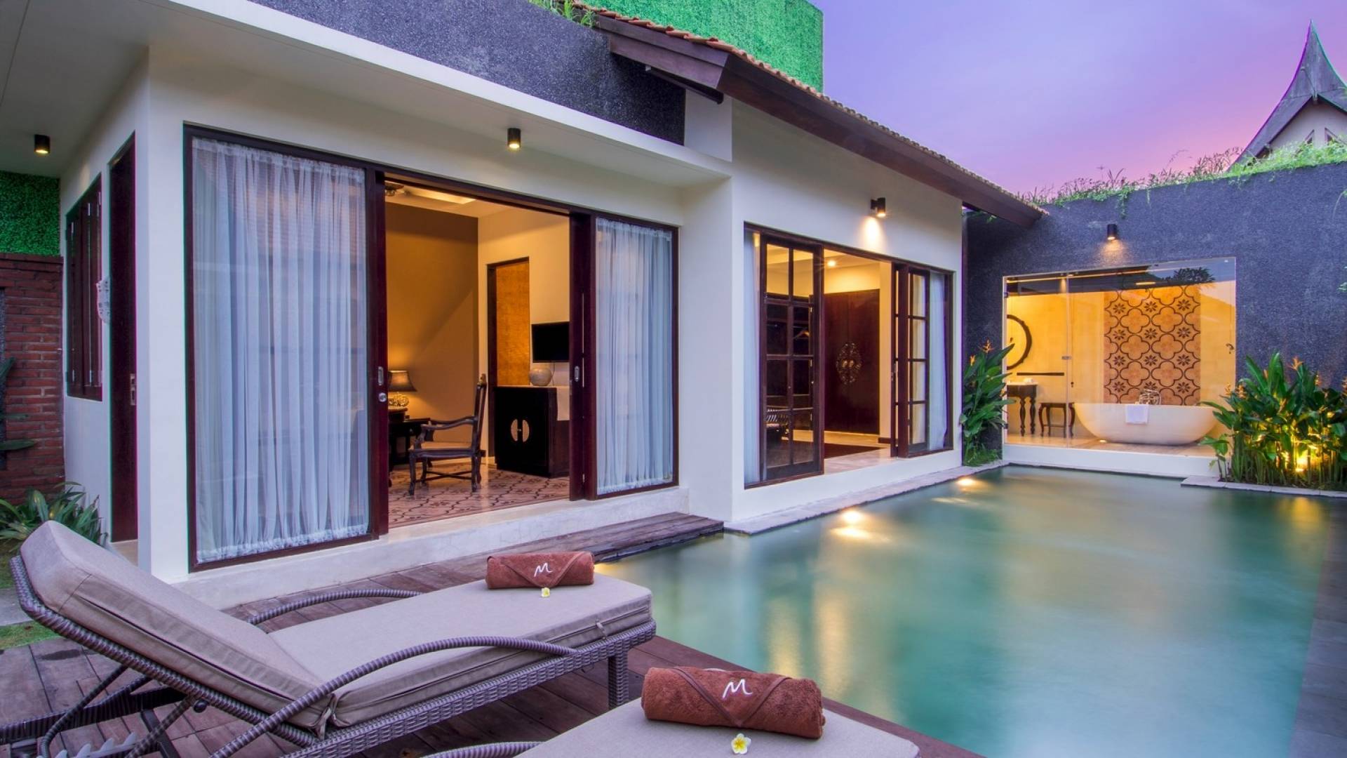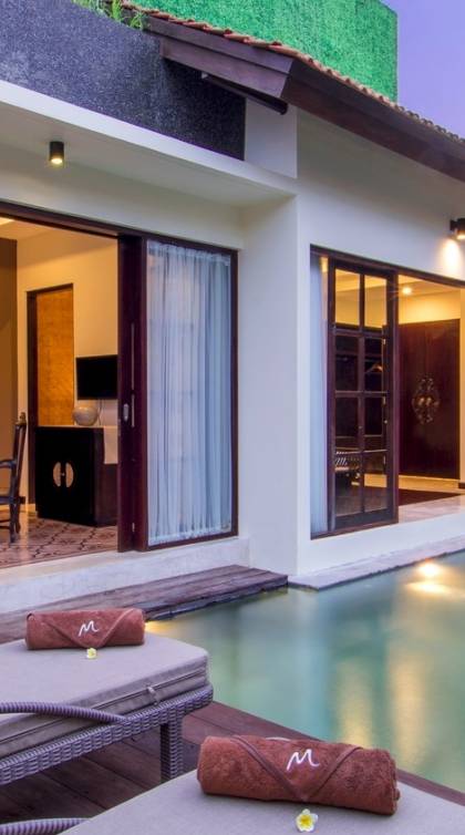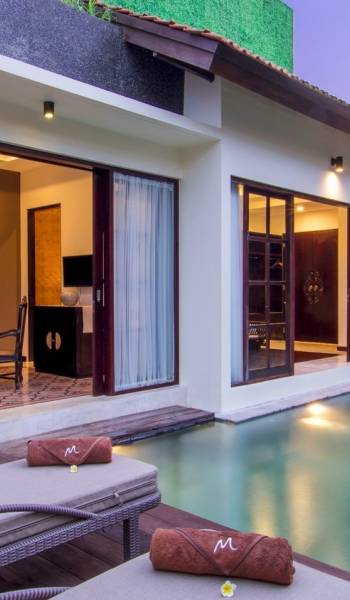 Villa Angsoka ist eine der gemütlichen und luxuriösen Villen mit einem Schlafzimmer mit privatem Pool des Villa M Bali Umalas Boutique Retreat im Süden von Bali. Die Lage dieses wunderschönen Luxusresorts im balinesischen Stil mit 8 Villen ist perfekt. Das Anwesen ist von grünen Reisfeldern umgeben, die Ihnen den Atem rauben, wenn Sie einen Spaziergang machen oder in der hauseigenen Kubera Lounge speisen. Die Hotspots von Canggu sowie die modische Stadt Seminyak sind jedoch nur einen Katzensprung entfernt fahren Sie von Ihrem Ferienhaus weg.
