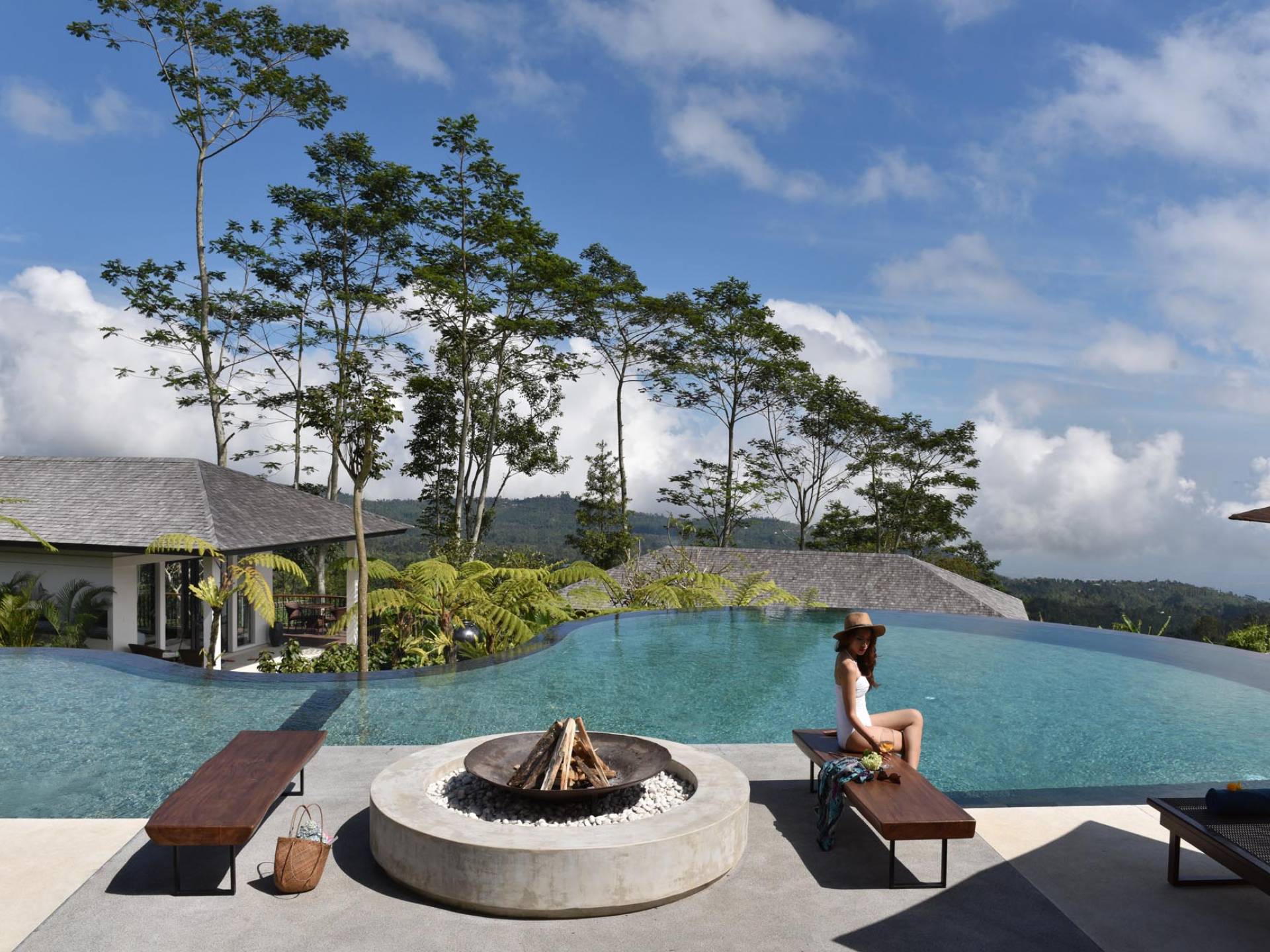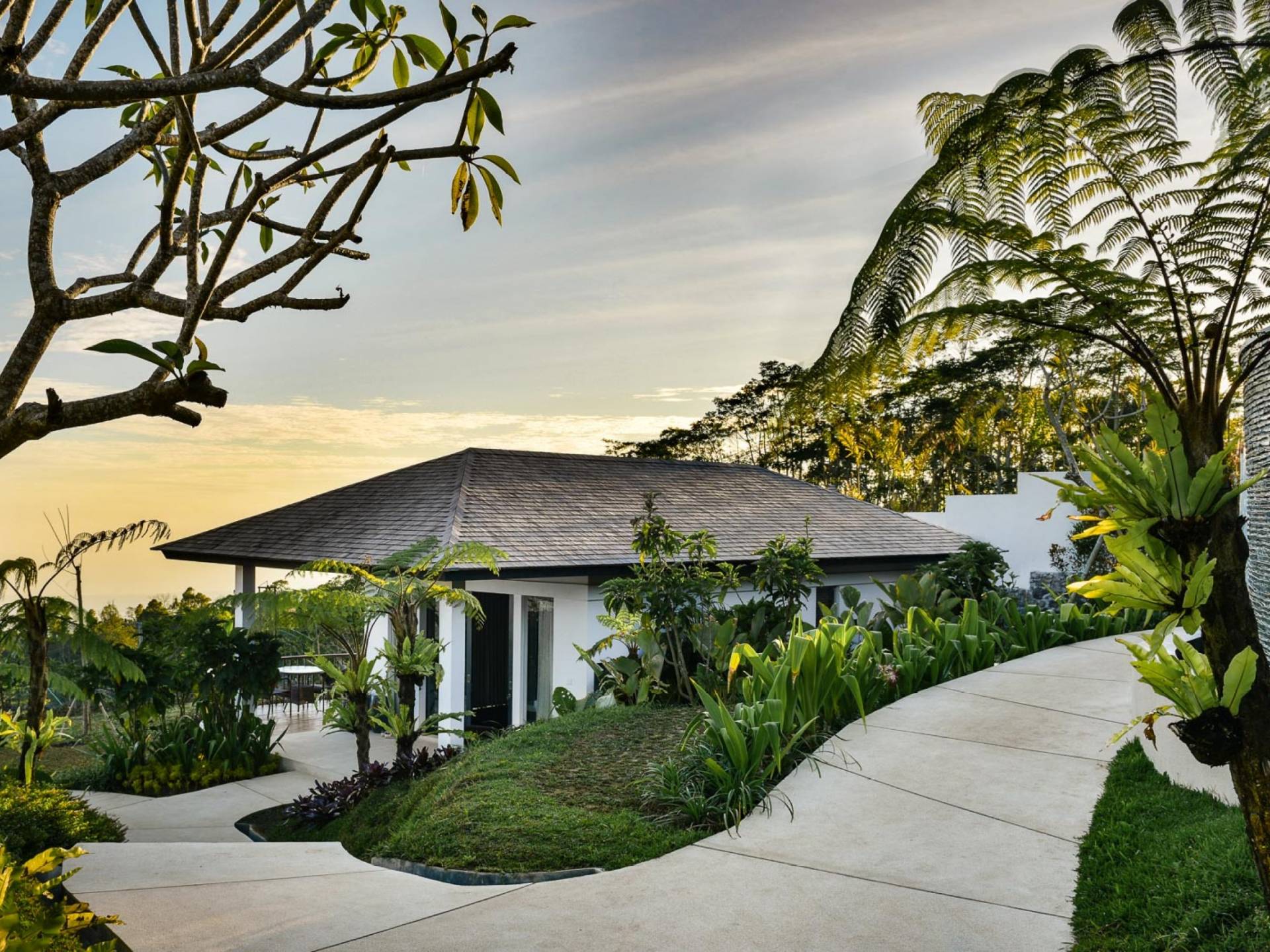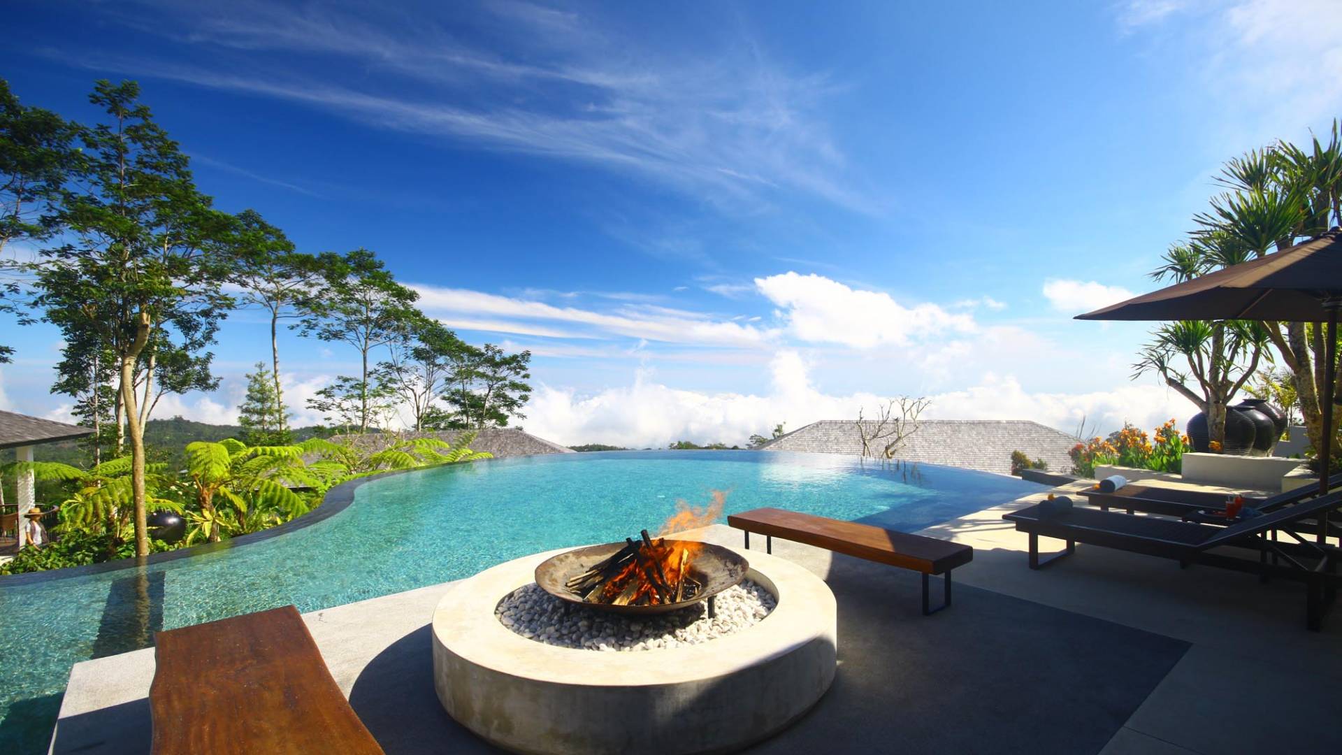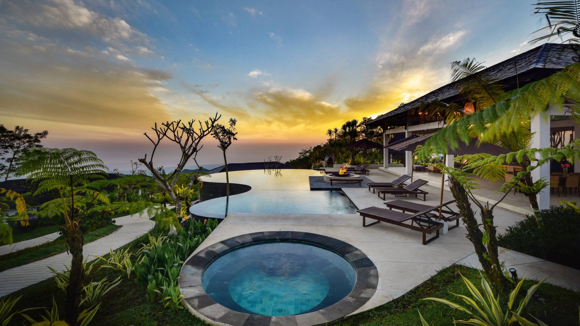 Alta Vista Mountain Villa Bali besteht aus einer Reihe von eleganten und sorgfältig angeordneten Schlafzimmervillen, die um einen Hauptwohn- und Essbereich verteilt sind, der sich auf das Deck eines großen, frei geformten Infinity-Pools, eines Whirlpools und eines Außenkamins am Pool öffnet . Alle Teile des Anwesens, einschließlich jeder Schlafzimmervilla, sind mit freiem Blick über die Hügel bis zur Nordküste gesegnet. Das gesamte Anwesen ist wunderschön angelegt und mit botanischen Sorten bepflanzt, die im kühlen und feuchten Bergklima gedeihen. Das Anwesen ist als eine Reihe von Villen konzipiert, die inmitten üppiger und wunderschöner Gärten versteckt sind. Auf dem höchsten Punkt des Anwesens befindet sich ein „Baumhaus“, bestehend aus einem Spielbereich für Kinder im Erdgeschoss und einer gemütlichen Lounge im Obergeschoss, die einen atemberaubenden Blick auf das gesamte Anwesen und die umliegenden Berge im Norden bietet Küste. Dies ist der beste Ort, um spektakuläre Sonnenuntergänge zu erleben und in Sitzsäcken mit einem Drink in der Hand zu faulenzen.