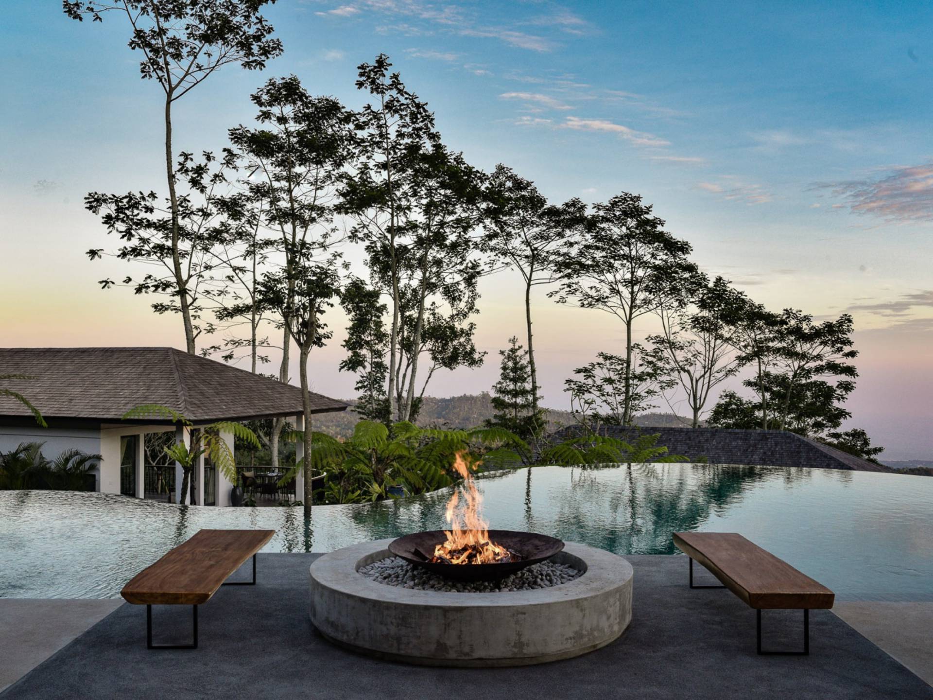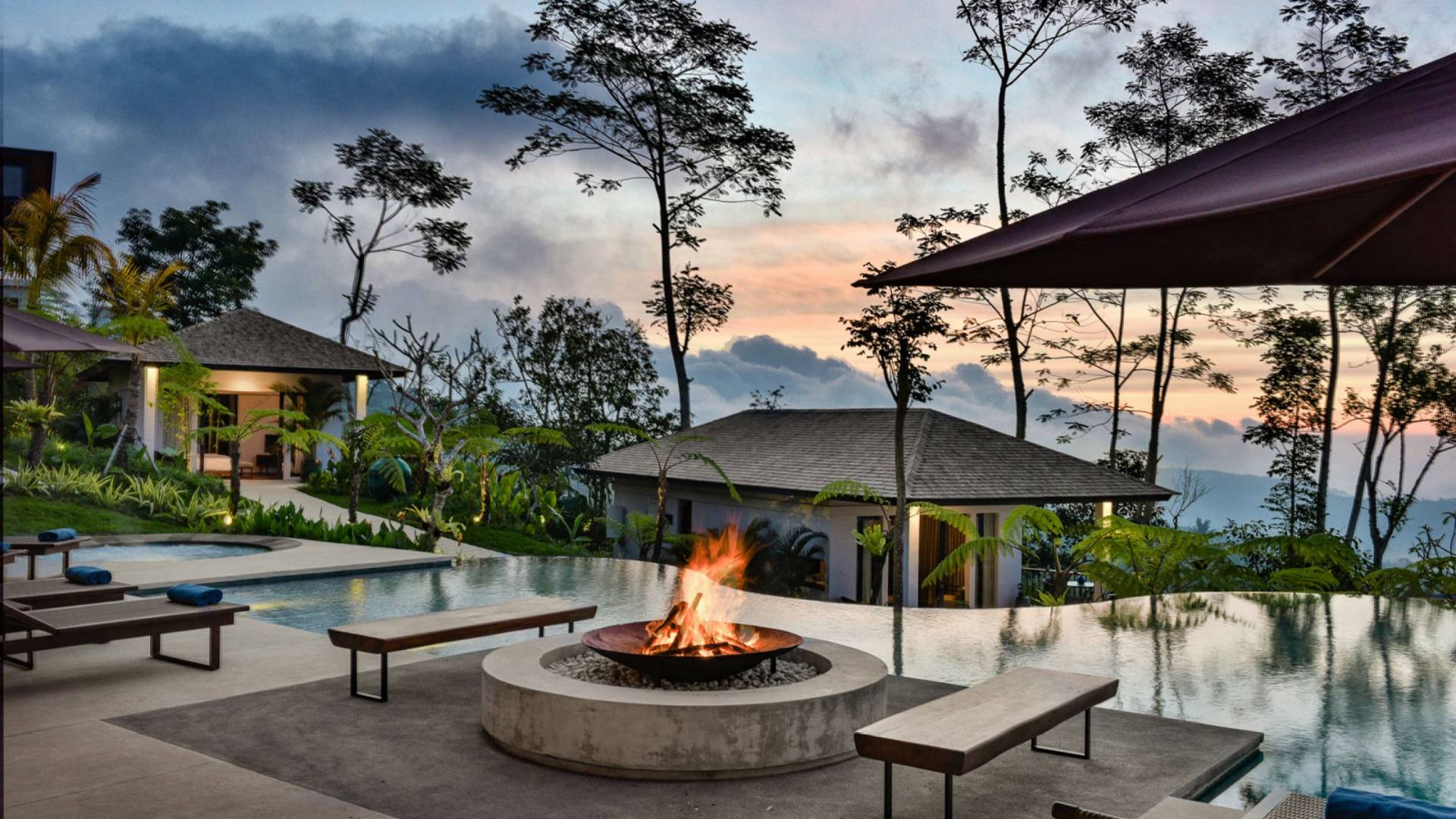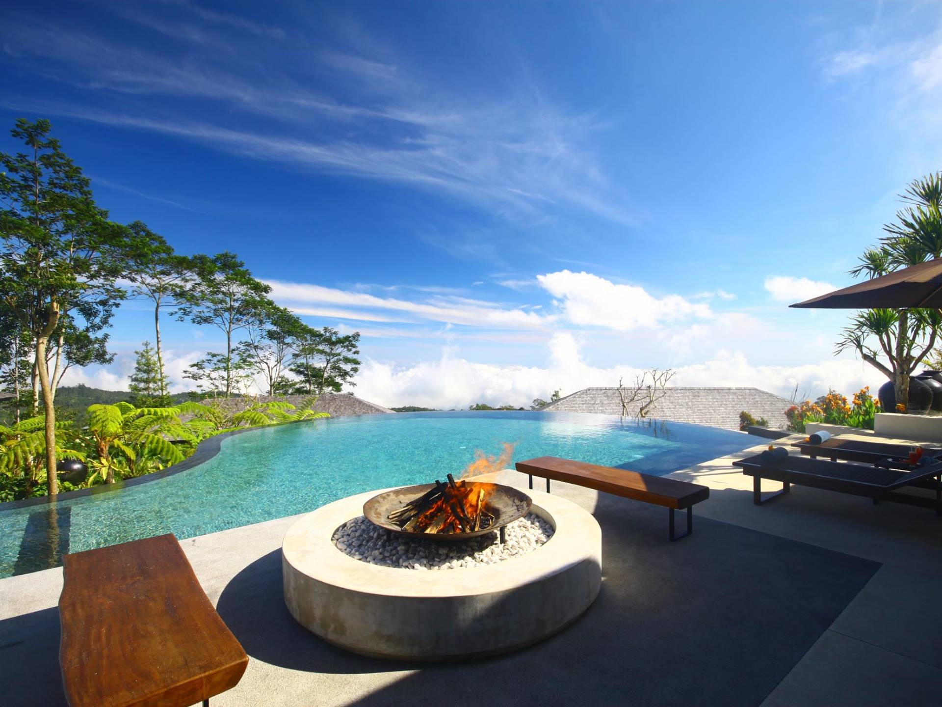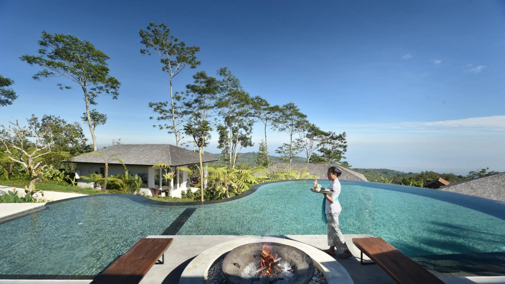 Alta Vista Mountain Villa Bali besteht aus einer Reihe von eleganten und sorgfältig angeordneten Schlafzimmervillen, die um einen Hauptwohn- und Essbereich verteilt sind, der sich auf das Deck eines großen, frei geformten Infinity-Pools, eines Whirlpools und eines Außenkamins am Pool öffnet . Alle Teile des Anwesens, einschließlich jeder Schlafzimmervilla, sind mit freiem Blick über die Hügel bis zur Nordküste gesegnet. Das gesamte Anwesen ist wunderschön angelegt und mit botanischen Sorten bepflanzt, die im kühlen und feuchten Bergklima gedeihen. Das Anwesen ist als eine Reihe von Villen konzipiert, die inmitten üppiger und wunderschöner Gärten versteckt sind. Auf dem höchsten Punkt des Anwesens befindet sich ein „Baumhaus“, bestehend aus einem Spielbereich für Kinder im Erdgeschoss und einer gemütlichen Lounge im Obergeschoss, die einen atemberaubenden Blick auf das gesamte Anwesen und die umliegenden Berge im Norden bietet Küste. Dies ist der beste Ort, um spektakuläre Sonnenuntergänge zu erleben und in Sitzsäcken mit einem Drink in der Hand zu faulenzen.