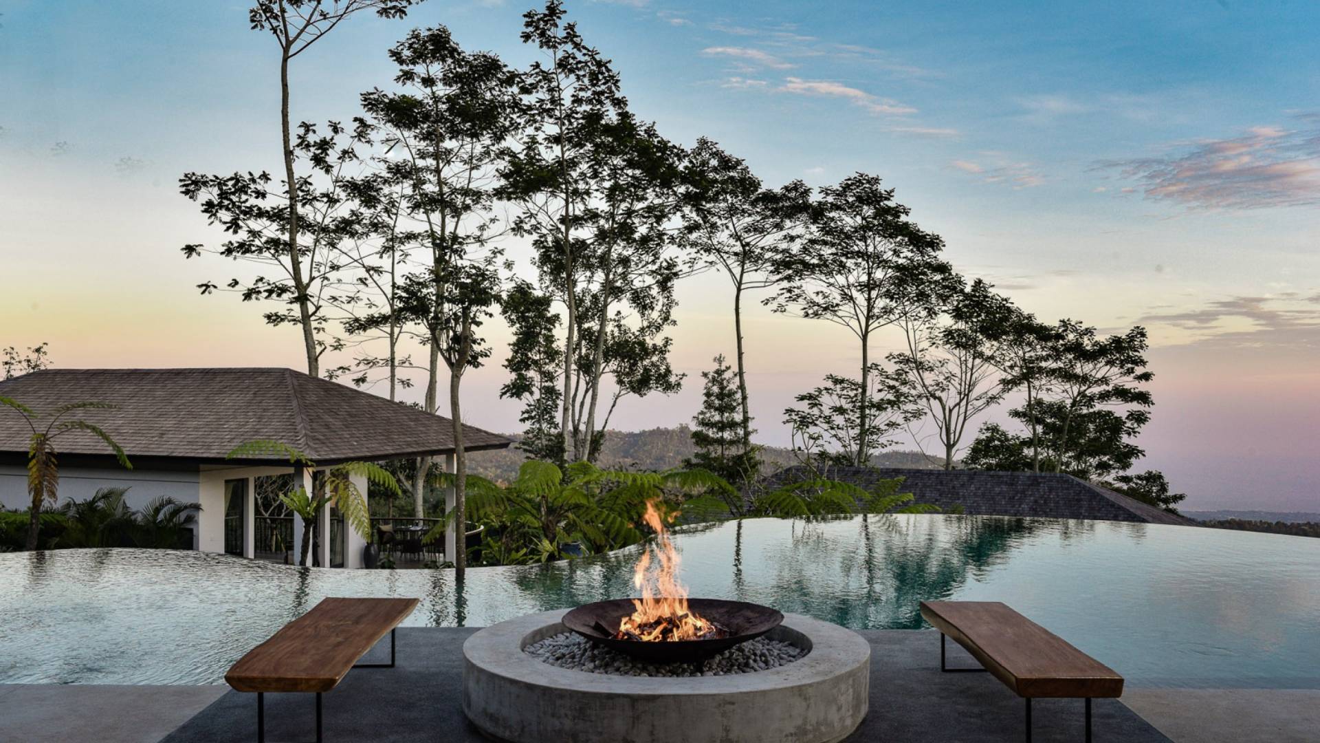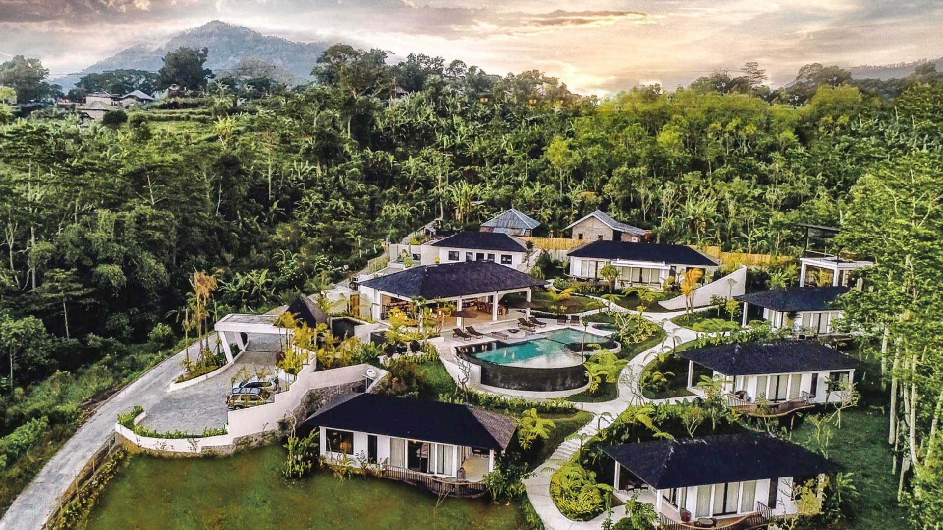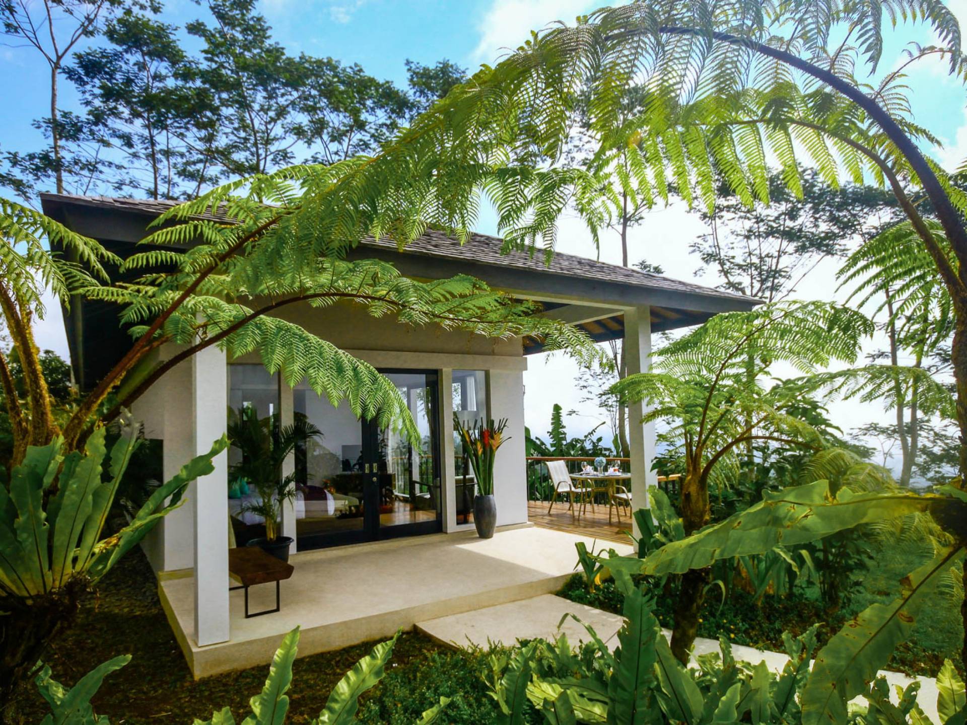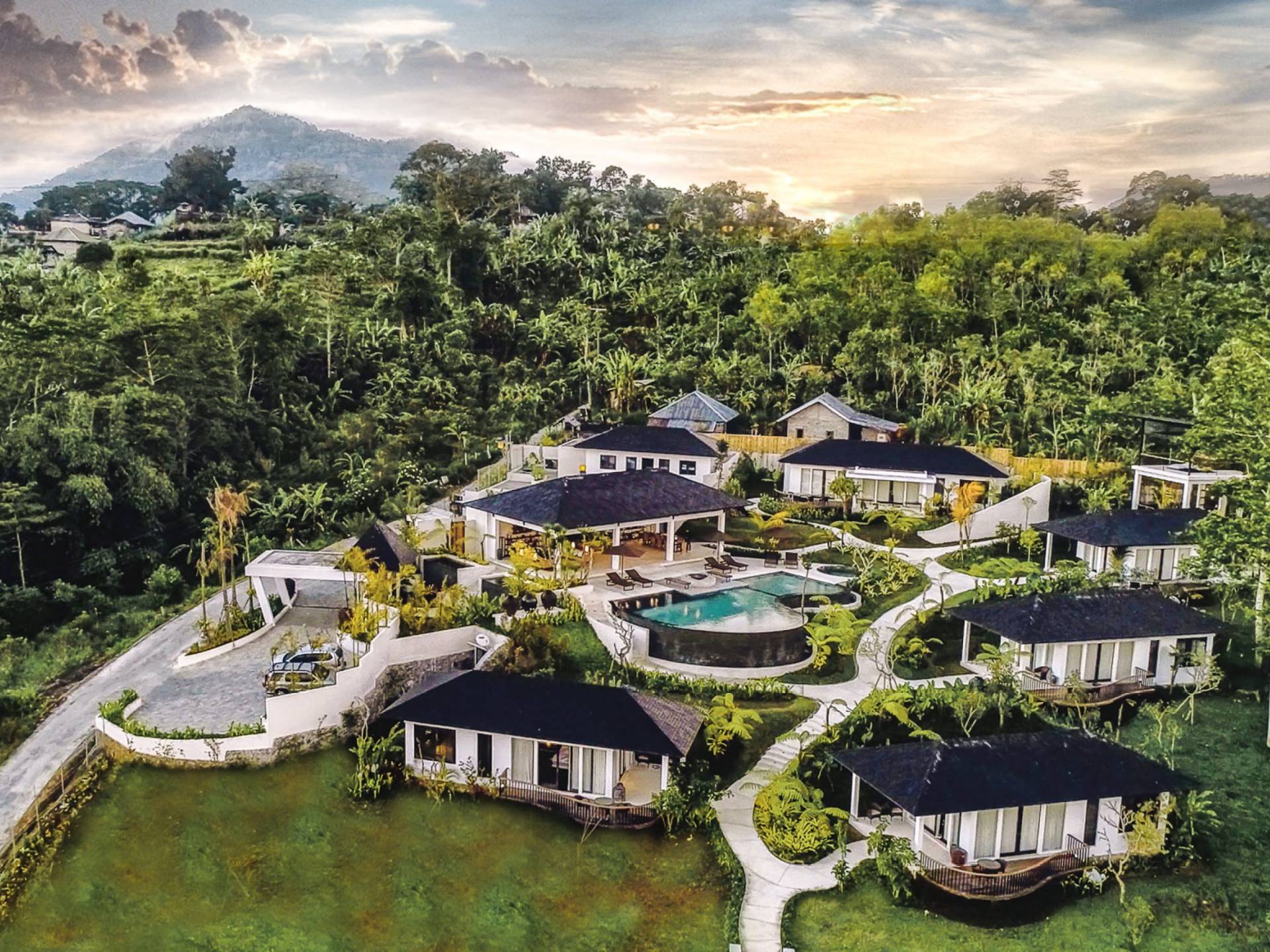 Alta Vista Mountain Villa Bali besteht aus einer Reihe von eleganten und sorgfältig angeordneten Schlafzimmervillen, die um einen Hauptwohn- und Essbereich verteilt sind, der sich auf das Deck eines großen, frei geformten Infinity-Pools, eines Whirlpools und eines Außenkamins am Pool öffnet . Alle Teile des Anwesens, einschließlich jeder Schlafzimmervilla, sind mit freiem Blick über die Hügel bis zur Nordküste gesegnet. Das gesamte Anwesen ist wunderschön angelegt und mit botanischen Sorten bepflanzt, die im kühlen und feuchten Bergklima gedeihen. Das Anwesen ist als eine Reihe von Villen konzipiert, die inmitten üppiger und wunderschöner Gärten versteckt sind. Auf dem höchsten Punkt des Anwesens befindet sich ein „Baumhaus“, bestehend aus einem Spielbereich für Kinder im Erdgeschoss und einer gemütlichen Lounge im Obergeschoss, die einen atemberaubenden Blick auf das gesamte Anwesen und die umliegenden Berge im Norden bietet Küste. Dies ist der beste Ort, um spektakuläre Sonnenuntergänge zu erleben und in Sitzsäcken mit einem Drink in der Hand zu faulenzen.