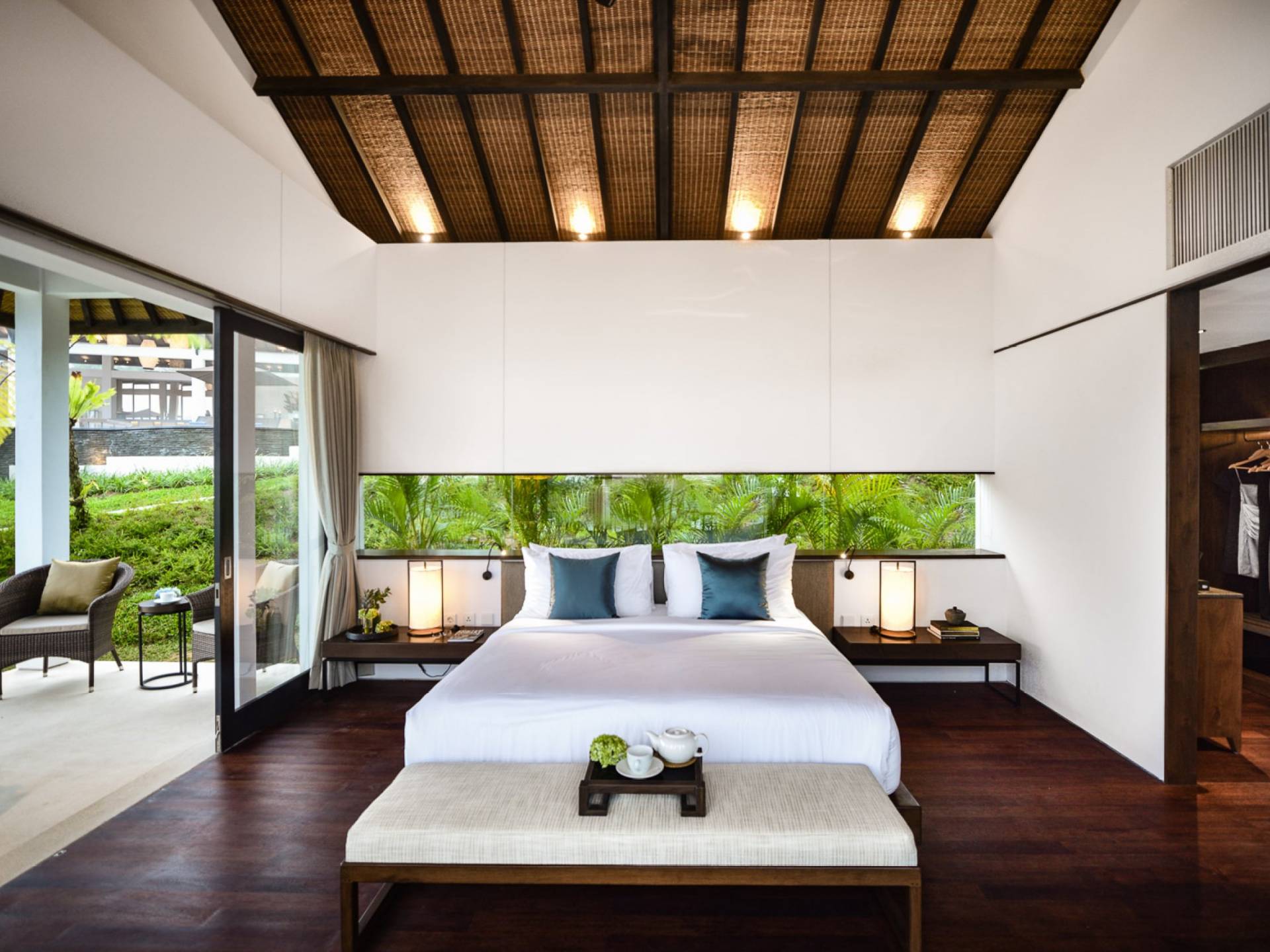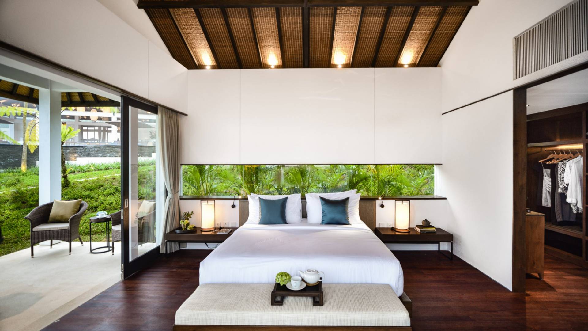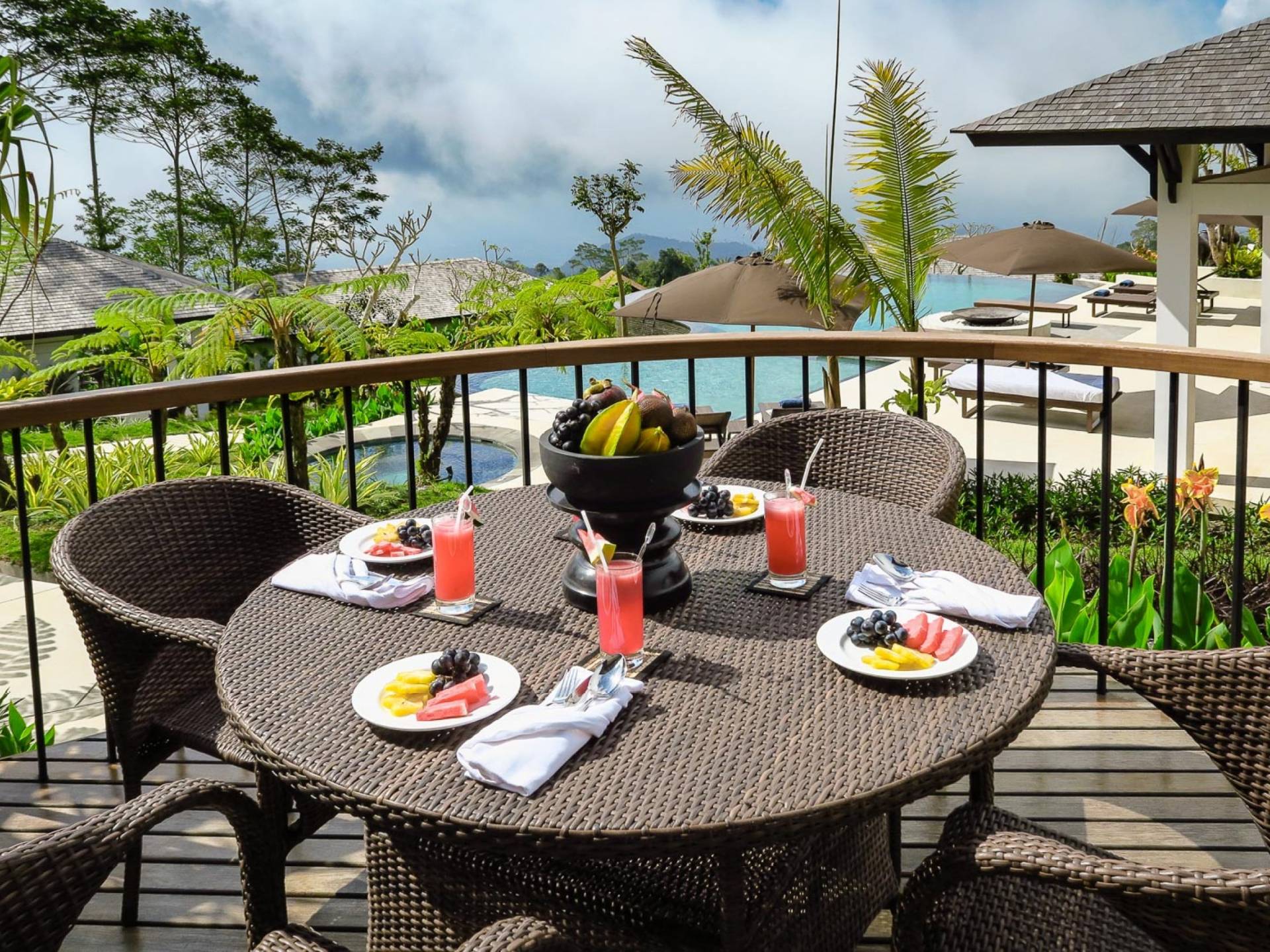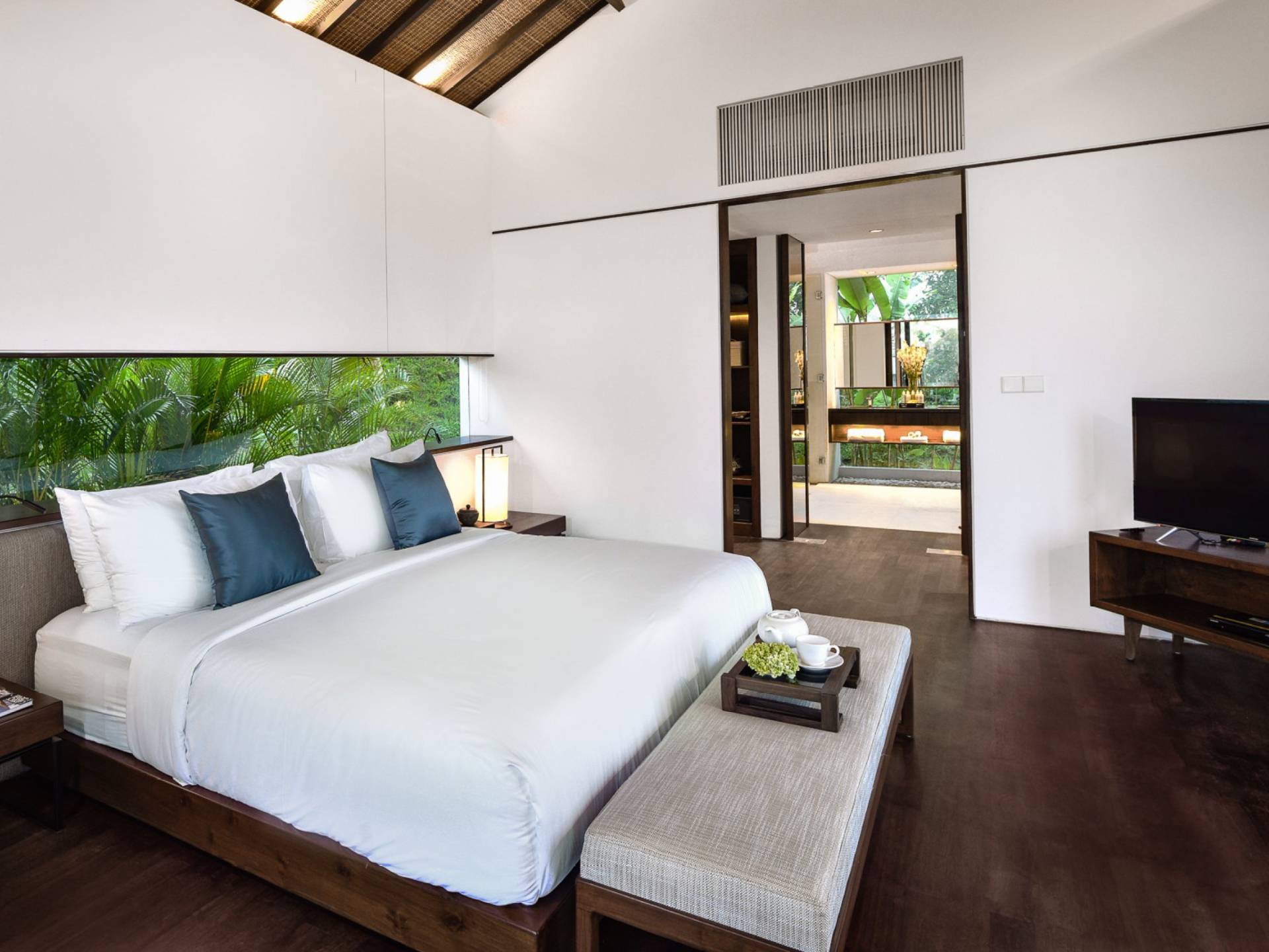 Es gibt Fünf-Schlafzimmer-Villen, von denen vier, die Luxusvillen, großzügige 78 Quadratmeter Privatfläche haben, bestehend aus einem 50 Quadratmeter großen Schlafzimmer mit einem geräumigen begehbaren Kleiderschrank sowie einem Schreibtisch mit Anrichte und persönlichem Personal Erfrischungsbar, die sich in ein weitläufiges Badezimmer öffnet. Darüber hinaus profitiert jeder Bungalow von einer überdachten Veranda von 12 Quadratmetern und einem offenen Bangkiray-Deck von 16 Quadratmetern. Es gibt eine Suite-Villa auf der höchsten Ebene des Anwesens, die die größte ist, mit herrlichen 103 Quadratmetern privatem Raum, einschließlich 75 Quadratmetern Innenraum, bestehend aus einem Schlafzimmer, einem begehbaren Kleiderschrank sowie einem Schreibtisch mit Kommode und persönlichem Erfrischungsbar, ein großzügiges Badezimmer und ein angeschlossenes Wohnzimmer, das bei Bedarf als zusätzliches Schlafzimmer für zwei Kinder dient. Darüber hinaus verfügt dieser Bungalow über eine 12 m² große überdachte Veranda und ein 16 m² großes offenes Bangkiray-Deck.