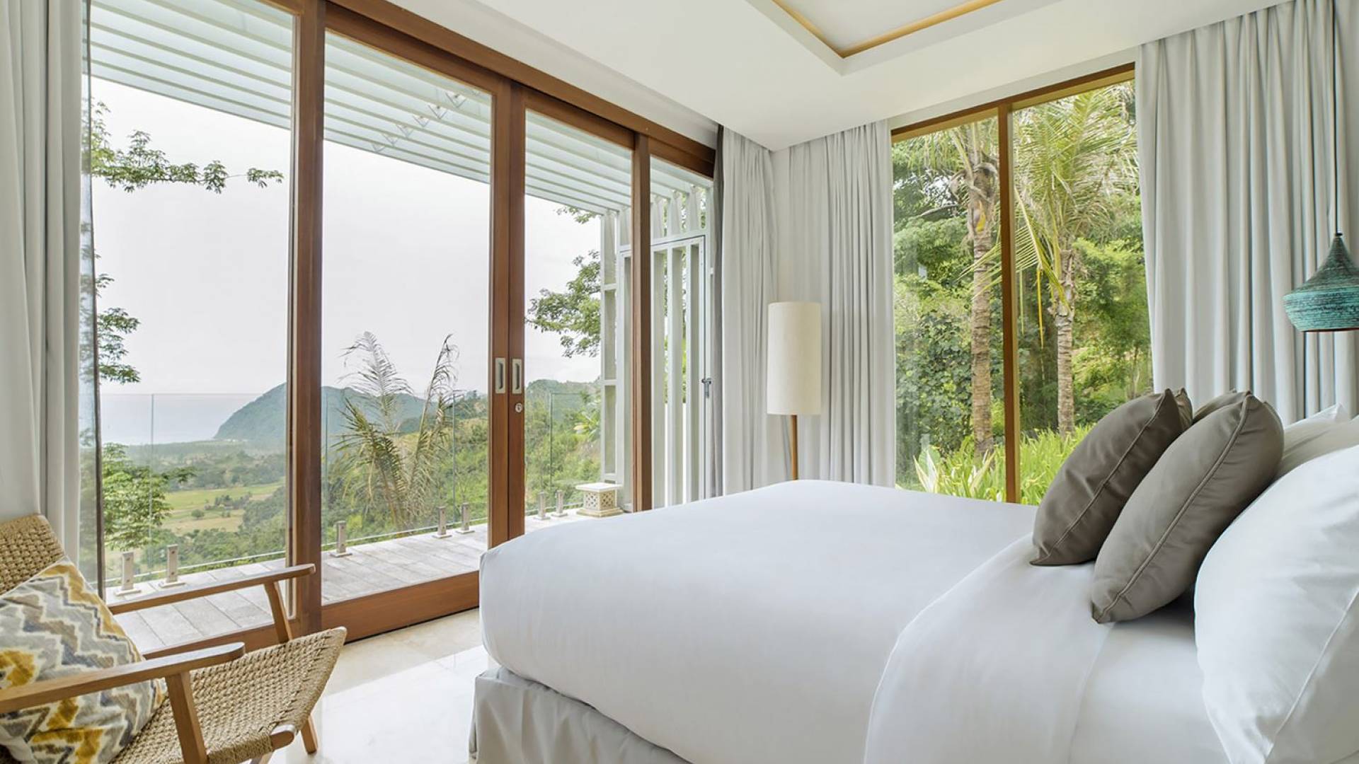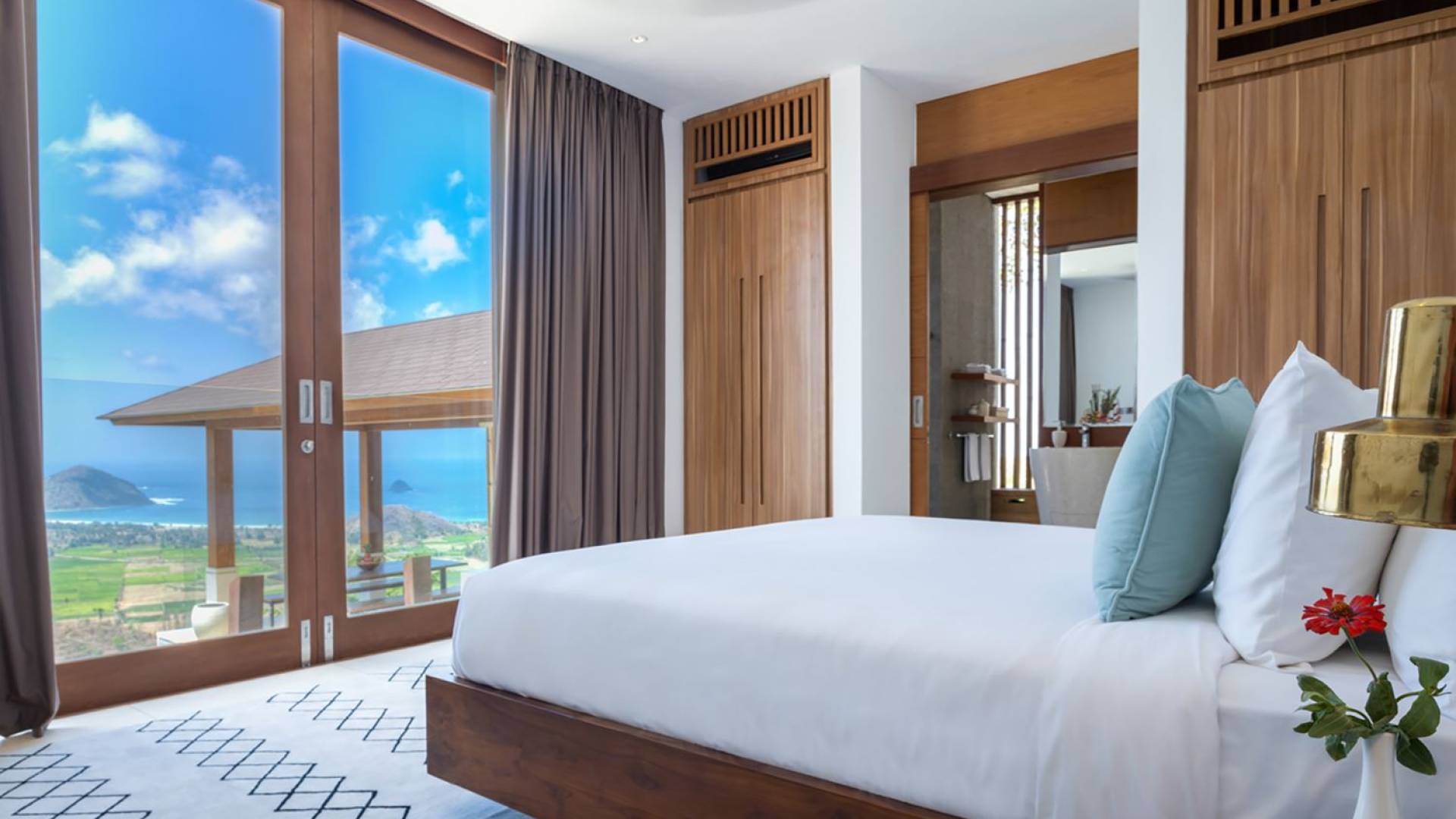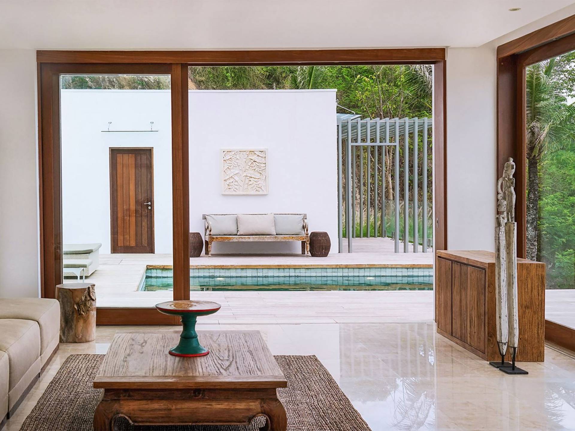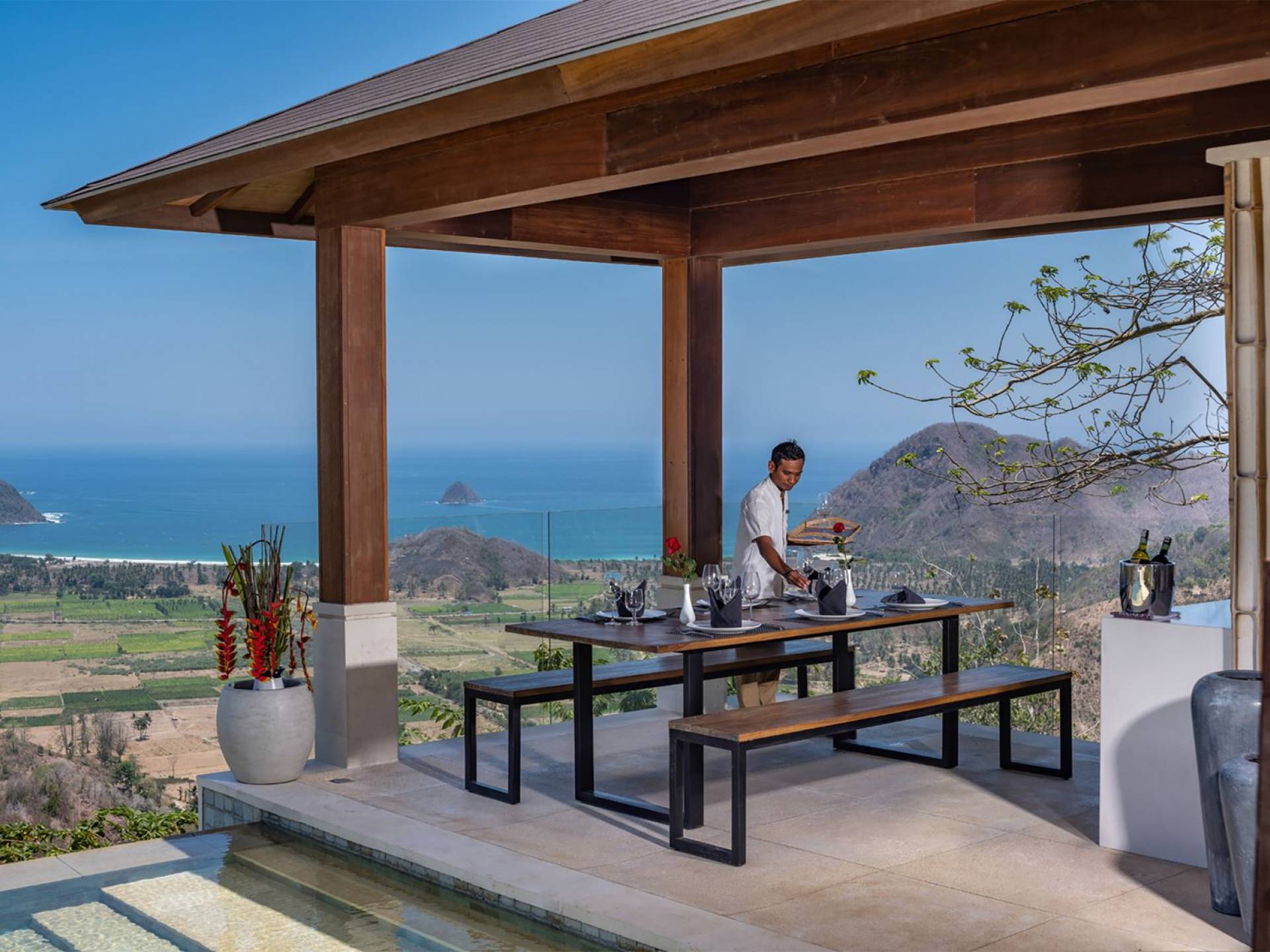 Die Terrassen am Pool geben Ihnen die Möglichkeit, sich zu entspannen und abends die herrlichen Sonnenuntergänge zu sehen, während Sie ein Getränk oder einen Snack genießen. In der Villa zu speisen ist auch eine Option für diejenigen, die die lokale Küche probieren möchten. Die hellen Schlafzimmer mit raumhohen Glastüren sind alle voneinander getrennt, um die Privatsphäre jedes Gastes zu gewährleisten. Der wunderschöne Strand von Selong Belanak ist mit dem Shuttleservice des Anwesens leicht zu erreichen.