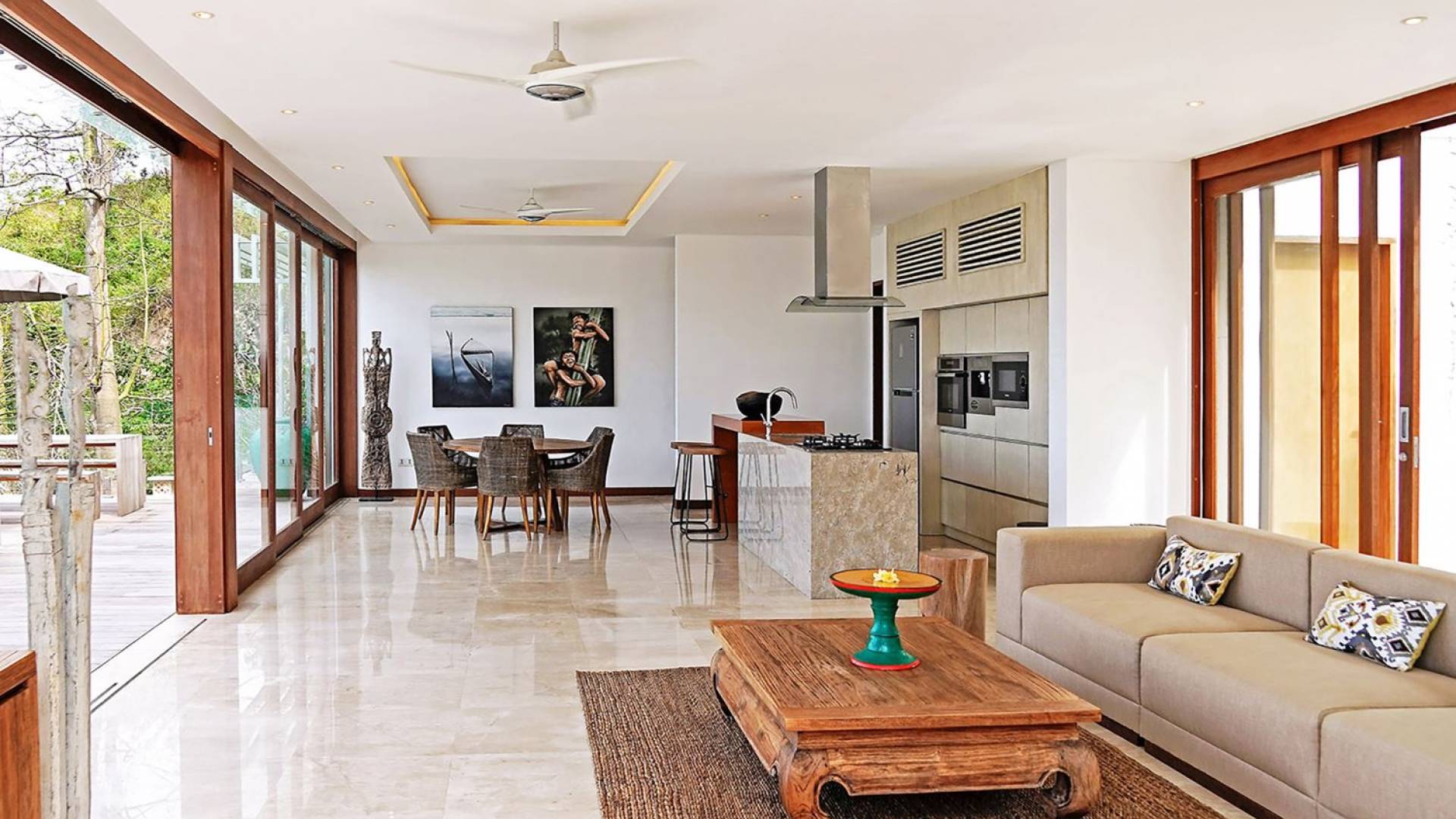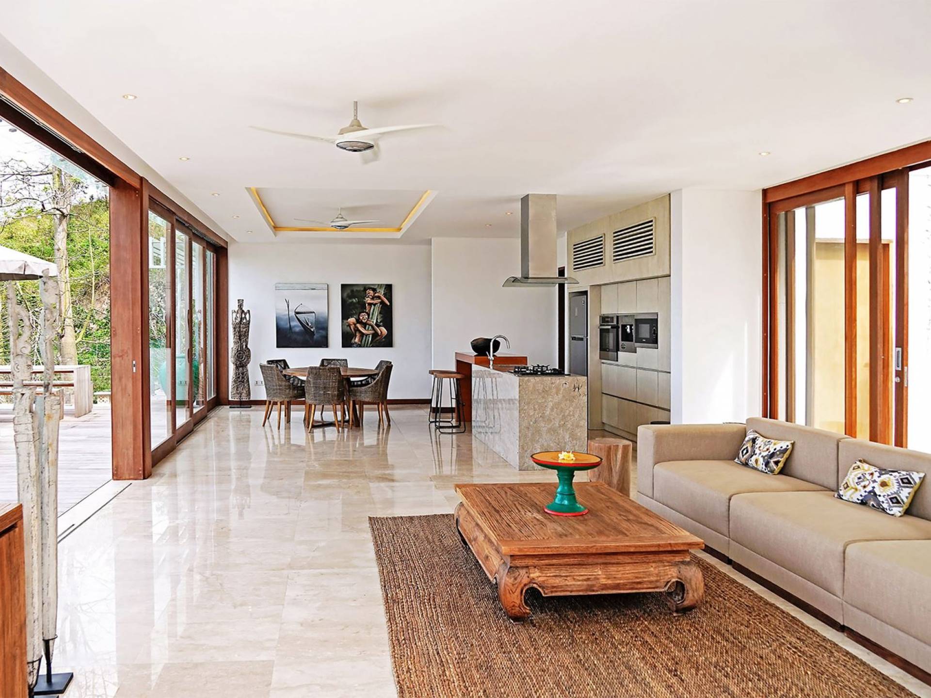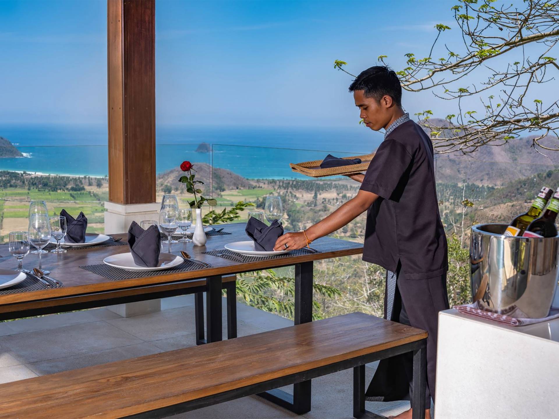 Die Terrassen am Pool geben Ihnen die Möglichkeit, sich zu entspannen und abends die herrlichen Sonnenuntergänge zu sehen, während Sie ein Getränk oder einen Snack genießen. In der Villa zu speisen ist auch eine Option für diejenigen, die die lokale Küche probieren möchten. Die hellen Schlafzimmer mit raumhohen Glastüren sind alle voneinander getrennt, um die Privatsphäre jedes Gastes zu gewährleisten. Der wunderschöne Strand von Selong Belanak ist mit dem Shuttleservice des Anwesens leicht zu erreichen.