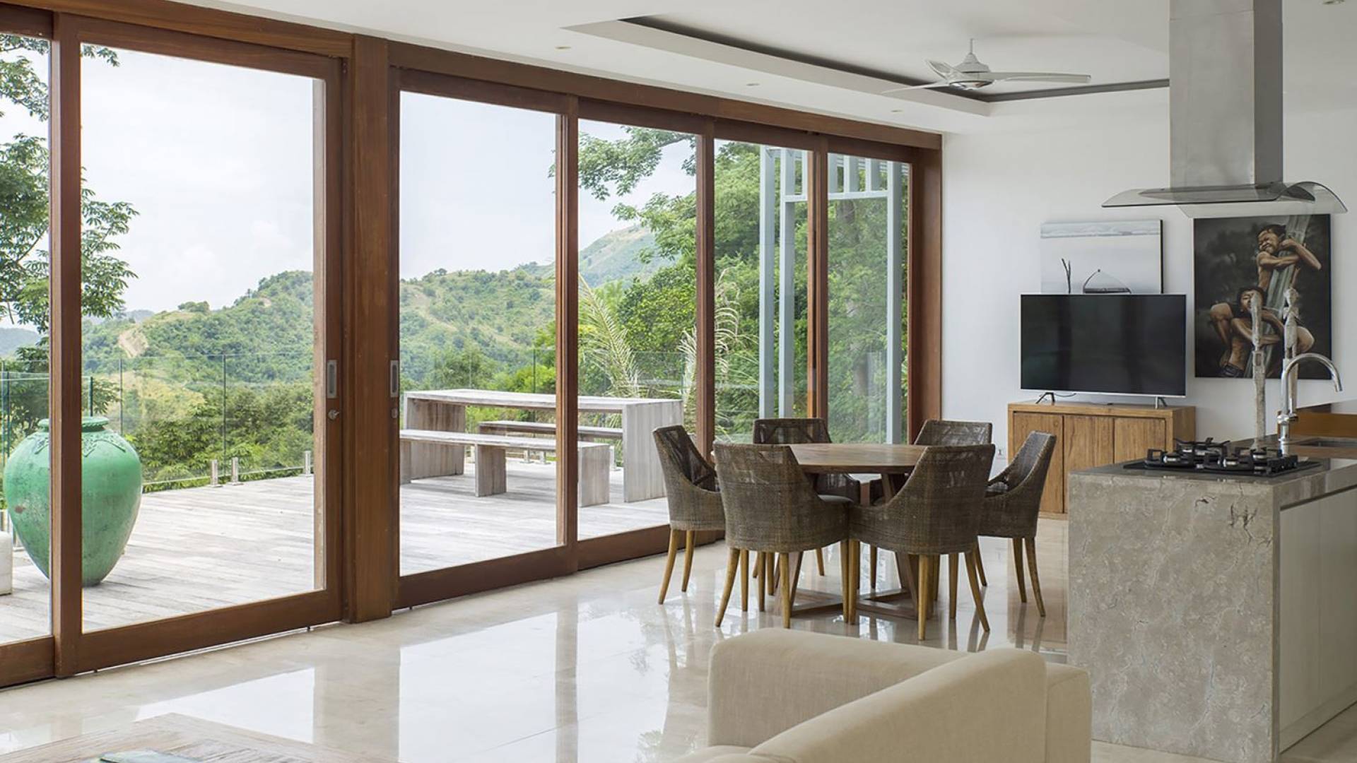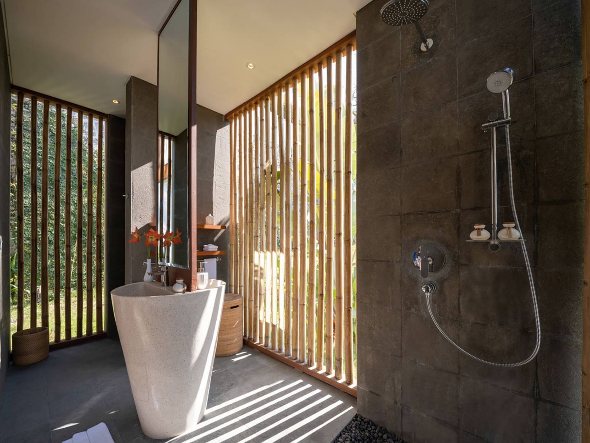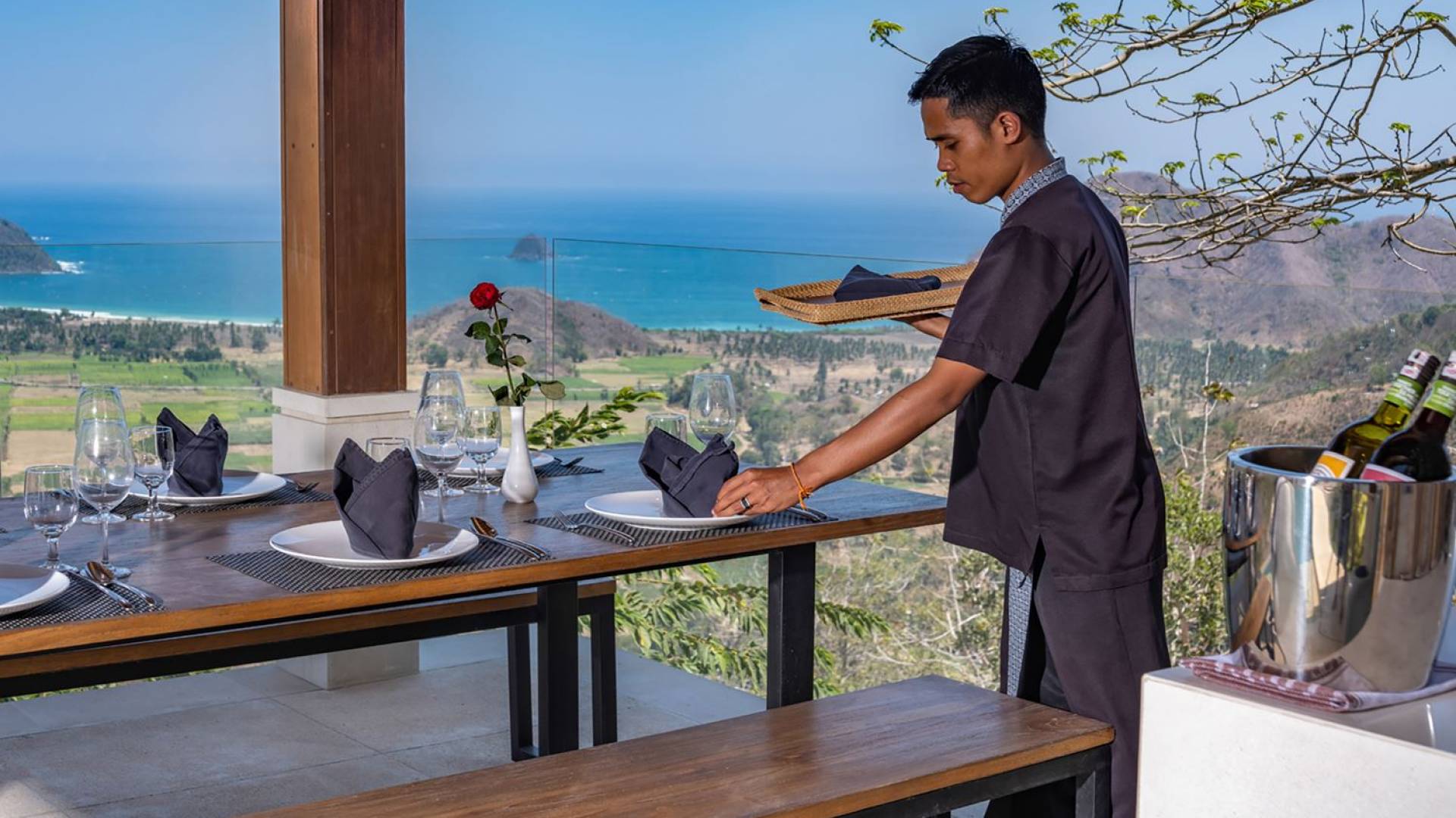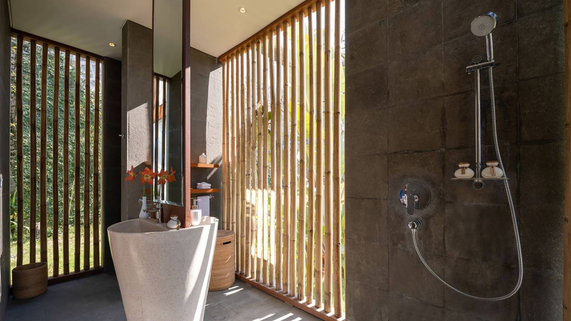 Die Terrassen am Pool geben Ihnen die Möglichkeit, sich zu entspannen und abends die herrlichen Sonnenuntergänge zu sehen, während Sie ein Getränk oder einen Snack genießen. In der Villa zu speisen ist auch eine Option für diejenigen, die die lokale Küche probieren möchten. Die hellen Schlafzimmer mit raumhohen Glastüren sind alle voneinander getrennt, um die Privatsphäre jedes Gastes zu gewährleisten. Der wunderschöne Strand von Selong Belanak ist mit dem Shuttleservice des Anwesens leicht zu erreichen.