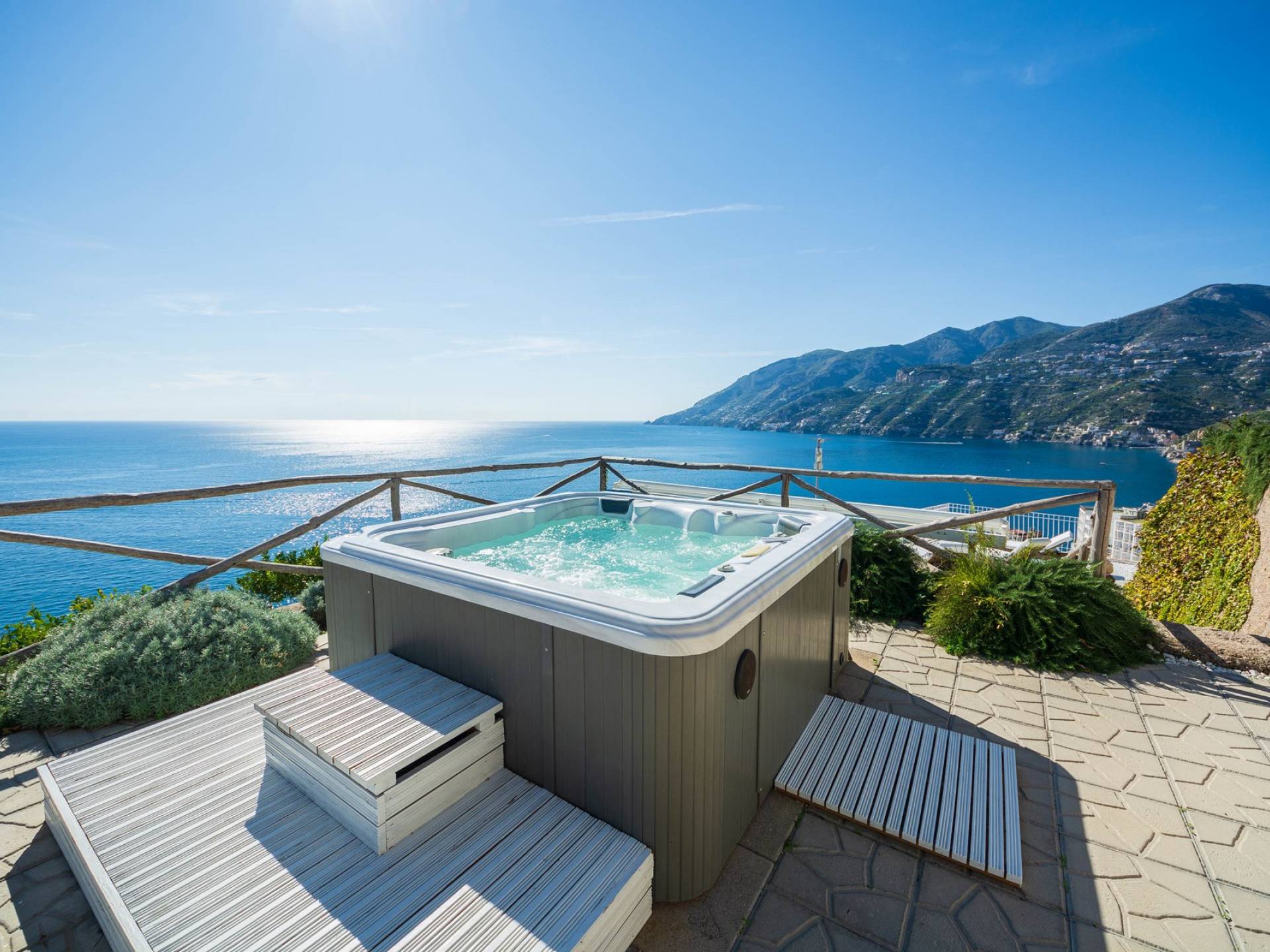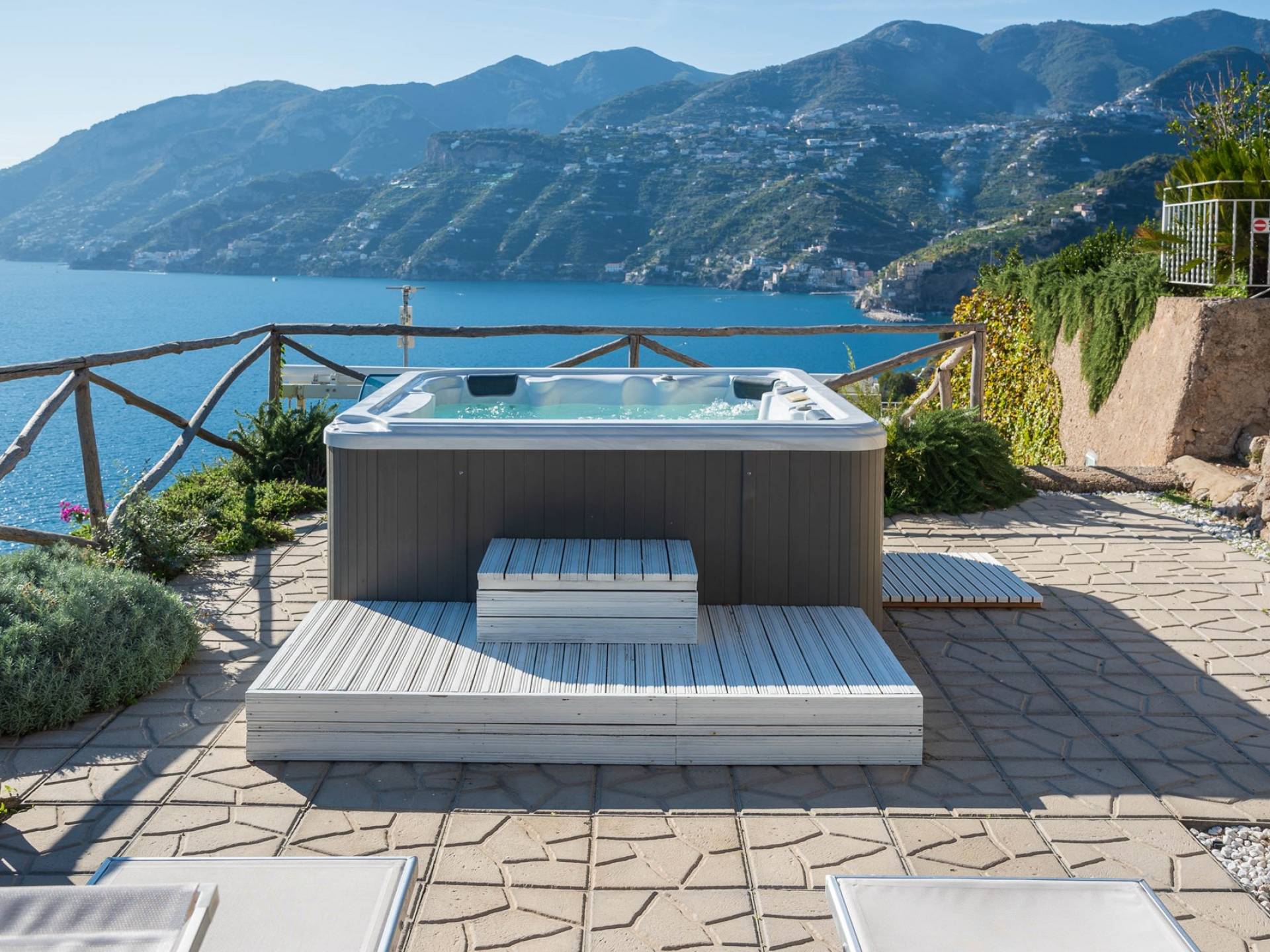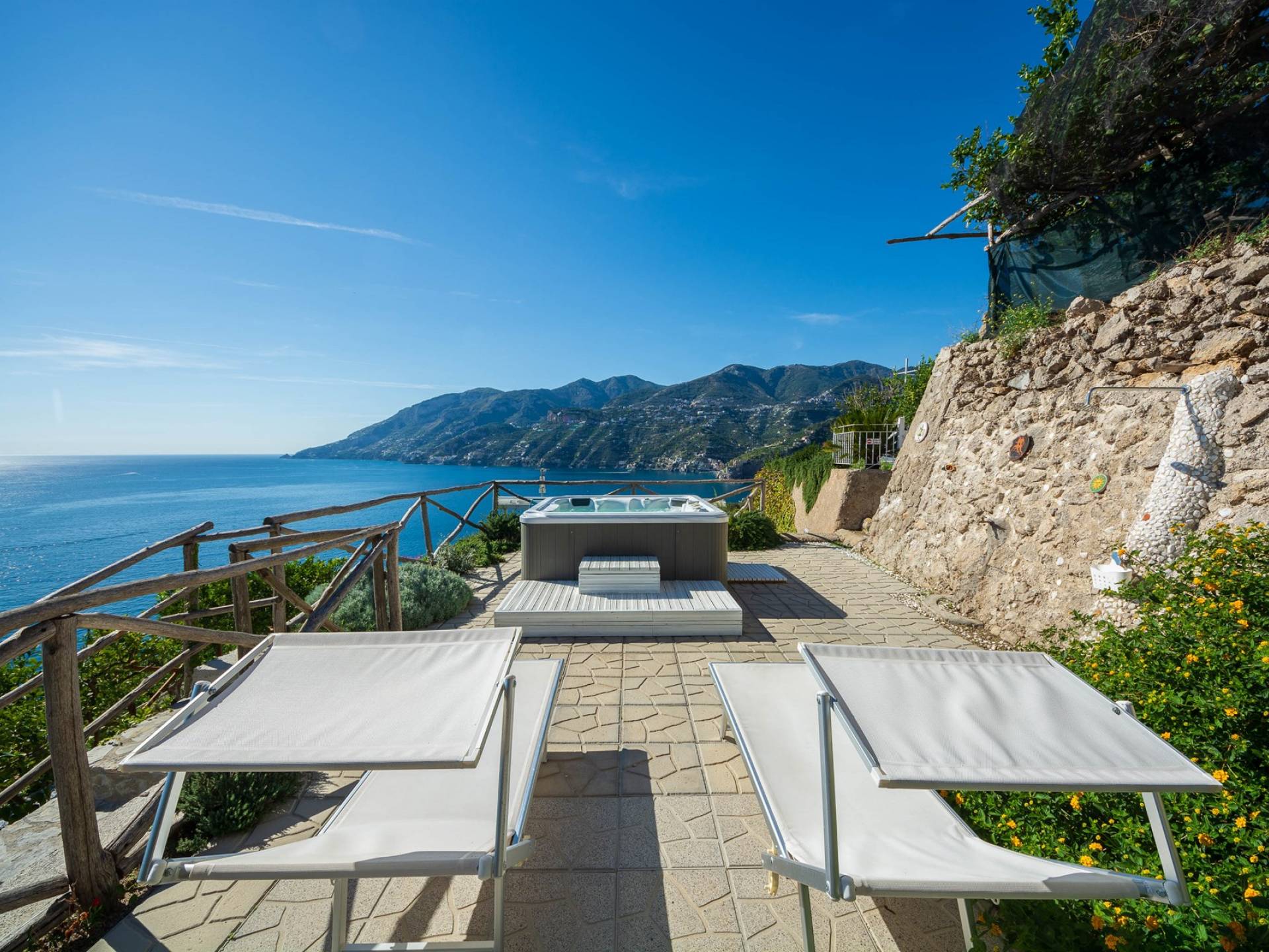 Willkommen beim Anblick eines einzigartigen Panoramas der Welt, dem der Amalfiküste, an einem wirklich fabelhaften Ort! Diese bezaubernde Residenz befindet sich inmitten von Zitronenhainen und typischen lokalen Pergolen und erstreckt sich über mehrstöckige Terrassen, auf denen Ruhebereiche mit Hydromassage-Minipool, Panorama-Swimmingpool, Solarium und Essbereich mit Vietri-Keramiktisch angeordnet sind.