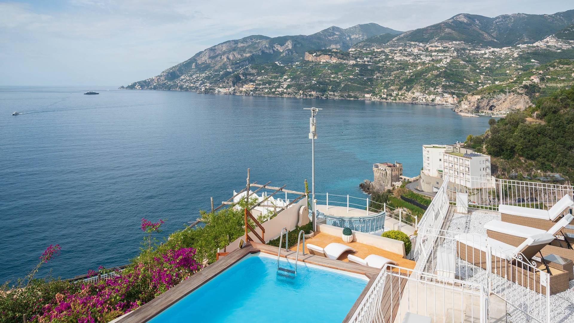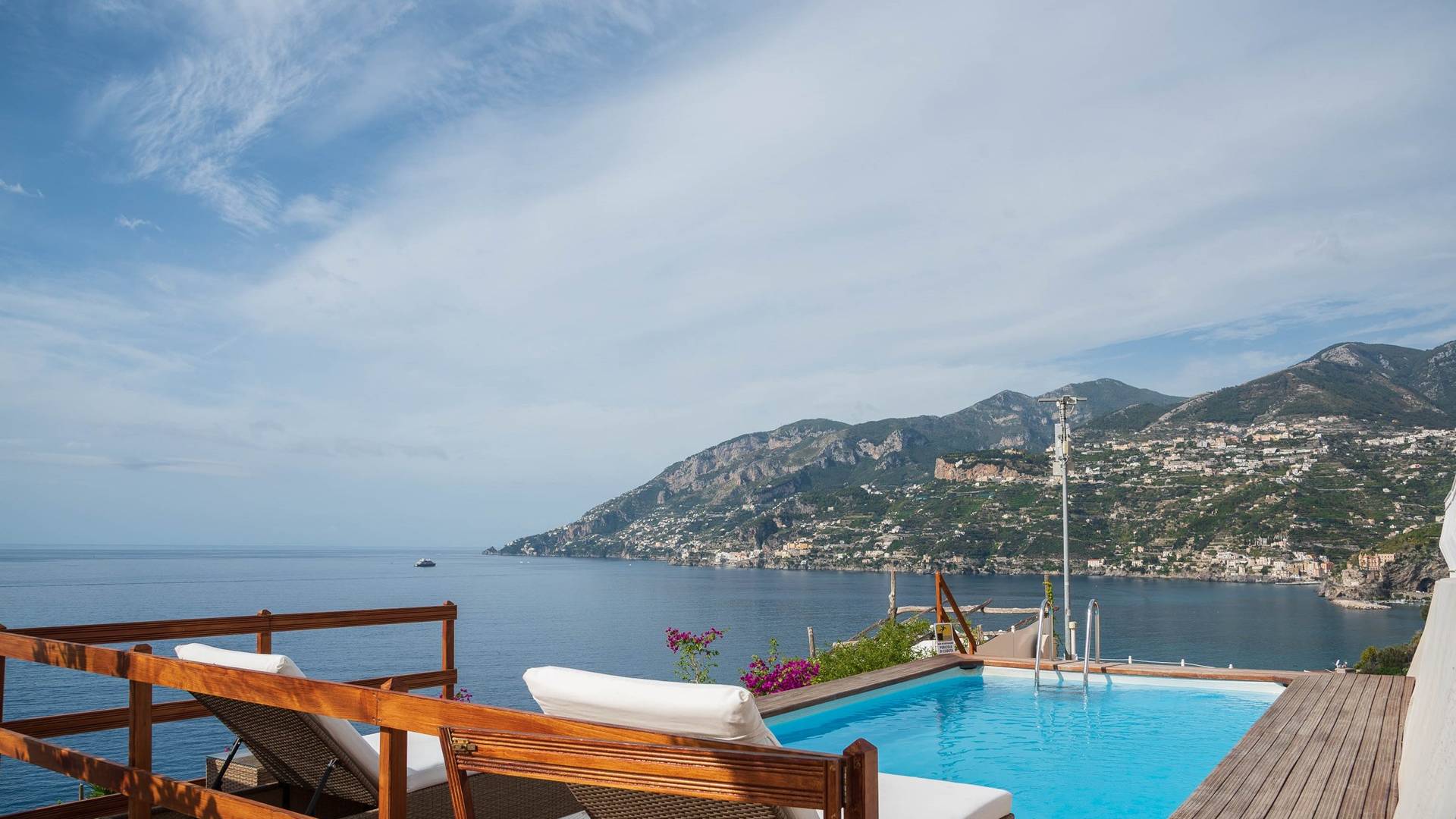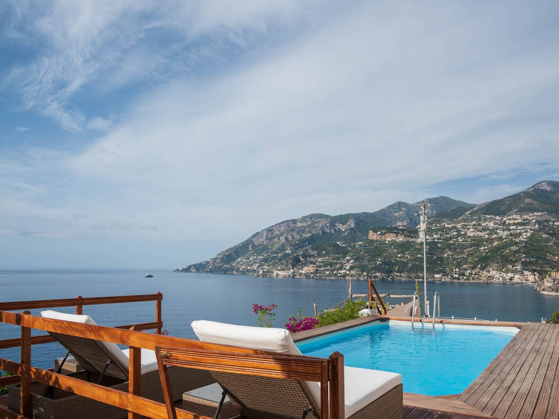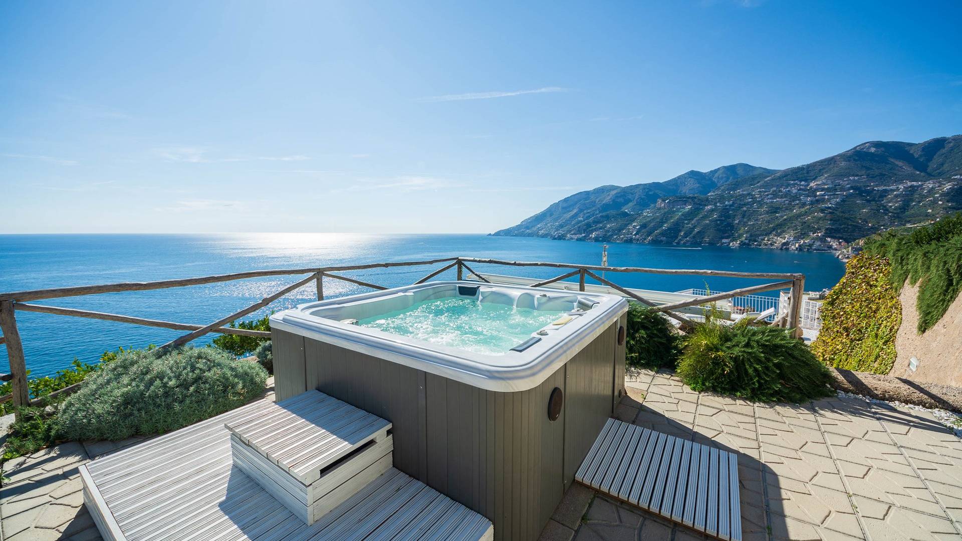 Willkommen beim Anblick eines einzigartigen Panoramas der Welt, dem der Amalfiküste, an einem wirklich fabelhaften Ort! Diese bezaubernde Residenz befindet sich inmitten von Zitronenhainen und typischen lokalen Pergolen und erstreckt sich über mehrstöckige Terrassen, auf denen Ruhebereiche mit Hydromassage-Minipool, Panorama-Swimmingpool, Solarium und Essbereich mit Vietri-Keramiktisch angeordnet sind.