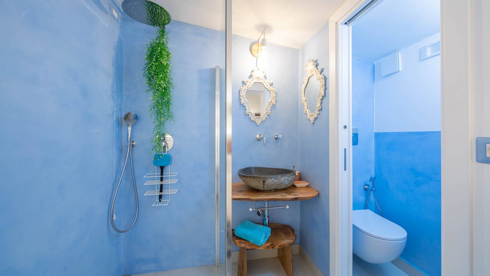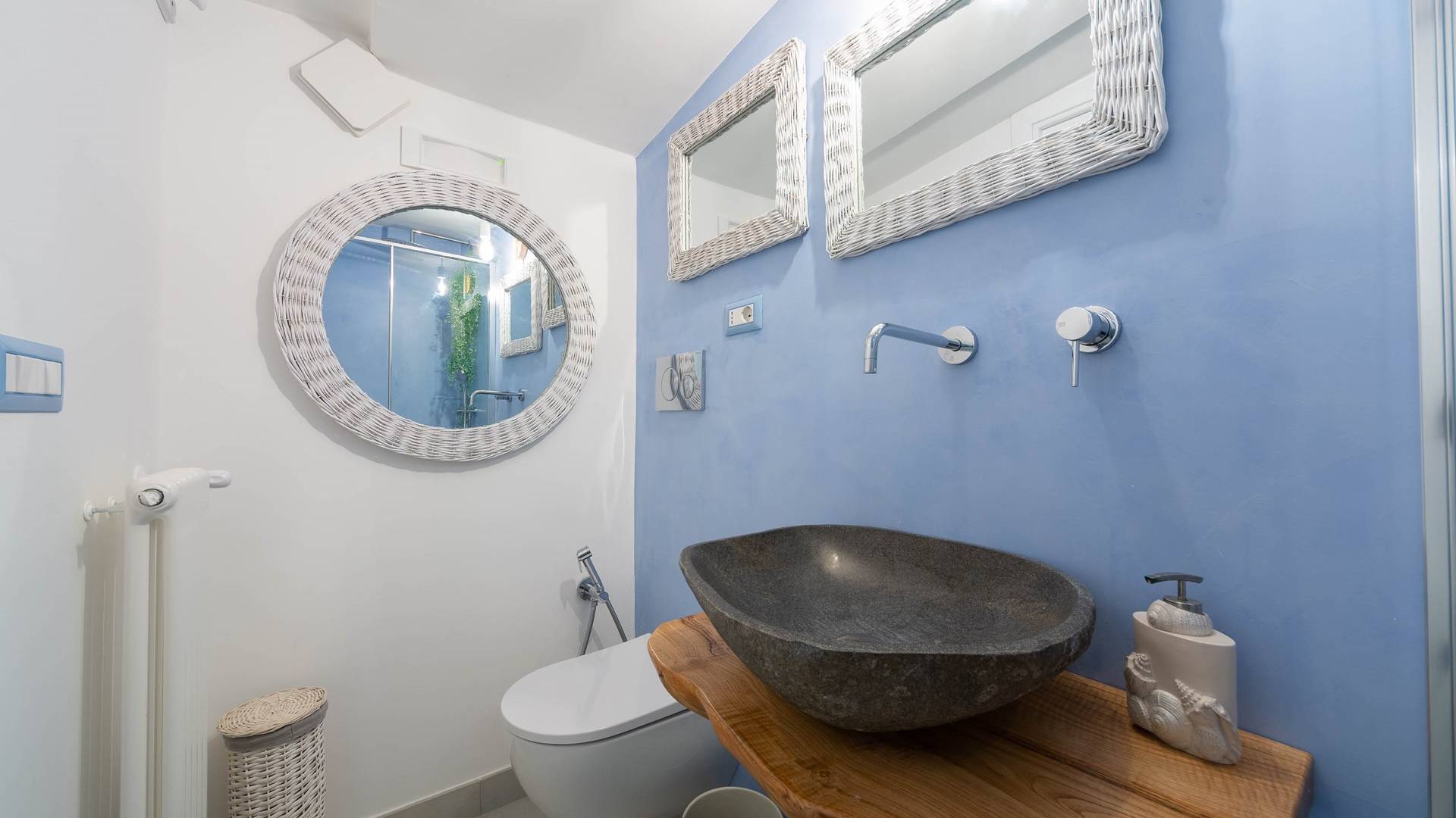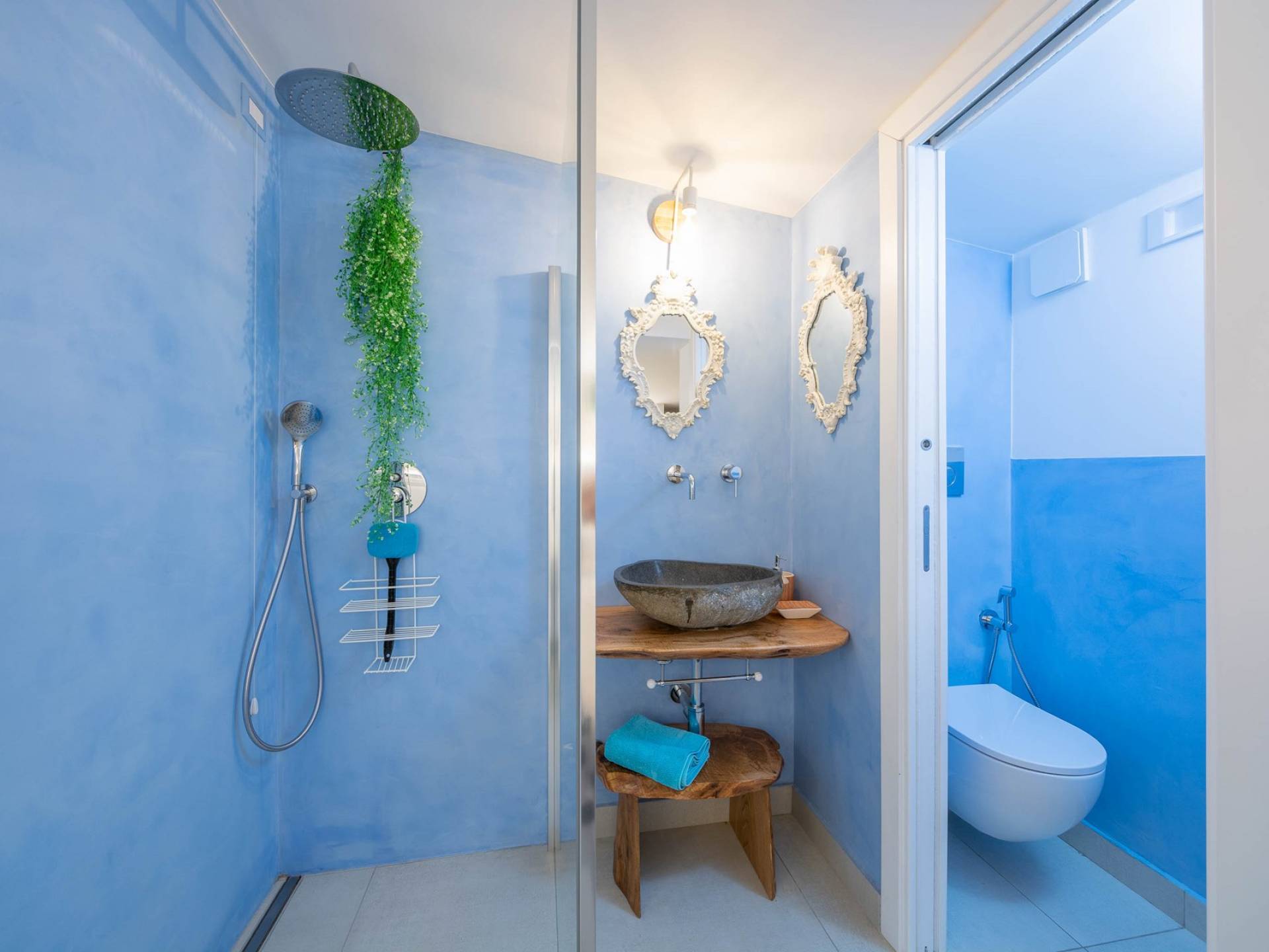 Der Innenraum, ebenfalls auf mehreren Ebenen, ist in den Felsen eingebaut und verfügt über ein elegantes Wohnzimmer mit Wohnzimmer, das ebenfalls mit einem Holzofen ausgestattet ist, eine voll ausgestattete Küche, zwei Doppelzimmer mit Meerblick, drei Badezimmer mit Farbtherapiedusche und zwei weitere Schlafzimmer. Die Villa bietet bequem Platz für 8 Personen und kann natürlich auch mit dem Auto erreicht werden. Sie bietet die Möglichkeit von zwei bequemen Parkplätzen.