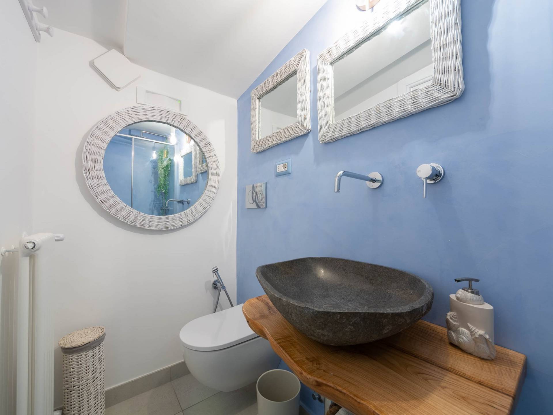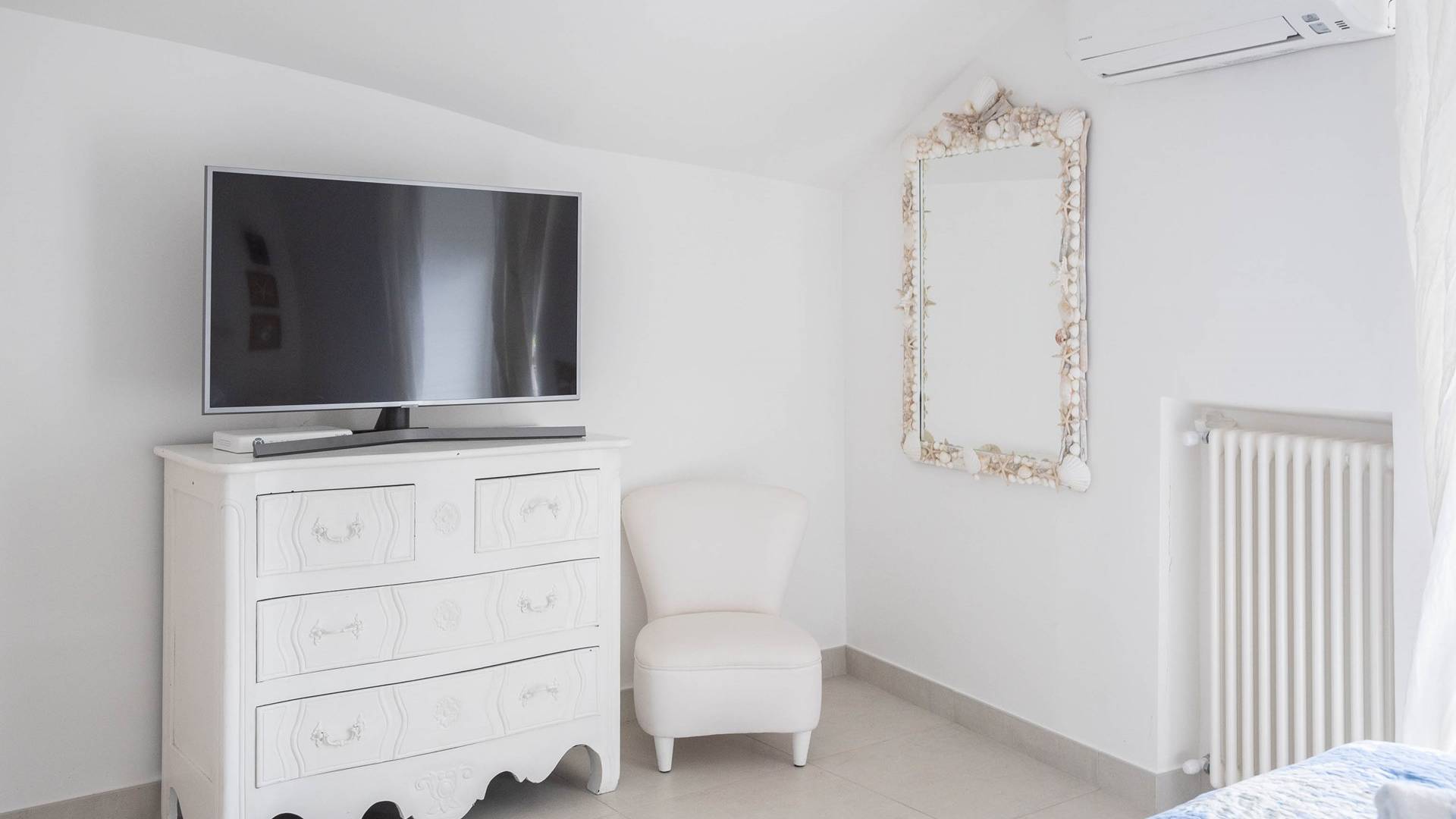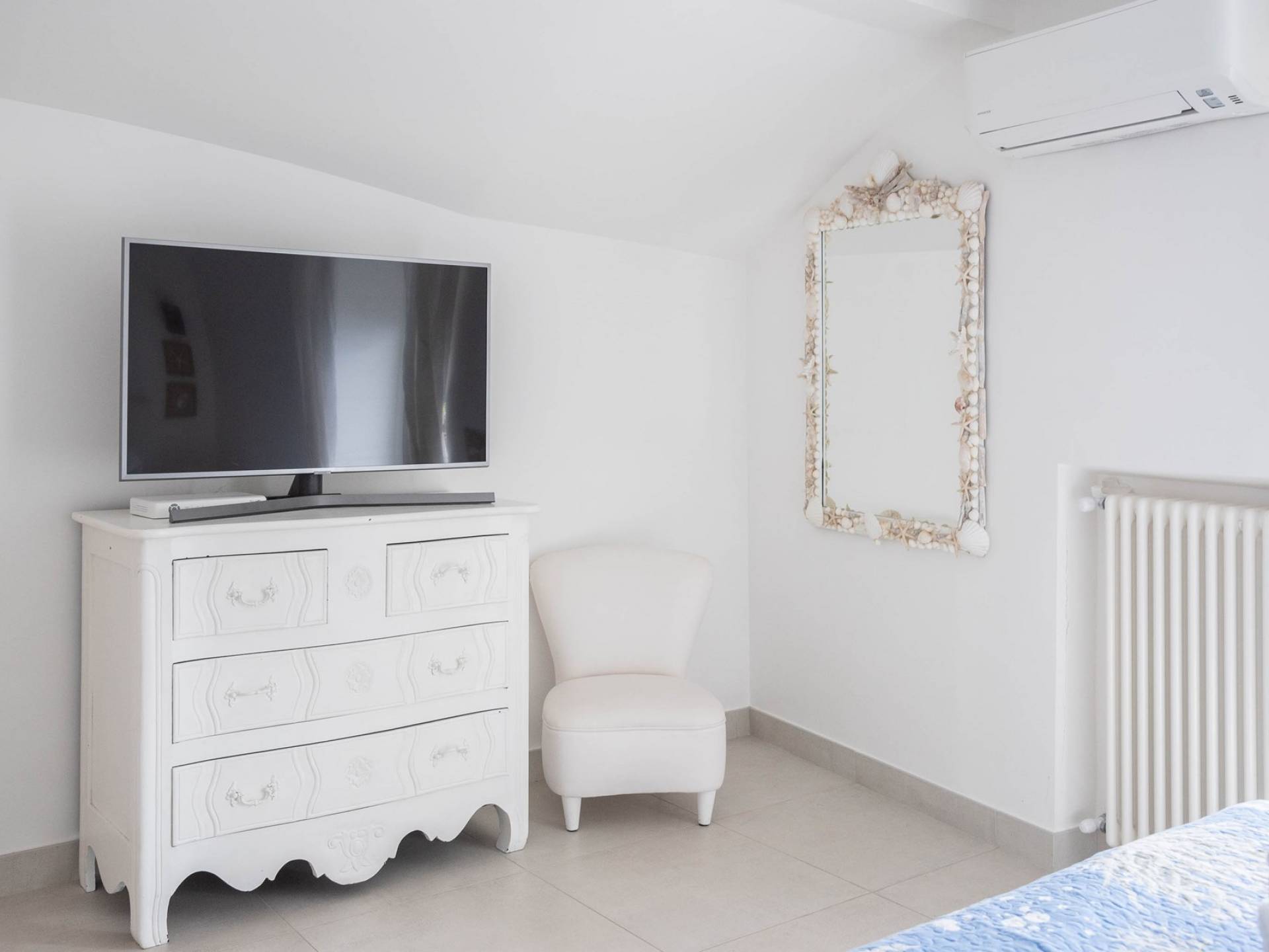 Der Innenraum, ebenfalls auf mehreren Ebenen, ist in den Felsen eingebaut und verfügt über ein elegantes Wohnzimmer mit Wohnzimmer, das ebenfalls mit einem Holzofen ausgestattet ist, eine voll ausgestattete Küche, zwei Doppelzimmer mit Meerblick, drei Badezimmer mit Farbtherapiedusche und zwei weitere Schlafzimmer. Die Villa bietet bequem Platz für 8 Personen und kann natürlich auch mit dem Auto erreicht werden. Sie bietet die Möglichkeit von zwei bequemen Parkplätzen.