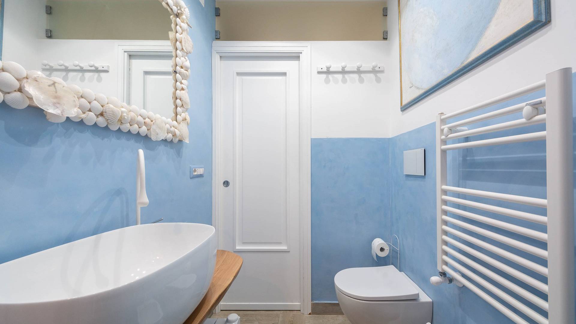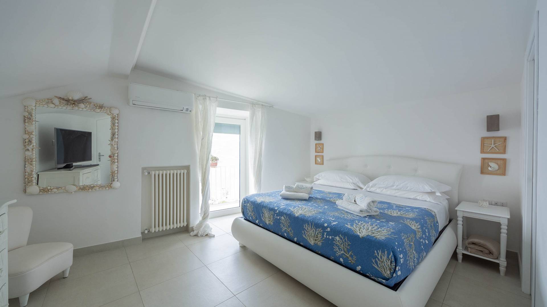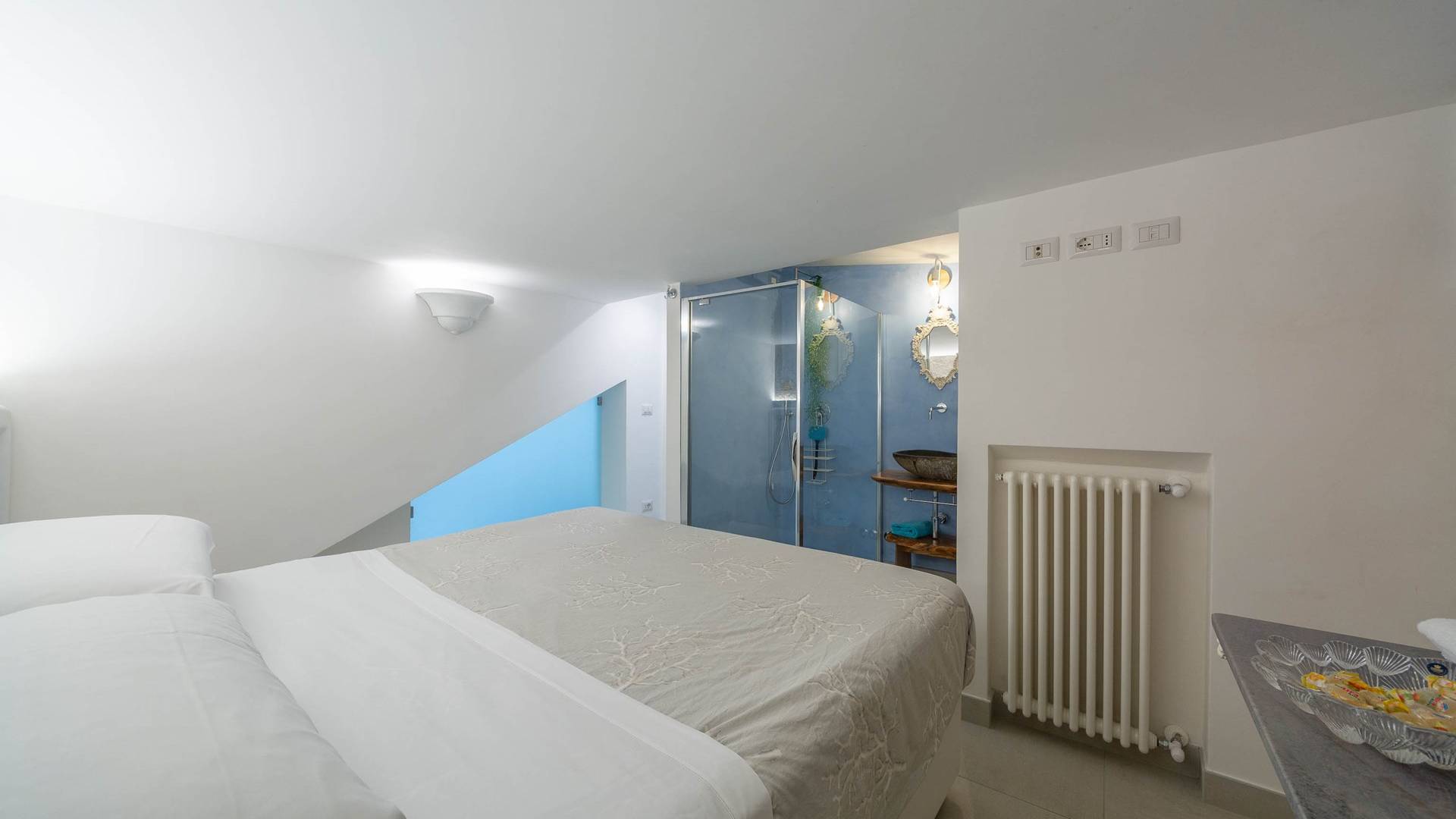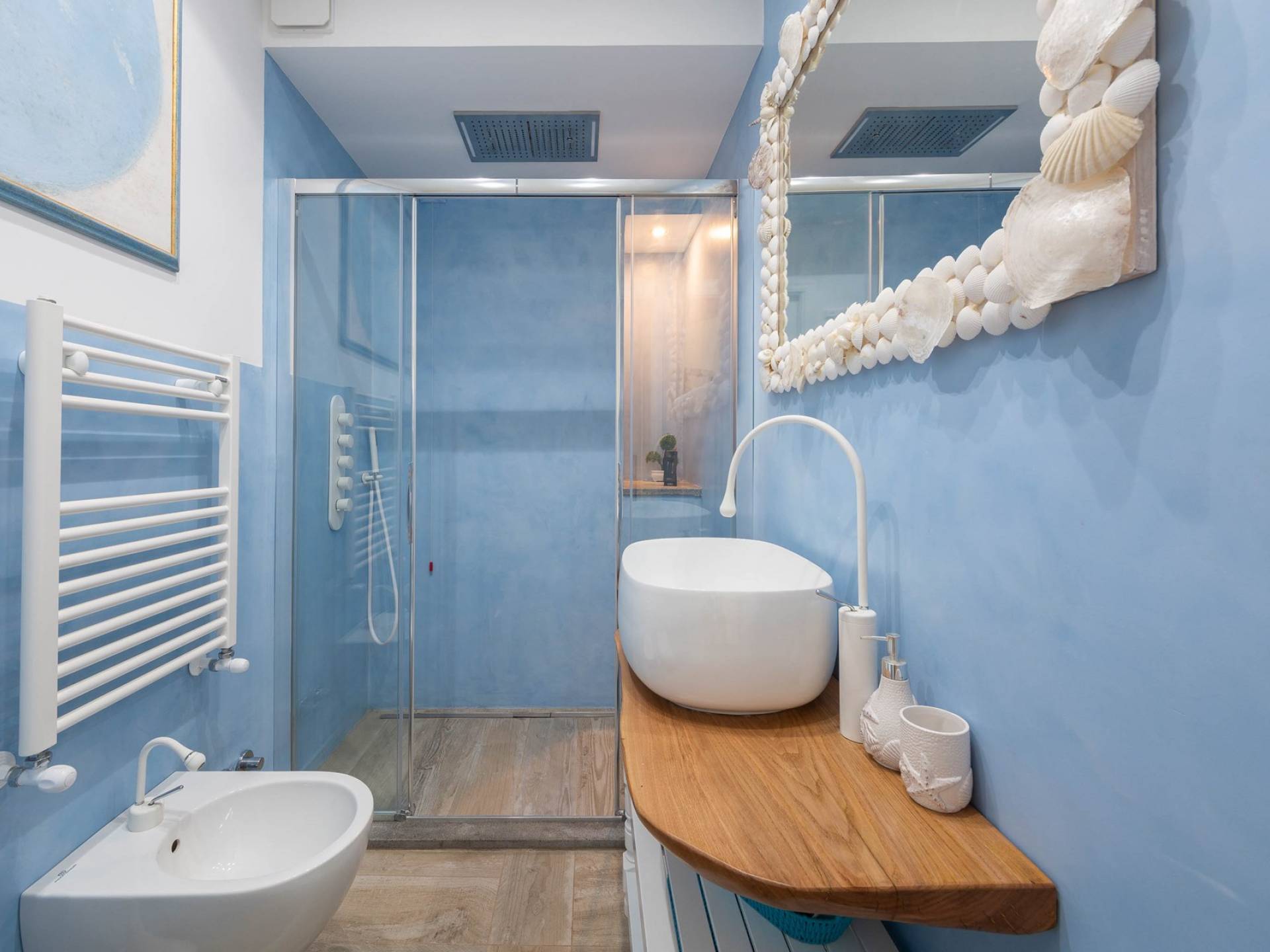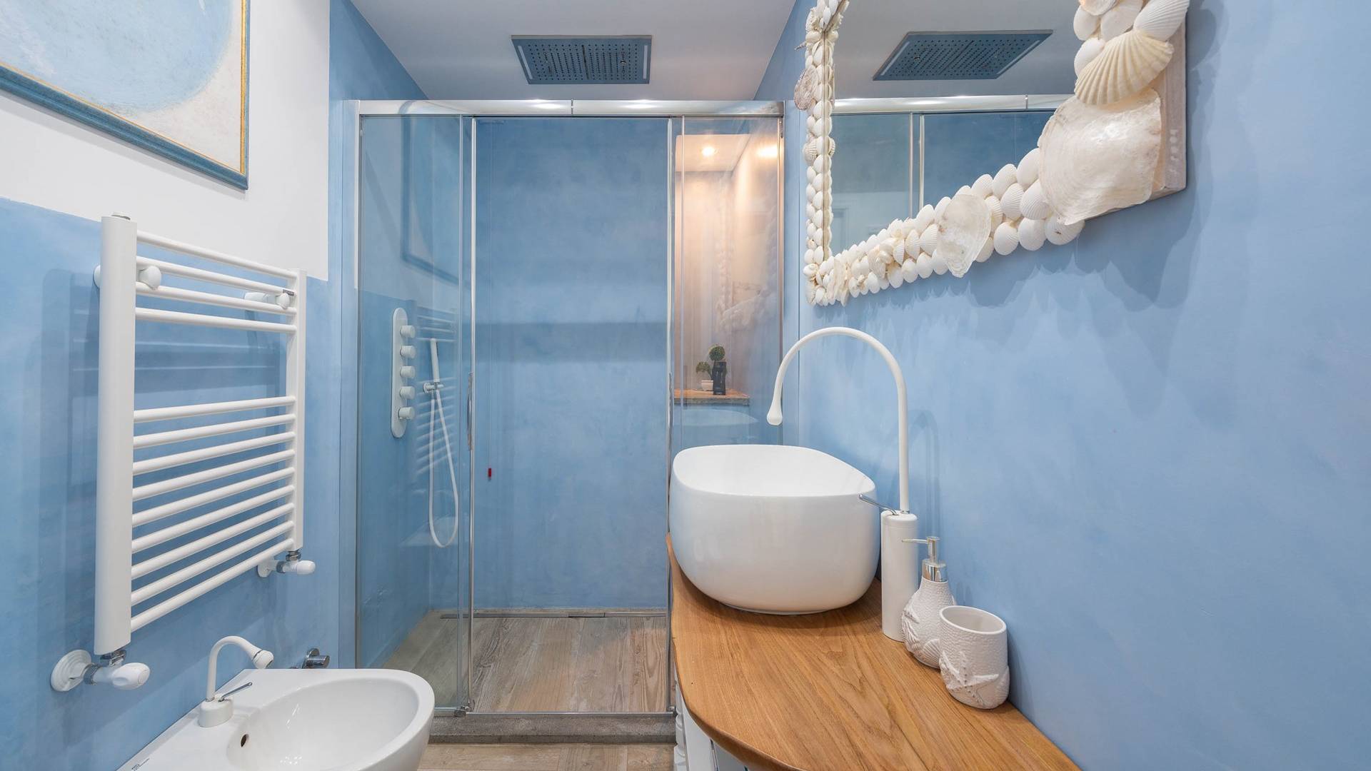 Siebenundachtzig Schritte zum Himmel. Die Treppe, die Sie zur Villa Mare Blu Maiori führt, lässt Sie am blauen Himmel spazieren, während das Plätschern der Wellen Ihre Füße kitzelt.