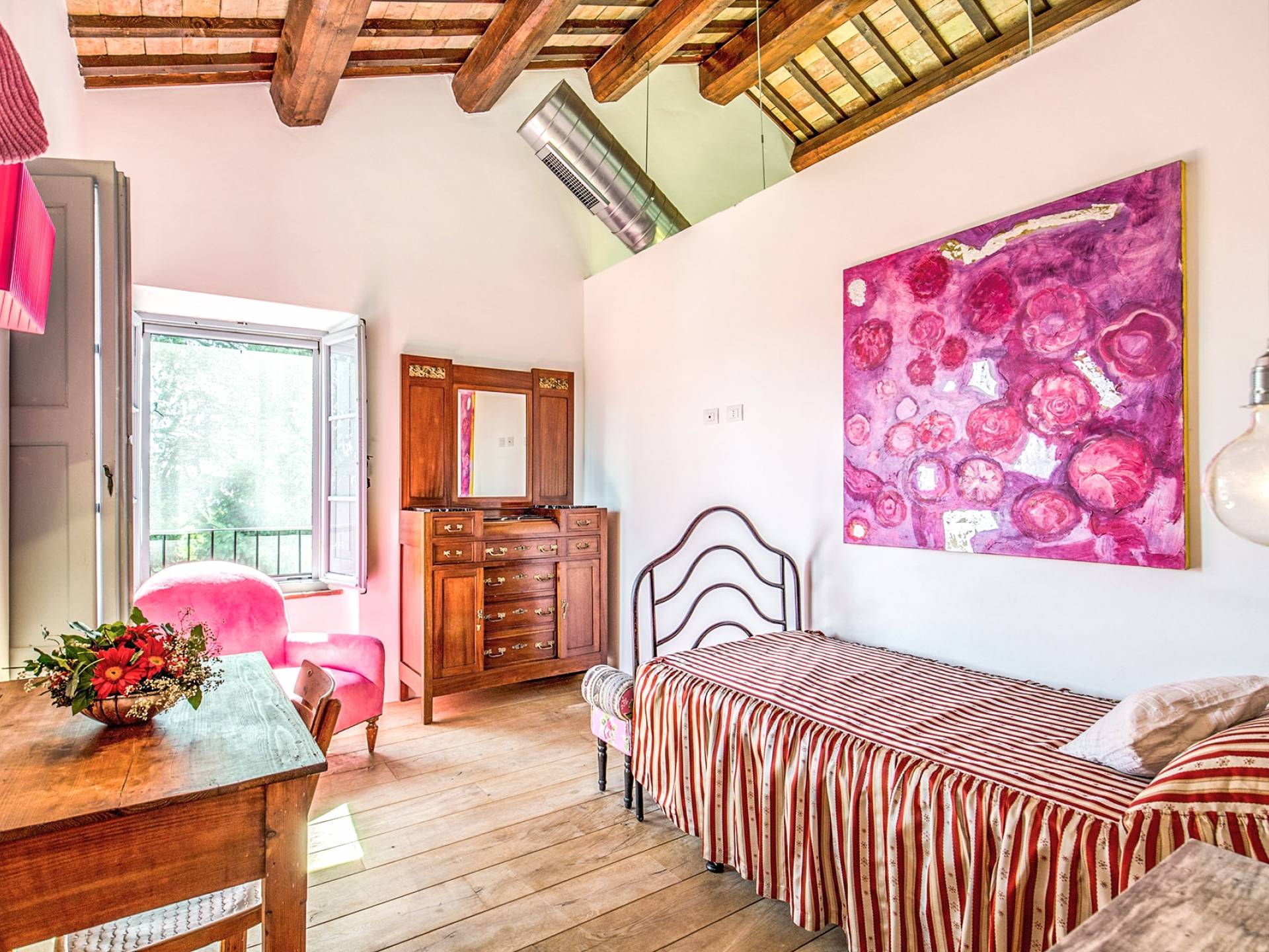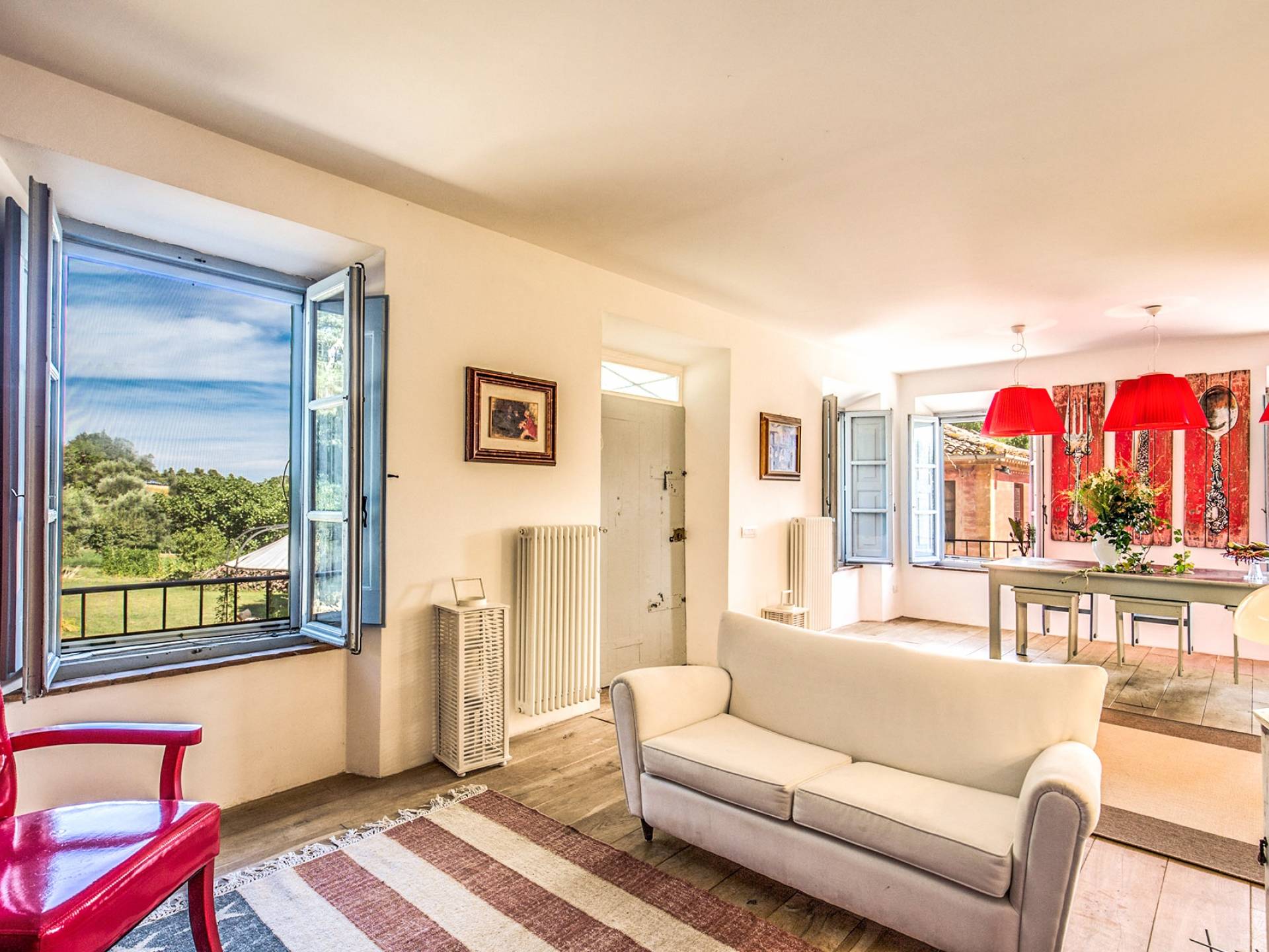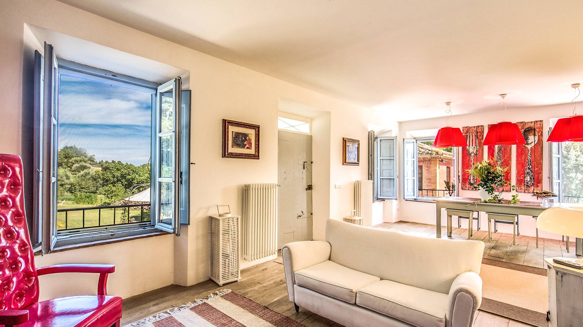 Das Haus ist Teil eines Anwesens von ca. 3 Hektar, teilweise mit Weizen besät, wo sich auch ein eindrucksvoller Olivenhain befindet. Die Villa Benedetta wurde vor kurzem komplett restauriert und sieht aus, wie sie im neunzehnten Jahrhundert hätte sein sollen, mit großen Fenstern, dem ursprünglichen Terrakottaboden, der Krippe in der Scheune, den Böden des ersten und zweiten Stocks aus Kastanienholz.