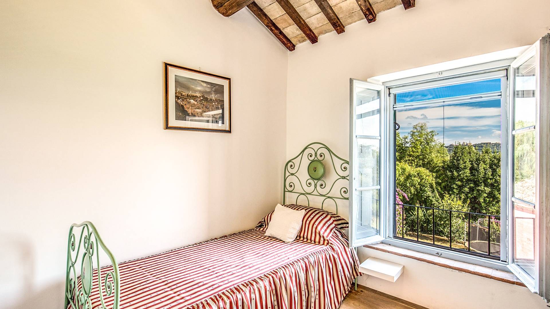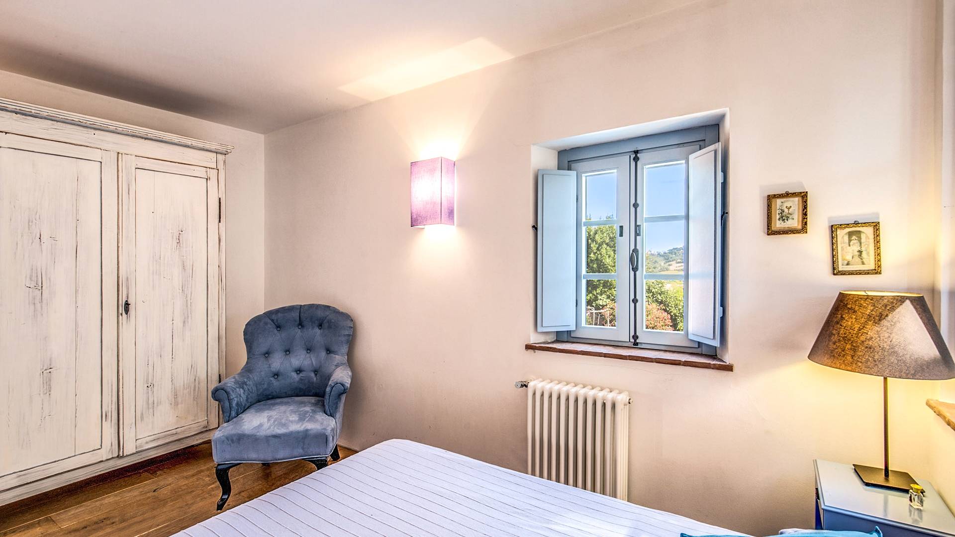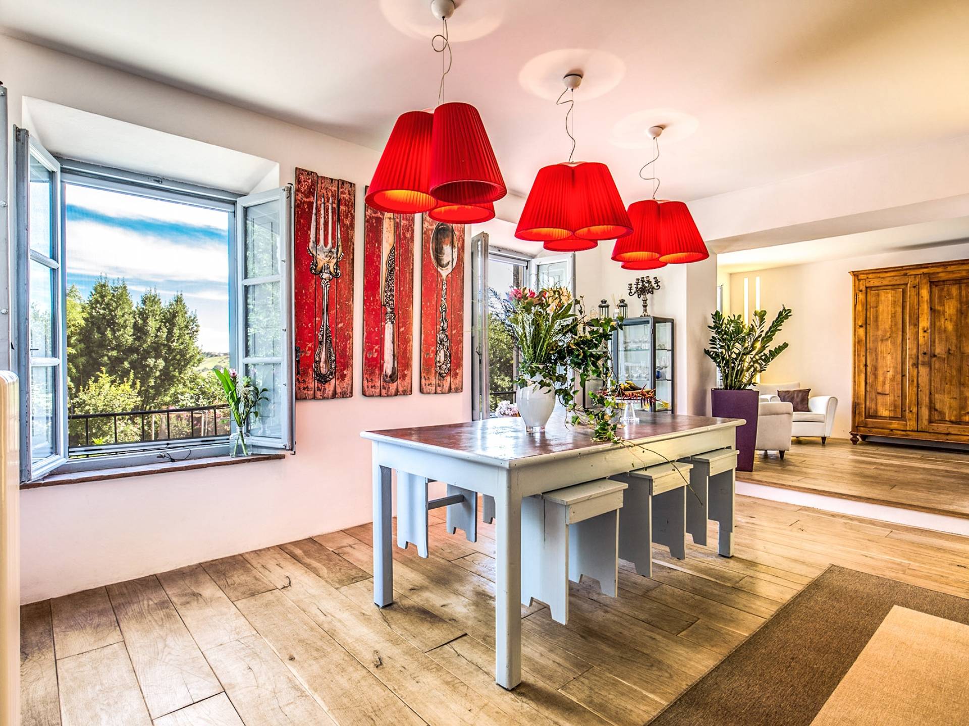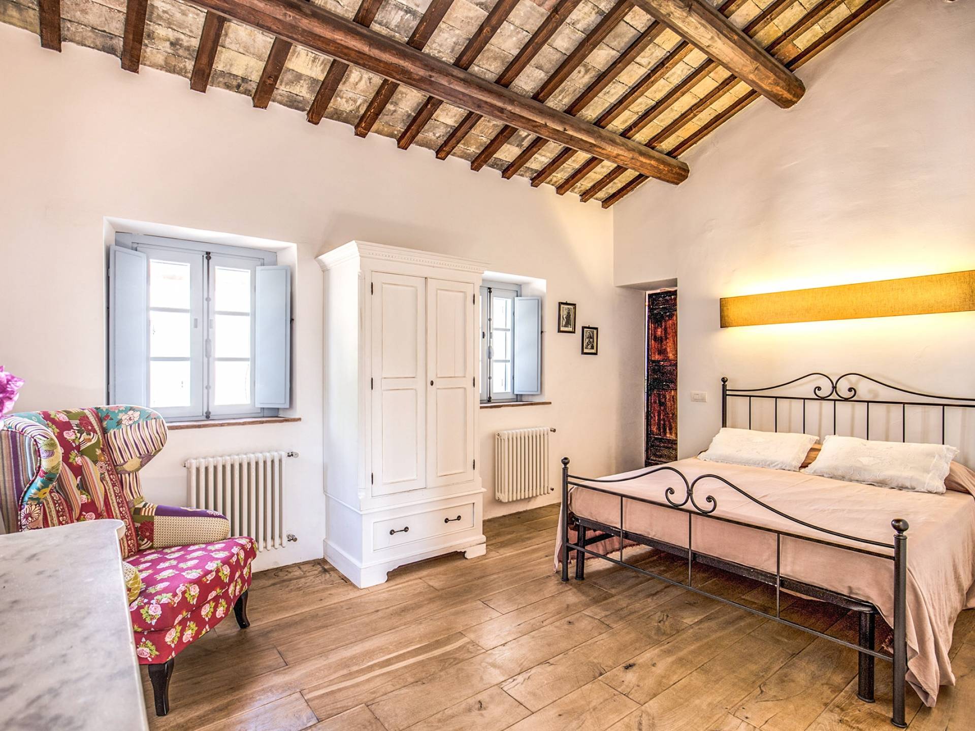 Das Haus ist Teil eines Anwesens von ca. 3 Hektar, teilweise mit Weizen besät, wo sich auch ein eindrucksvoller Olivenhain befindet. Die Villa Benedetta wurde vor kurzem komplett restauriert und sieht aus, wie sie im neunzehnten Jahrhundert hätte sein sollen, mit großen Fenstern, dem ursprünglichen Terrakottaboden, der Krippe in der Scheune, den Böden des ersten und zweiten Stocks aus Kastanienholz.