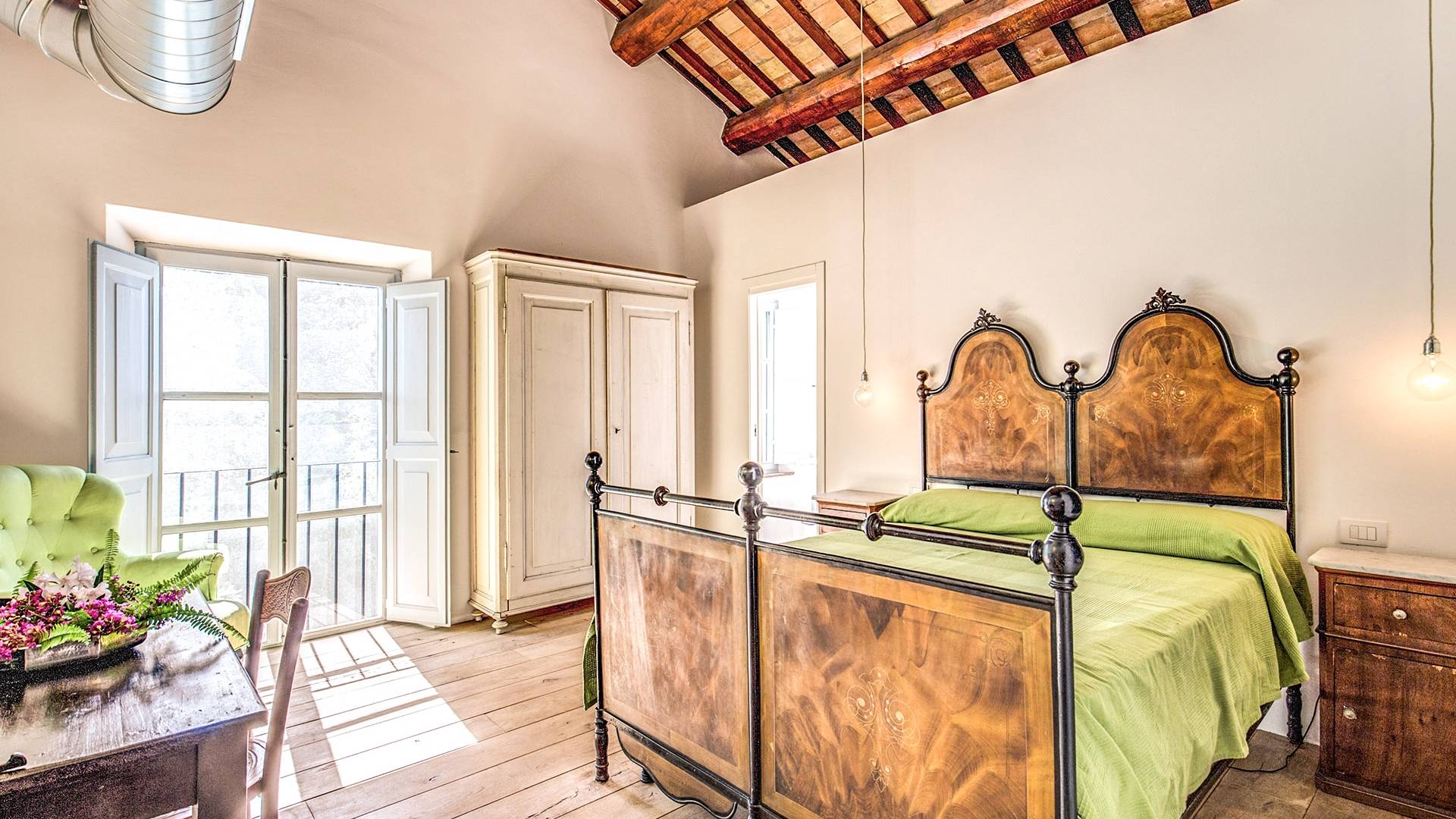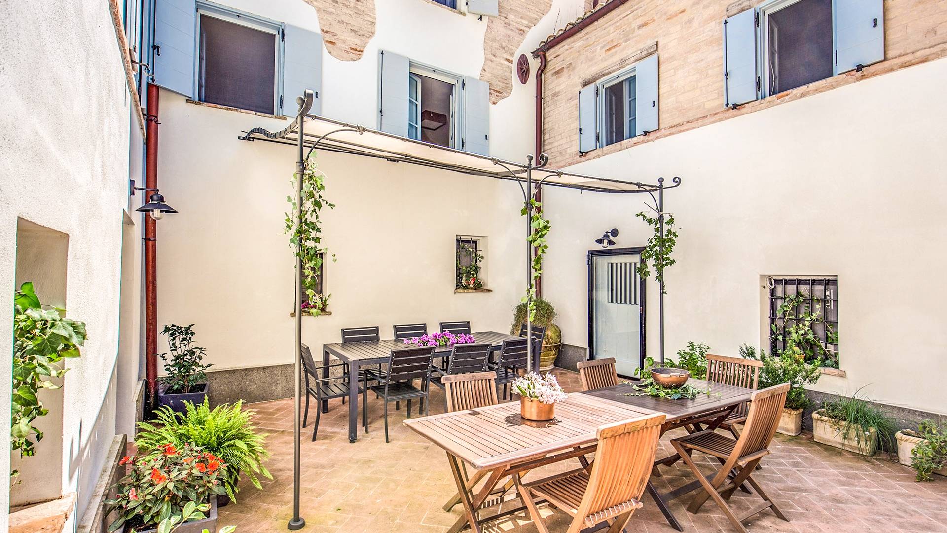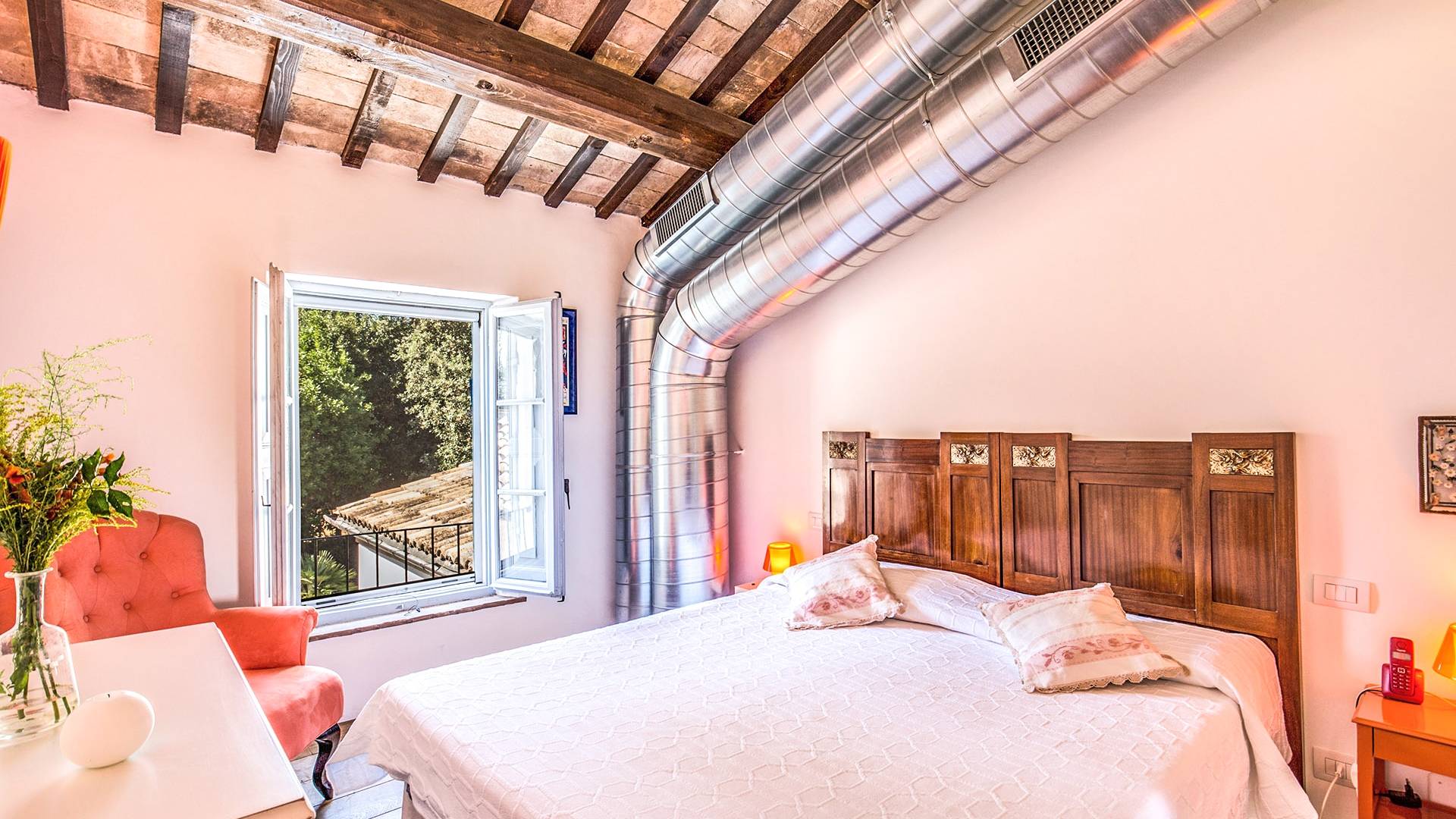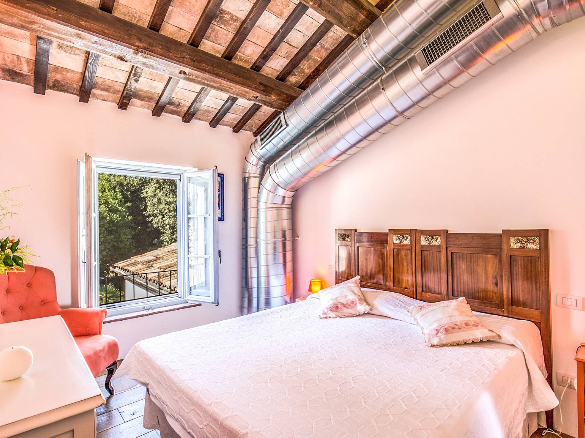 Die Zimmer verfügen über restaurierte Betten aus verschiedenen Epochen der Villa sowie die meisten Möbel. Durch den Zugang vom Erdgeschosseingang befindet man sich vor einer spiralförmigen Betontreppe, die die beiden Etagen mit Brüstungen und Glasbalkon verbindet, das Satteldach mit handgefertigten Terrakotta-Fliesen und Kastanienbalken hat einen Ausblick. Es war einmal ein Sommerhaus. Hier, aus dem Zentrum von Osimo, zog die Familie des adeligen Besitzers, um die kühle Landschaft zu genießen und angenehme Stunden in Gesellschaft von Verwandten und Freunden zu verbringen.