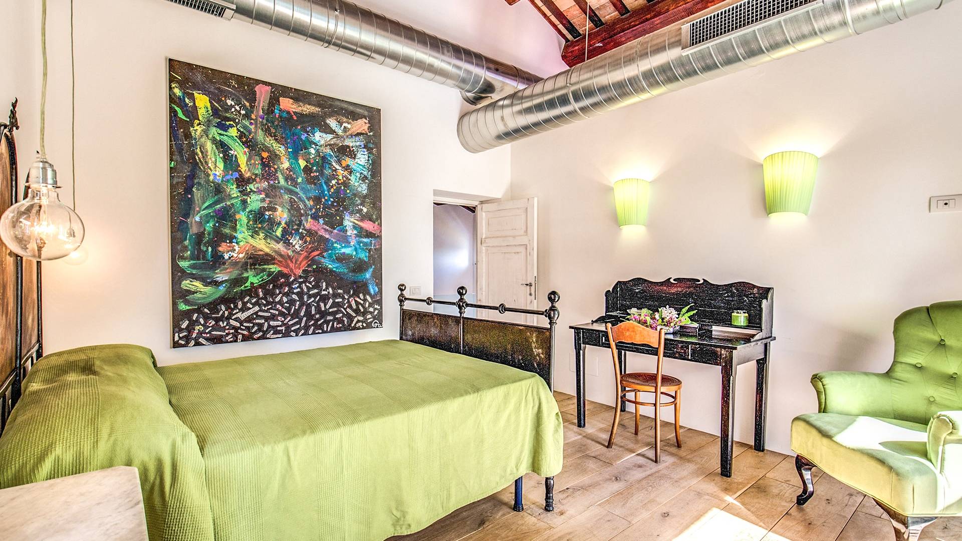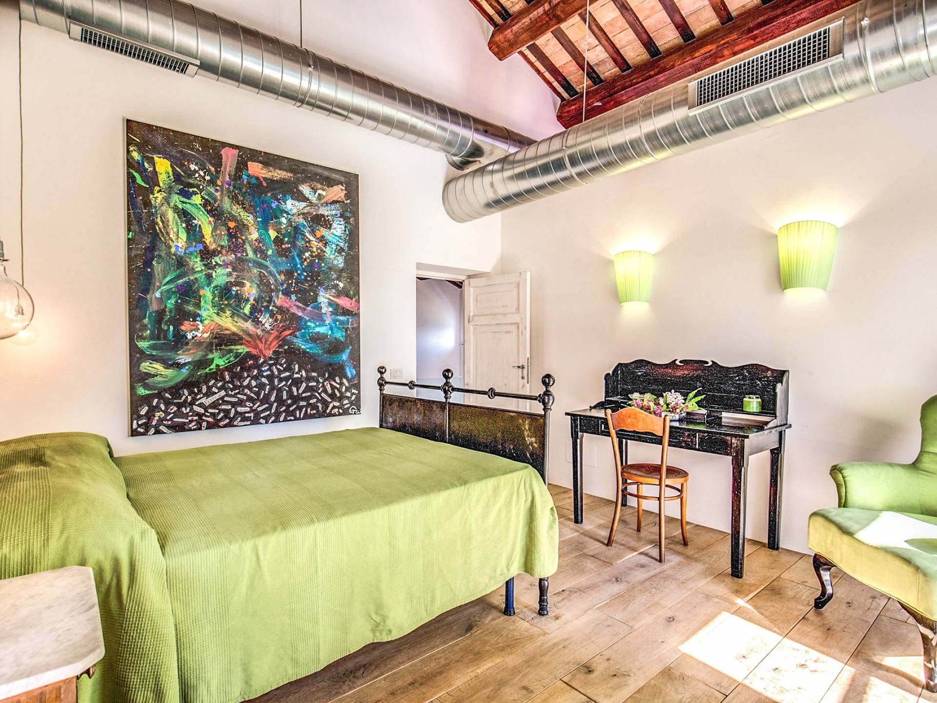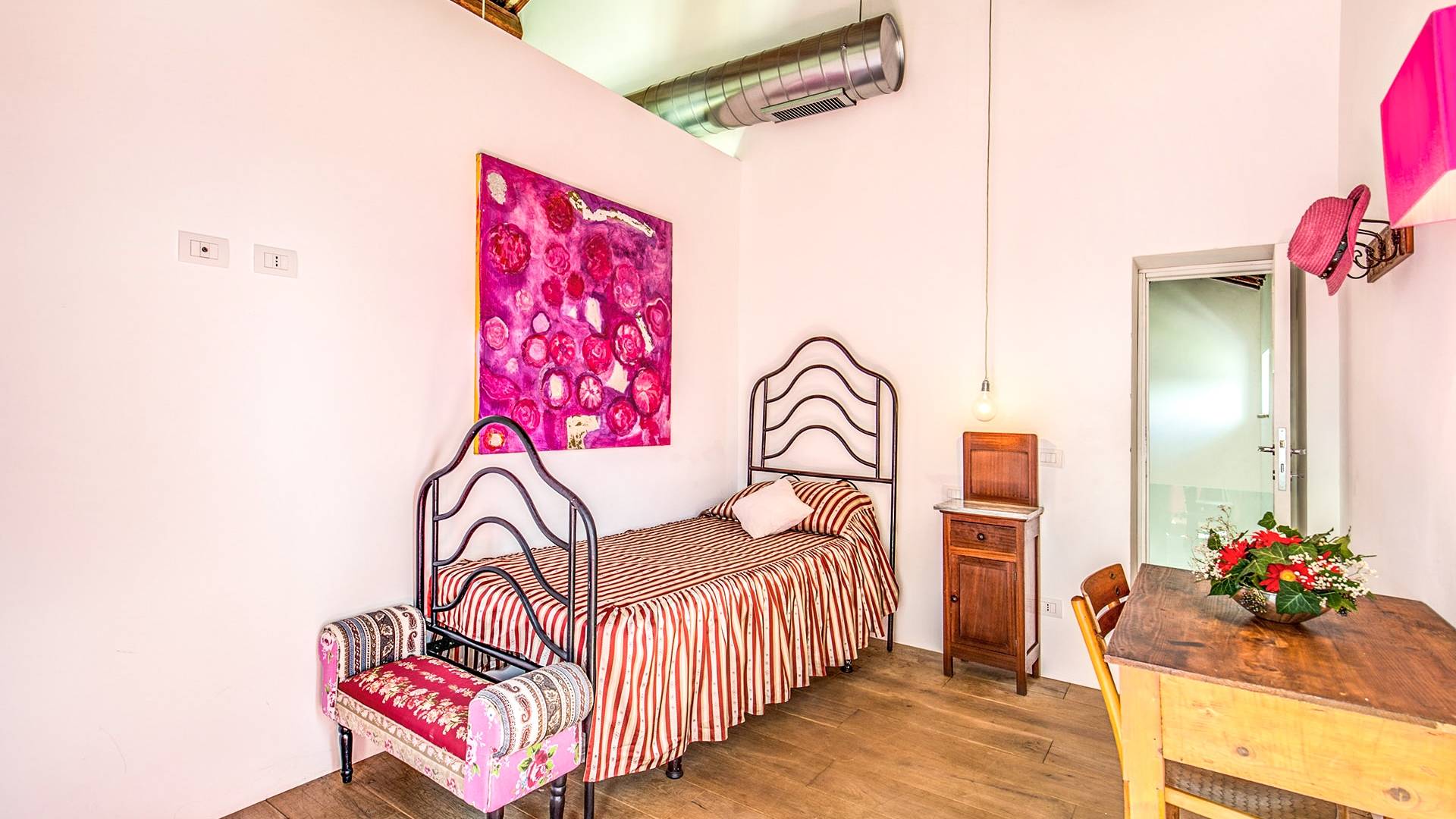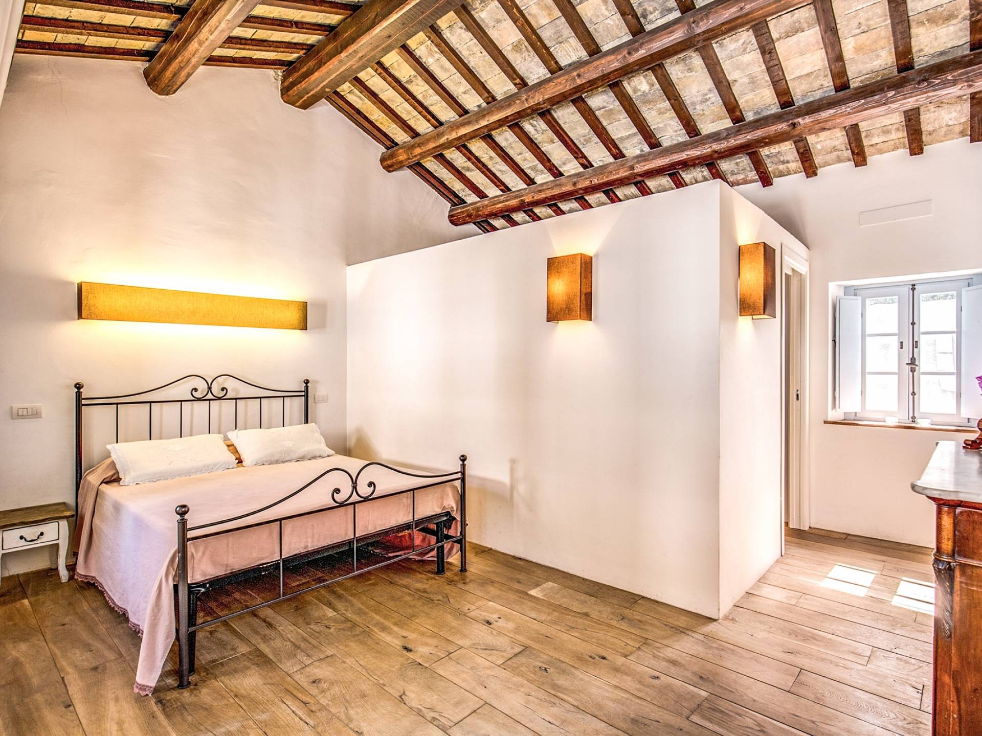 Die Zimmer verfügen über restaurierte Betten aus verschiedenen Epochen der Villa sowie die meisten Möbel. Durch den Zugang vom Erdgeschosseingang befindet man sich vor einer spiralförmigen Betontreppe, die die beiden Etagen mit Brüstungen und Glasbalkon verbindet, das Satteldach mit handgefertigten Terrakotta-Fliesen und Kastanienbalken hat einen Ausblick. Es war einmal ein Sommerhaus. Hier, aus dem Zentrum von Osimo, zog die Familie des adeligen Besitzers, um die kühle Landschaft zu genießen und angenehme Stunden in Gesellschaft von Verwandten und Freunden zu verbringen.
