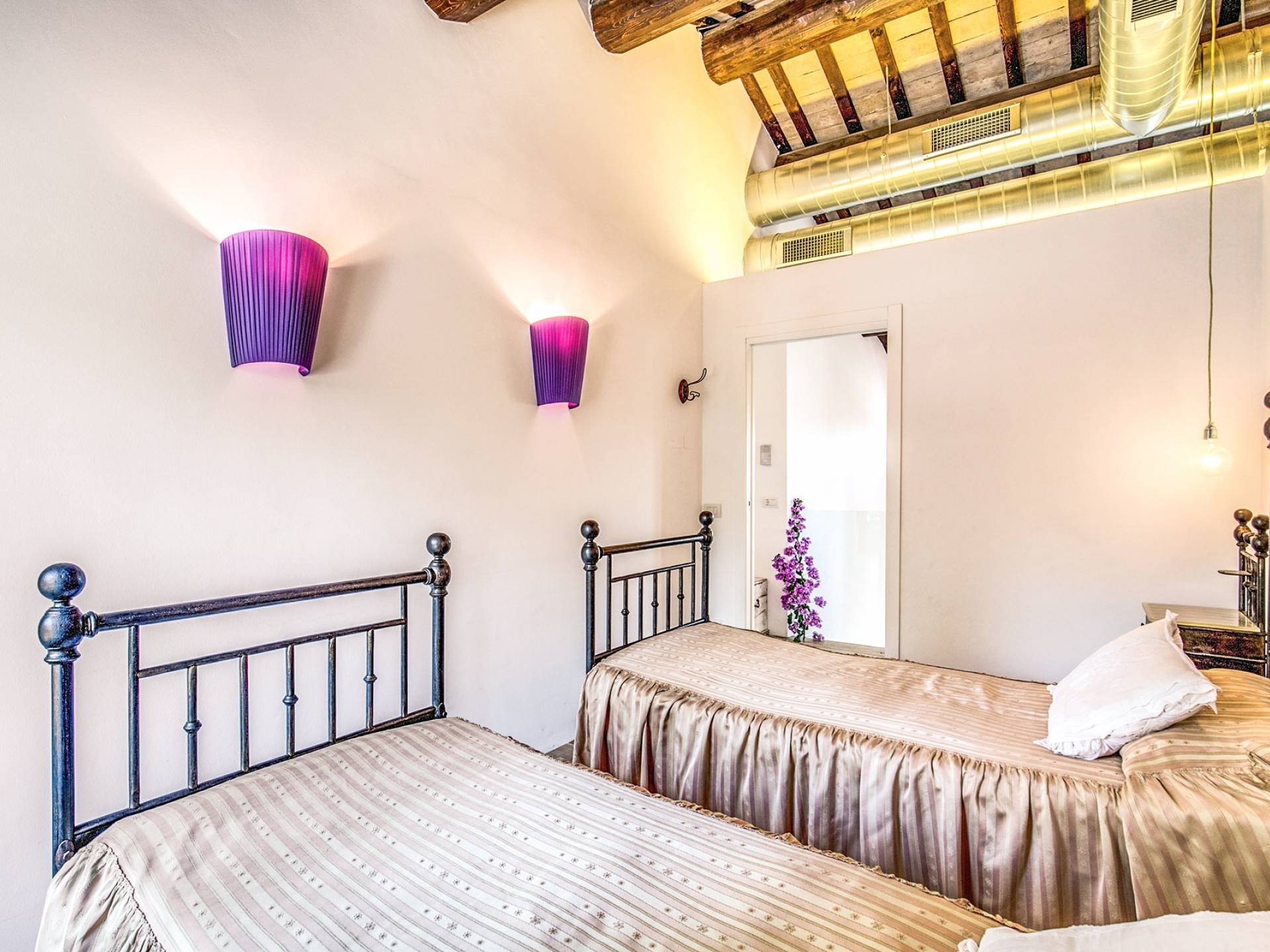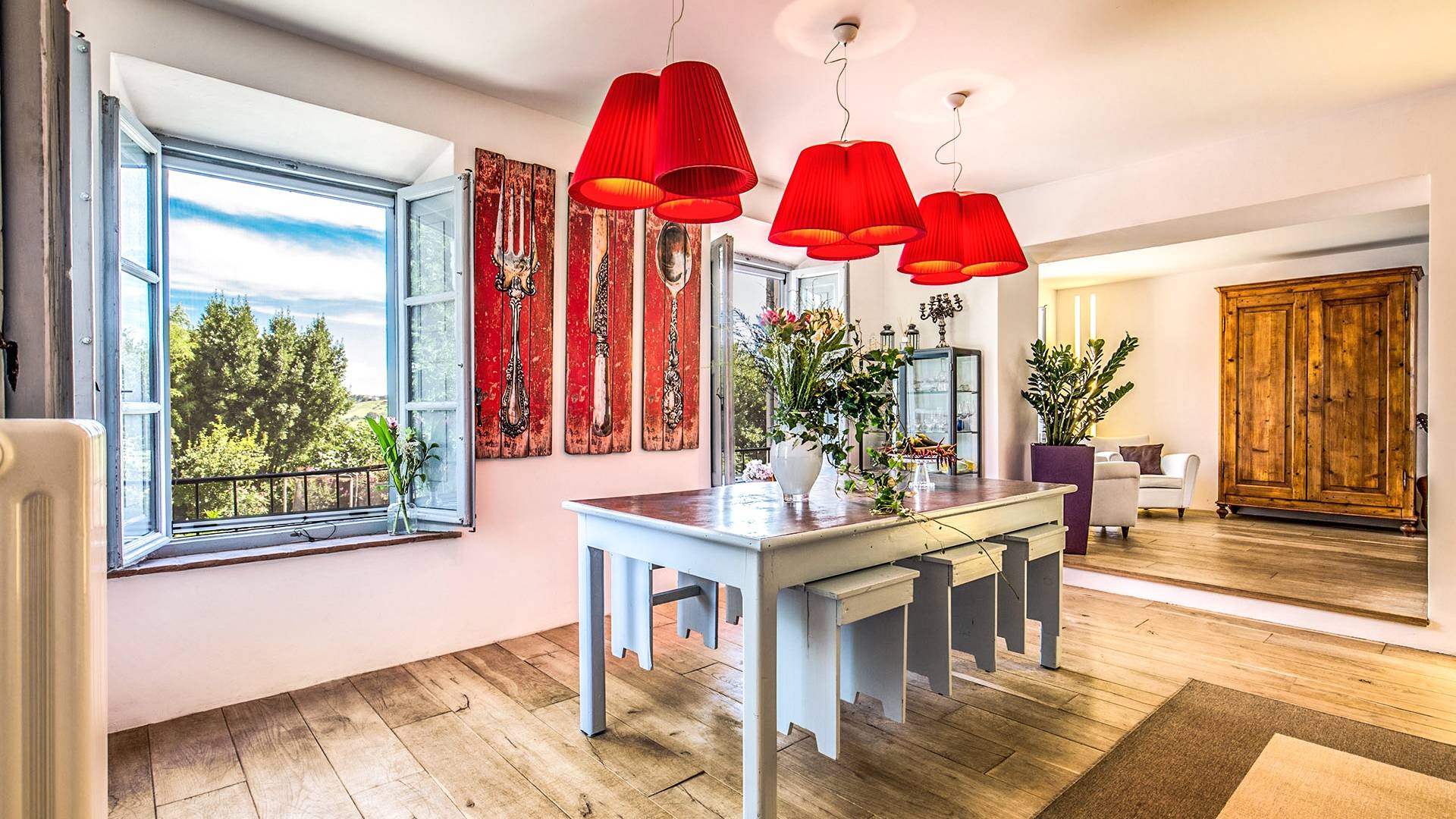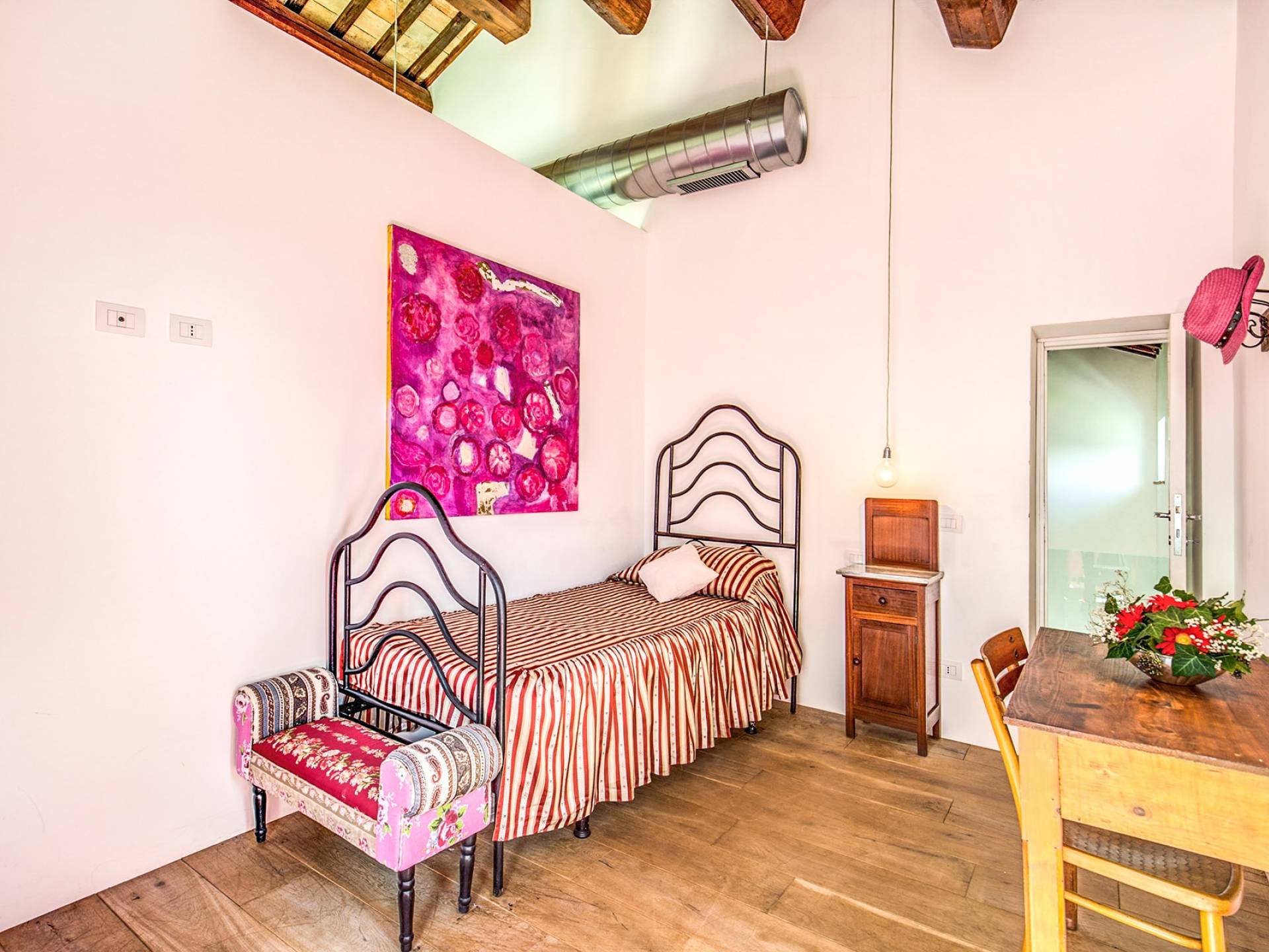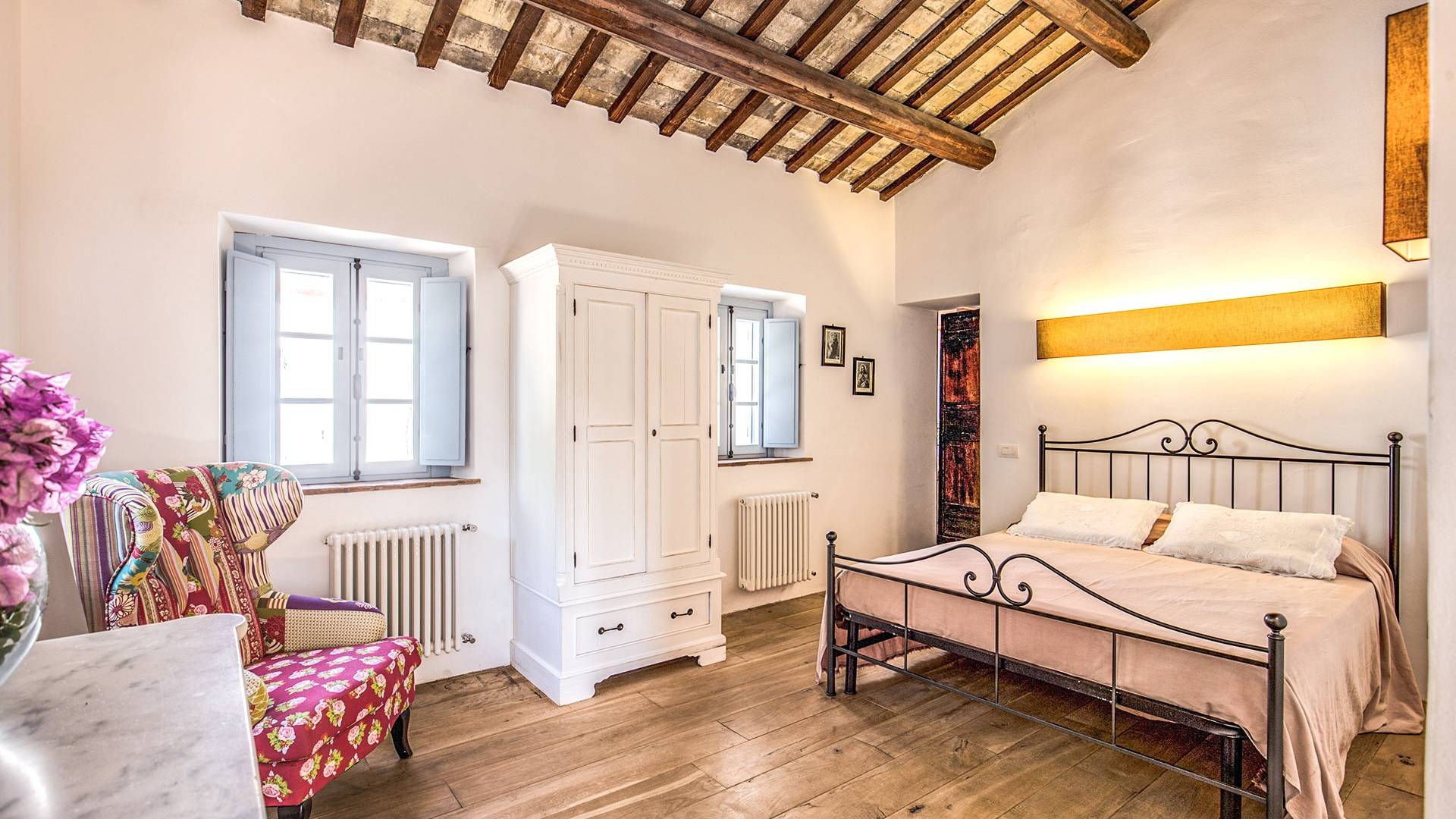 Die Zimmer verfügen über restaurierte Betten aus verschiedenen Epochen der Villa sowie die meisten Möbel. Durch den Zugang vom Erdgeschosseingang befindet man sich vor einer spiralförmigen Betontreppe, die die beiden Etagen mit Brüstungen und Glasbalkon verbindet, das Satteldach mit handgefertigten Terrakotta-Fliesen und Kastanienbalken hat einen Ausblick. Es war einmal ein Sommerhaus. Hier, aus dem Zentrum von Osimo, zog die Familie des adeligen Besitzers, um die kühle Landschaft zu genießen und angenehme Stunden in Gesellschaft von Verwandten und Freunden zu verbringen.