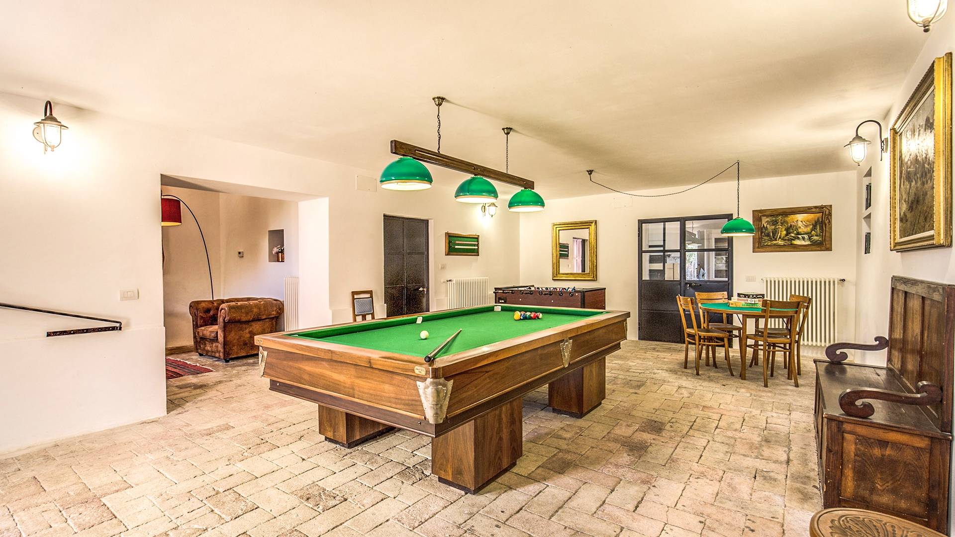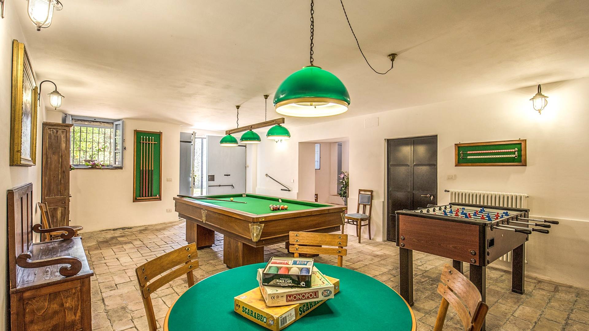 Vom Eingang aus ist der Charme des Ortes magisch. Im Inneren bietet die Villa Platz für bis zu 12 Personen in 7 geräumigen Zimmern, in denen Klassik auf Moderne trifft. Für sonnige Tage gibt es einen großen Garten im Freien mit verschiedenen Bereichen zum Entspannen, um angenehme Lesemomente zu verbringen, aber auch für Partys, Partys und lange Gespräche oder Spaziergänge. Bei Regen können Sie sich jederzeit im Kicker- und Billardraum ablenken oder den Grillplatz nutzen.