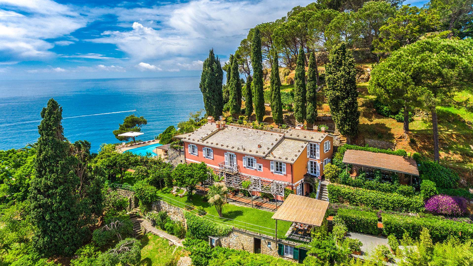 Der Zugang zum Anwesen ist unglaublich unkonventionell, aber fantastisch: Die Gäste wagen sich 200 Meter (656 Fuß) in einen Tunnel, der in den Meeresfelsen von Portofino gebohrt wurde, dann bringt ein Aufzug (Aufzug) die Gäste zum 80 Meter langen Eingangstor (262 Fuß) hoch. Ein Weg durch einen beeindruckenden Garten führt zu dem auf drei Ebenen gebauten Haus (ca. 60 Stufen). Wie es sich für eine Immobilie dieser Größe gehört, wurden die Innenräume durchweg mit großartigen Möbeln exquisit ausgestattet.