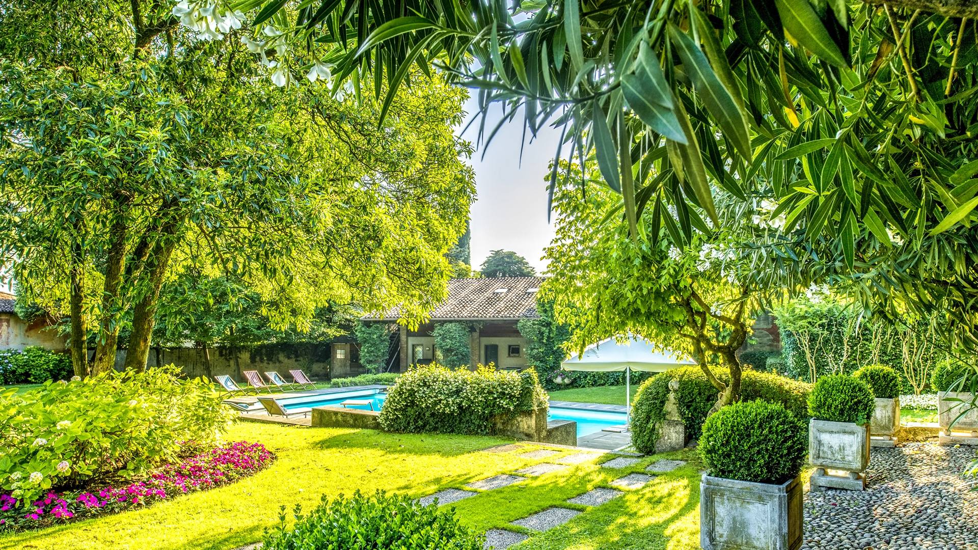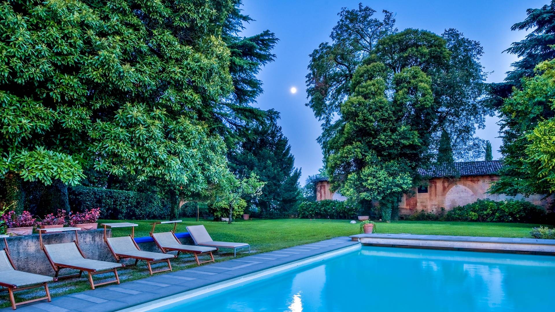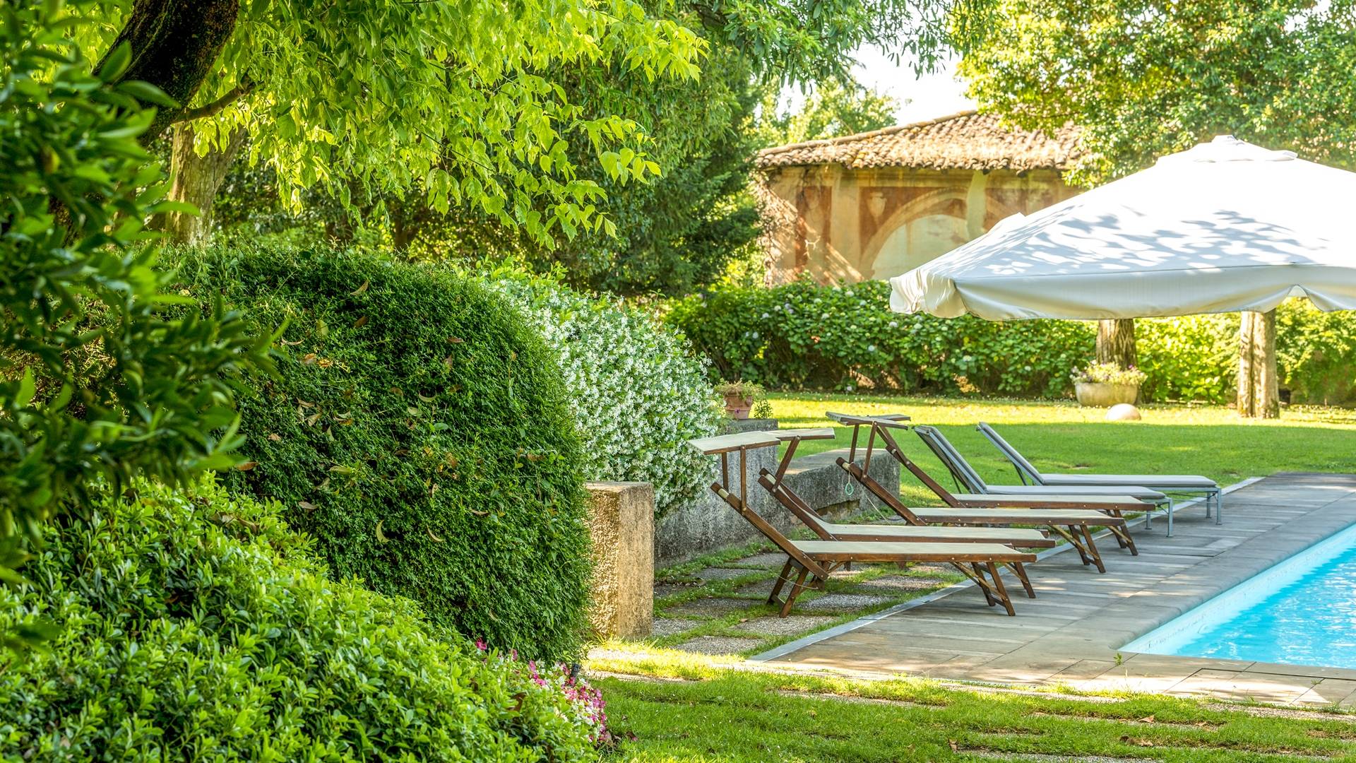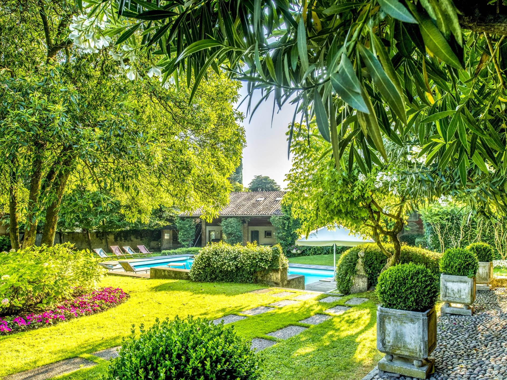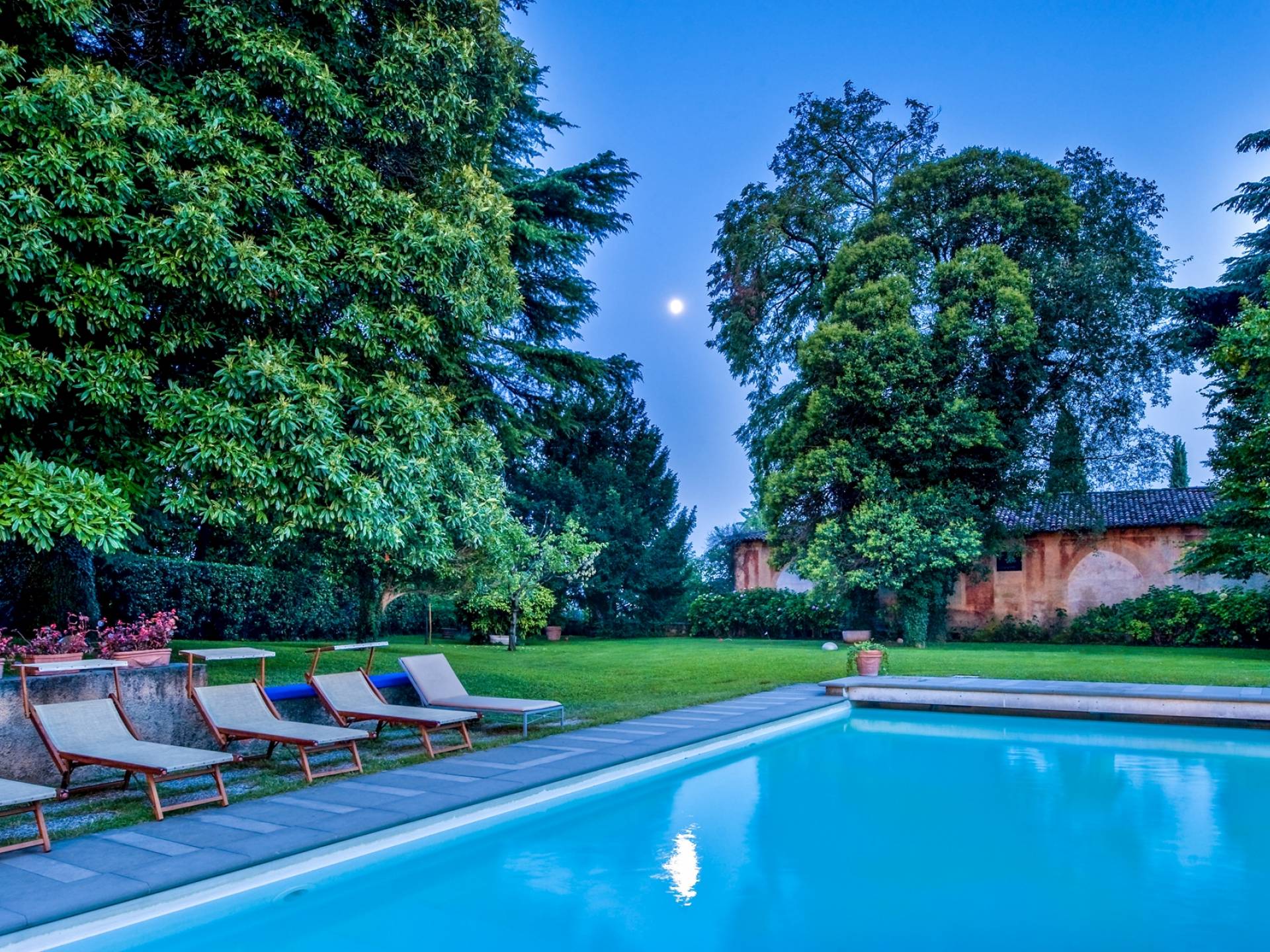 Das Anwesen bietet mehr als 20 Betten in 9 Zimmern, teilweise mit Kamin. Es ist die ideale Lösung für Familien oder Gruppen, die ein paar Tage in einem Haus verbringen möchten, das aufgrund seiner Größe den Vorteil hat, absolute Privatsphäre zu garantieren, ohne auf alle Annehmlichkeiten zu verzichten. Im Inneren werden Sie von fünf großen Zimmern mit Blick auf die gut ausgestattete Küche, die zwei vor dem Garten angeordneten Veranden und den beeindruckenden Pool mit elektrischem Rollladen begrüßt, der für kleine Kinder sicher ist. Angrenzend an den Pool befindet sich der Anbau mit Umkleideraum und Bad. Auf den Freiflächen gibt es mehrere Jahrhunderte alte Bäume, im Schatten finden Sie auch eine Spielecke für die Kleinen mit Tischtennis und Tischfußball sowie einen Grillplatz für ruhige Grillabende mit Freunden oder für den Firmenbrunch.