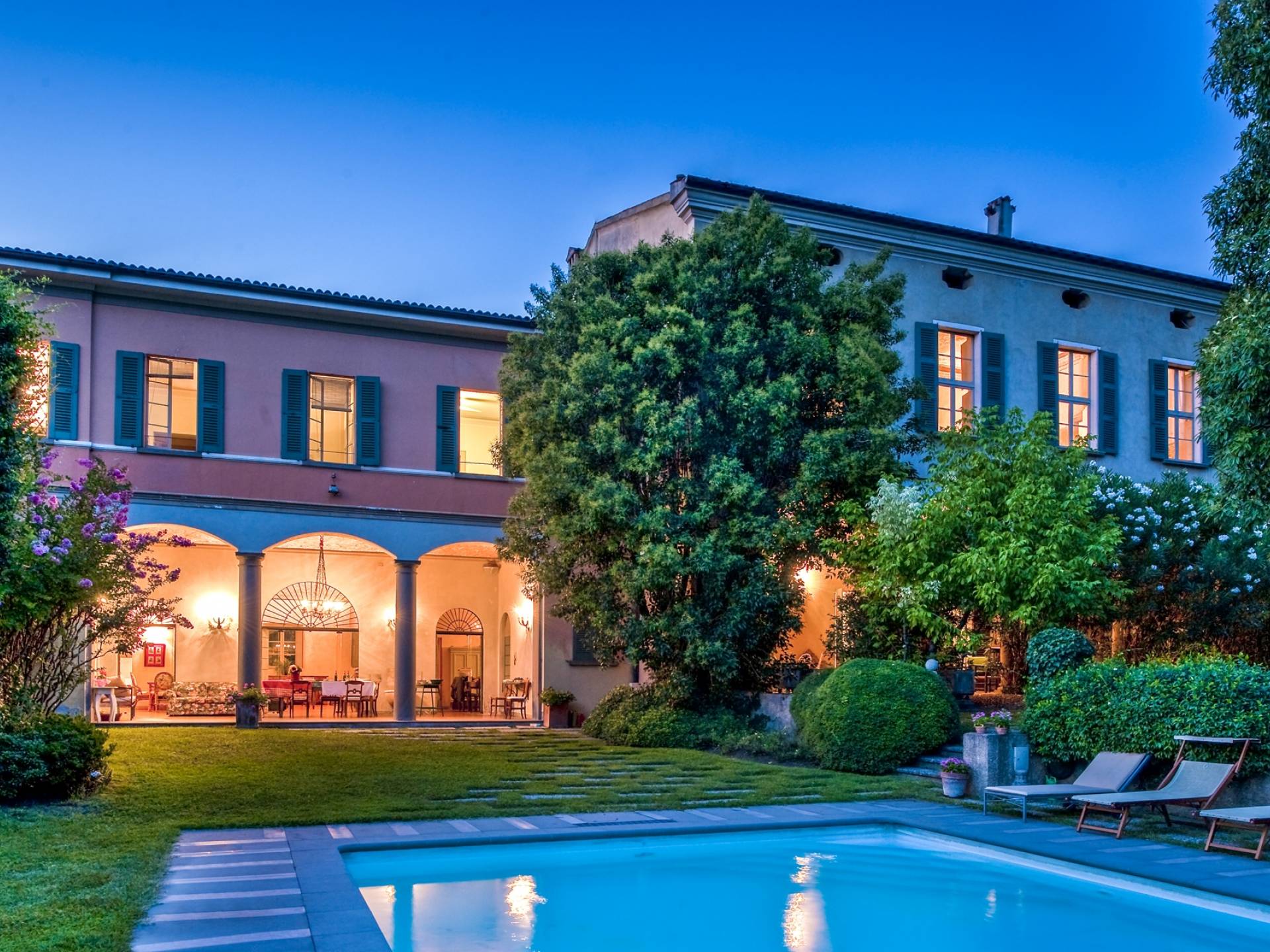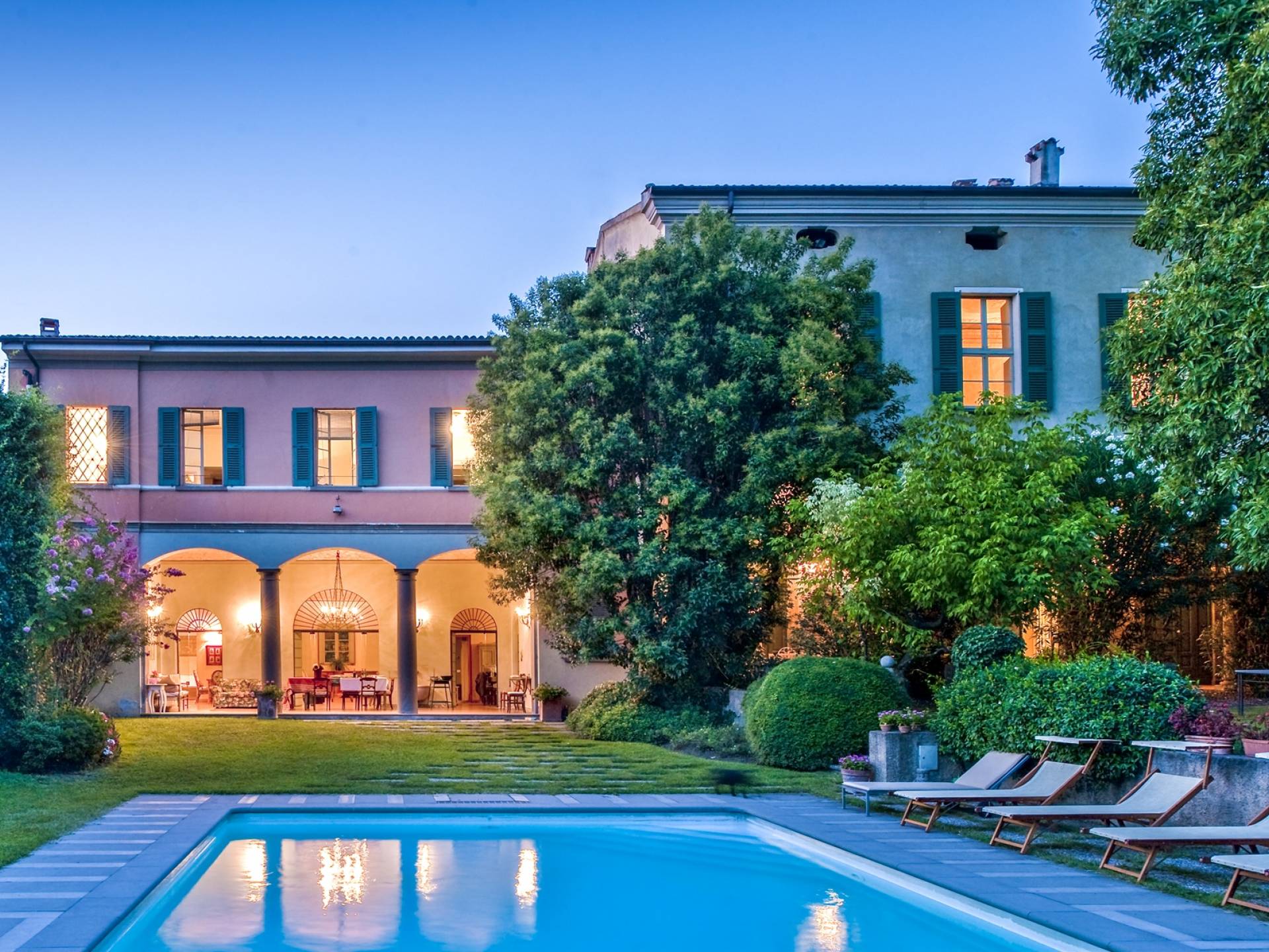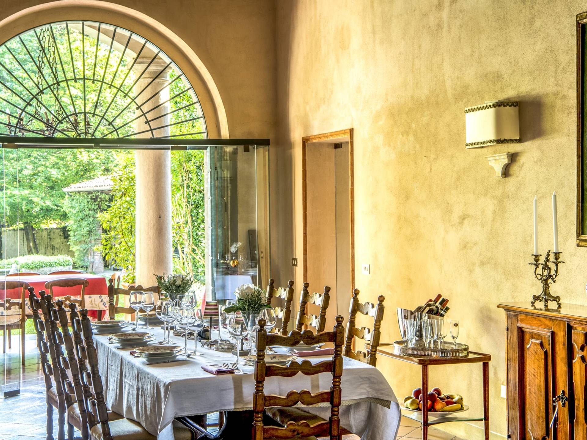 Die Innenräume sind unglaublich charmant, mit tonnengewölbten Ziegeldecken in einigen Zimmern, Ziegelböden und Fresken in den Zimmern. Stilmöbel, Lampen und Vorhänge vervollständigen die Innenausstattung dieses zeitlosen Ortes, der nachts erleuchtet, damit sich auch die zurückhaltendsten Gäste wie zu Hause fühlen. Franciacorta erwartet Sie rund um die Villa, ein Land voller berühmter Weinberge und Kellereien. Die Stadt Brescia ist nur wenige Kilometer entfernt. Verpassen Sie nicht einen Besuch des historischen Zentrums mit der alten Kathedrale, dem Broletto, dem Santa Giulia Museum, der Piazza Del Foro und der Piazza Vittoria. Der Flughafen Bergamo ist etwa dreißig Kilometer entfernt, die Stadt Verona etwa fünfzig Kilometer, die von Mantua weniger als 60 Kilometer, Mailand ist etwa fünfzig Kilometer entfernt.