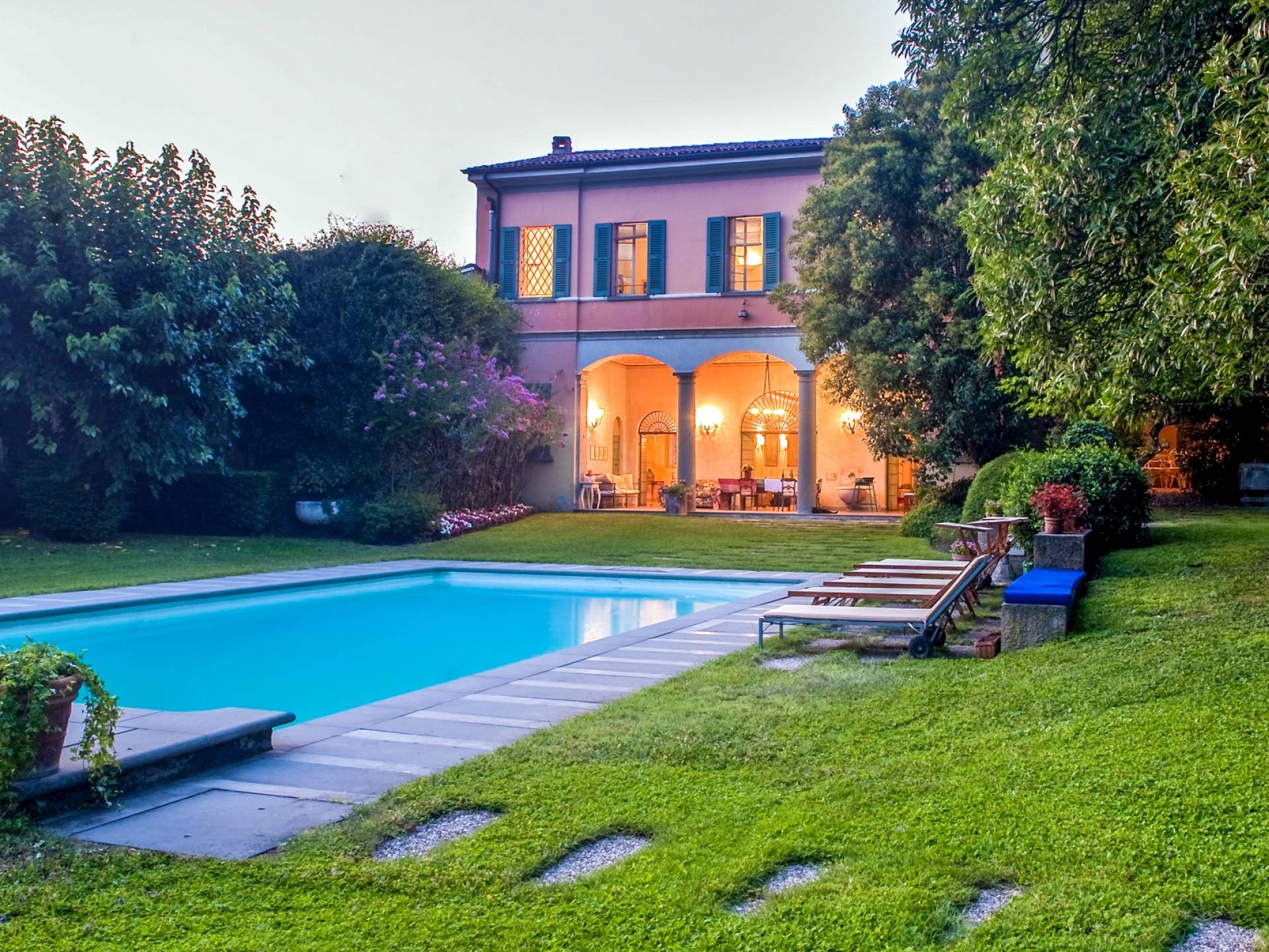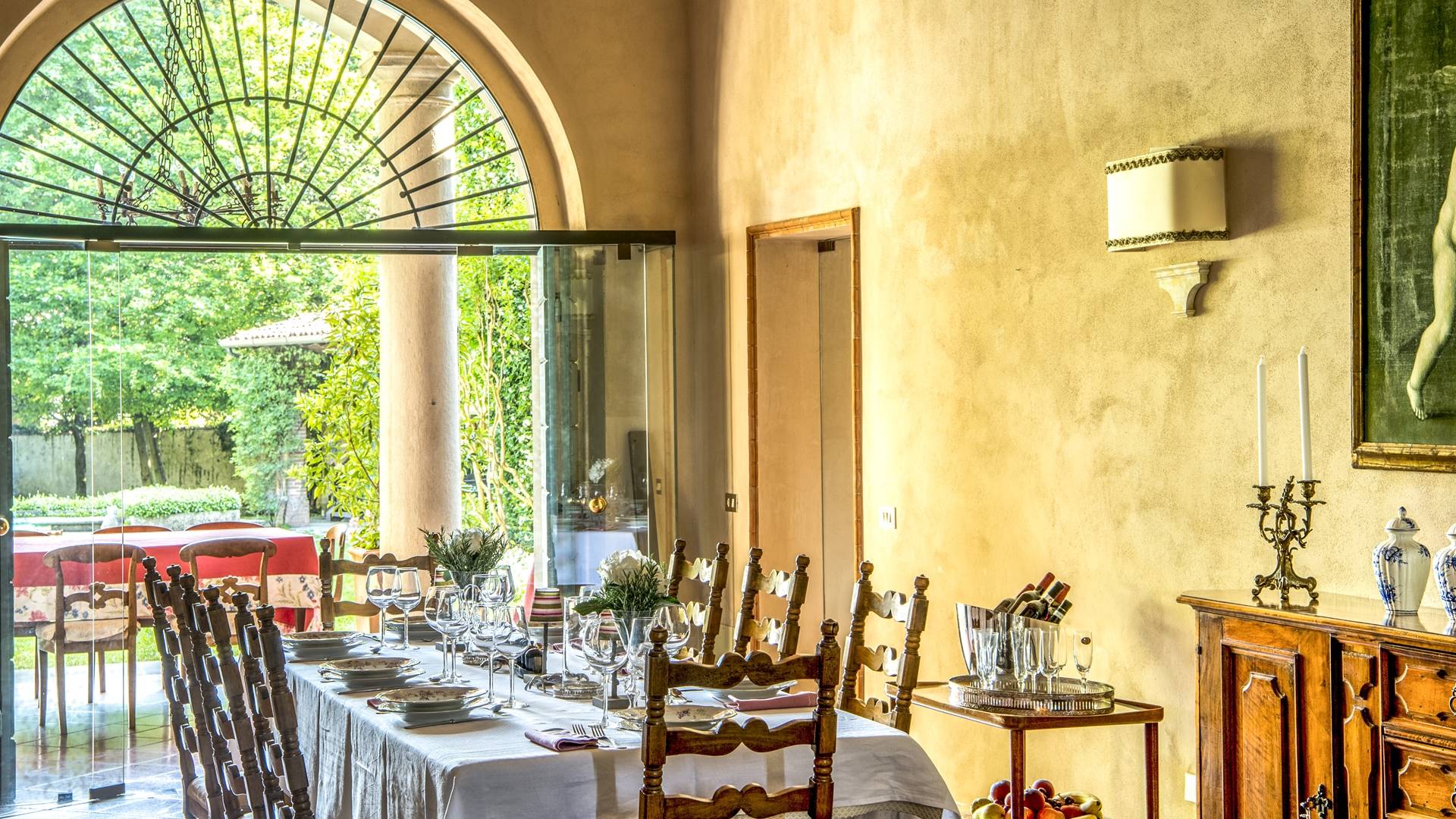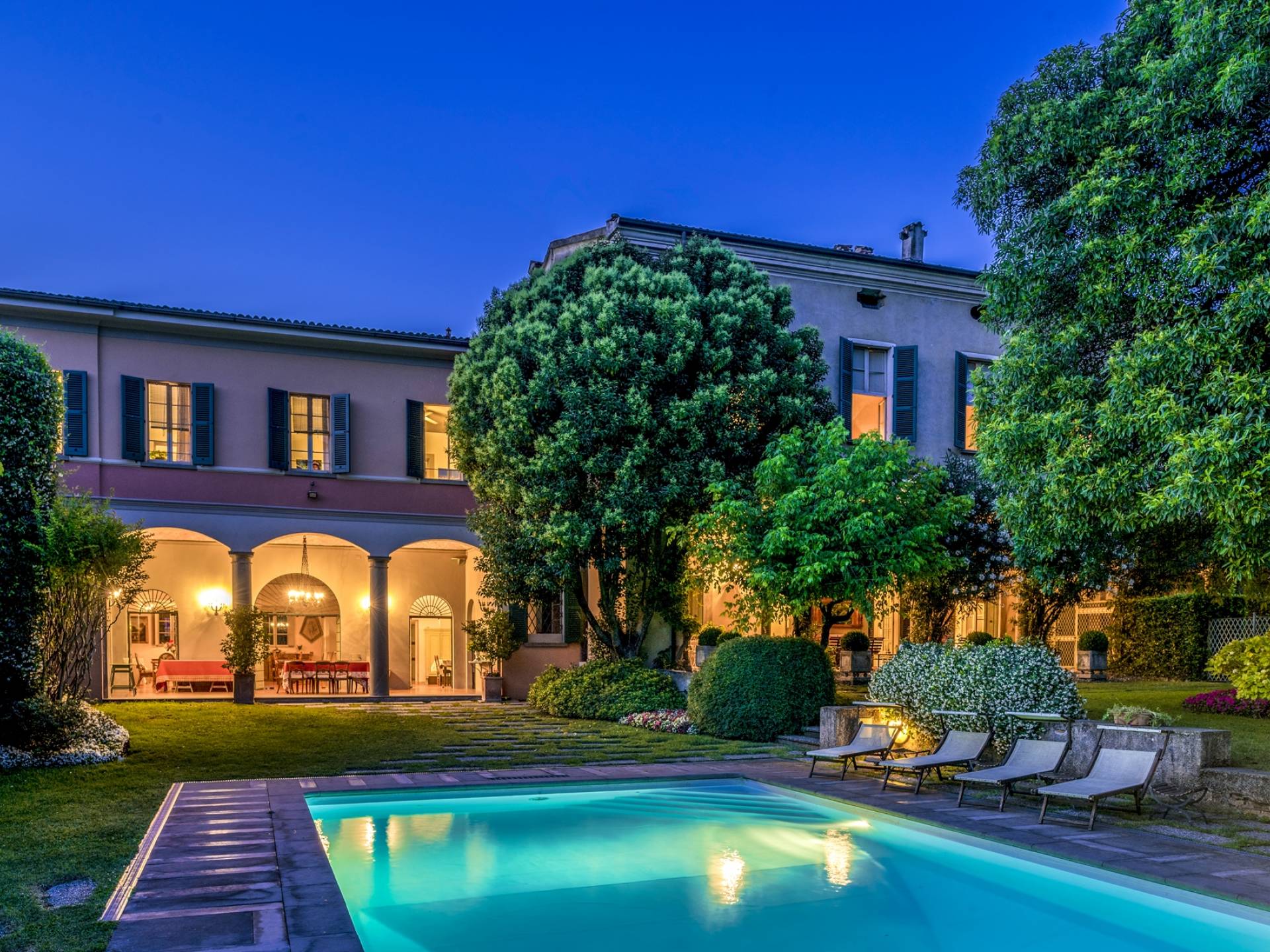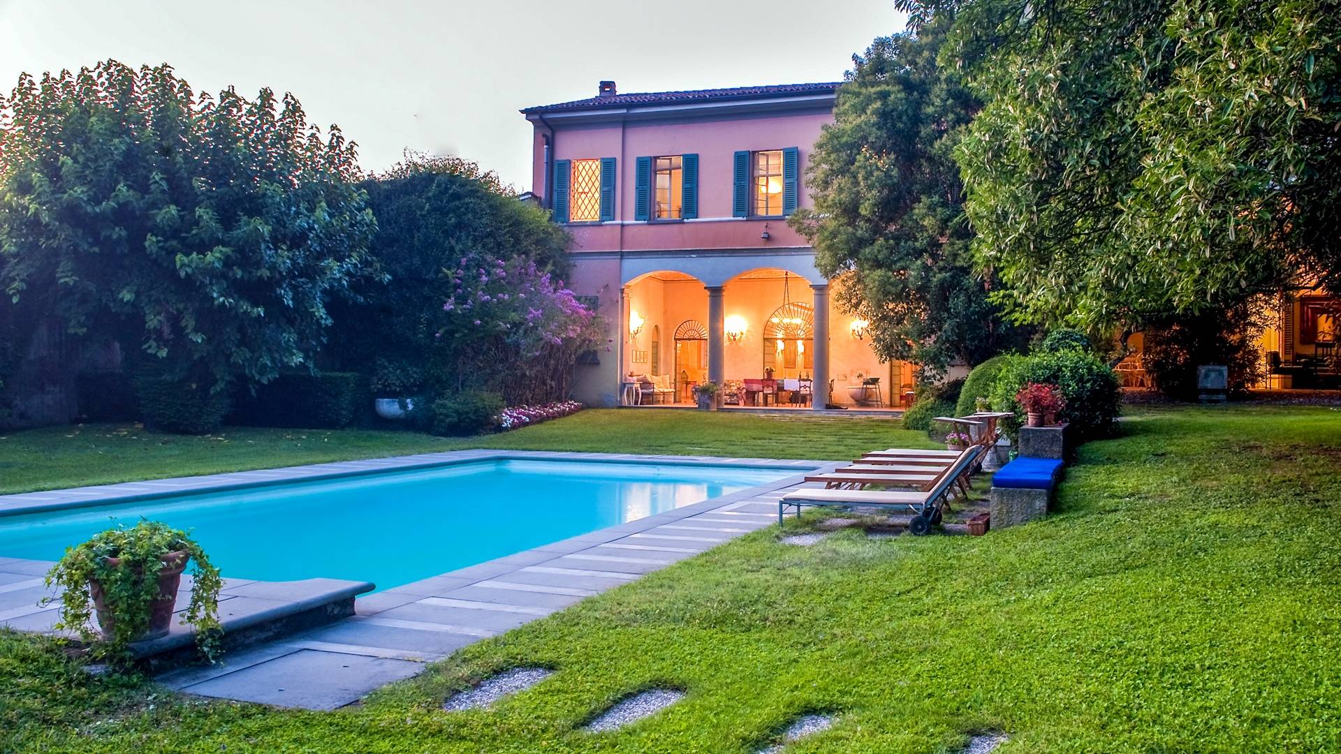 Die Innenräume sind unglaublich charmant, mit tonnengewölbten Ziegeldecken in einigen Zimmern, Ziegelböden und Fresken in den Zimmern. Stilmöbel, Lampen und Vorhänge vervollständigen die Innenausstattung dieses zeitlosen Ortes, der nachts erleuchtet, damit sich auch die zurückhaltendsten Gäste wie zu Hause fühlen. Franciacorta erwartet Sie rund um die Villa, ein Land voller berühmter Weinberge und Kellereien. Die Stadt Brescia ist nur wenige Kilometer entfernt. Verpassen Sie nicht einen Besuch des historischen Zentrums mit der alten Kathedrale, dem Broletto, dem Santa Giulia Museum, der Piazza Del Foro und der Piazza Vittoria. Der Flughafen Bergamo ist etwa dreißig Kilometer entfernt, die Stadt Verona etwa fünfzig Kilometer, die von Mantua weniger als 60 Kilometer, Mailand ist etwa fünfzig Kilometer entfernt.