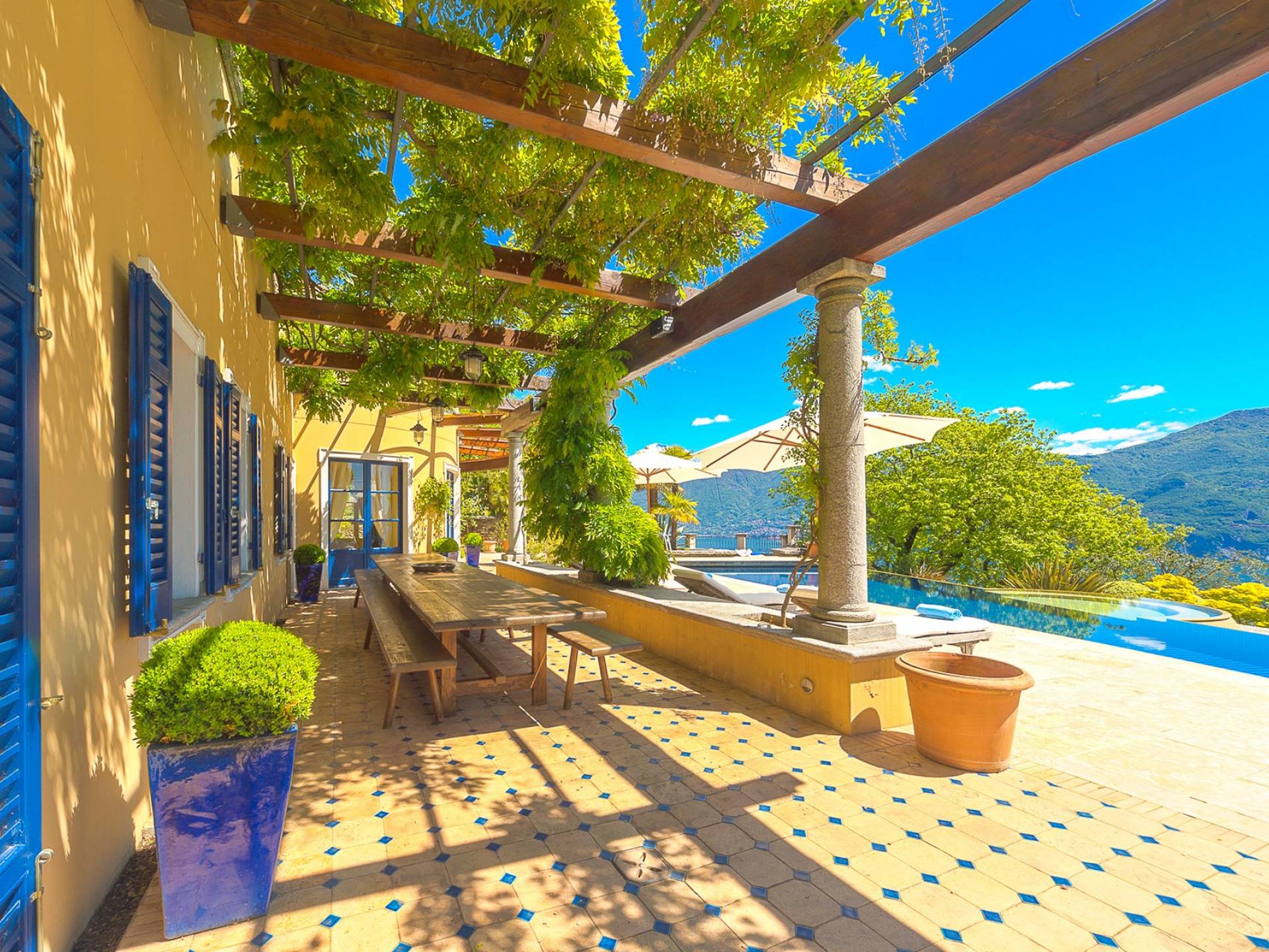 Villa La Rondine Lake Como bietet ein Höchstmaß an Qualität, Komfort und Privatsphäre. Auf einem privaten, nach Süden ausgerichteten, weitläufigen Grundstück (5000 m²) oberhalb des Comer Sees gelegen, genießt das Anwesen die ganztägige Sonne mit atemberaubendem Blick über den See und die umliegende Landschaft. Der schöne Infinity-Pool, der auf eine angenehme Temperatur beheizt ist, und der Whirlpool sorgen für endlose Stunden voller Spaß und Entspannung. Unter einer mit Glyzinien bewachsenen Pergola befindet sich ein riesiger Tisch mit Platz für bis zu 20 Personen und ein professioneller Grill für lebhafte Mahlzeiten im Freien. Die Gärten sind perfekt gepflegt mit makellosen Rasenflächen und einer Reihe von Bäumen, Pflanzen und Blumen. Diese üppigen Bereiche sind die perfekten Orte, um die idyllische Atmosphäre und Aussicht zu genießen. Es gibt auch ein fantastisches Poolhaus mit einem Wellness-Spa-Bereich mit Sauna, Dampfbad, Duschen und Fitnessraum sowie einem entspannenden Wohnbereich mit Sofas, Fernseher und Videospielen sowie einer Küche.
