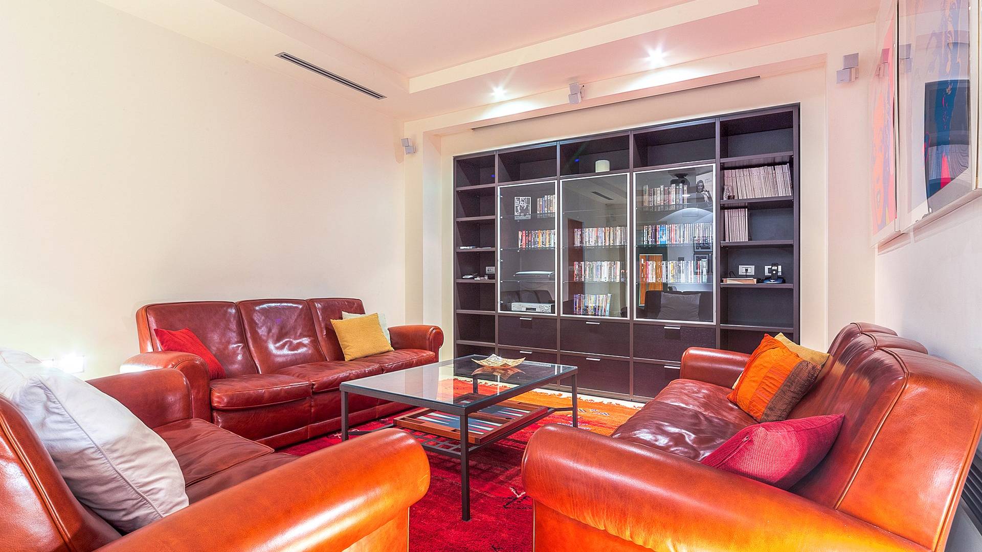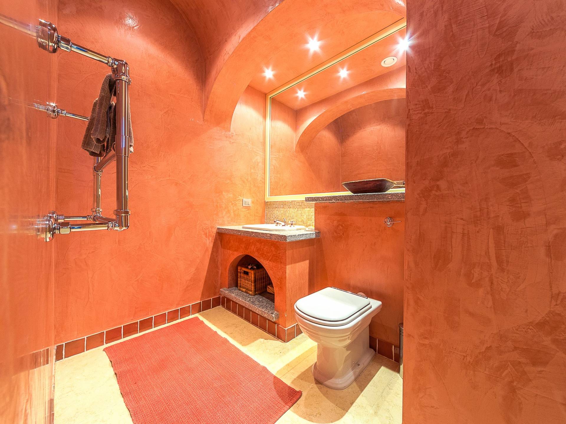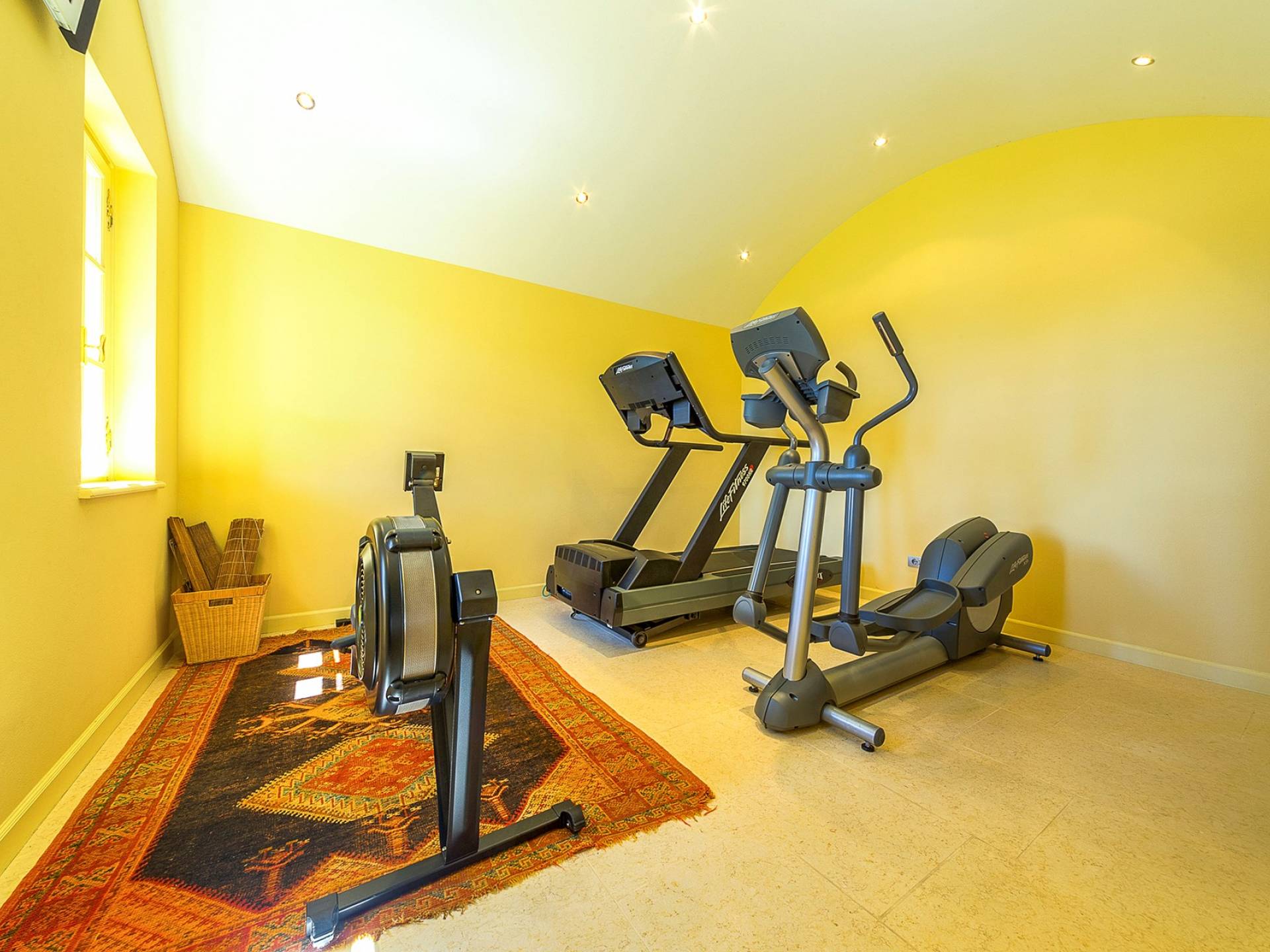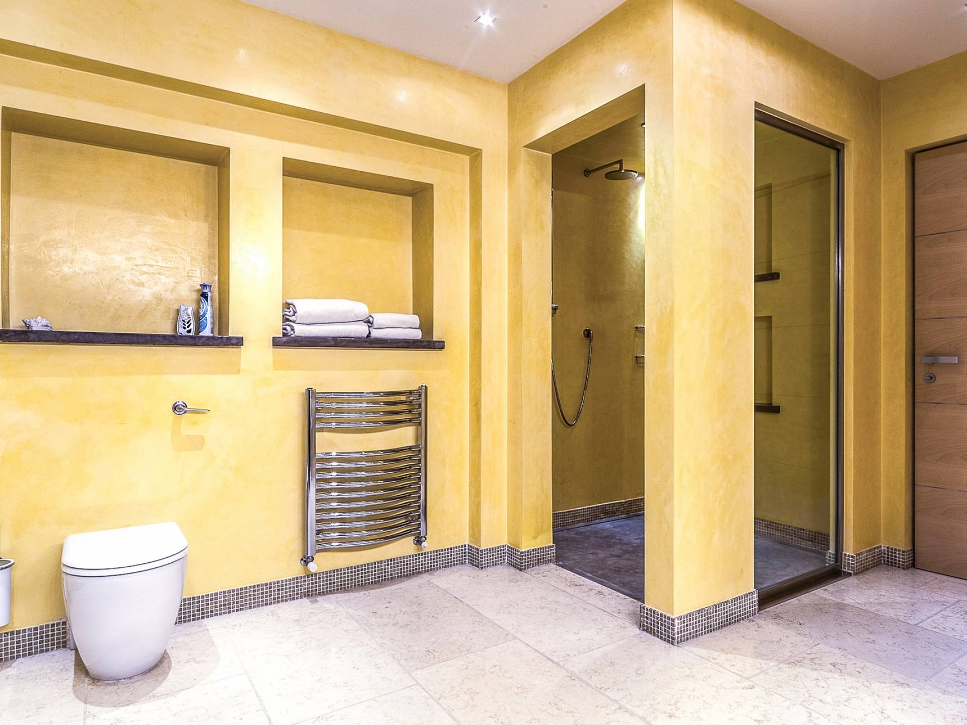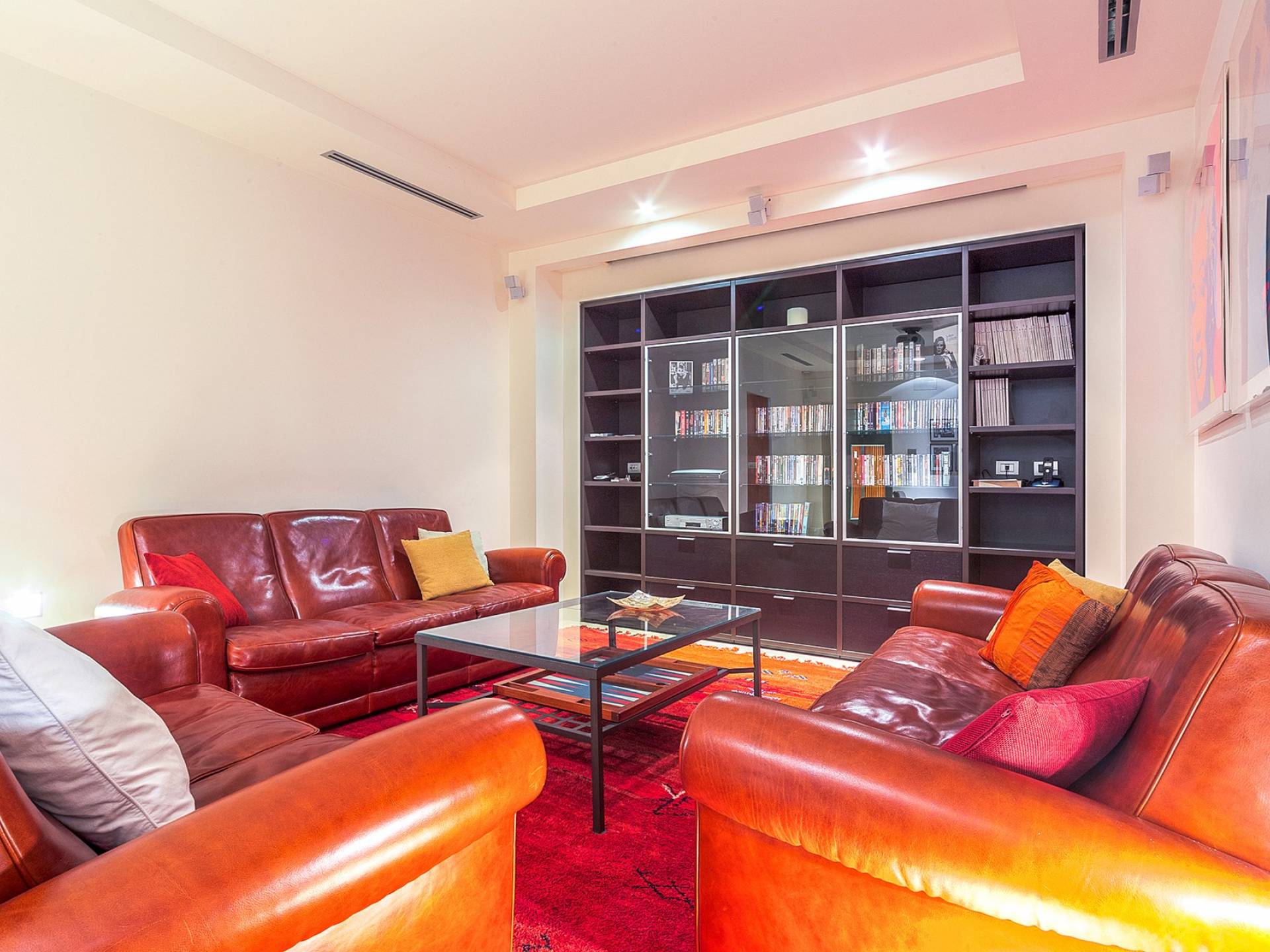Die untere Etage ist der Freizeit und Entspannung gewidmet und wird mit einem Aufzug vom Erdgeschoss aus erreicht. Hier finden Sie einen Kinoraum, eine Taverne/Bar und einen Weinkeller. Die Waschküche, eine Toilette und der Zugang zur Garage befinden sich ebenfalls auf dieser Ebene. Das Gästehaus ist nur einen kurzen Spaziergang (50 m) von der Hauptvilla entfernt und verfügt über einen gemütlichen Wohnbereich mit offenem Kamin, der zu einer voll ausgestatteten Küche, einer Toilette und einer kleinen Waschküche führt. Im Obergeschoss (nur über eine Außentreppe erreichbar) befinden sich zwei Doppelzimmer, die sich ein zentrales Badezimmer mit eingelassener Badewanne und Dusche teilen.