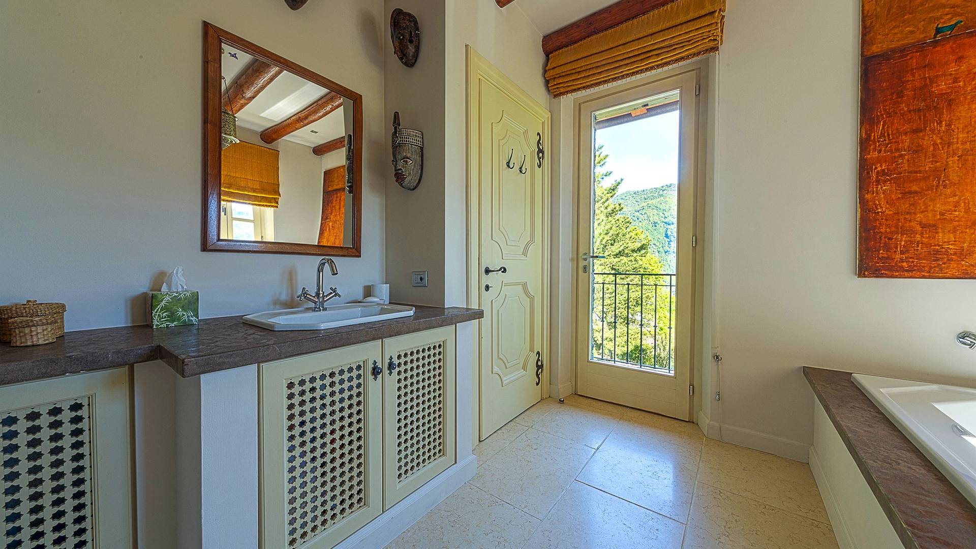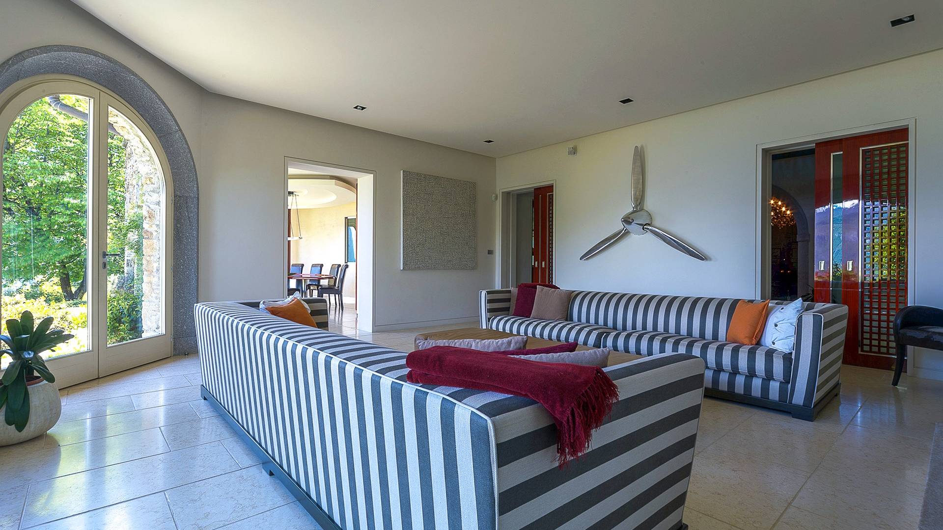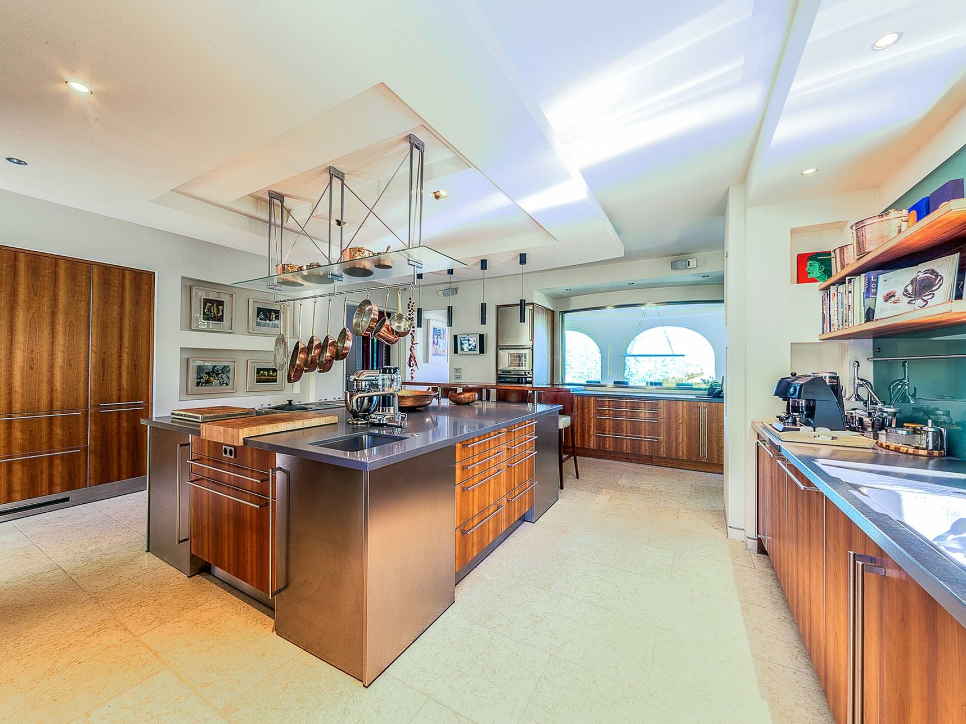 Die Hauptvilla (500m²) mit 5 Schlafzimmern und das separate Gästehaus (120m²) mit 2 Schlafzimmern. Der Eingang zum Erdgeschoss der Hauptvilla erfolgt durch eine beeindruckende Eingangshalle mit Marmorboden und ein Atrium in voller Höhe, das zum hellen Wohnzimmer mit offenem Kamin, einem wunderbaren Essbereich mit Seeblick und einem einzigartigen Tisch führt, der von einem berühmten Boot gefertigt wurde Baumeister und eine voll ausgestattete Küche daneben. Es gibt drei Doppelzimmer, die sich ein riesiges Badezimmer mit eingelassener Badewanne, Dusche und Doppelwaschbecken teilen, sowie Zugang zu einer großen Terrasse. Die erste Etage verfügt über ein Panorama-Hauptschlafzimmer mit einer niedlichen Sitzecke und einem en-suite Badezimmer mit Dusche und Zugang zu einer privaten großen Terrasse; ein weiteres Doppelzimmer mit eigenem Bad mit eingelassener Badewanne, separater Dusche und eigenem Balkon; ein helles Bürozimmer mit Edelstahlschreibtisch, WC.