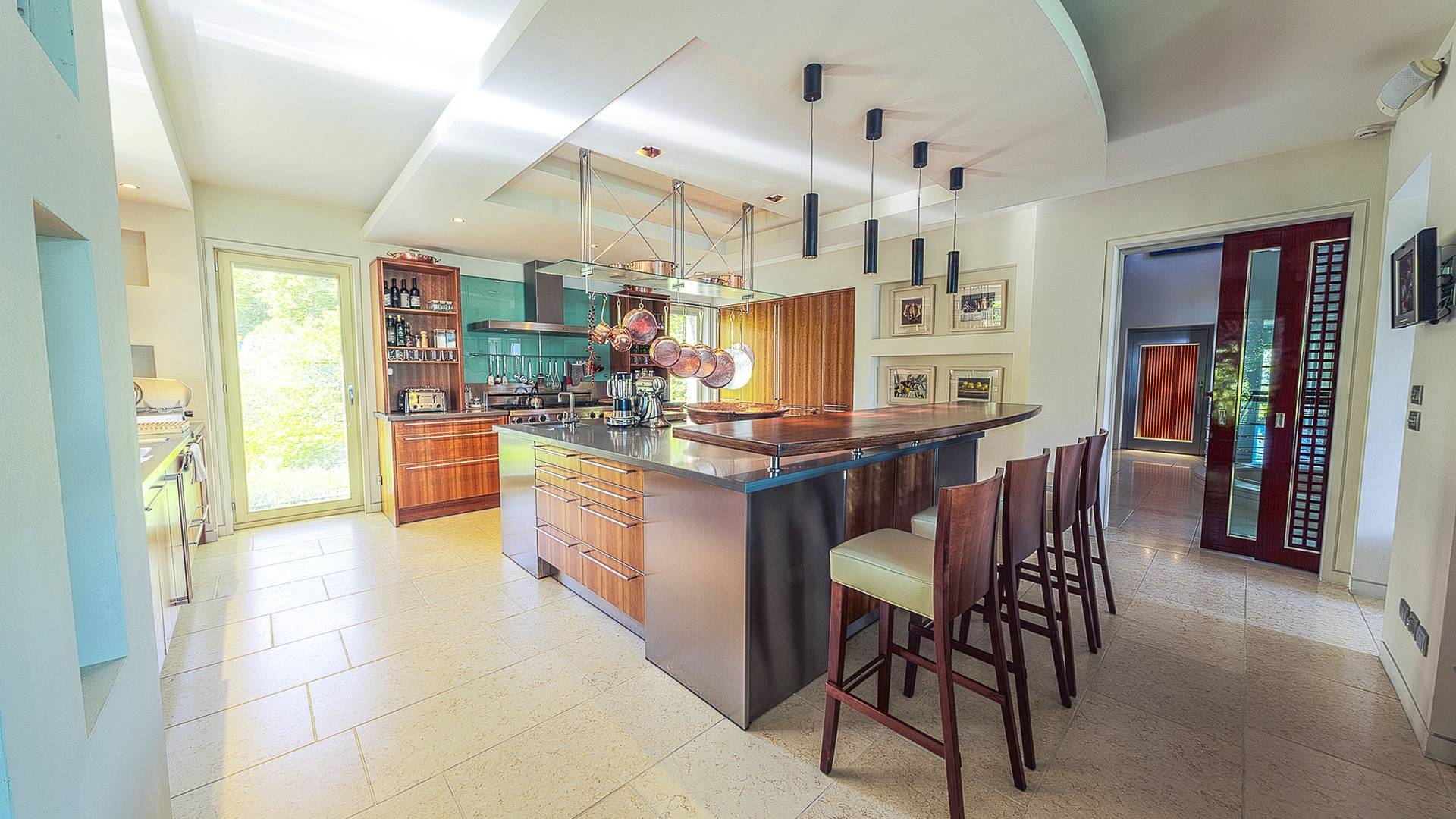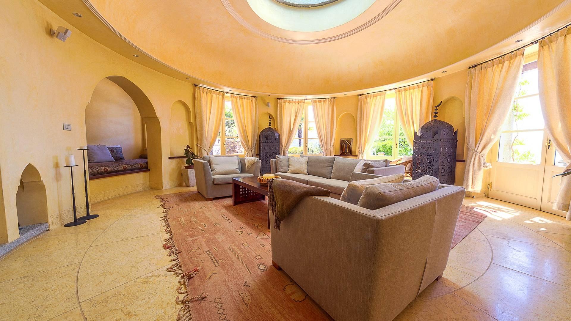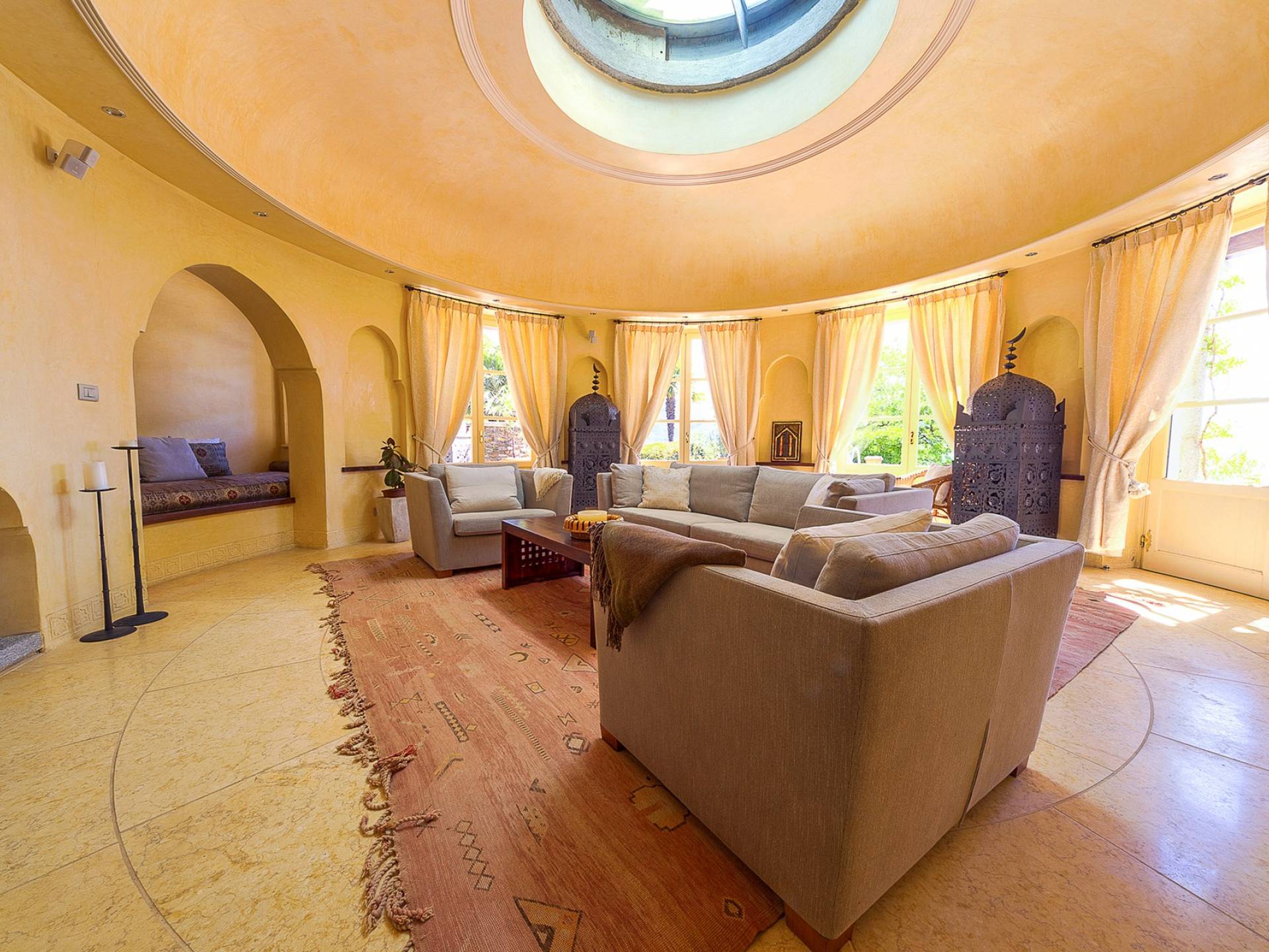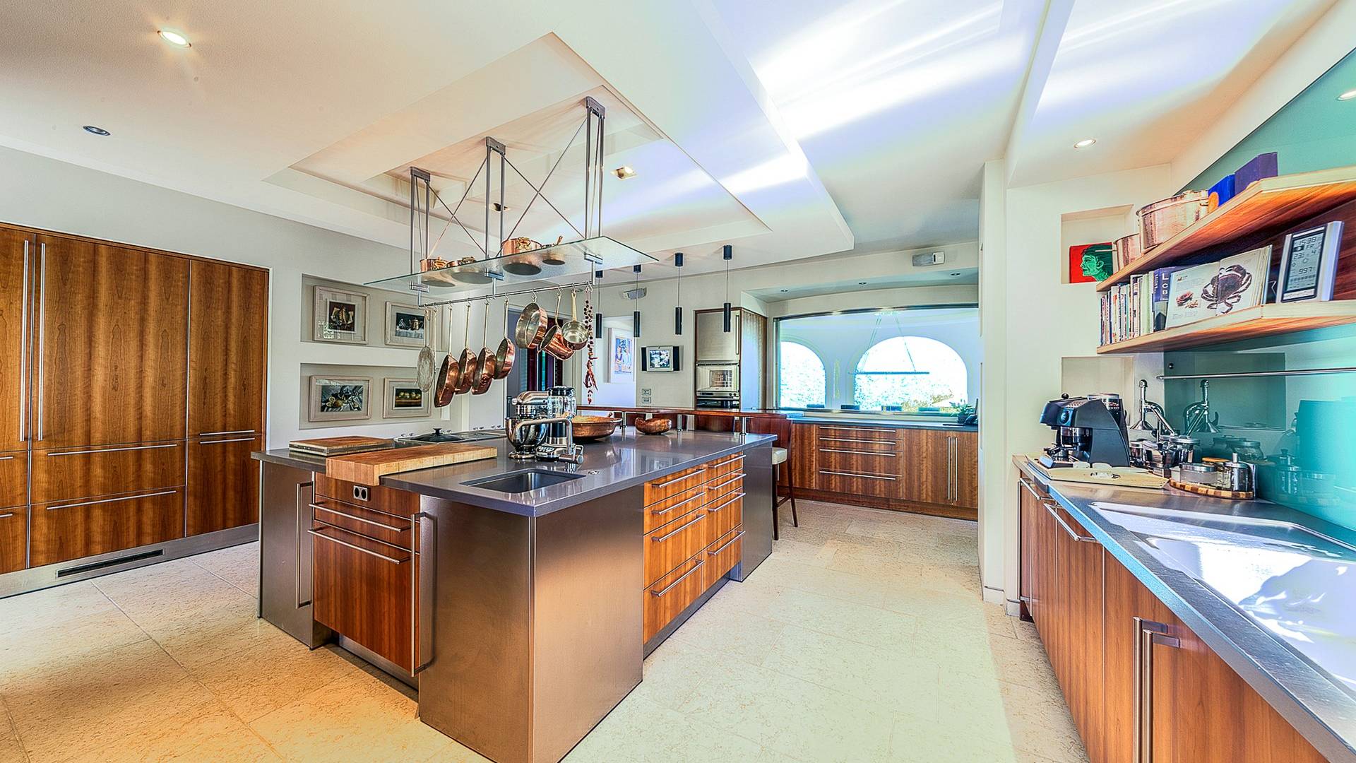 Die Hauptvilla (500m²) mit 5 Schlafzimmern und das separate Gästehaus (120m²) mit 2 Schlafzimmern. Der Eingang zum Erdgeschoss der Hauptvilla erfolgt durch eine beeindruckende Eingangshalle mit Marmorboden und ein Atrium in voller Höhe, das zum hellen Wohnzimmer mit offenem Kamin, einem wunderbaren Essbereich mit Seeblick und einem einzigartigen Tisch führt, der von einem berühmten Boot gefertigt wurde Baumeister und eine voll ausgestattete Küche daneben. Es gibt drei Doppelzimmer, die sich ein riesiges Badezimmer mit eingelassener Badewanne, Dusche und Doppelwaschbecken teilen, sowie Zugang zu einer großen Terrasse. Die erste Etage verfügt über ein Panorama-Hauptschlafzimmer mit einer niedlichen Sitzecke und einem en-suite Badezimmer mit Dusche und Zugang zu einer privaten großen Terrasse; ein weiteres Doppelzimmer mit eigenem Bad mit eingelassener Badewanne, separater Dusche und eigenem Balkon; ein helles Bürozimmer mit Edelstahlschreibtisch, WC.