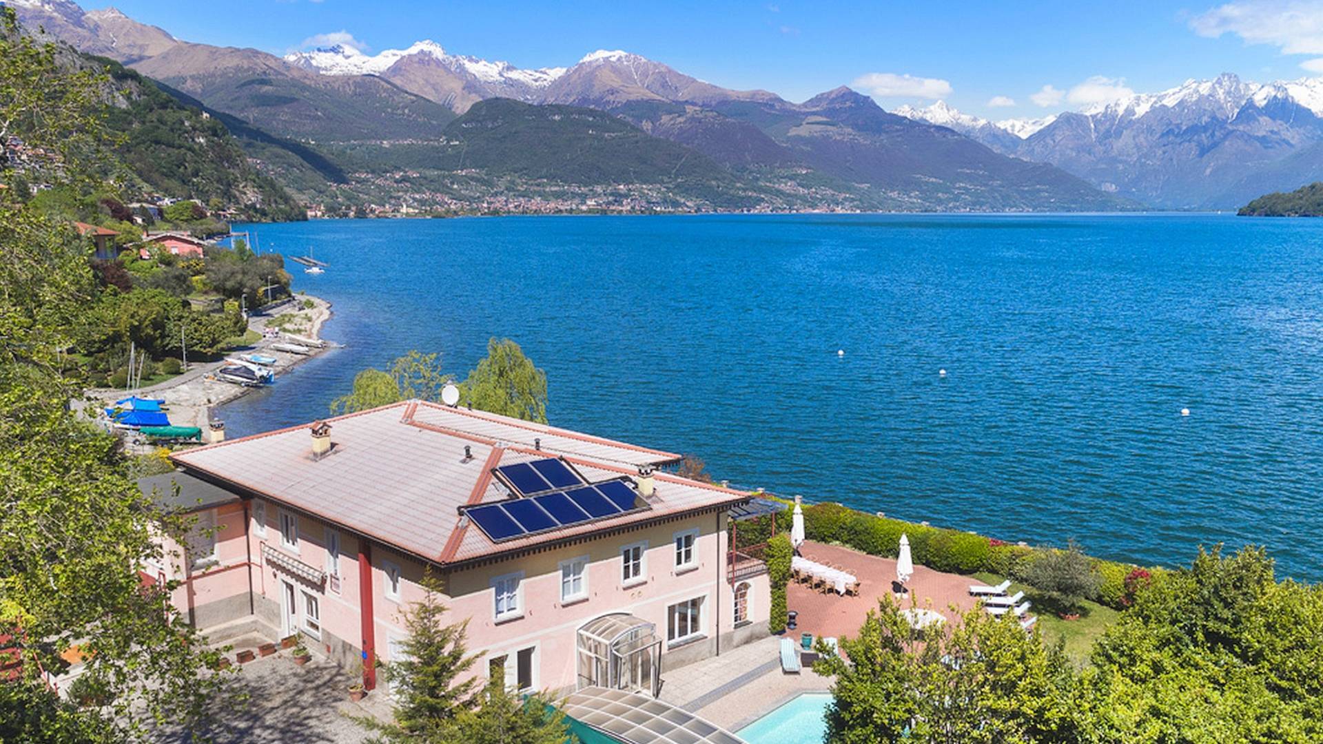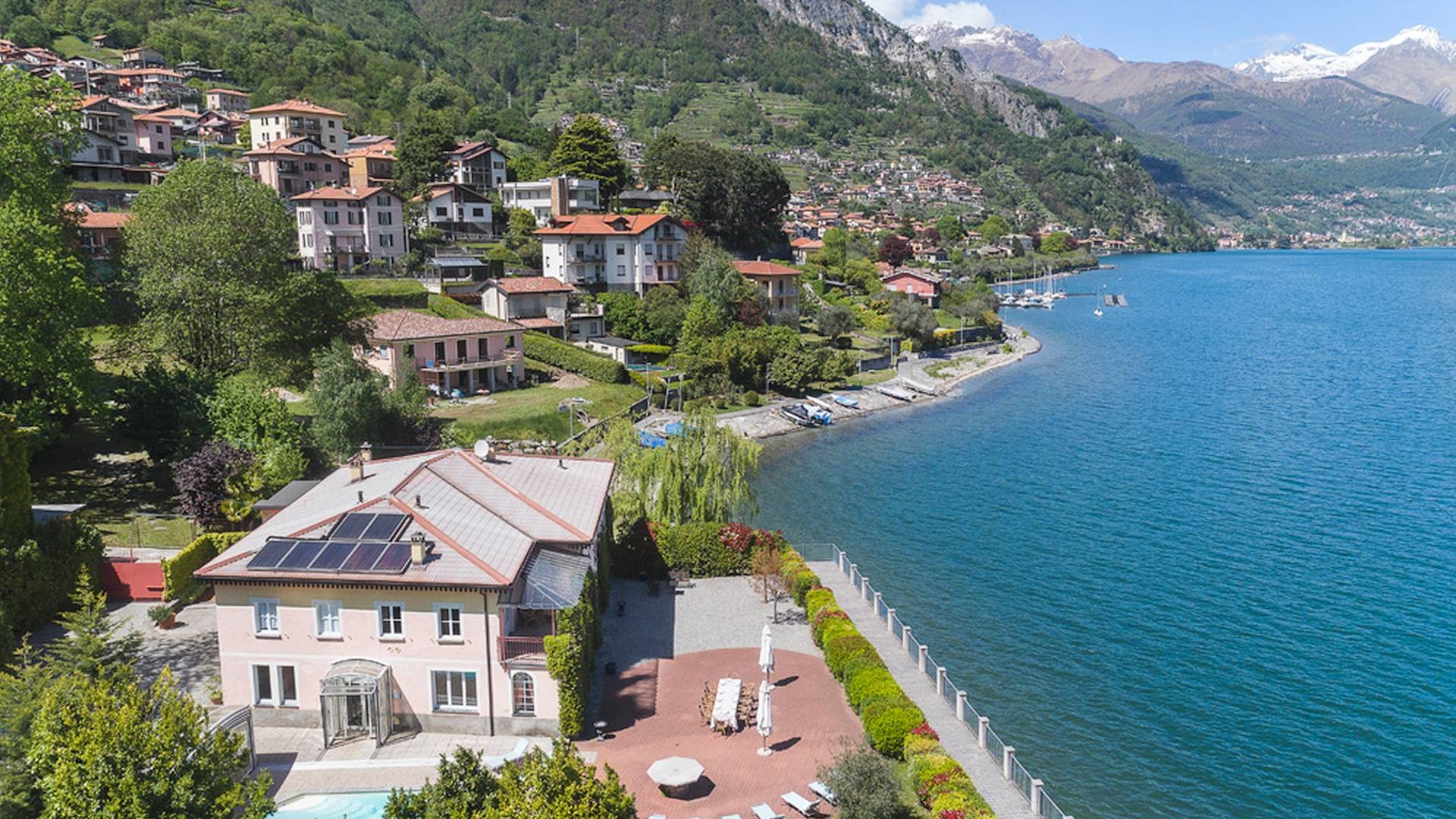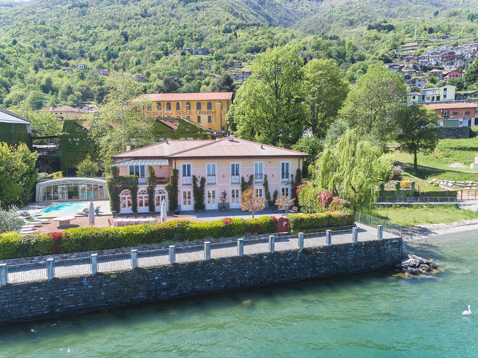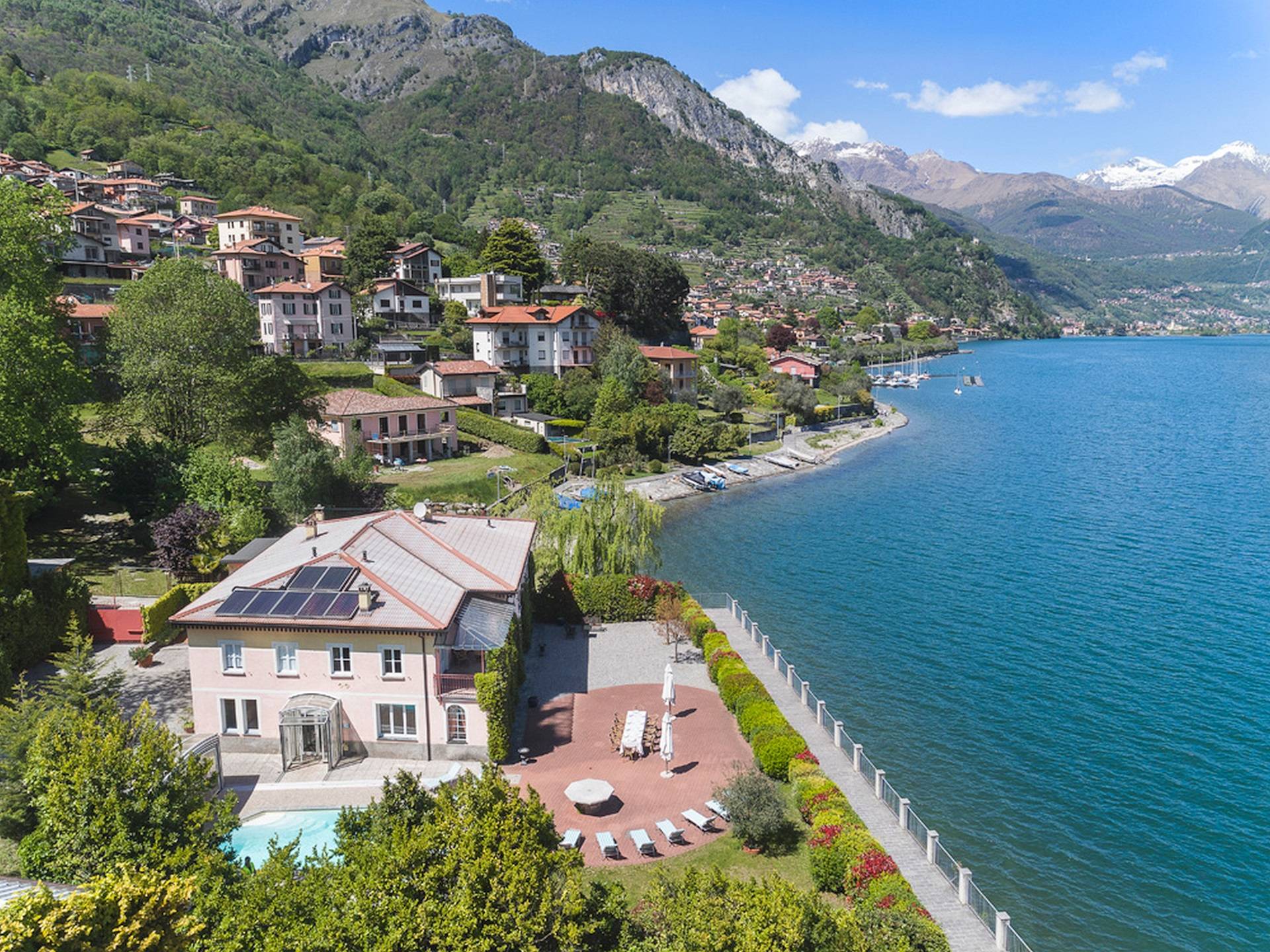 Villa Maia Lake Como befindet sich auf einem 800 m² großen Privatgrundstück und liegt nur wenige Meter von einem öffentlichen (Kies-) Strand entfernt. Zwischen Ufer und Grundstücksgrenze verläuft ein öffentlicher Fußweg. Auf dem Grundstück des Hauses können Sie den Comer See und die umliegenden Berge bewundern, während Sie sich auf der großen Terrasse (360 m²) mit 16 Sonnenliegen sonnen, im beheizten Pool (der auch überdacht werden kann) erfrischen. , oder beobachten Sie, wie Ihre Kinder mit den bereitgestellten Outdoor-Spielzeugen spielen. Das Anwesen verfügt über Parkplätze für bis zu 6 Autos. Hinter der Villa befindet sich ein ruhiges, aber faszinierendes Bootsmuseum mit Hunderten von Seeschiffen, die seit dem 19. Jahrhundert zur nautischen Geschichte des Comer Sees beigetragen haben. Insgesamt ein idyllischer Urlaubsort zum Entspannen und um die herrliche italienische Sonne zu genießen.