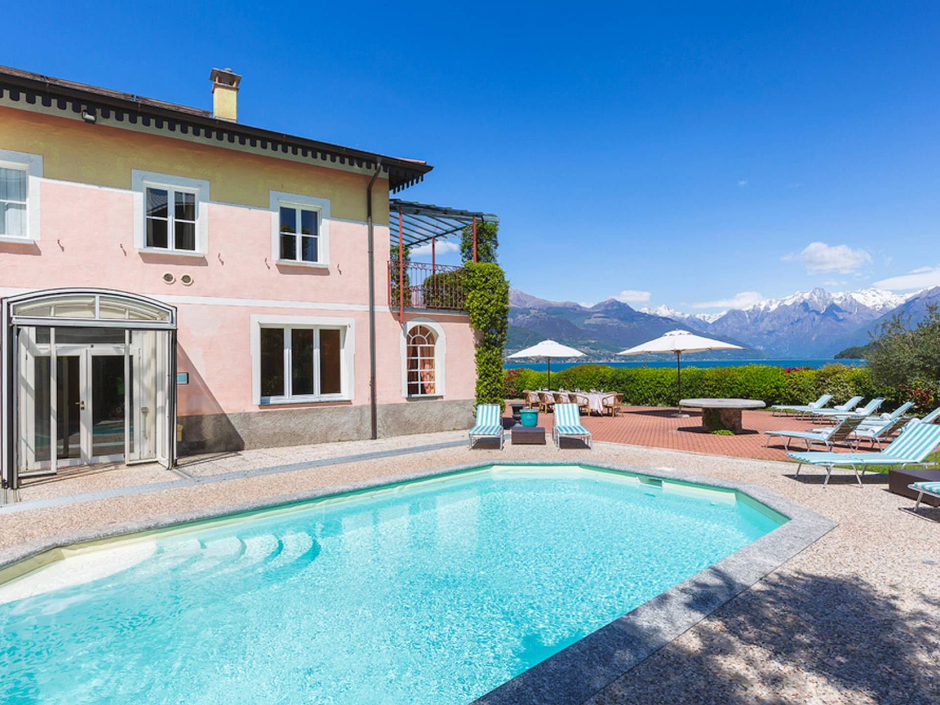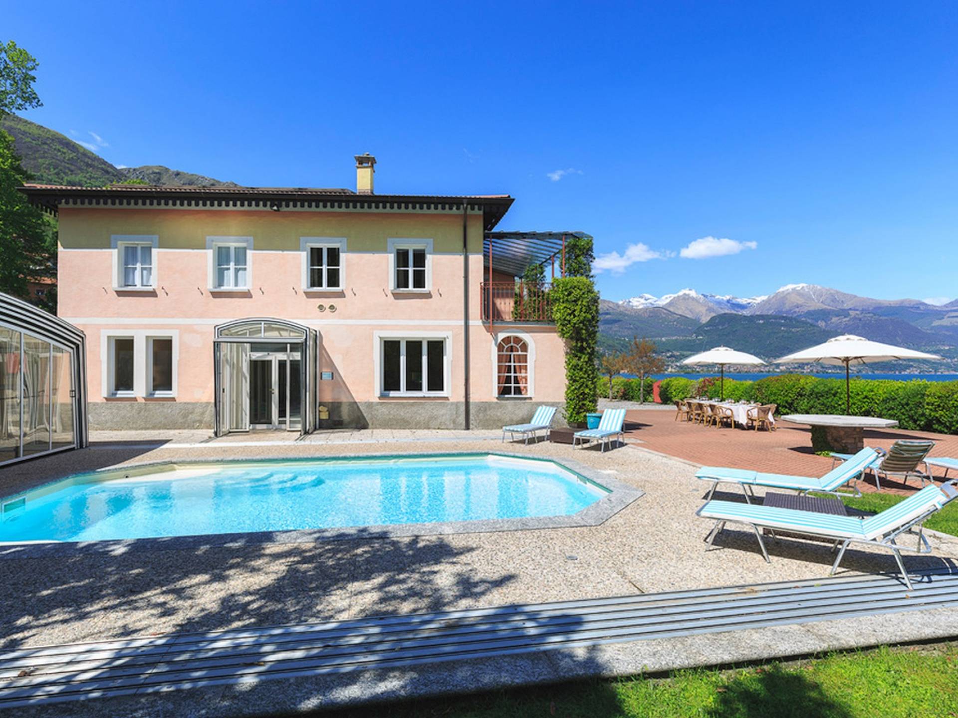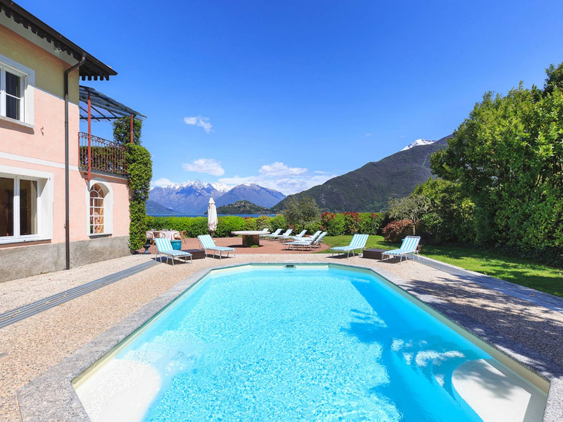 Villa Maia Lake Como befindet sich auf einem 800 m² großen Privatgrundstück und liegt nur wenige Meter von einem öffentlichen (Kies-) Strand entfernt. Zwischen Ufer und Grundstücksgrenze verläuft ein öffentlicher Fußweg. Auf dem Grundstück des Hauses können Sie den Comer See und die umliegenden Berge bewundern, während Sie sich auf der großen Terrasse (360 m²) mit 16 Sonnenliegen sonnen, im beheizten Pool (der auch überdacht werden kann) erfrischen. , oder beobachten Sie, wie Ihre Kinder mit den bereitgestellten Outdoor-Spielzeugen spielen. Das Anwesen verfügt über Parkplätze für bis zu 6 Autos. Hinter der Villa befindet sich ein ruhiges, aber faszinierendes Bootsmuseum mit Hunderten von Seeschiffen, die seit dem 19. Jahrhundert zur nautischen Geschichte des Comer Sees beigetragen haben. Insgesamt ein idyllischer Urlaubsort zum Entspannen und um die herrliche italienische Sonne zu genießen.