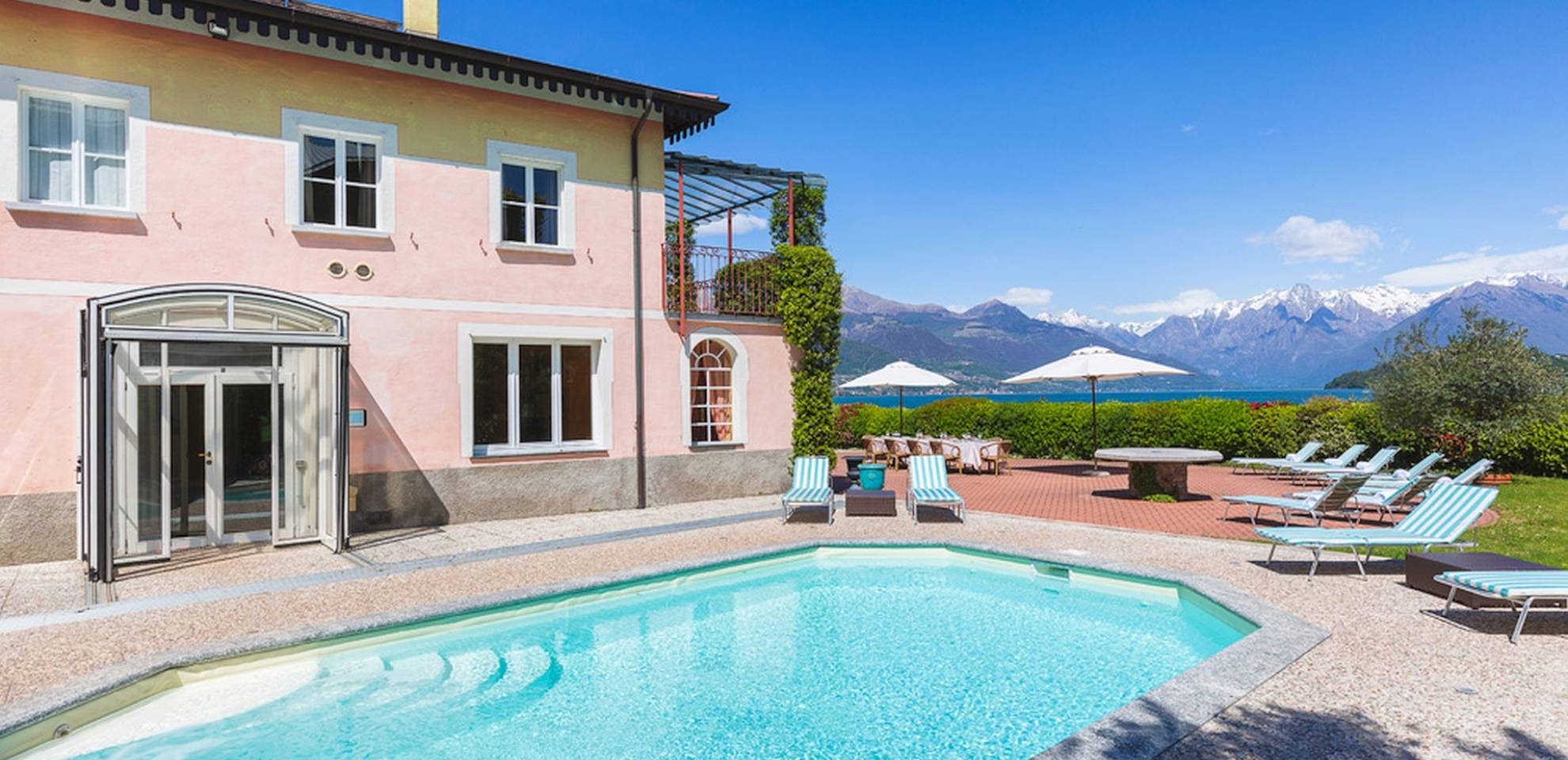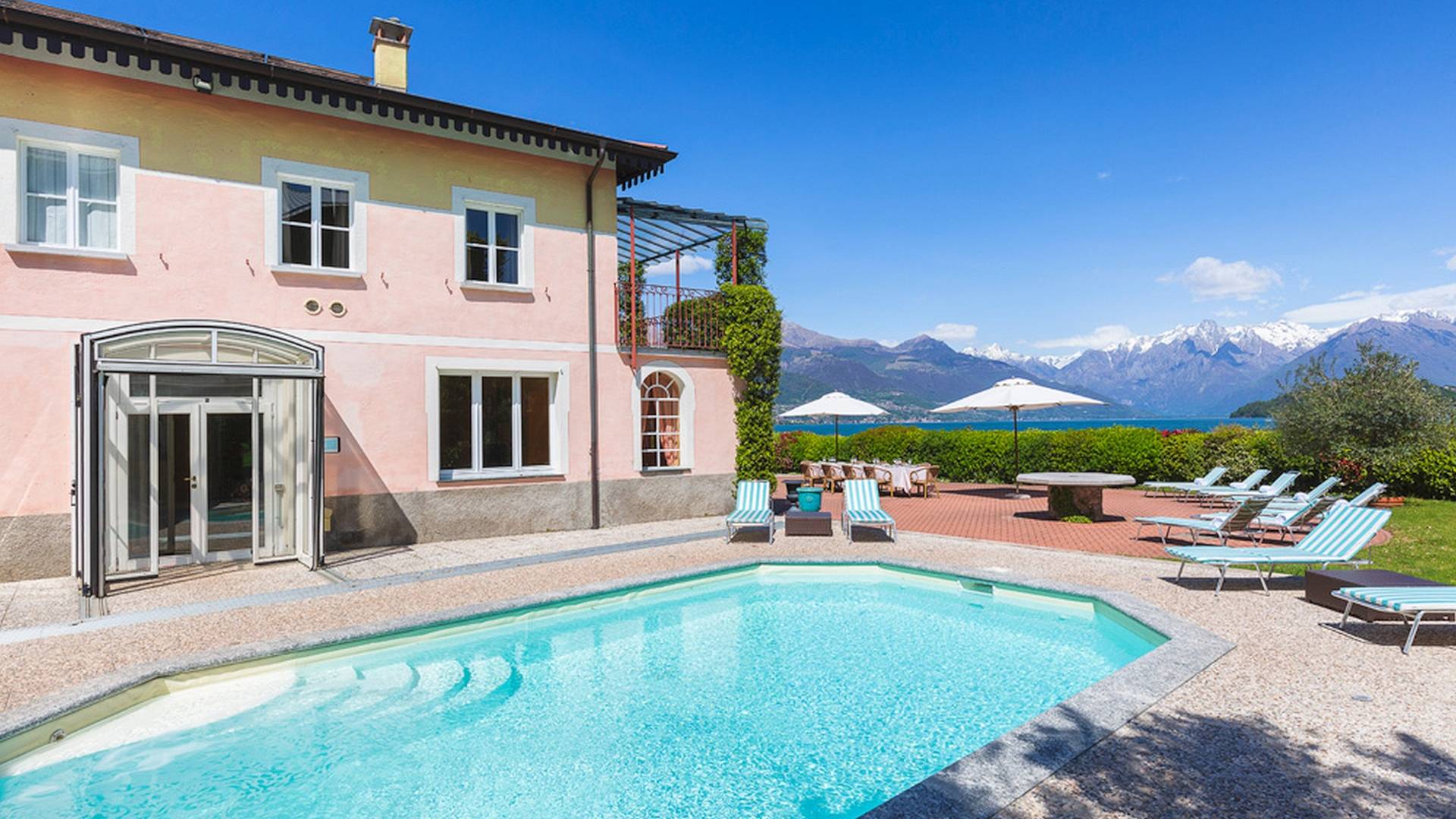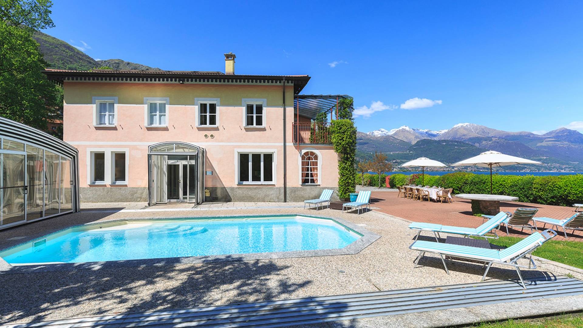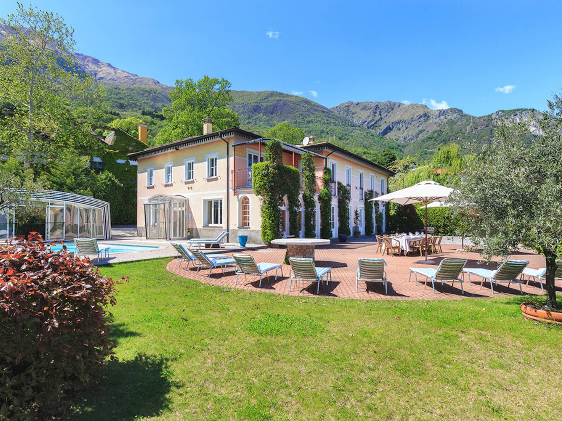 Villa Maia Lake Como befindet sich auf einem 800 m² großen Privatgrundstück und liegt nur wenige Meter von einem öffentlichen (Kies-) Strand entfernt. Zwischen Ufer und Grundstücksgrenze verläuft ein öffentlicher Fußweg. Auf dem Grundstück des Hauses können Sie den Comer See und die umliegenden Berge bewundern, während Sie sich auf der großen Terrasse (360 m²) mit 16 Sonnenliegen sonnen, im beheizten Pool (der auch überdacht werden kann) erfrischen. , oder beobachten Sie, wie Ihre Kinder mit den bereitgestellten Outdoor-Spielzeugen spielen. Das Anwesen verfügt über Parkplätze für bis zu 6 Autos. Hinter der Villa befindet sich ein ruhiges, aber faszinierendes Bootsmuseum mit Hunderten von Seeschiffen, die seit dem 19. Jahrhundert zur nautischen Geschichte des Comer Sees beigetragen haben. Insgesamt ein idyllischer Urlaubsort zum Entspannen und um die herrliche italienische Sonne zu genießen.
