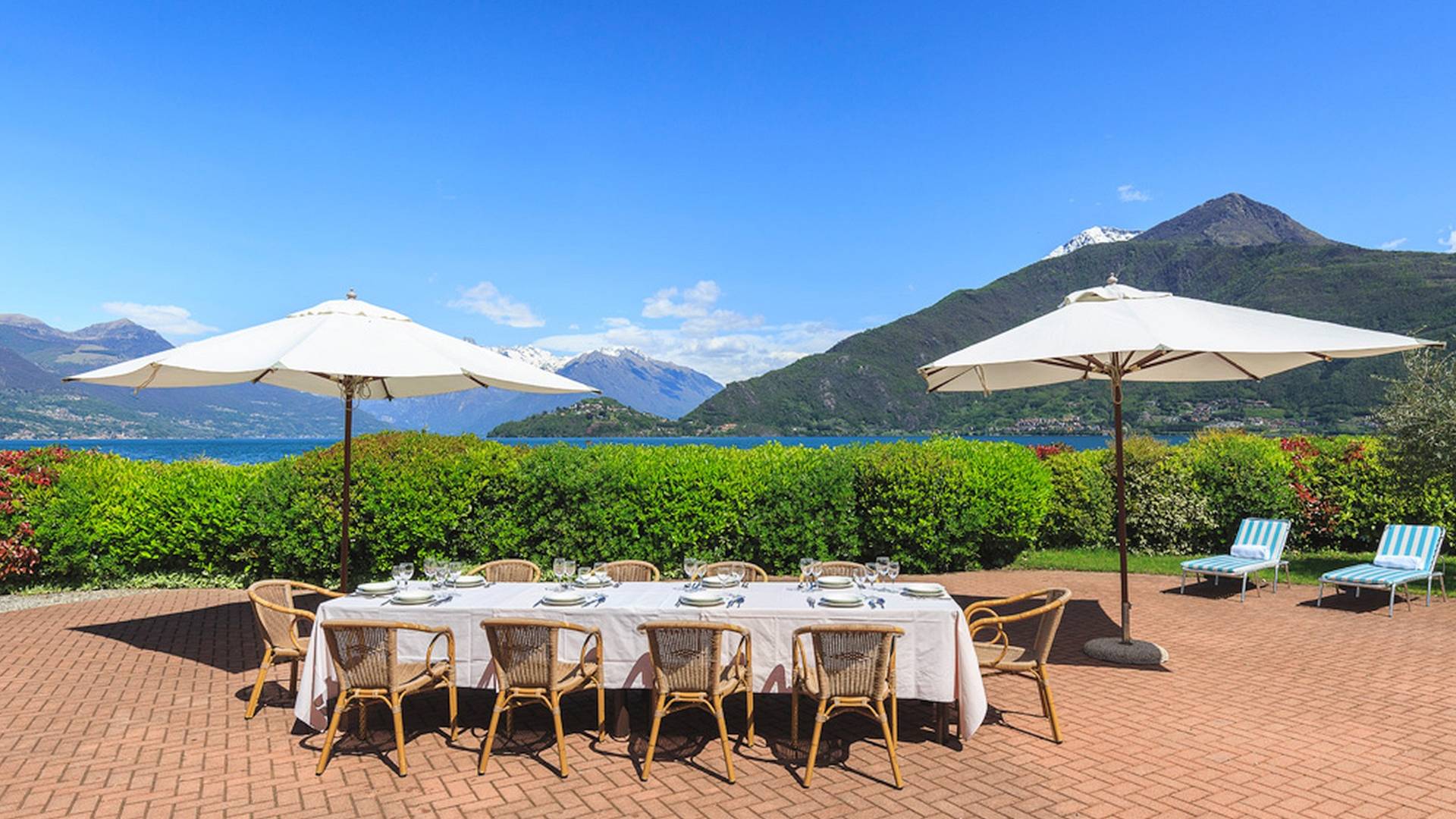 Villa Maia Lake Como ist eine atemberaubende Ferienimmobilie, ausgestattet mit allen modernen Annehmlichkeiten, einschließlich Klimaanlage, auf zwei Etagen (600 m²) gebaut und bietet Platz für bis zu 16 Personen. Im Erdgeschoss befindet sich ein geräumiges und helles Wohnzimmer mit bequemen Sofas, Sat-TV, Internetecke und acht Fenstertüren, die direkt auf die Panoramaterrasse mit Seeblick führen. Voll ausgestattete Küche inkl. Geschirrspüler. Der große Speisesaal bietet Platz für 14 Personen. Spielzimmer für Kinder mit Tischtennisplatte und zahlreichen anderen Spielsachen (kann auf Wunsch zum Schlafzimmer umgebaut werden). Badezimmer mit Dusche und Einrichtungen für Rollstuhlfahrer. Zwei Gäste-WCs. Waschküche mit Waschmaschine und Trockner. Der erste Stock bietet 5 Doppelzimmer mit eigenem Bad (klimatisiert); zwei dieser Zimmer teilen sich den Zugang zu einer Terrasse mit wunderschönem Seeblick. Zwei Einzelzimmer (nicht klimatisiert) grenzen an zwei der Doppelzimmer (mit Verbindungstür) und sind somit ideal für Kinder. Schließlich finden Sie ein Zweibettzimmer mit eigenem Bad (klimatisiert).