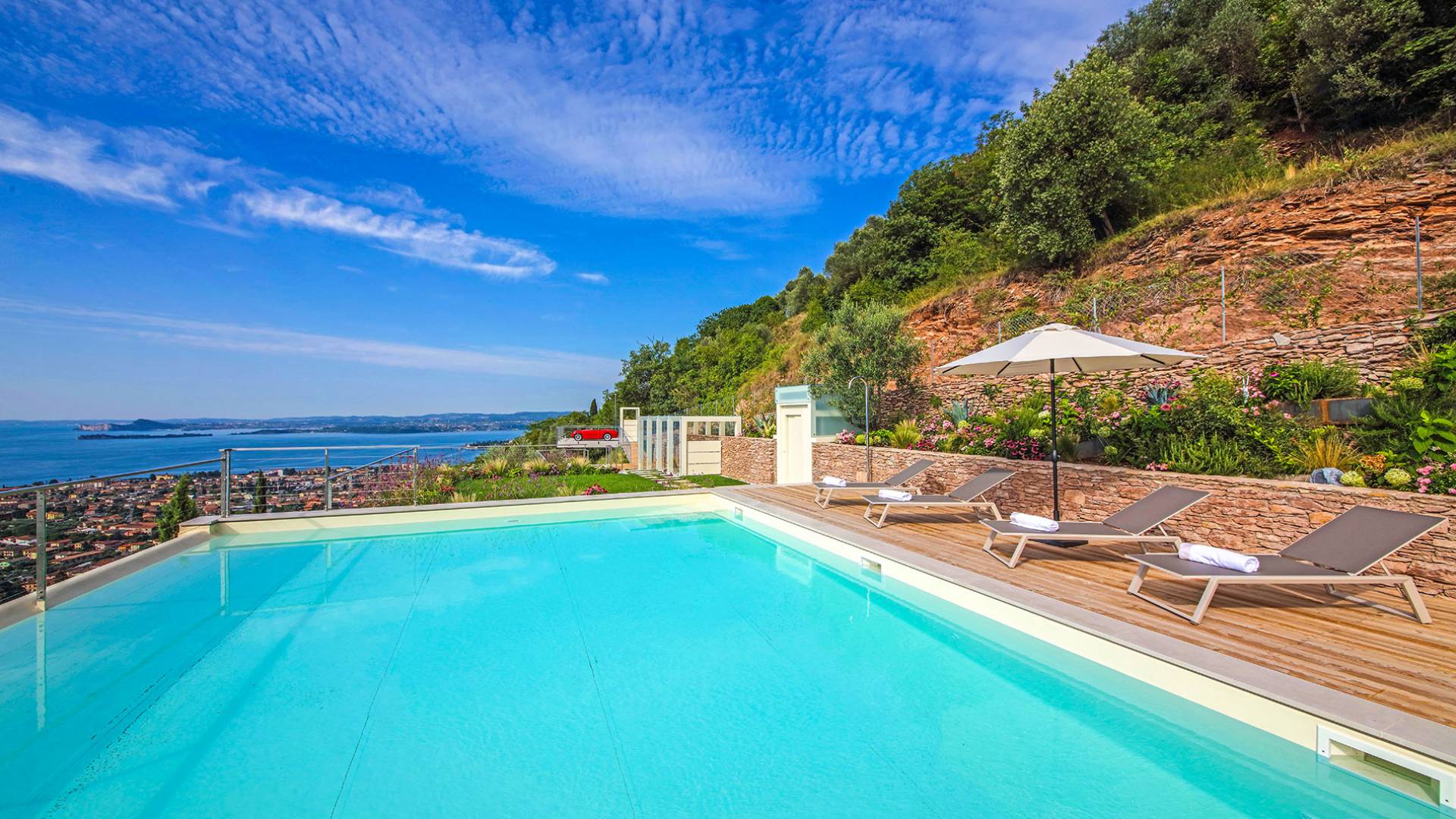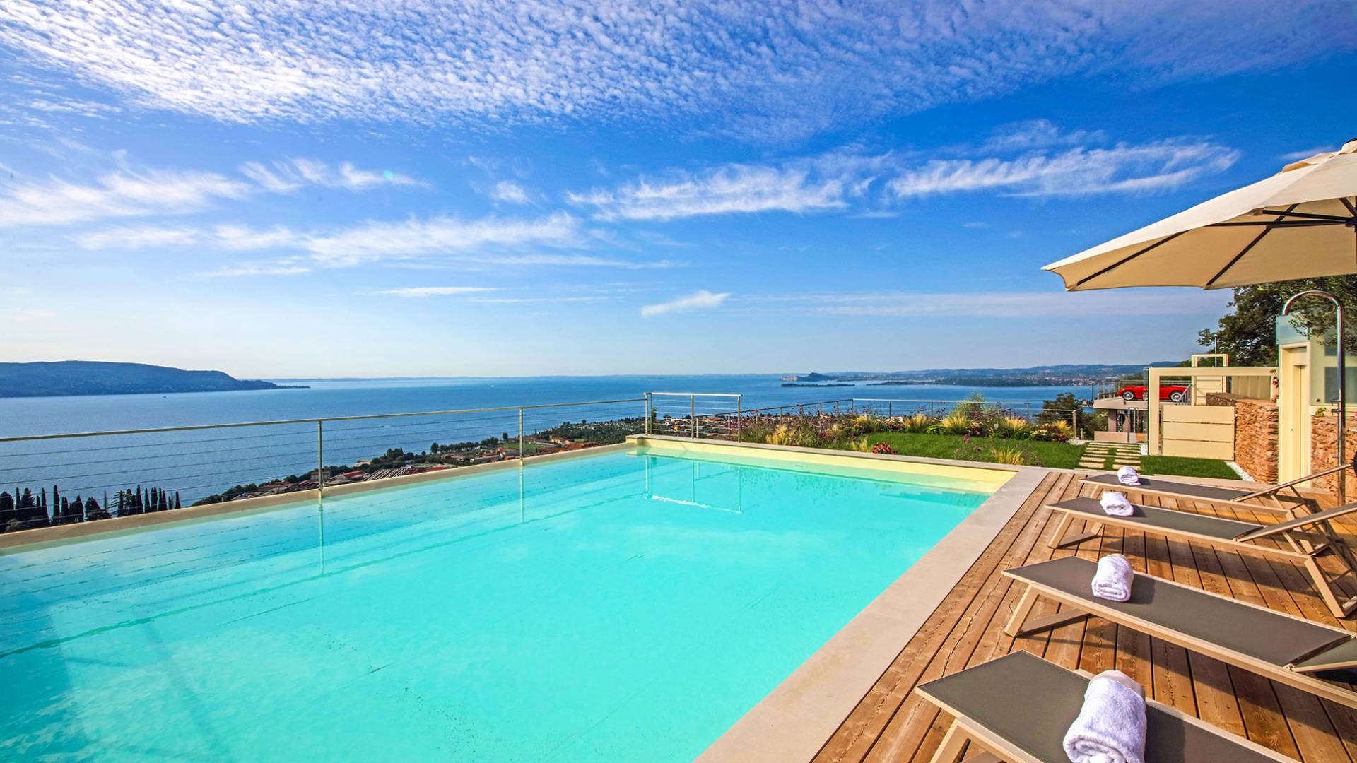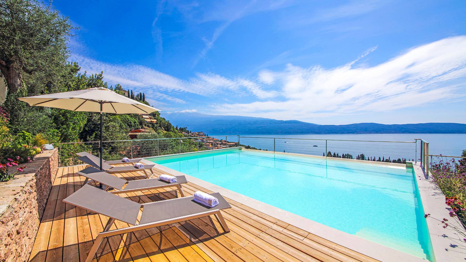 Garda Panoramic Manor Der Gardasee besteht aus 3 fantastischen Villen mit Seeblick, einem privaten Infinity-Pool, einem Solarium, einem Wellnessbereich, Entspannungsbereichen, einem Grill und einem äußerst gepflegten Garten. Jede Villa hat ihren eigenen Stil: modernes, raffiniertes Design Villa Agave, exklusive und elegante Villa Le Selve und ein klassischer antiker Stil für Villa Storica. Das Garda Panoramic Manor ist der perfekte Ort für prestigeträchtige Veranstaltungen und unvergessliche Hochzeiten.