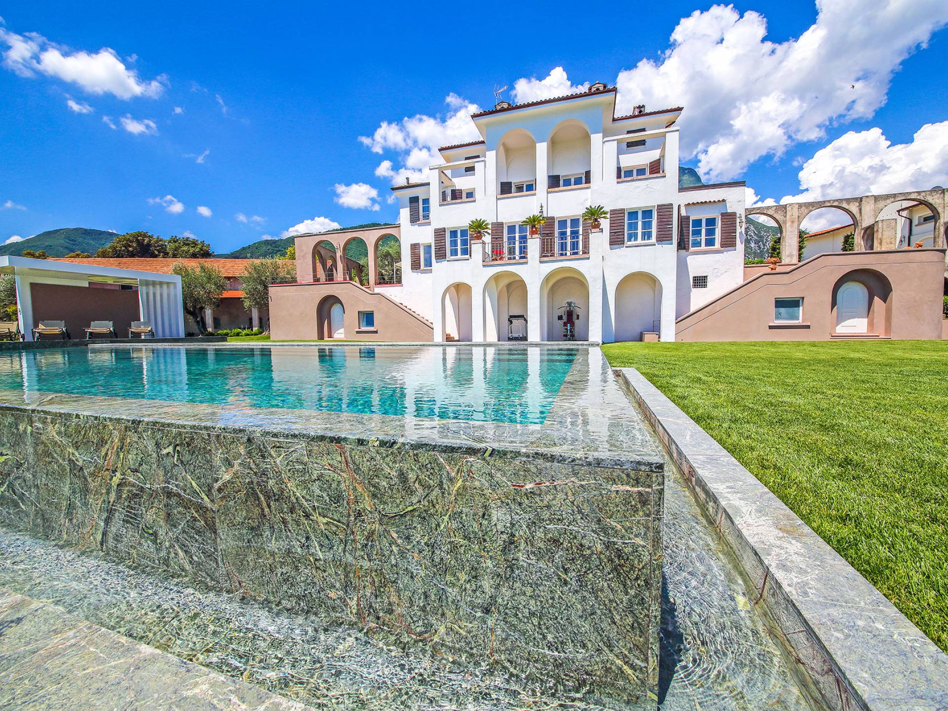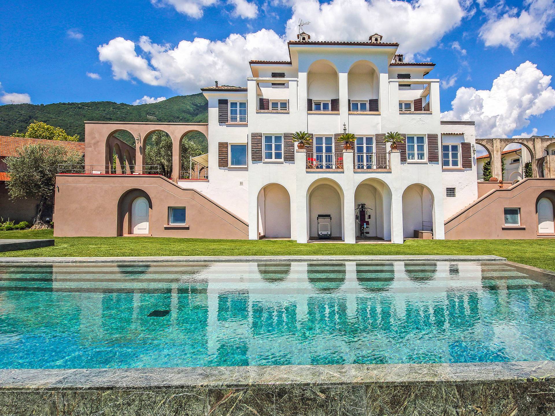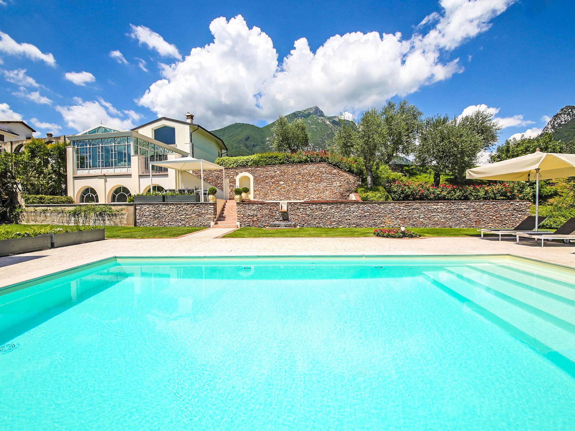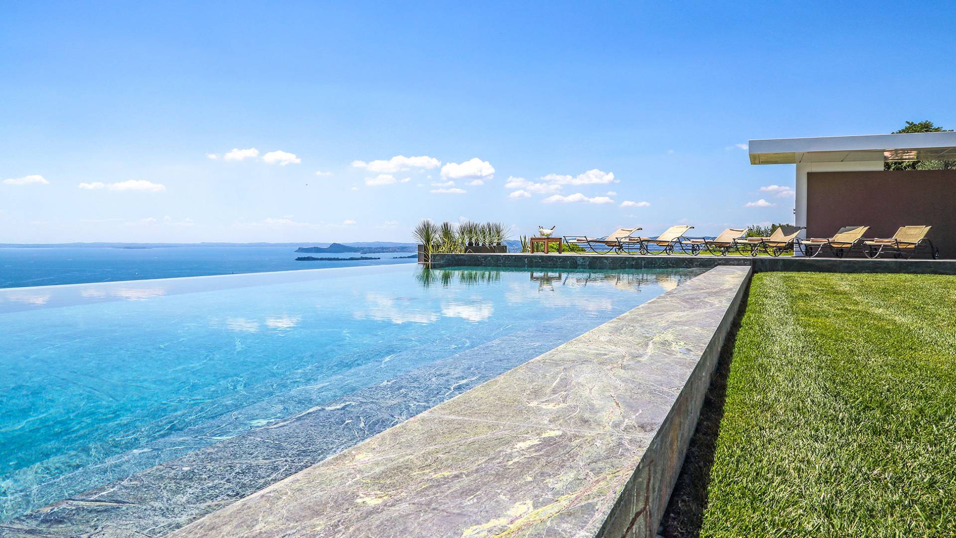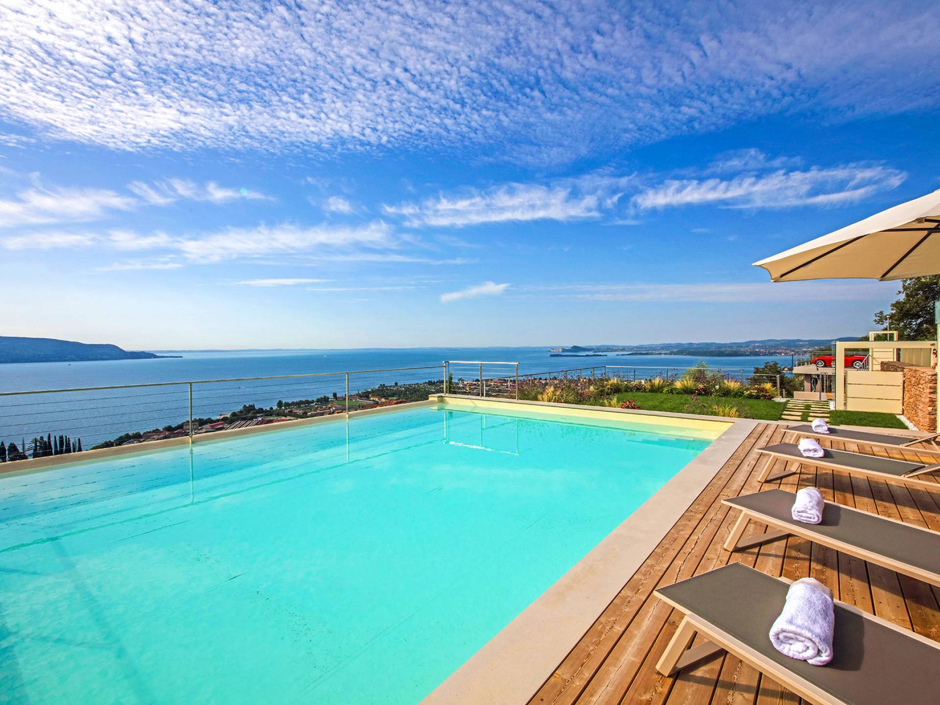 Garda Panoramic Manor Der Gardasee ist eine Luxusvilla mit 11 Schlafzimmern und 3 privaten Pools. Das von den Hügeln des Gardasees umrahmte Garda Panoramic Manor ist eine echte Luxusperle mit einer spektakulären Aussicht.