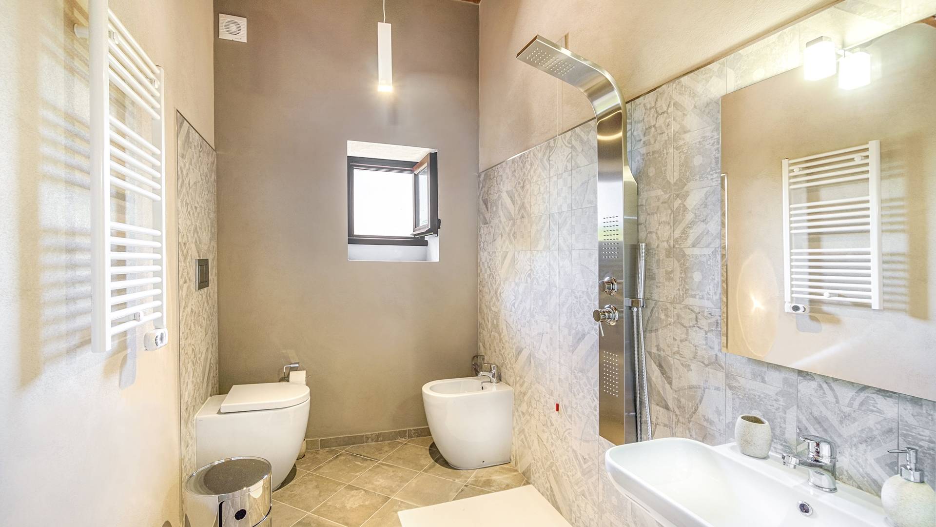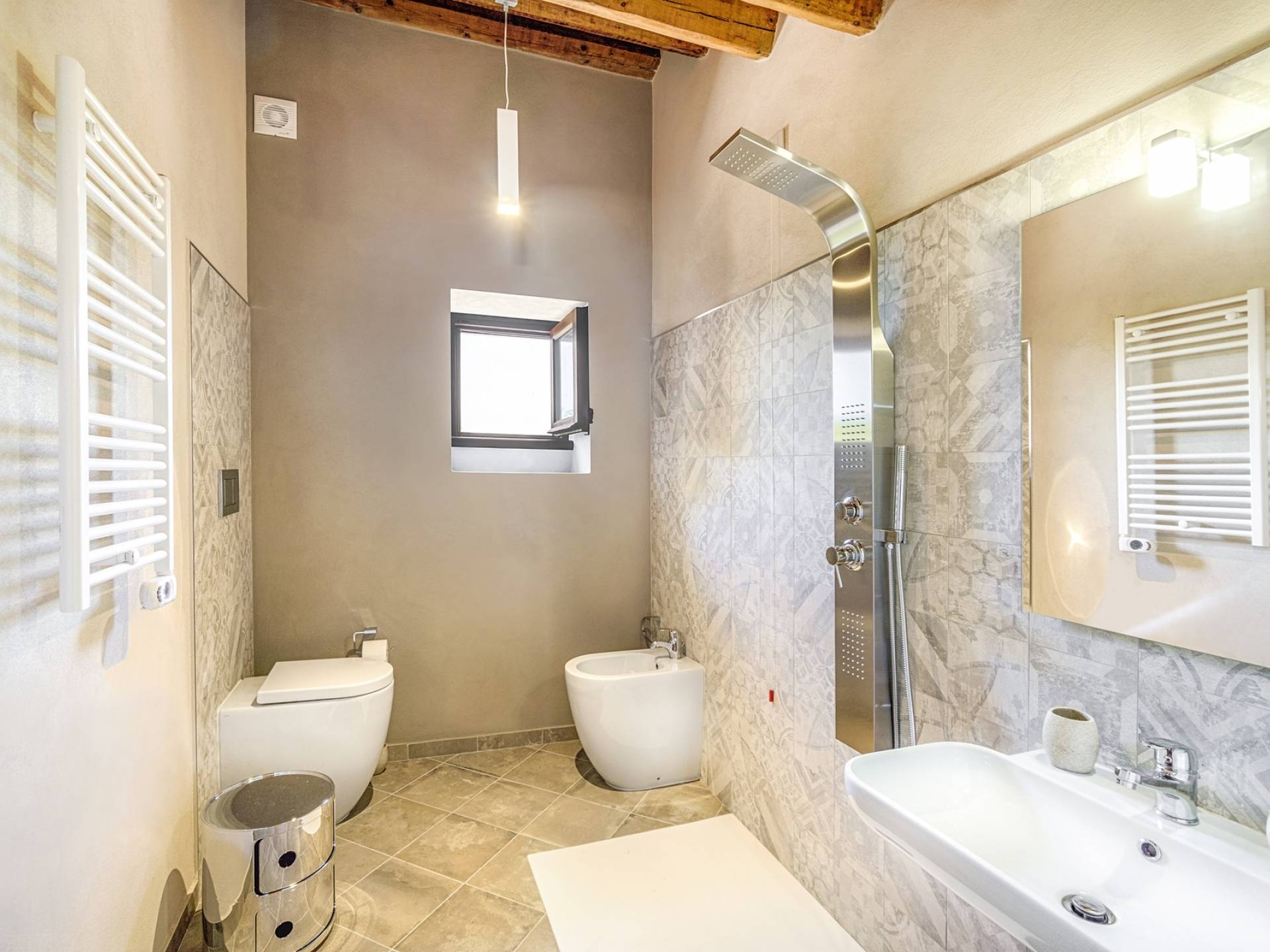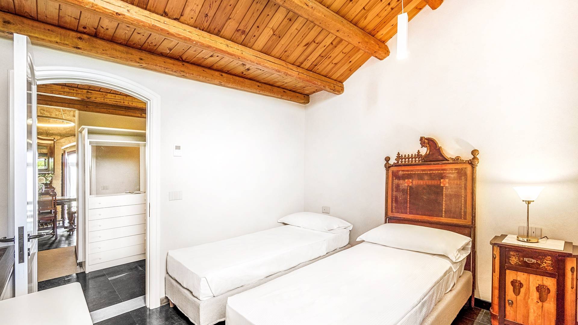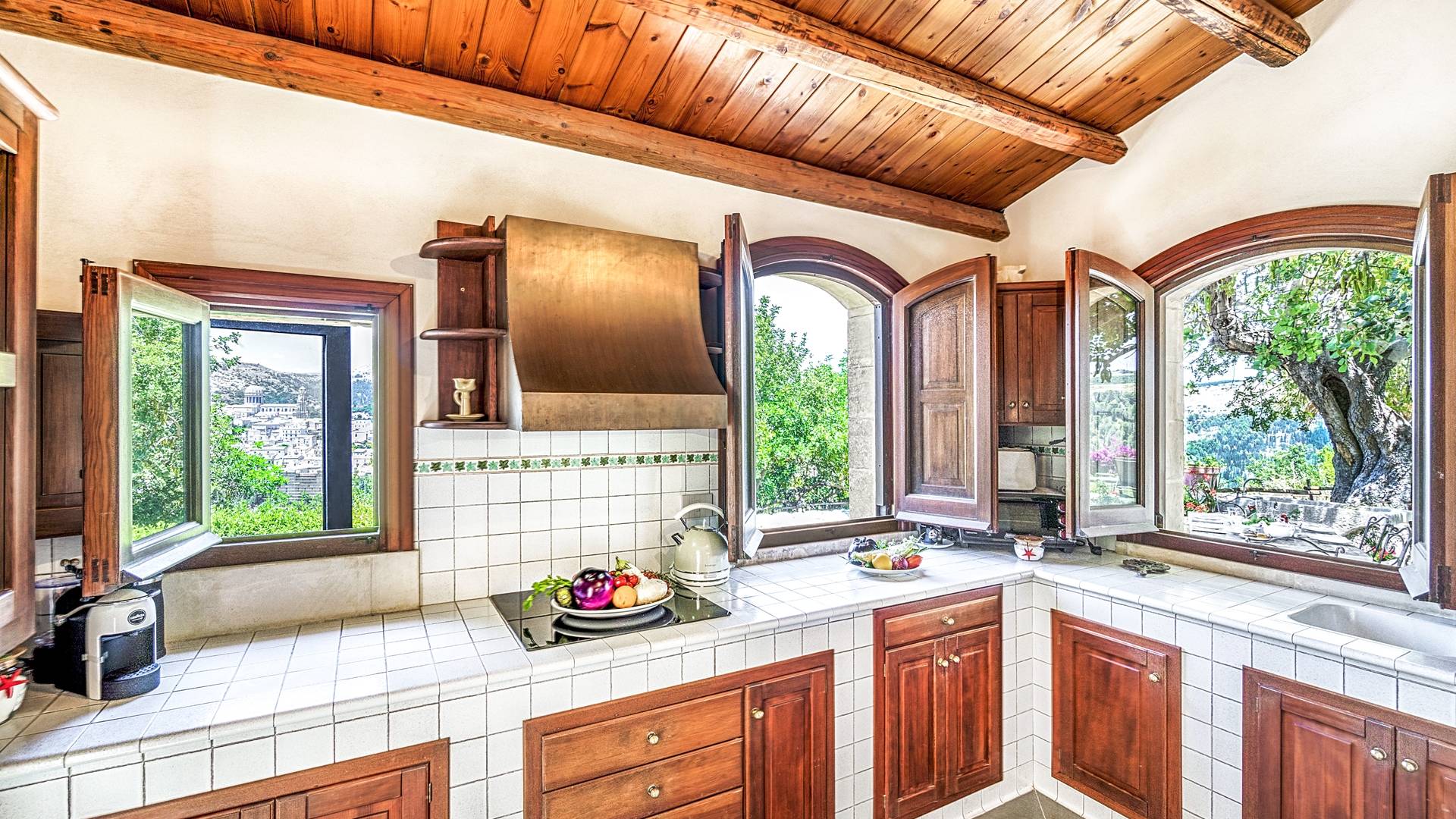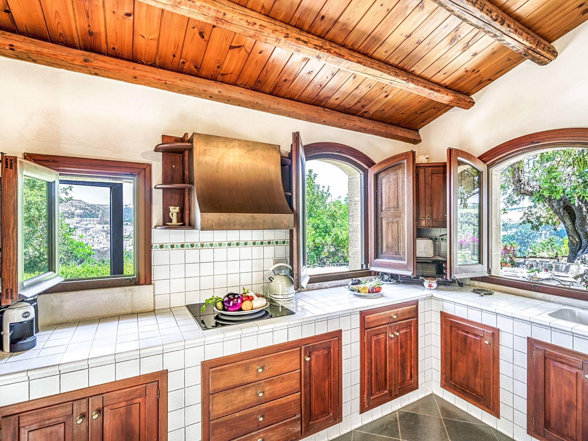 Eine von Olivenbäumen gesäumte Auffahrt führt Sie zum Hanggrundstück. Der Haupteingang ist durch die einstigen Kapellentüren mit dem schönen Glockenturm, der hoch über Ihnen steht.