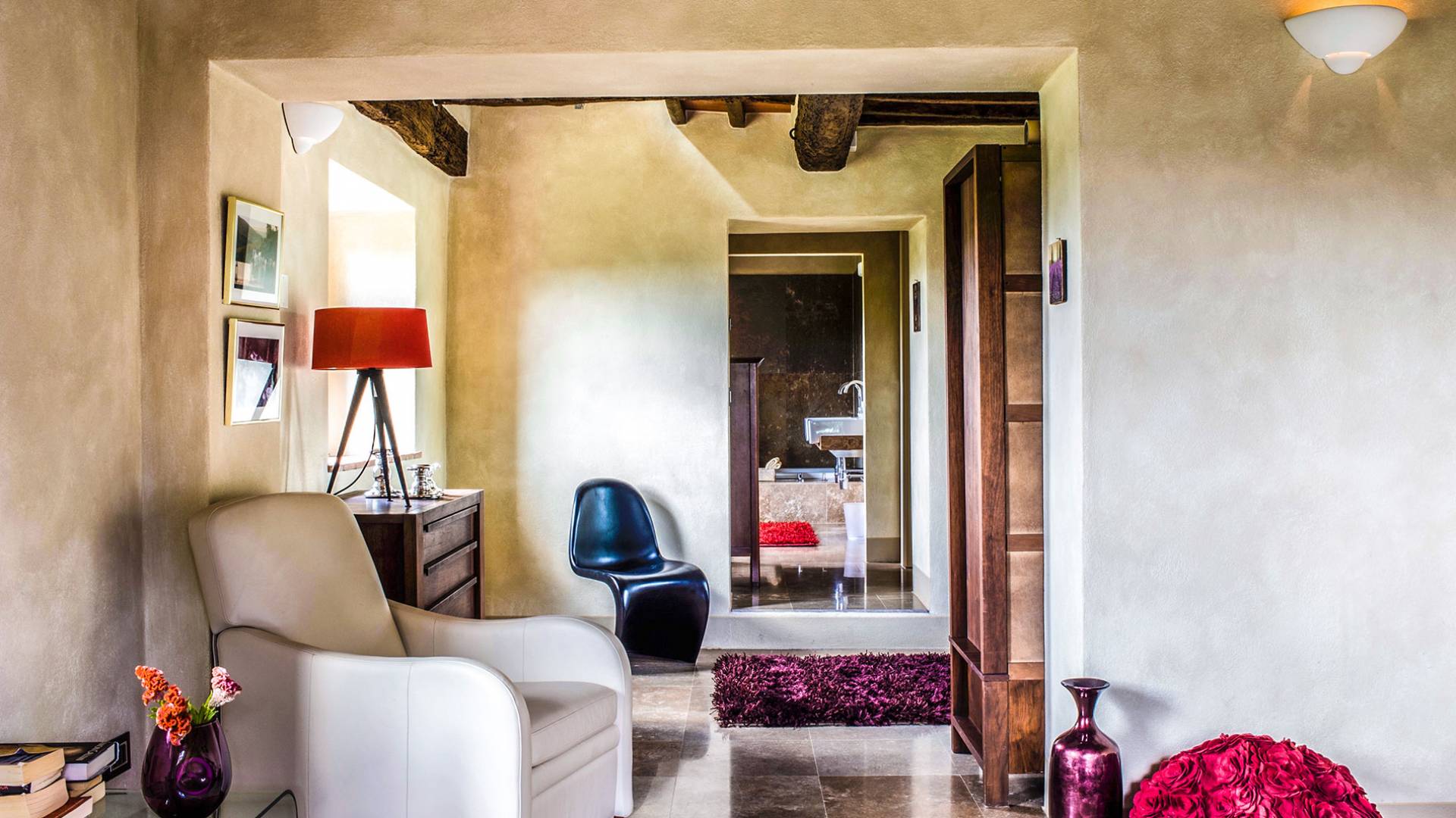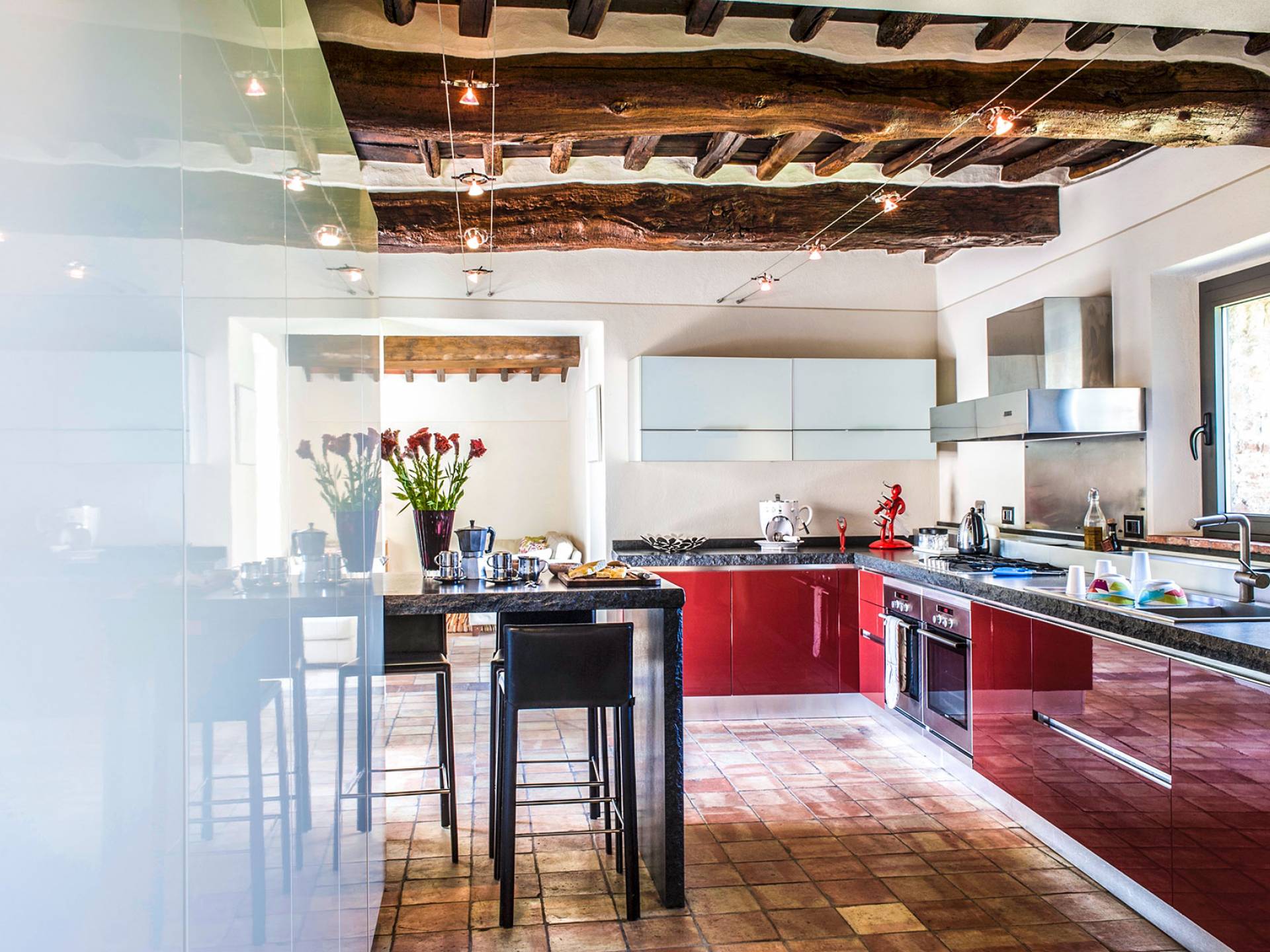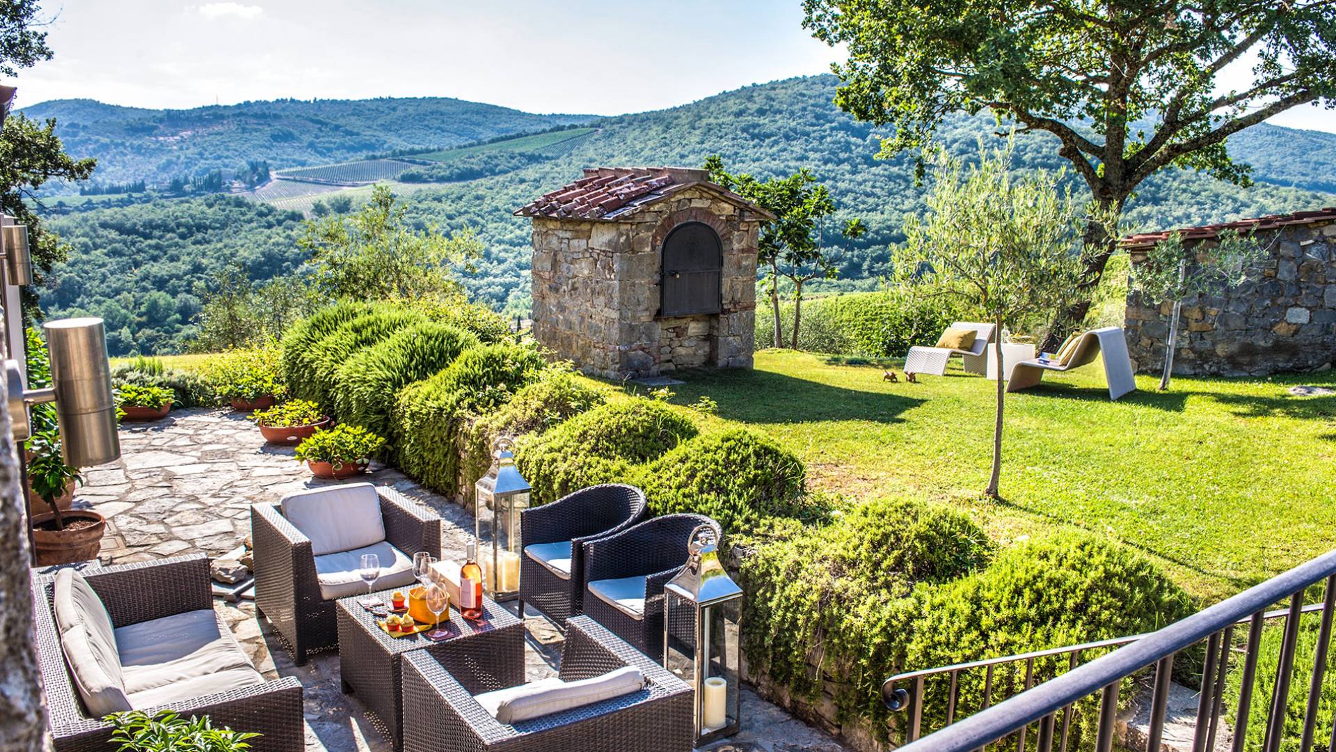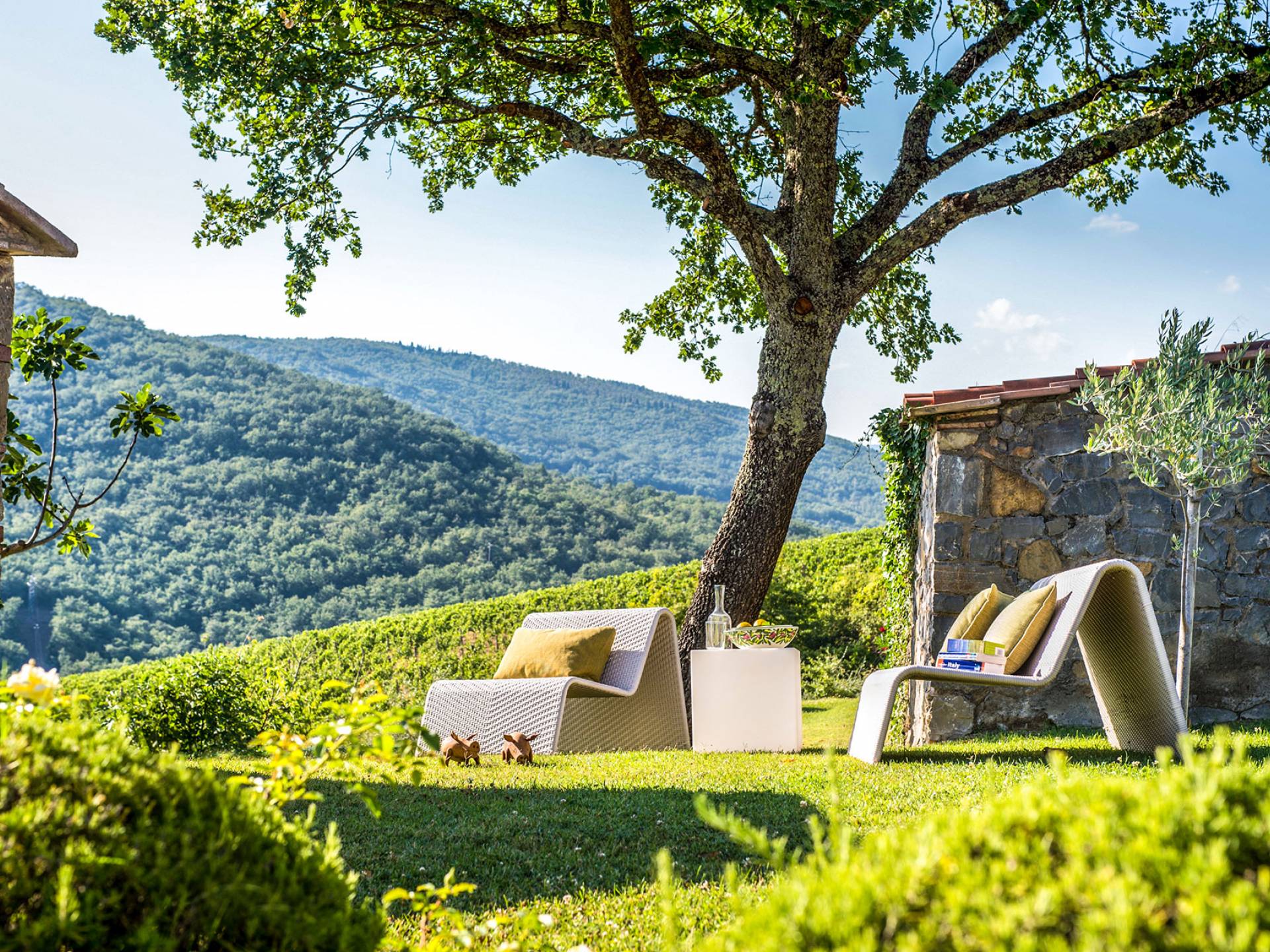 Auf einem Hügel in Gaiole in Chianti in einer vom Forbes-Magazin als die idyllischste in Europa eingestuften Gegend liegt die Villa Anna Tuscany mit 360-Grad-Blick, zwei Hektar großen Gärten und einem Infinity-Pool. Villa Anna Toskana bietet eine neue Perspektive auf das toskanische Leben. Das vierhundert Jahre alte Bauernhaus, das nach höchsten Designstandards und umweltfreundlichen Prinzipien restauriert wurde, ist heute ein weitläufiges und luxuriöses Einfamilienhaus, das den besten italienischen Stil und die beste Handwerkskunst mit zeitgenössischem Dekor vereint: ein offener Raum mit viel Licht, exponiert Stein, original Holzbalken, Travertinböden, zeitgenössische Möbel und moderne Kunst.