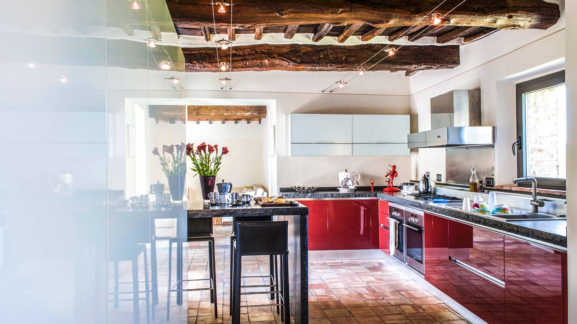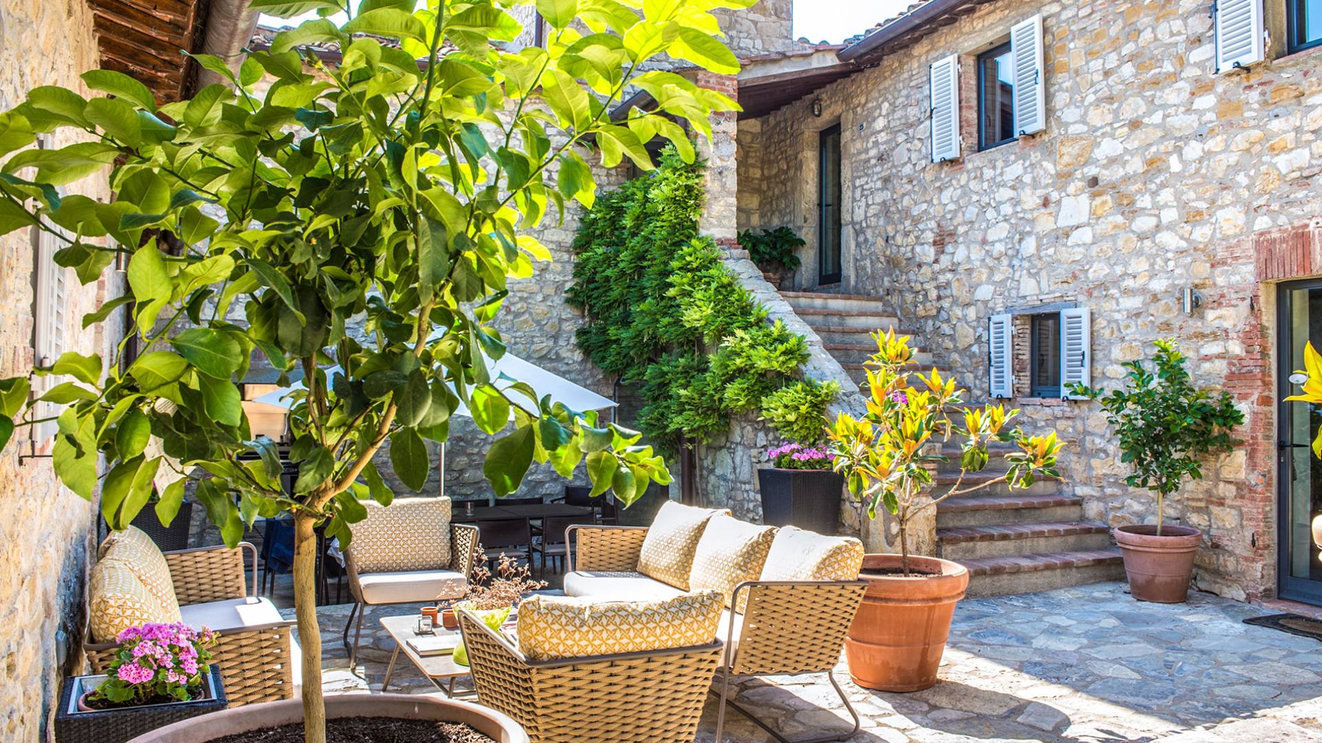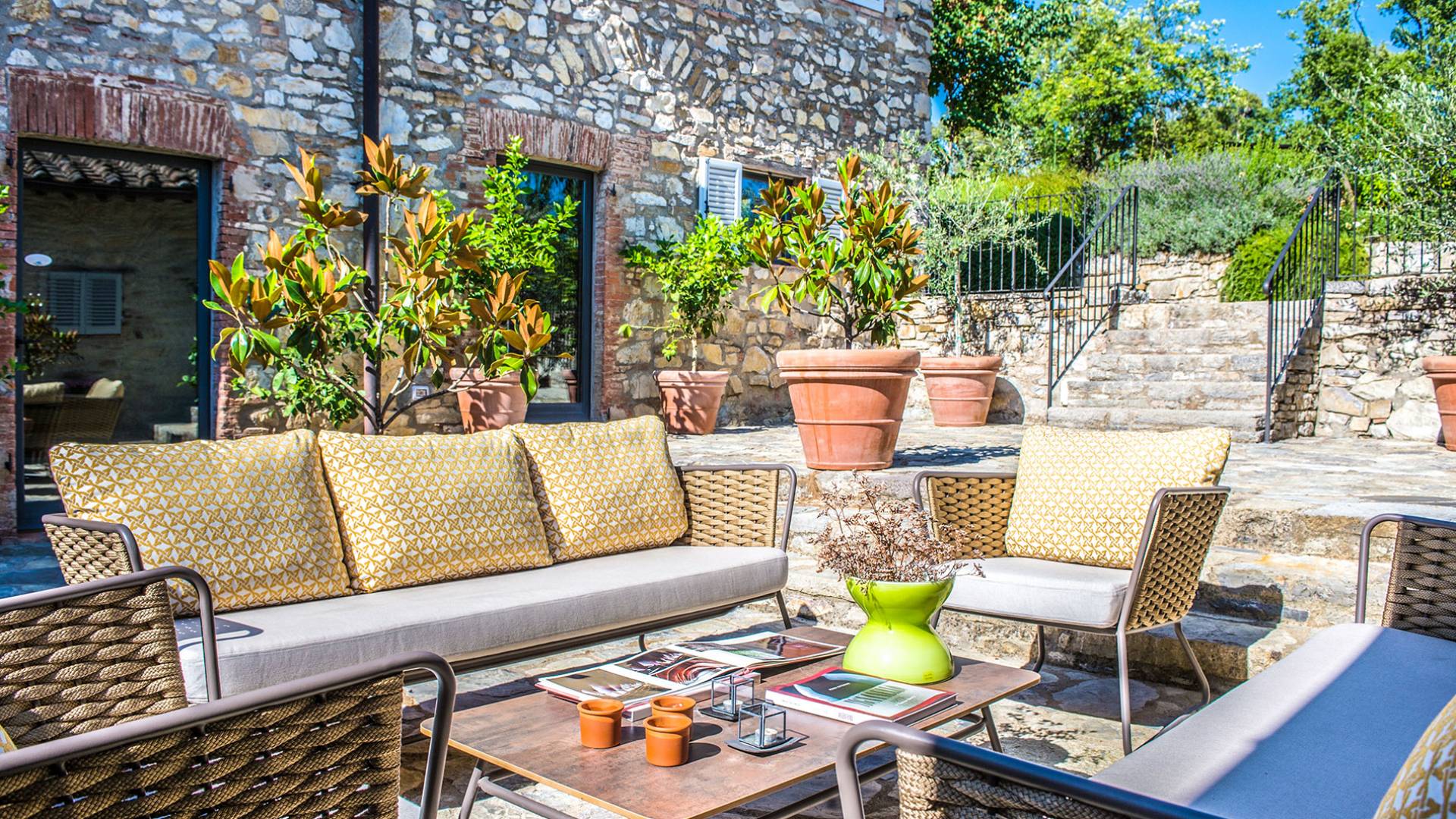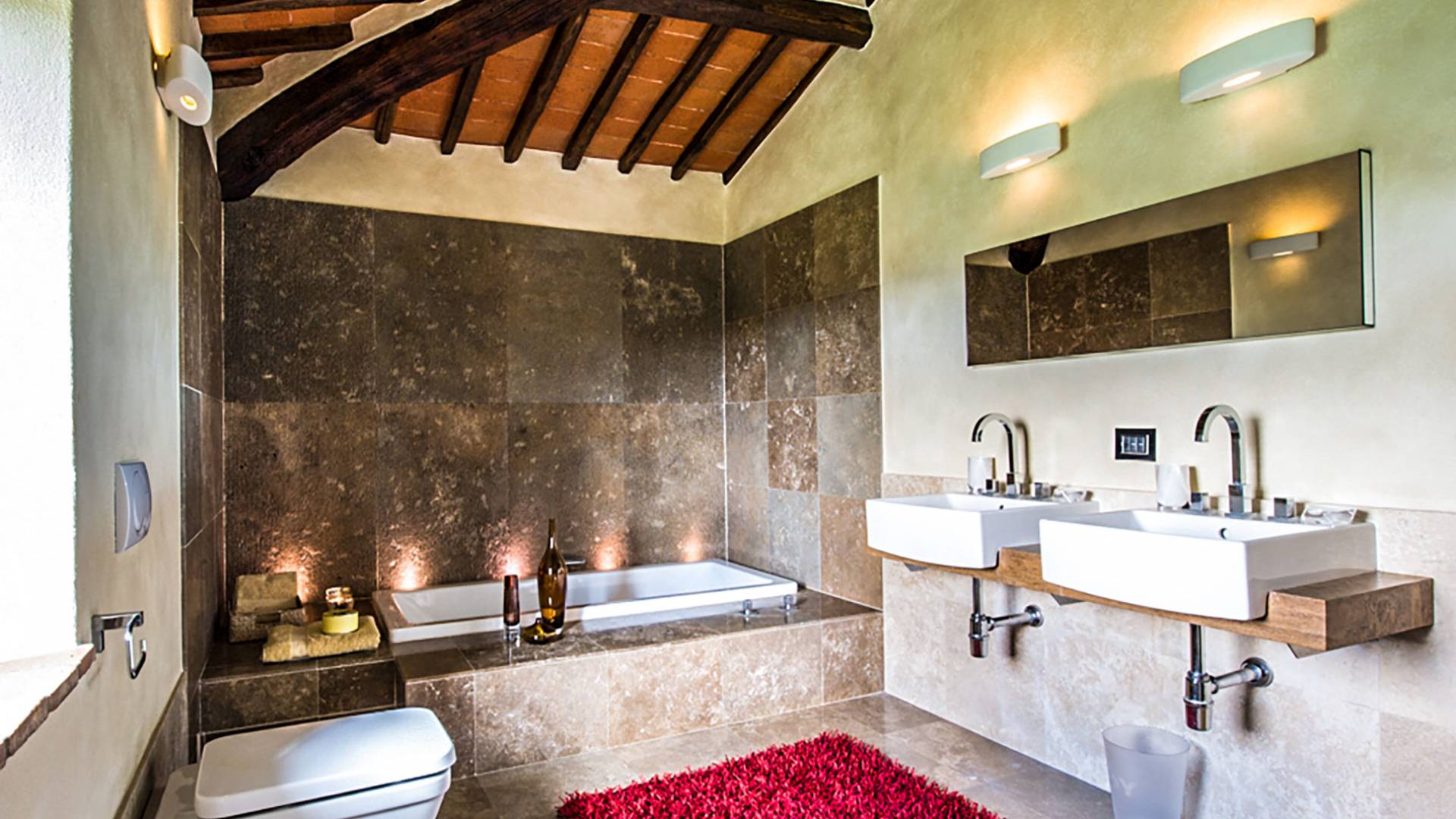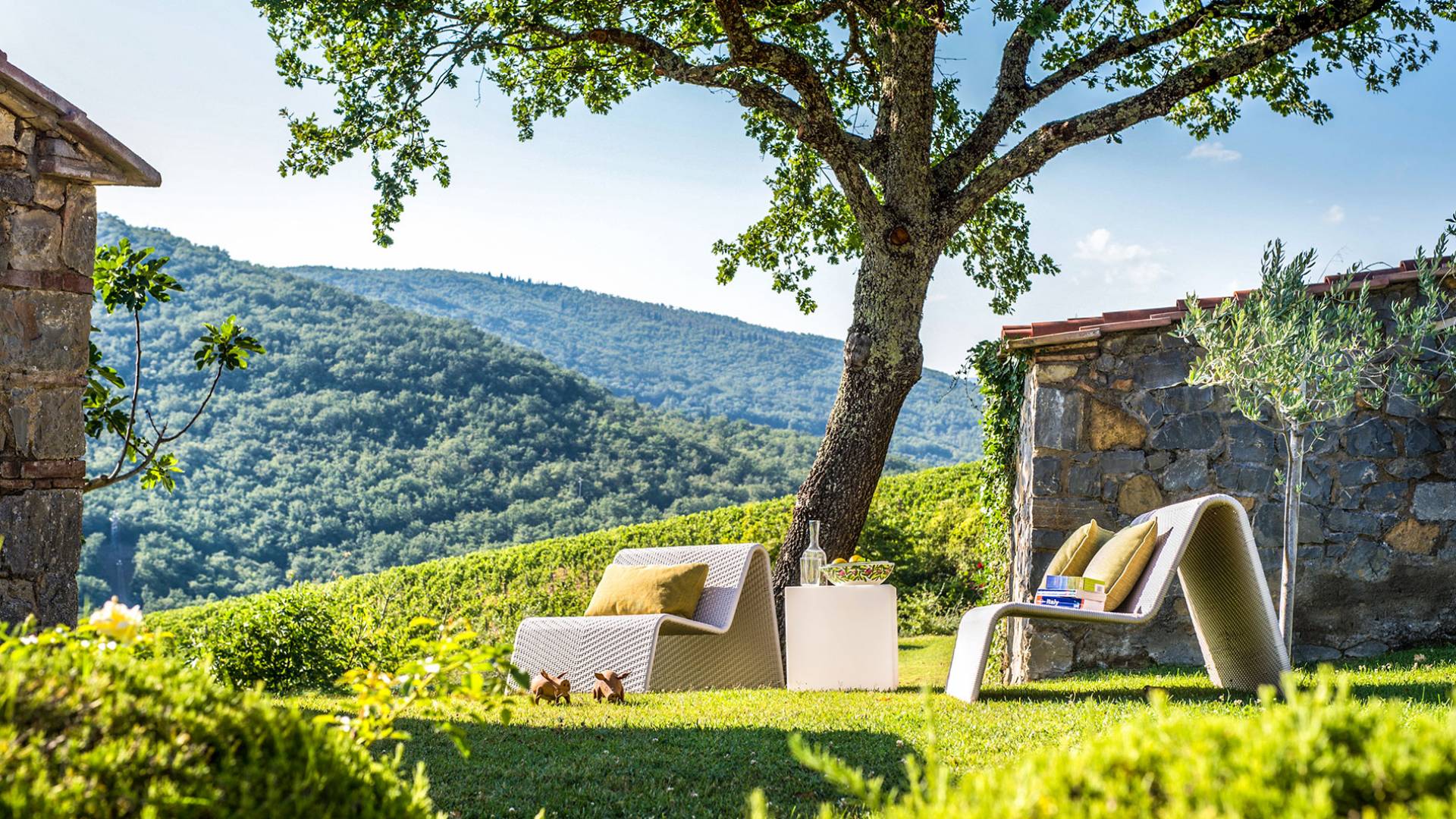 Auf einem Hügel in Gaiole in Chianti in einer vom Forbes-Magazin als die idyllischste in Europa eingestuften Gegend liegt die Villa Anna Tuscany mit 360-Grad-Blick, zwei Hektar großen Gärten und einem Infinity-Pool. Villa Anna Toskana bietet eine neue Perspektive auf das toskanische Leben. Das vierhundert Jahre alte Bauernhaus, das nach höchsten Designstandards und umweltfreundlichen Prinzipien restauriert wurde, ist heute ein weitläufiges und luxuriöses Einfamilienhaus, das den besten italienischen Stil und die beste Handwerkskunst mit zeitgenössischem Dekor vereint: ein offener Raum mit viel Licht, exponiert Stein, original Holzbalken, Travertinböden, zeitgenössische Möbel und moderne Kunst.