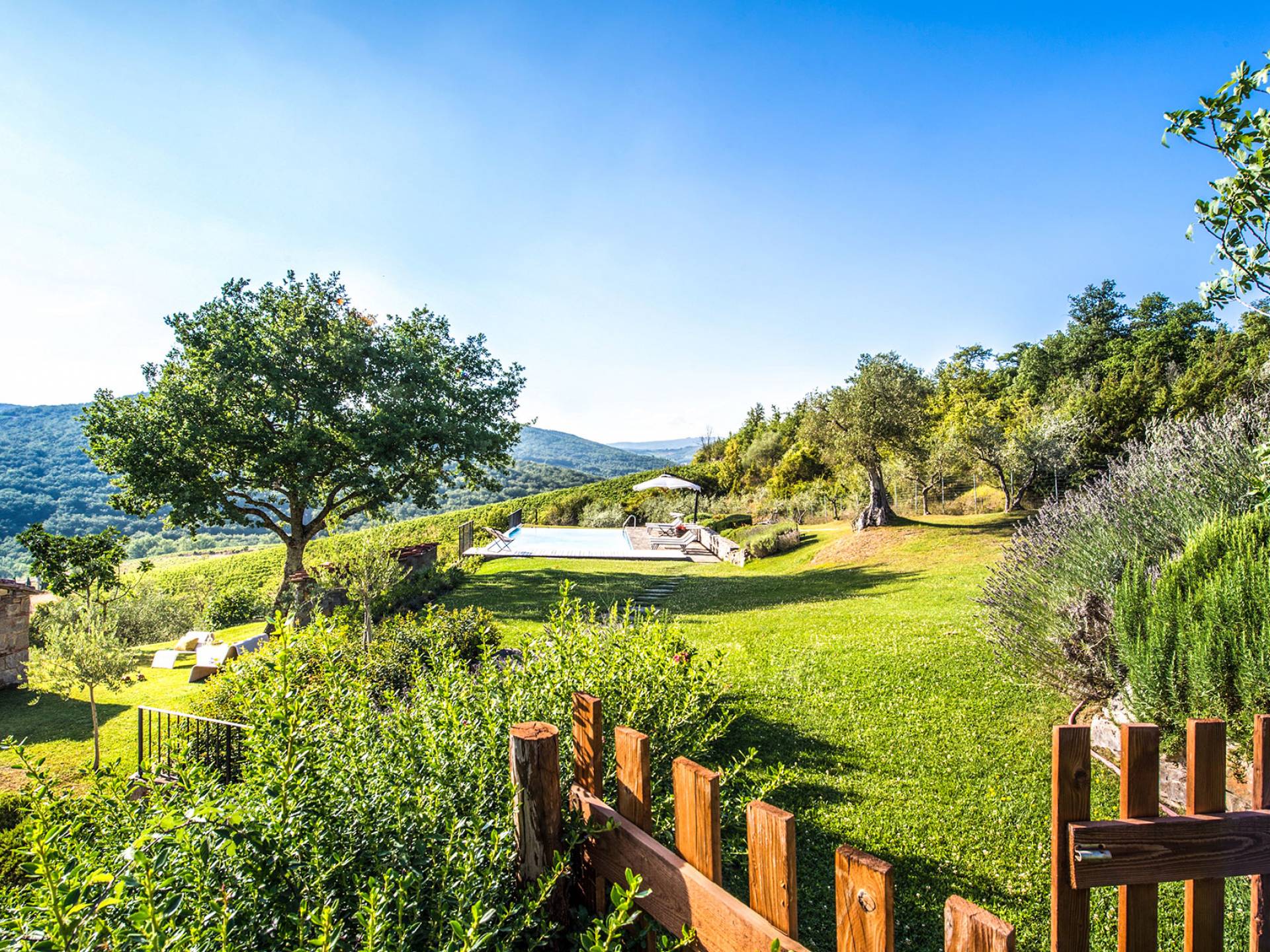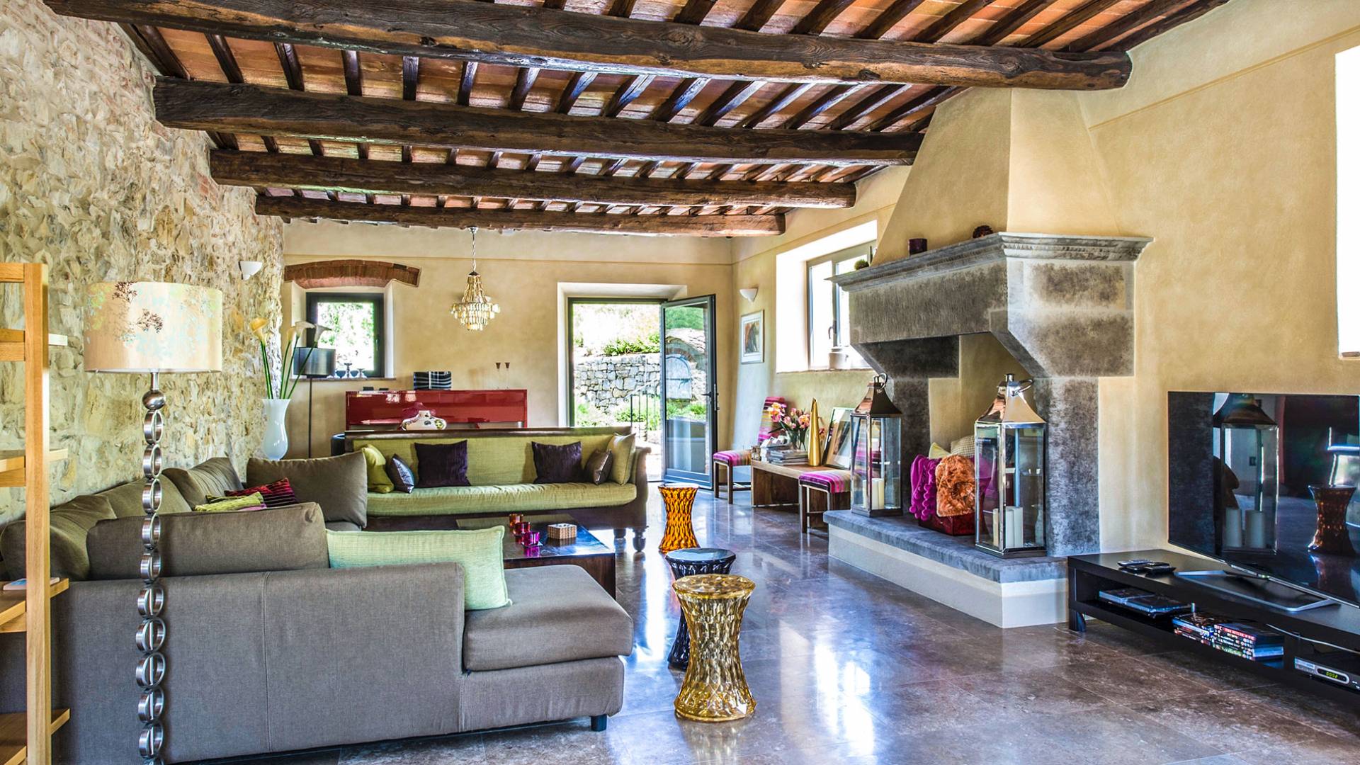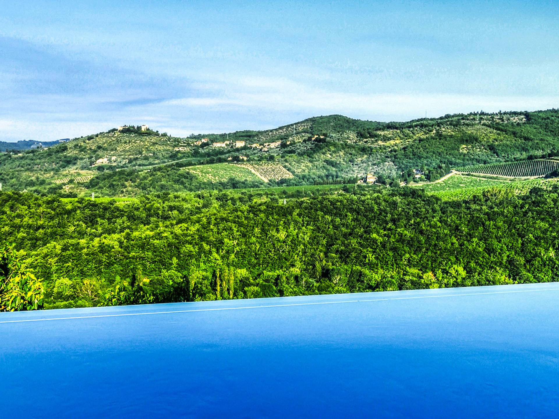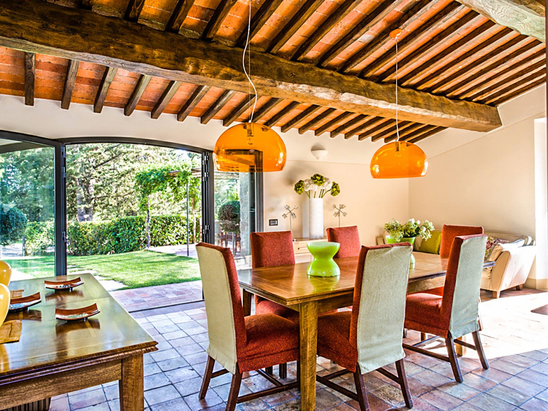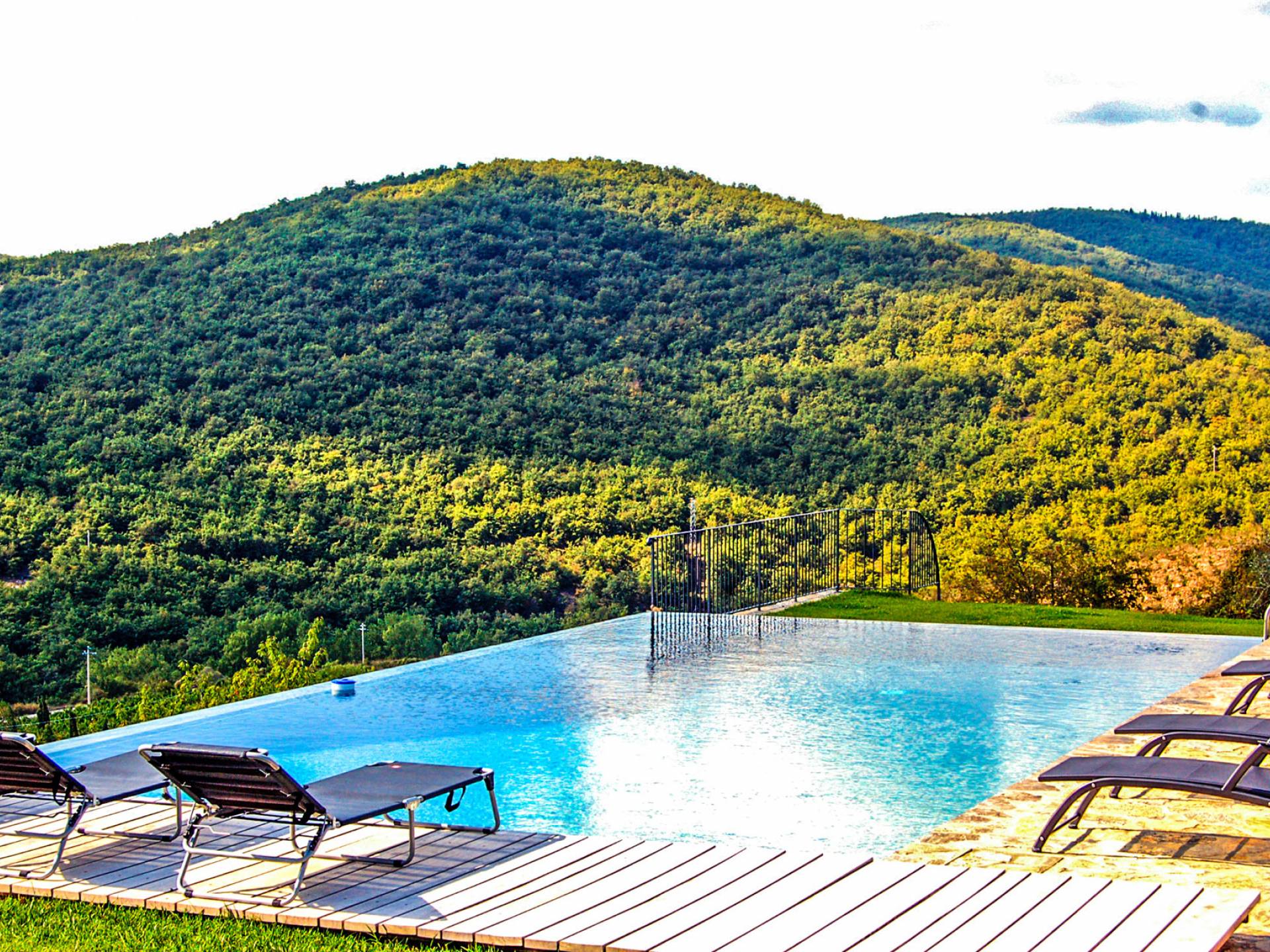 Für Umweltbewusste wird Energie aus Sonnenkollektoren gewonnen, Holz treibt die Fußbodenheizung an und sammelt Regenwasser auf den makellosen Rasenflächen. Für Touristen sind Florenz, Siena, San Gimignano und andere schöne Orte vor der Haustür. Für diejenigen, die gerne essen und trinken, erwartet Sie eine endlose Auswahl an Restaurants, hauseigenen Restaurants oder der Besuch nahegelegener Weingüter.