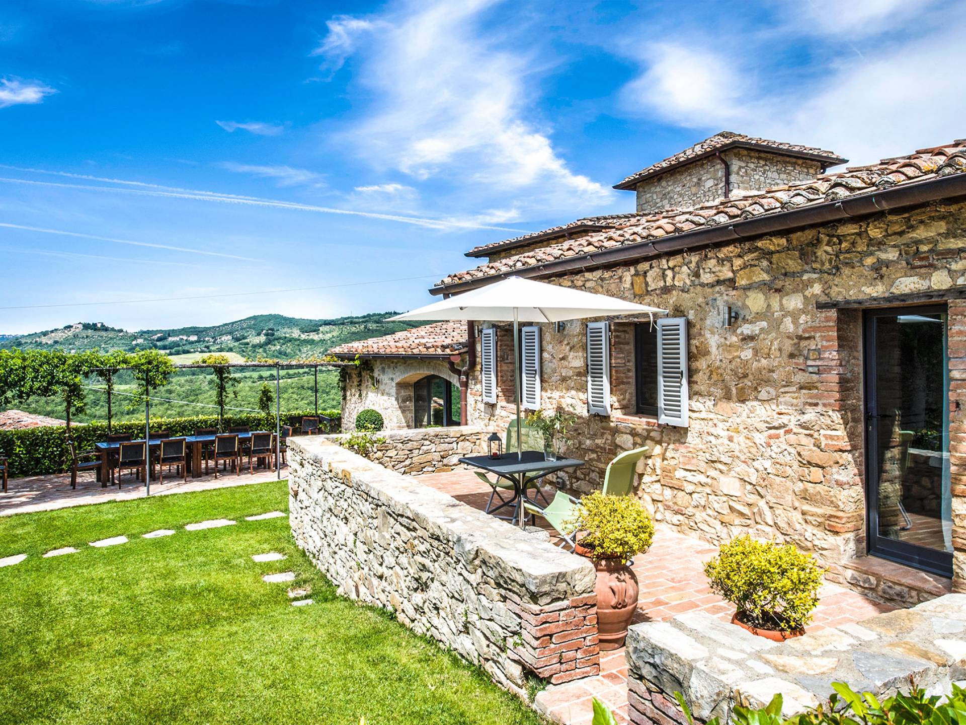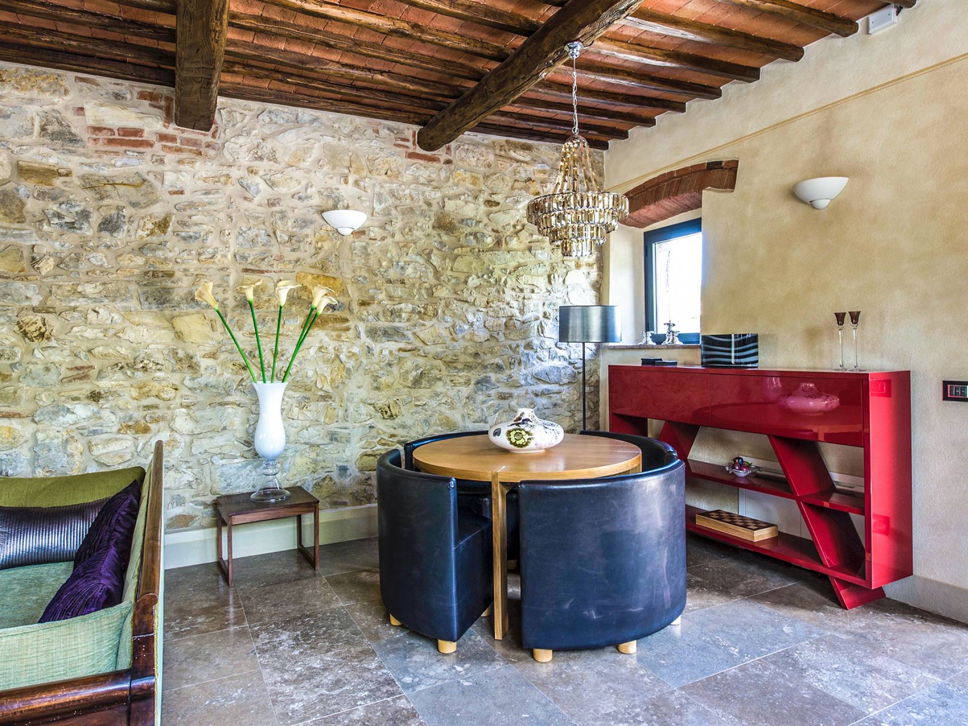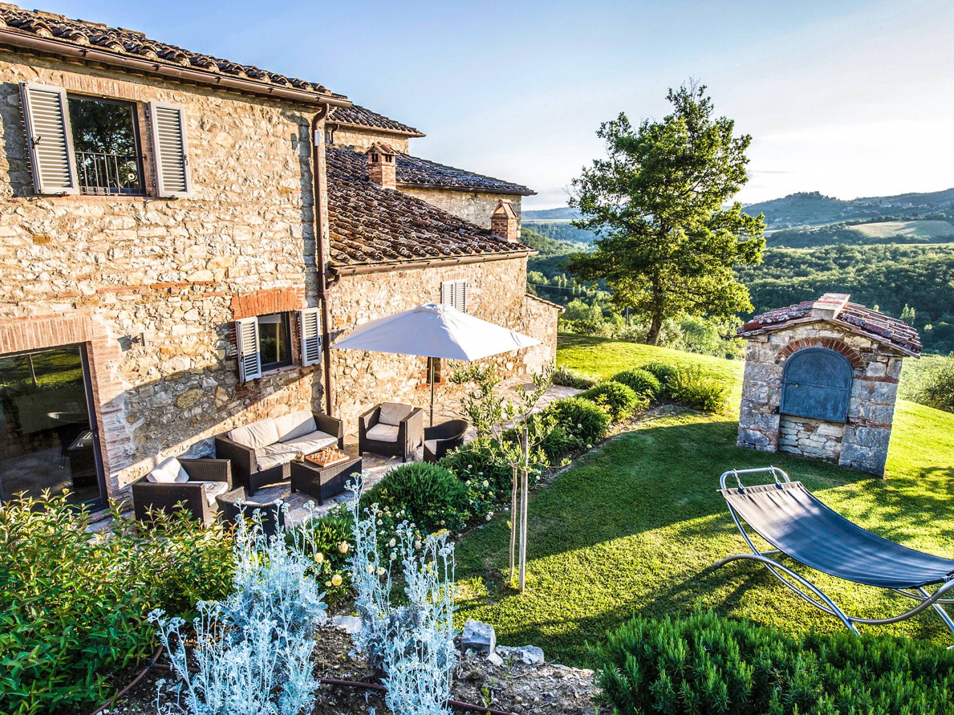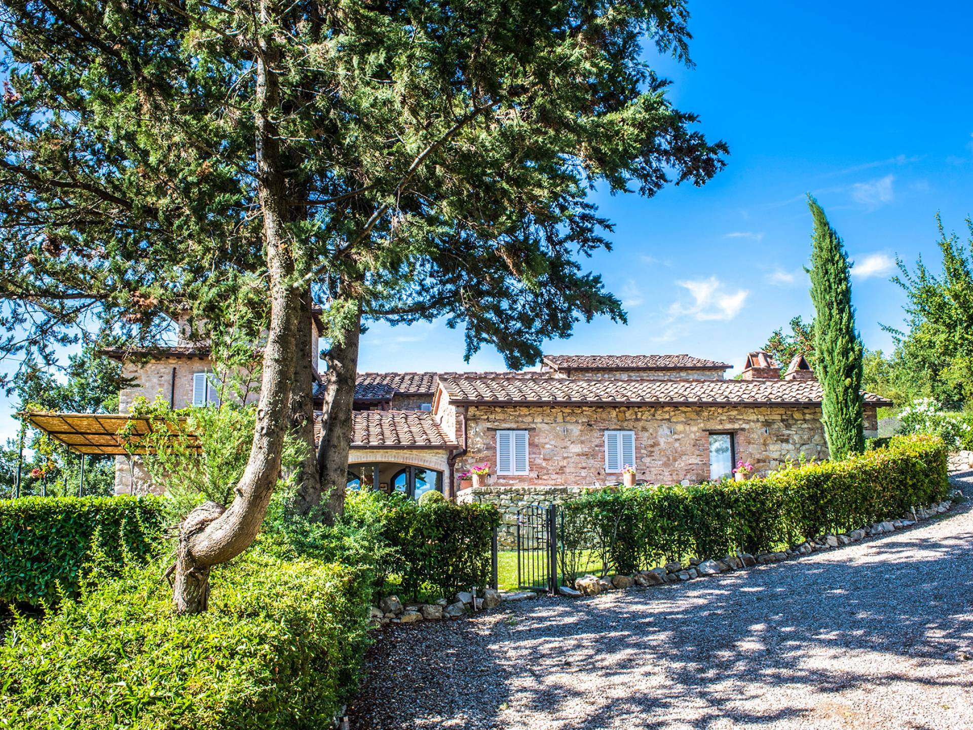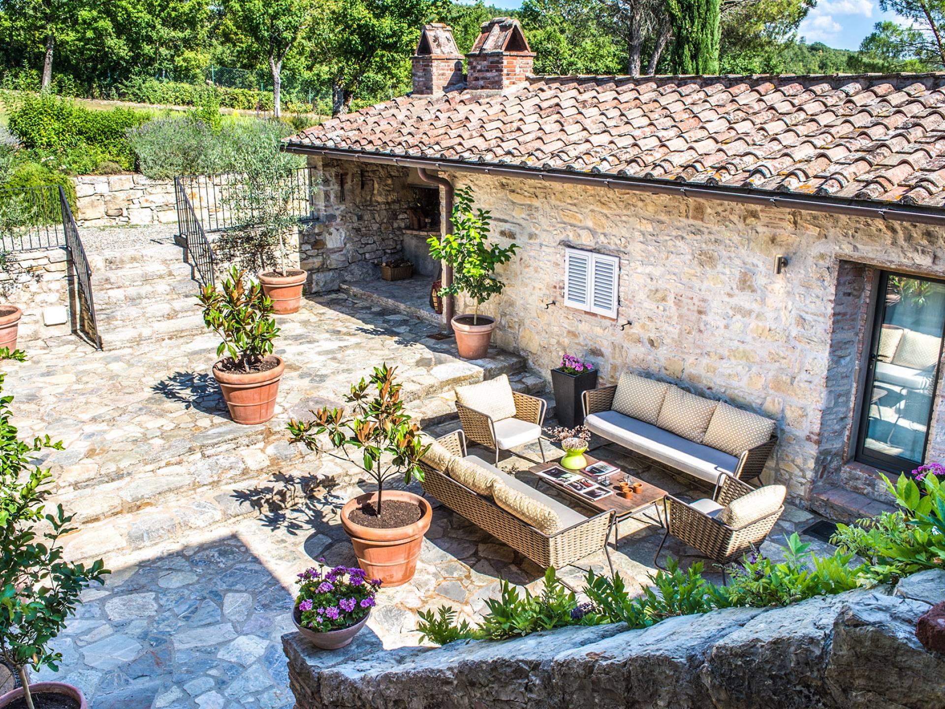 Für Umweltbewusste wird Energie aus Sonnenkollektoren gewonnen, Holz treibt die Fußbodenheizung an und sammelt Regenwasser auf den makellosen Rasenflächen. Für Touristen sind Florenz, Siena, San Gimignano und andere schöne Orte vor der Haustür. Für diejenigen, die gerne essen und trinken, erwartet Sie eine endlose Auswahl an Restaurants, hauseigenen Restaurants oder der Besuch nahegelegener Weingüter.