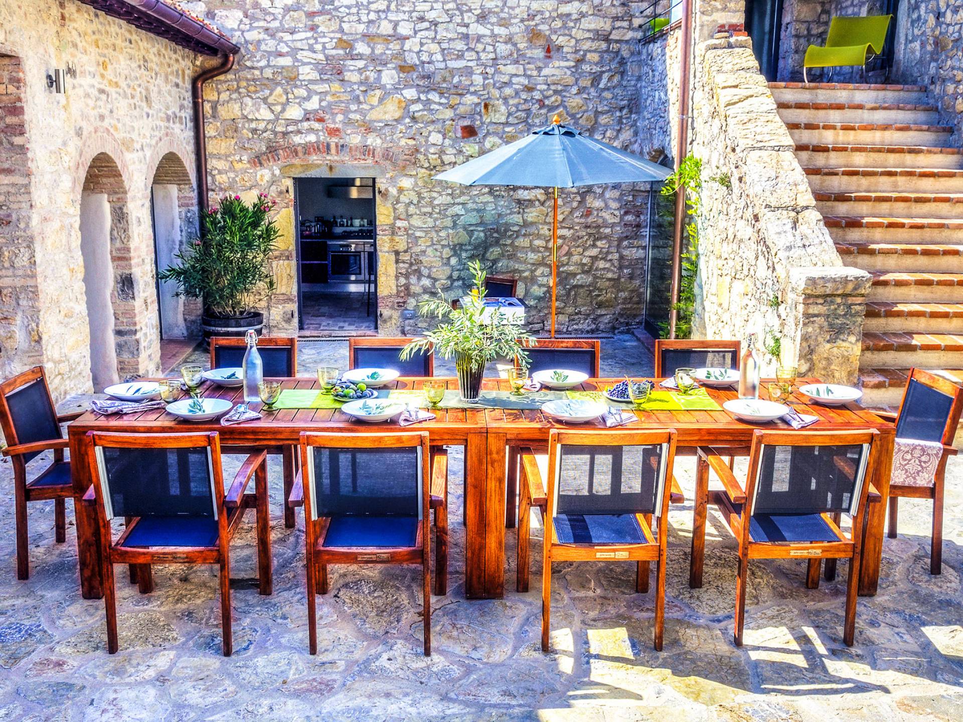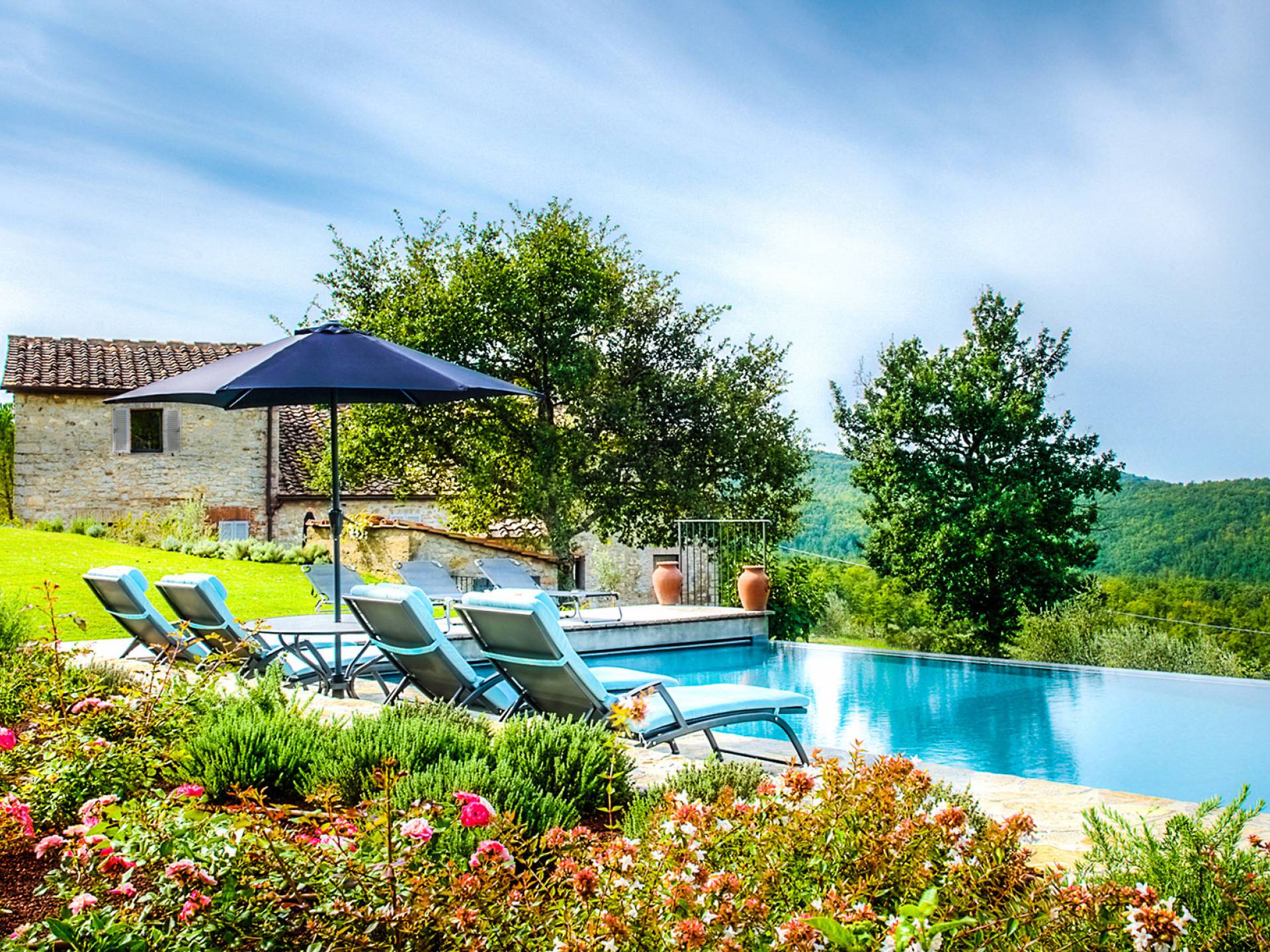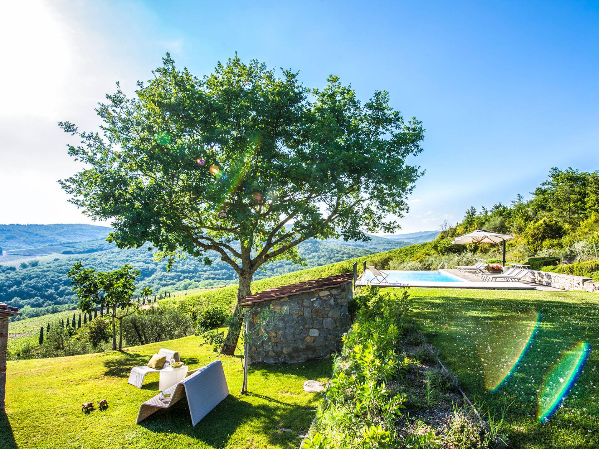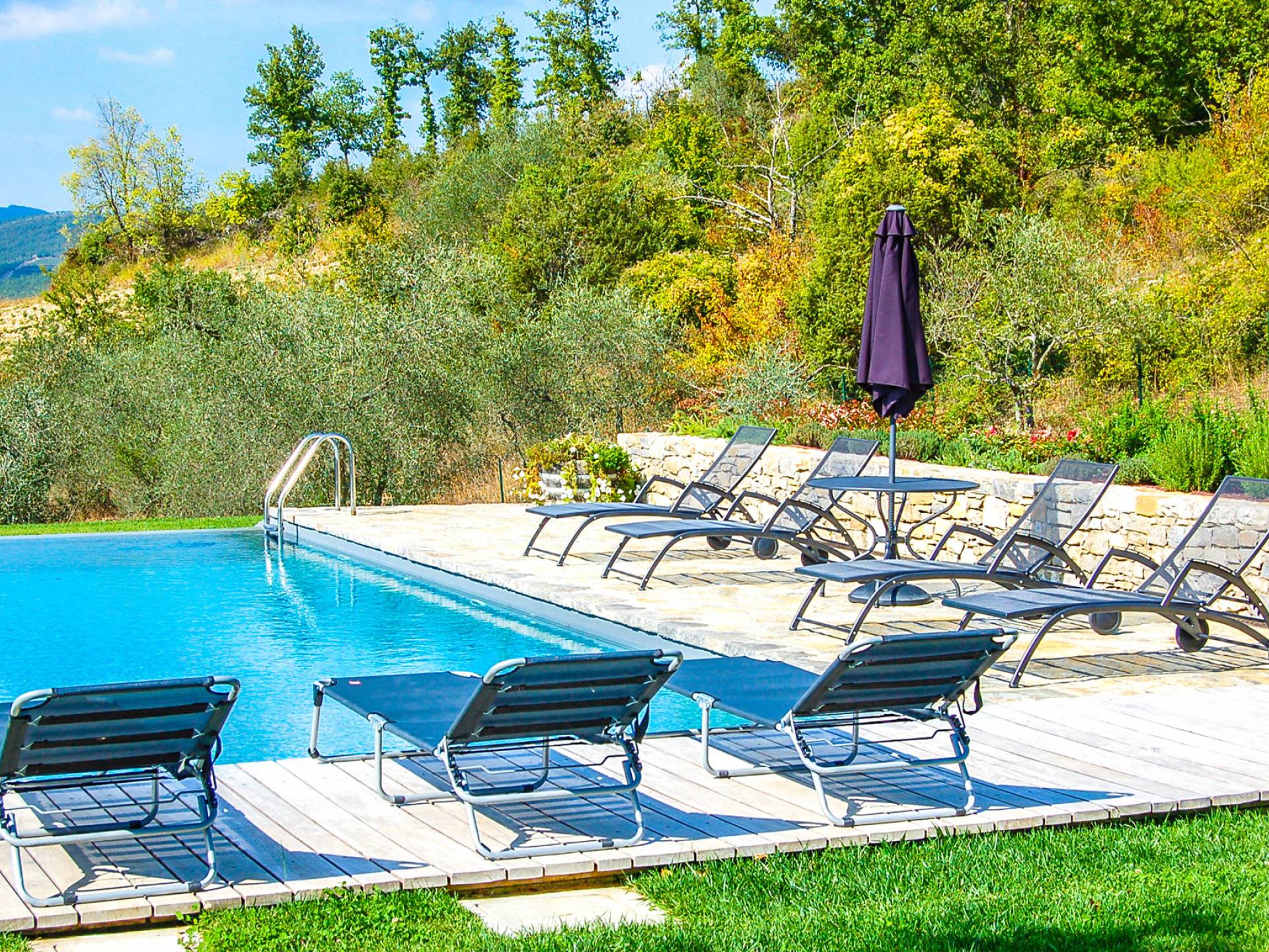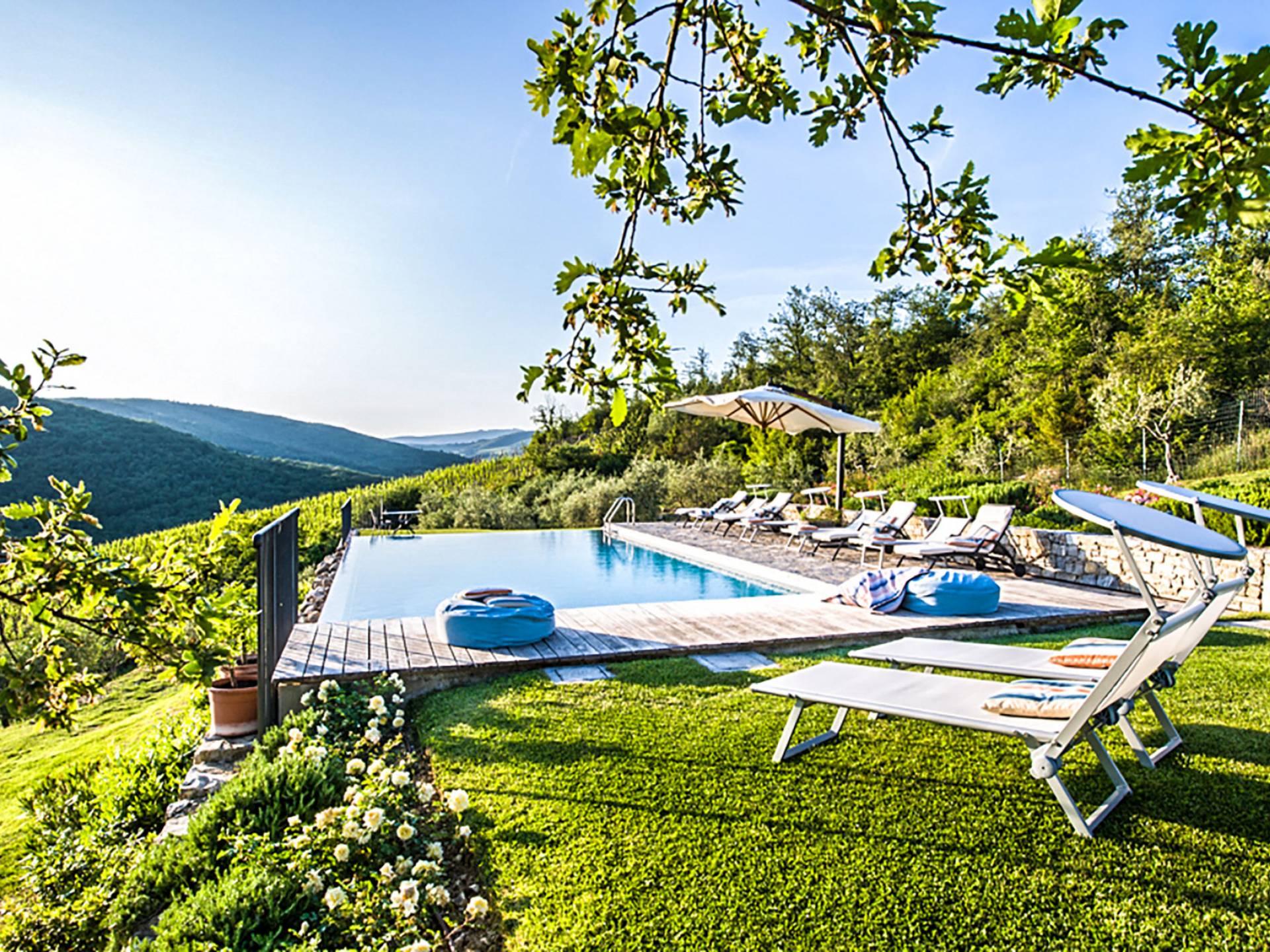 Für Umweltbewusste wird Energie aus Sonnenkollektoren gewonnen, Holz treibt die Fußbodenheizung an und sammelt Regenwasser auf den makellosen Rasenflächen. Für Touristen sind Florenz, Siena, San Gimignano und andere schöne Orte vor der Haustür. Für diejenigen, die gerne essen und trinken, erwartet Sie eine endlose Auswahl an Restaurants, hauseigenen Restaurants oder der Besuch nahegelegener Weingüter.
