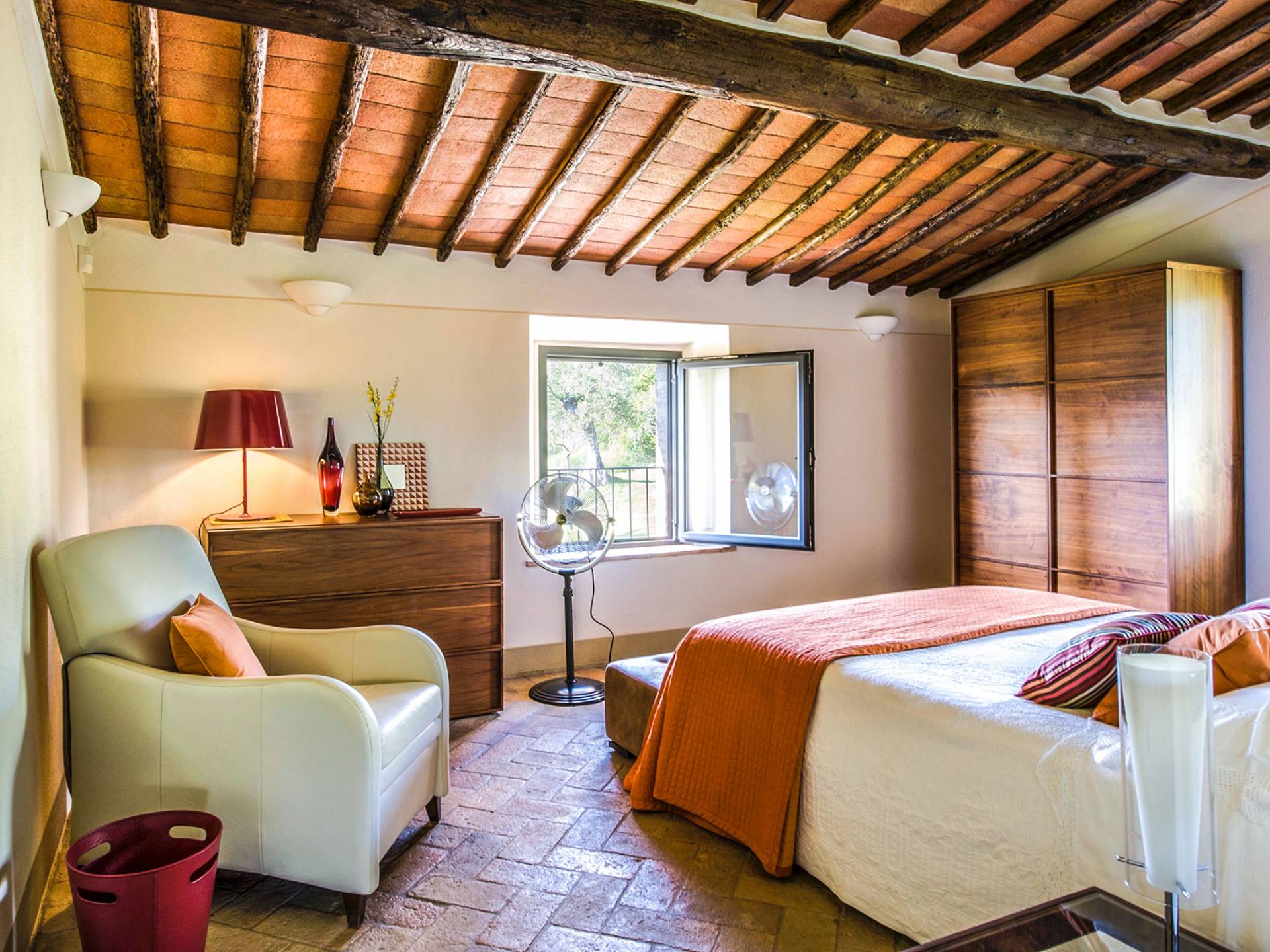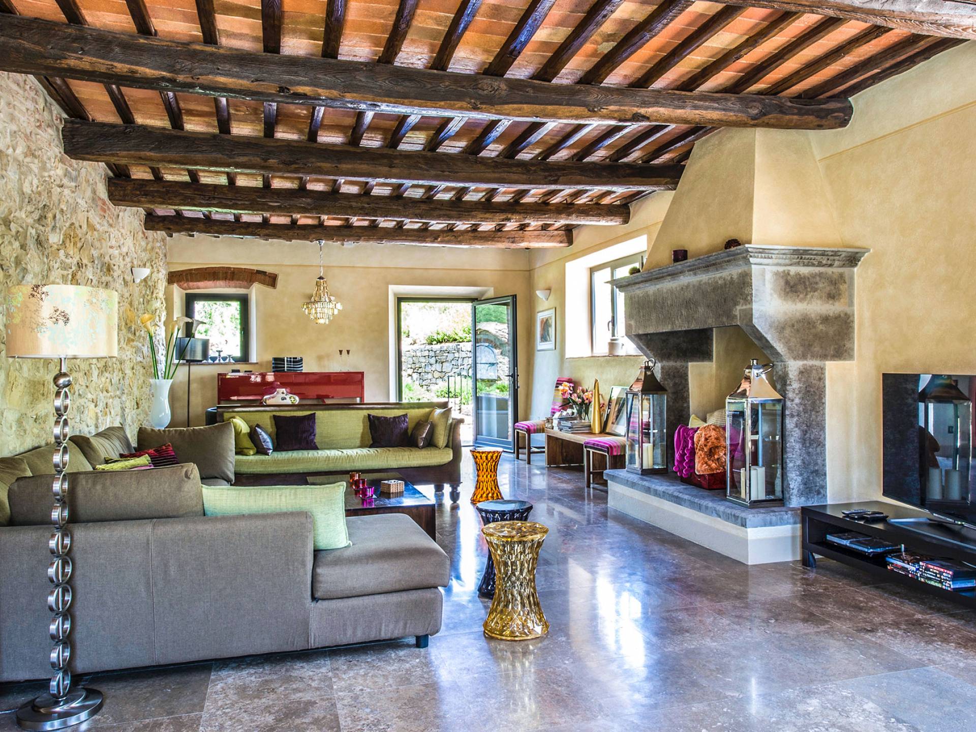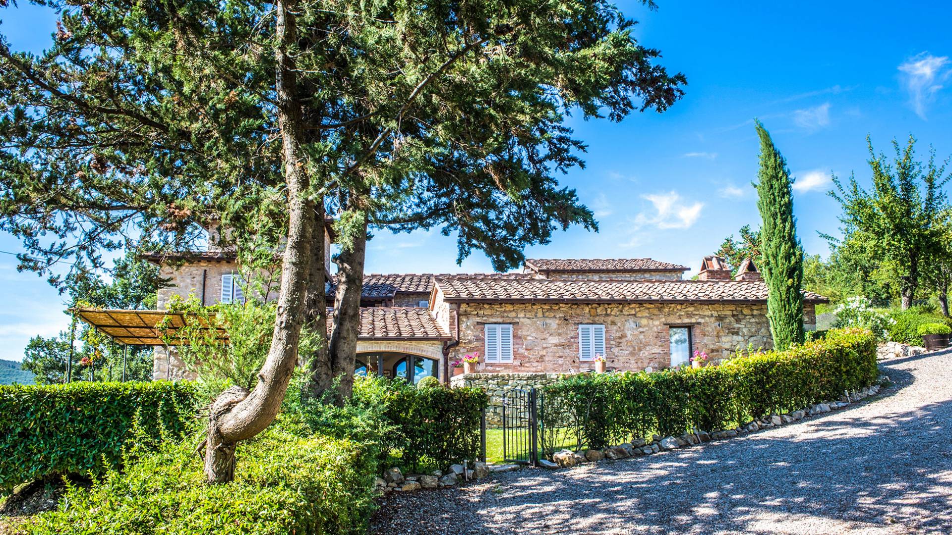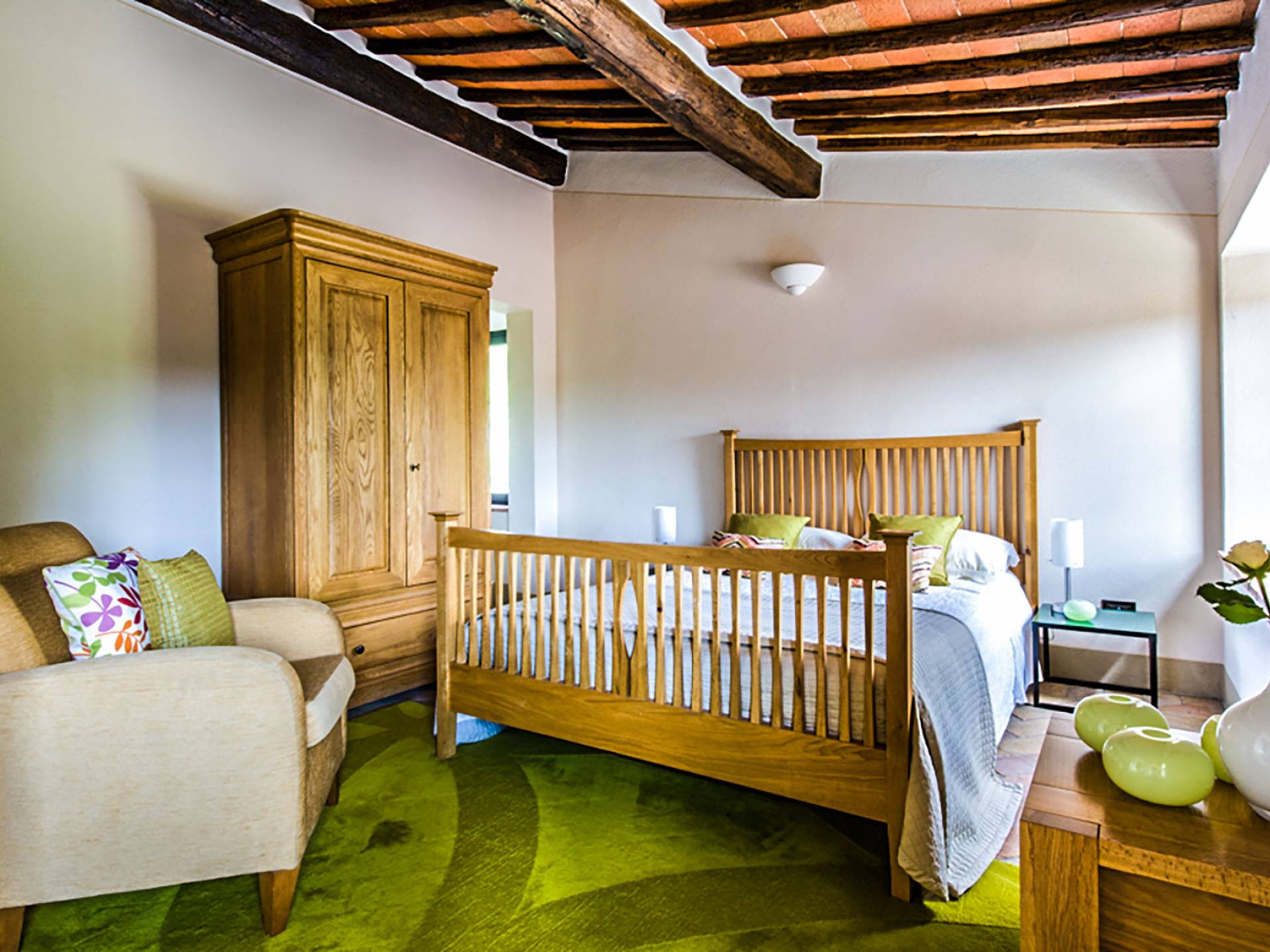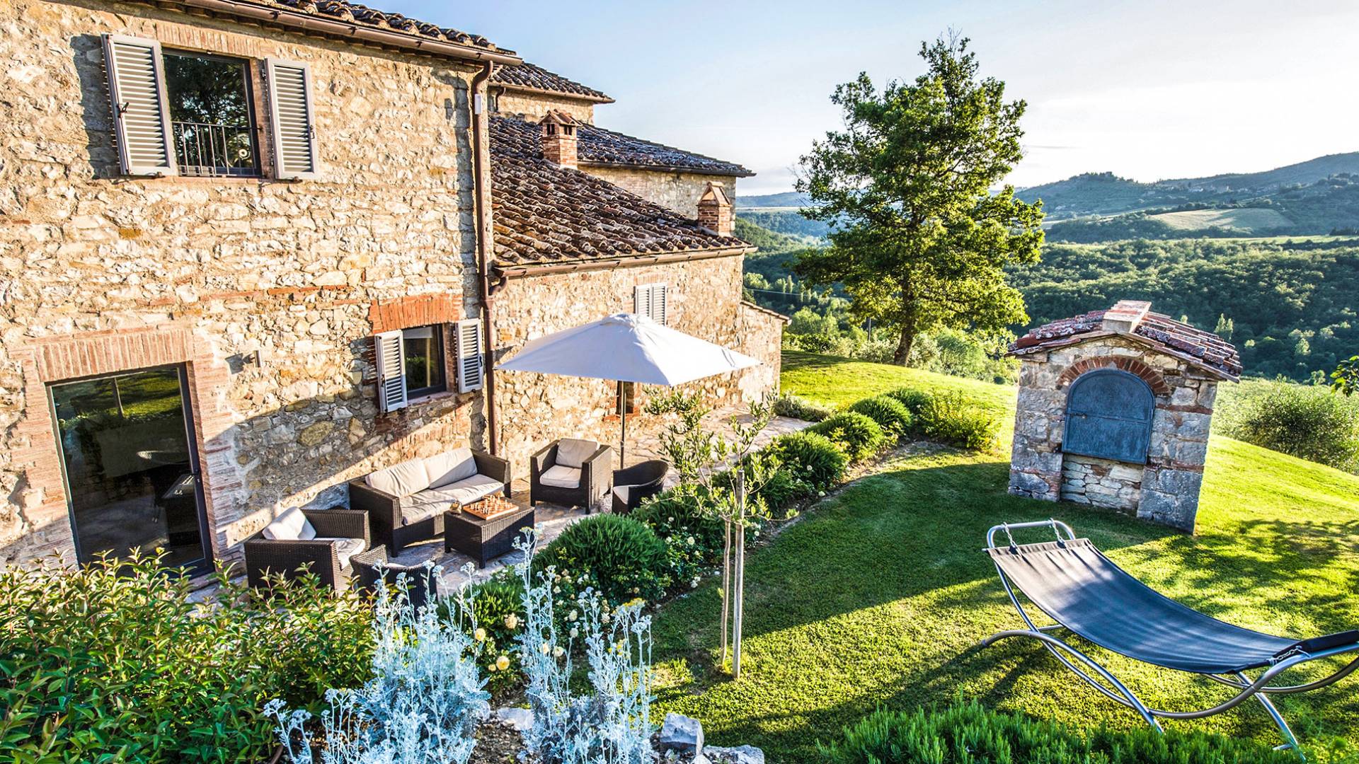 Für Umweltbewusste wird Energie aus Sonnenkollektoren gewonnen, Holz treibt die Fußbodenheizung an und sammelt Regenwasser auf den makellosen Rasenflächen. Für Touristen sind Florenz, Siena, San Gimignano und andere schöne Orte vor der Haustür. Für diejenigen, die gerne essen und trinken, erwartet Sie eine endlose Auswahl an Restaurants, hauseigenen Restaurants oder der Besuch nahegelegener Weingüter.