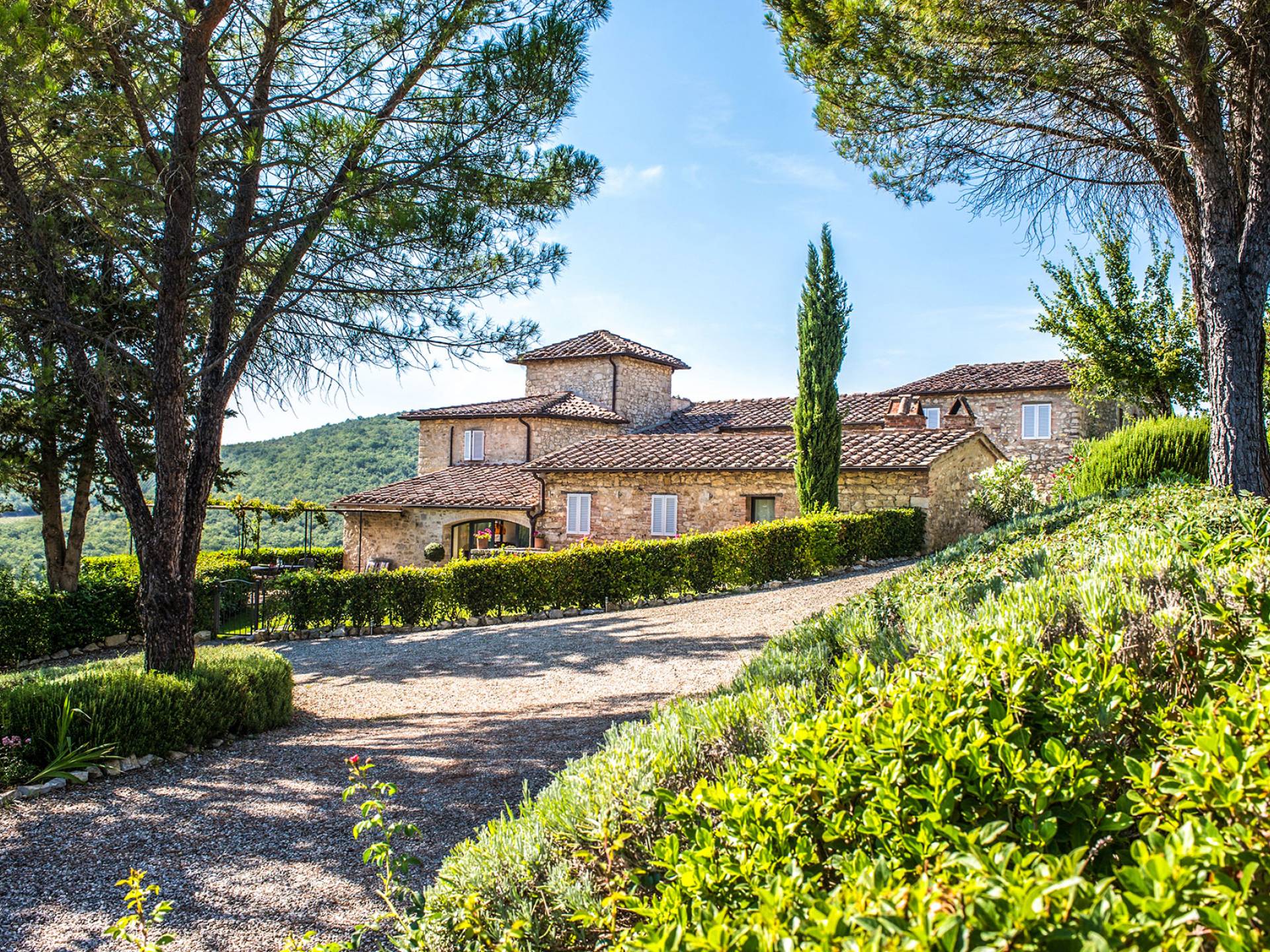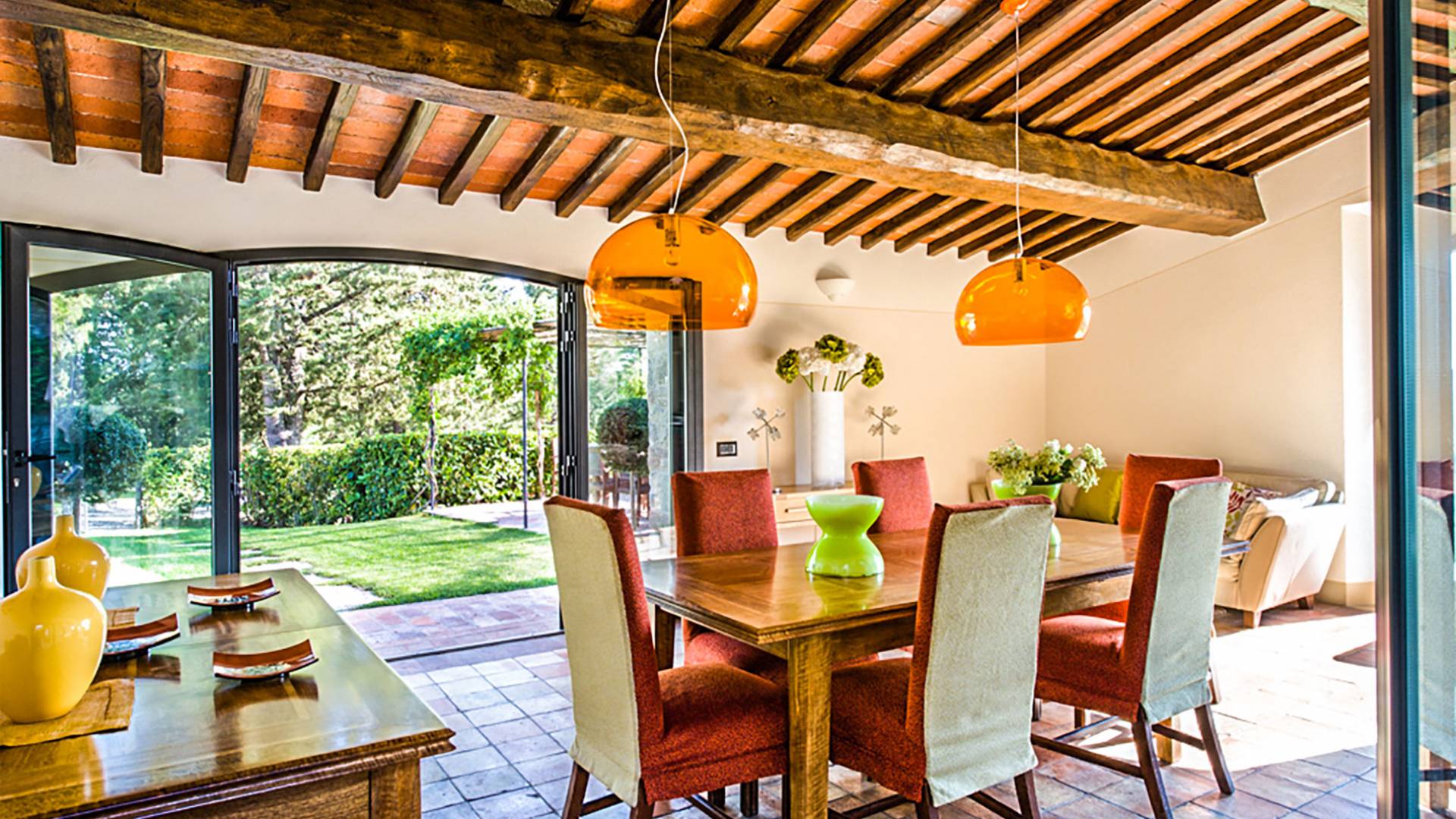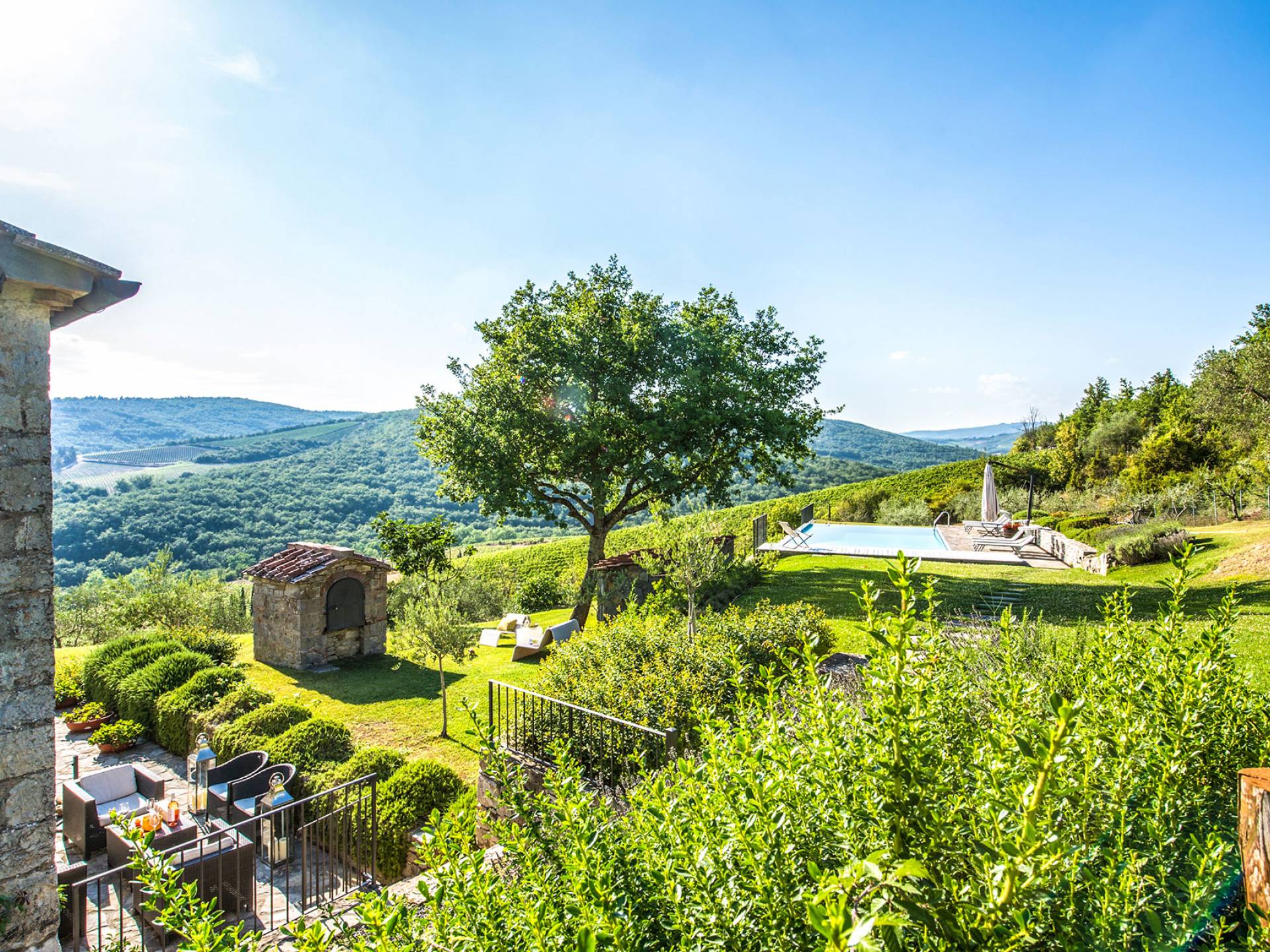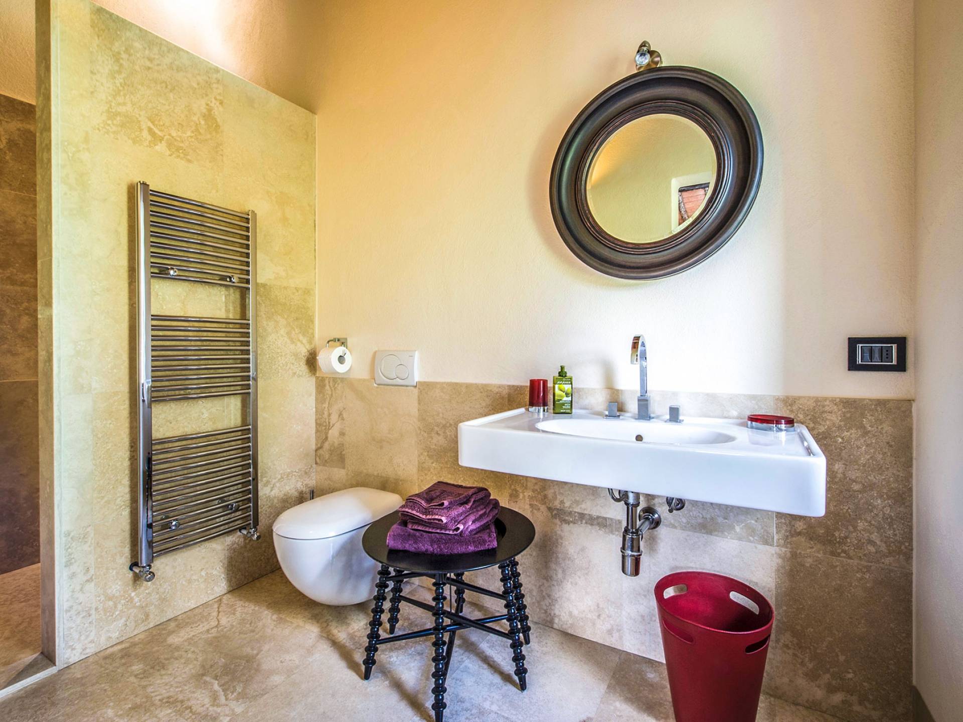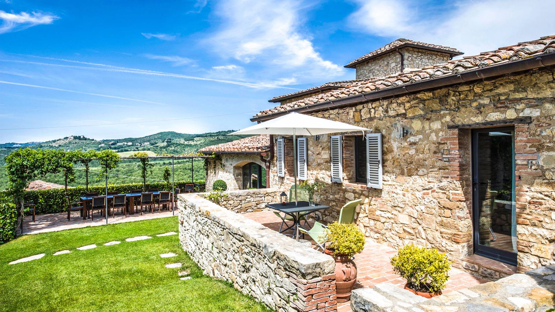 Für Umweltbewusste wird Energie aus Sonnenkollektoren gewonnen, Holz treibt die Fußbodenheizung an und sammelt Regenwasser auf den makellosen Rasenflächen. Für Touristen sind Florenz, Siena, San Gimignano und andere schöne Orte vor der Haustür. Für diejenigen, die gerne essen und trinken, erwartet Sie eine endlose Auswahl an Restaurants, hauseigenen Restaurants oder der Besuch nahegelegener Weingüter.