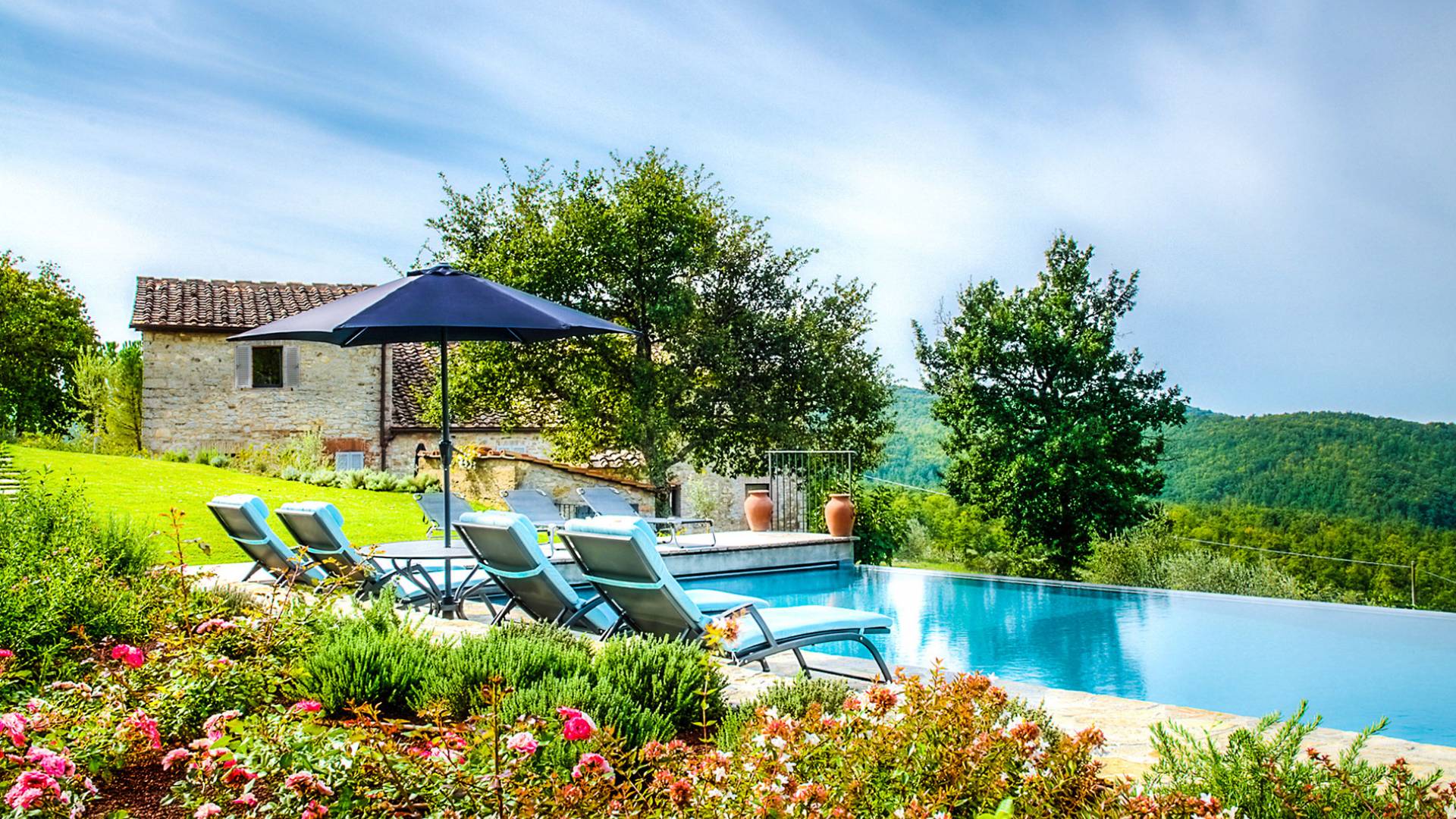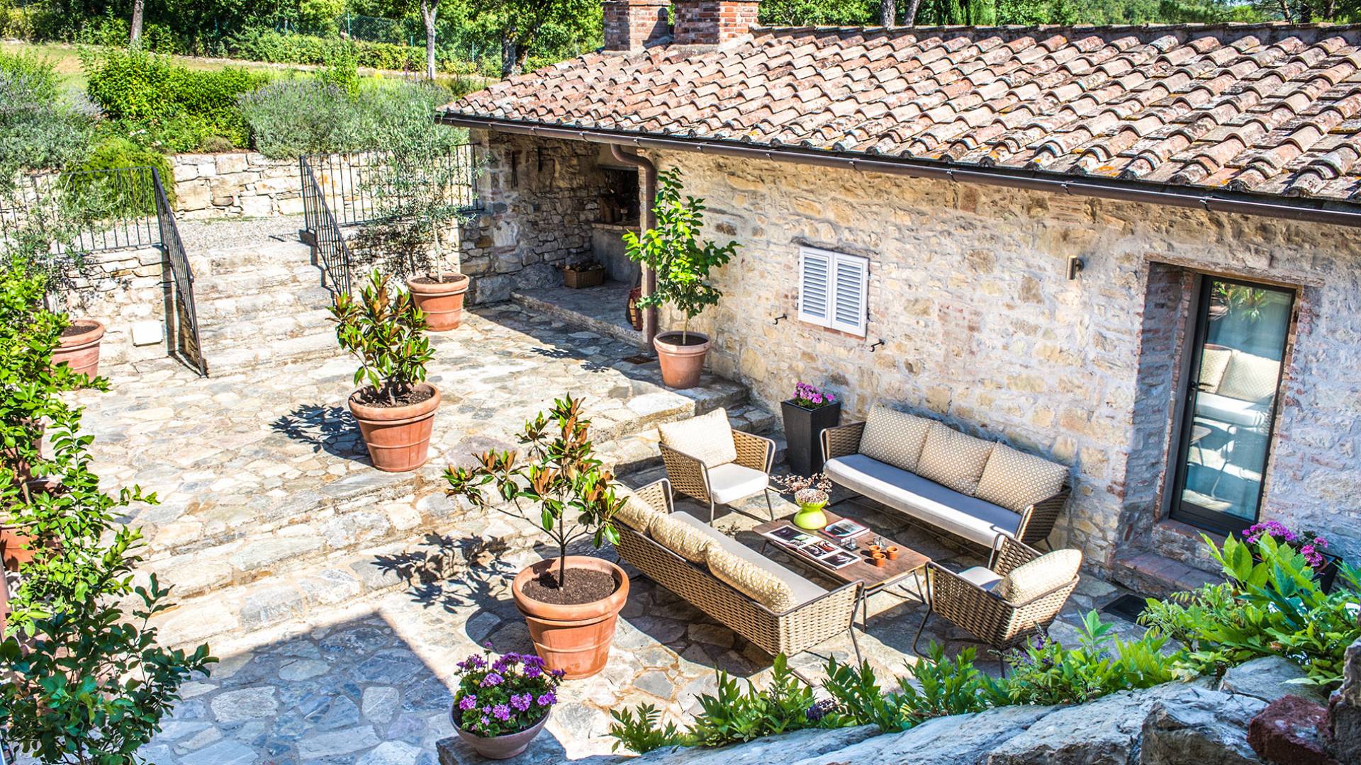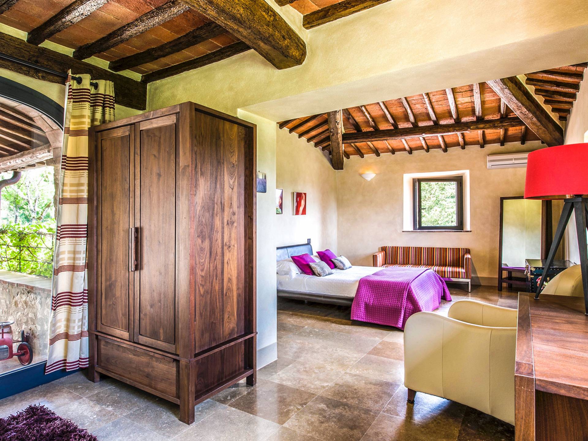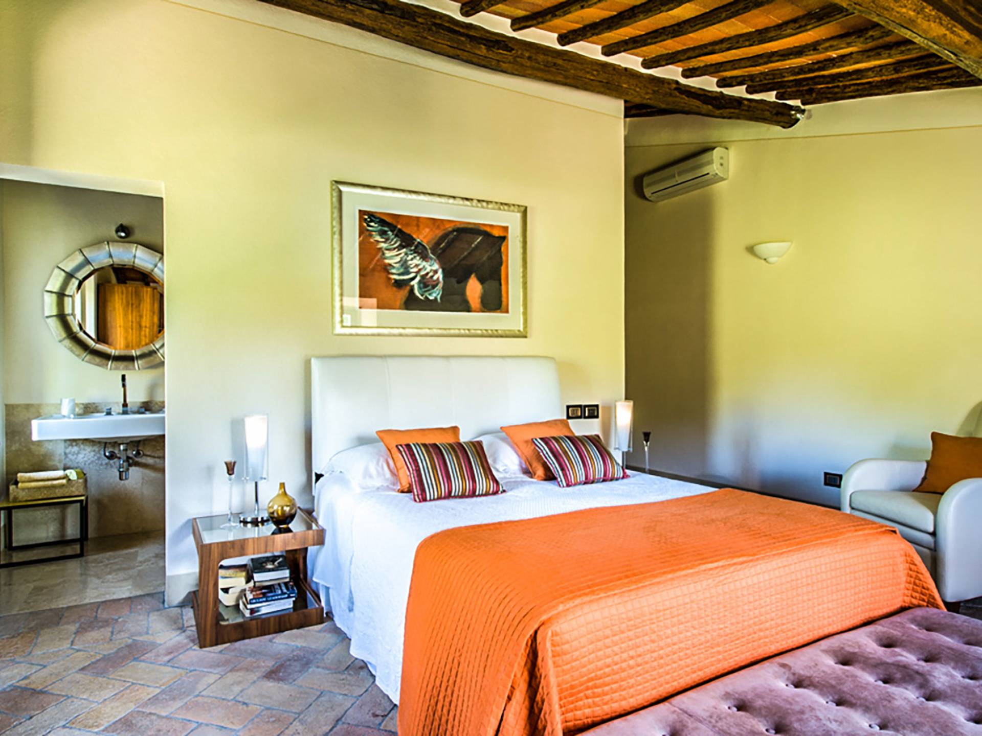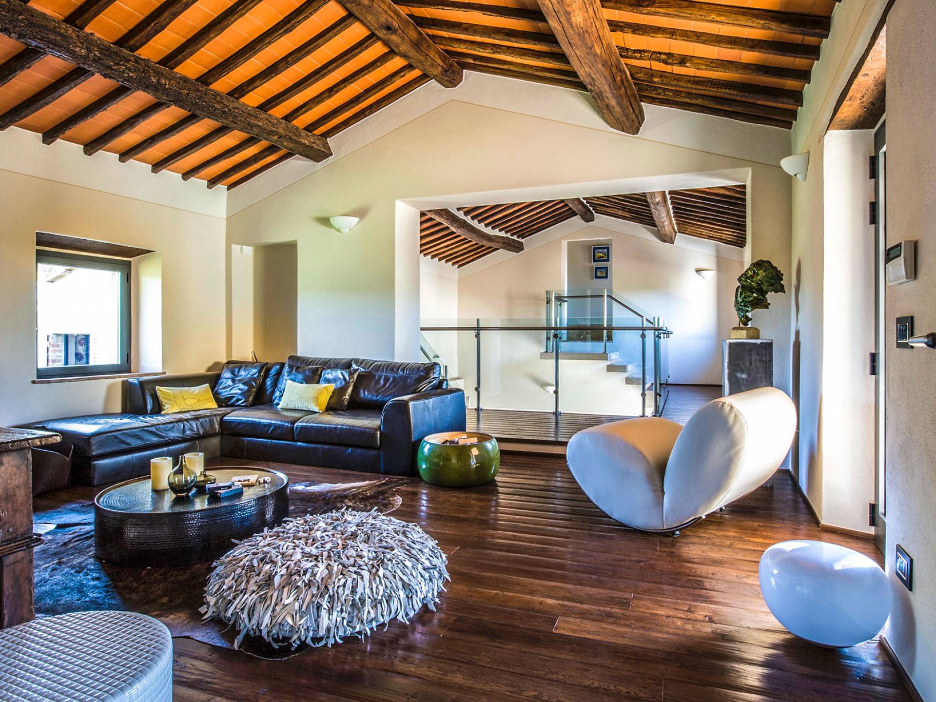 Für Umweltbewusste wird Energie aus Sonnenkollektoren gewonnen, Holz treibt die Fußbodenheizung an und sammelt Regenwasser auf den makellosen Rasenflächen. Für Touristen sind Florenz, Siena, San Gimignano und andere schöne Orte vor der Haustür. Für diejenigen, die gerne essen und trinken, erwartet Sie eine endlose Auswahl an Restaurants, hauseigenen Restaurants oder der Besuch nahegelegener Weingüter.