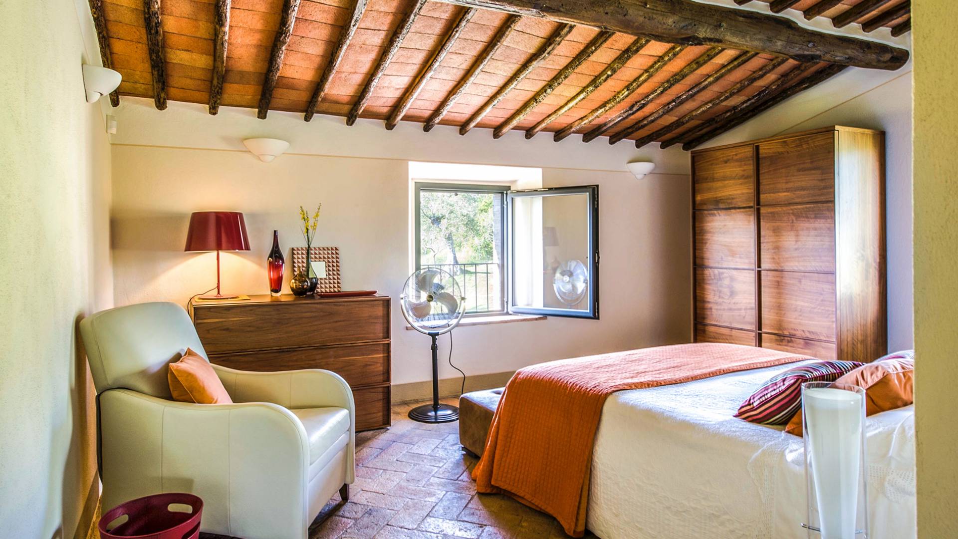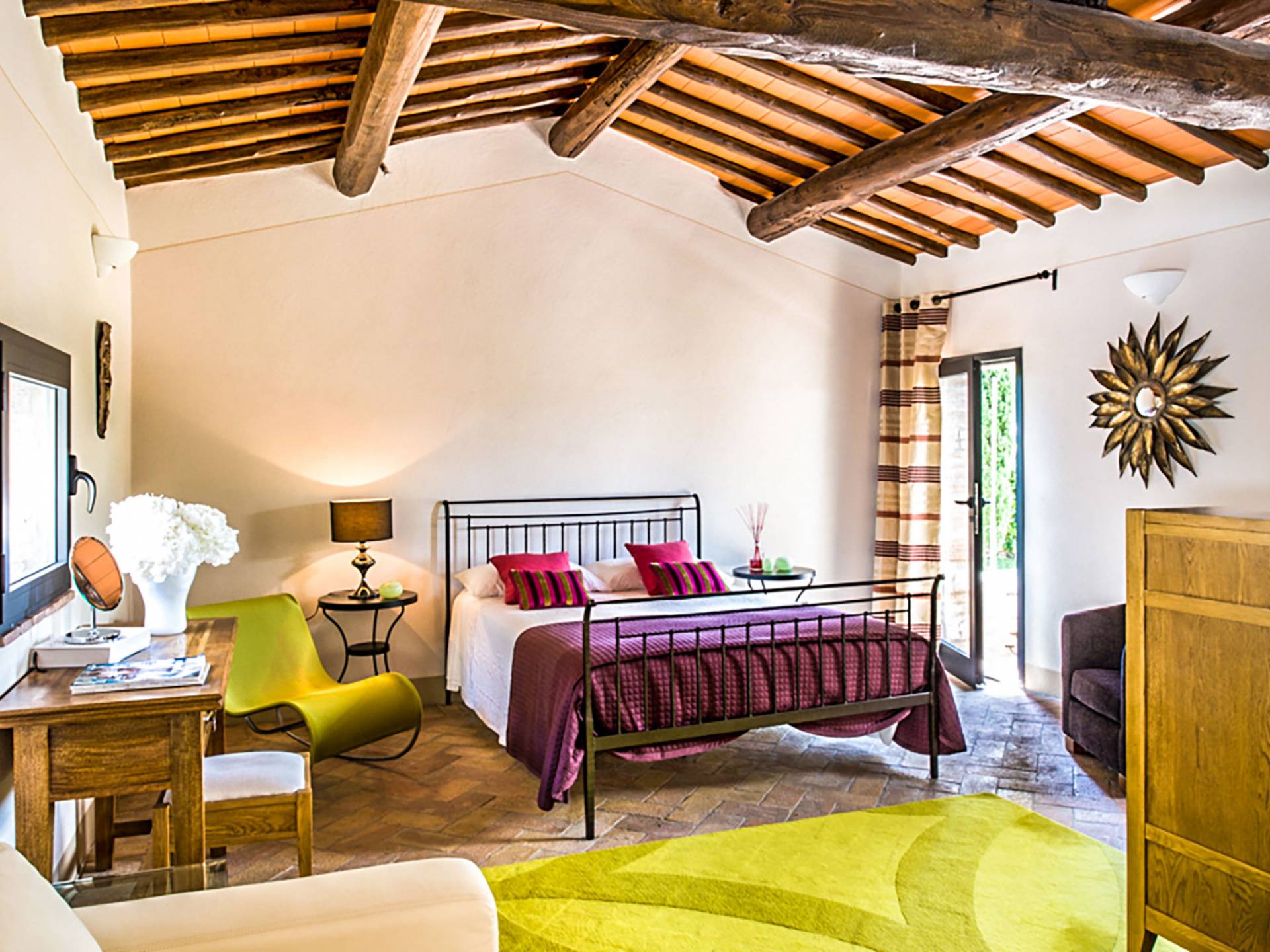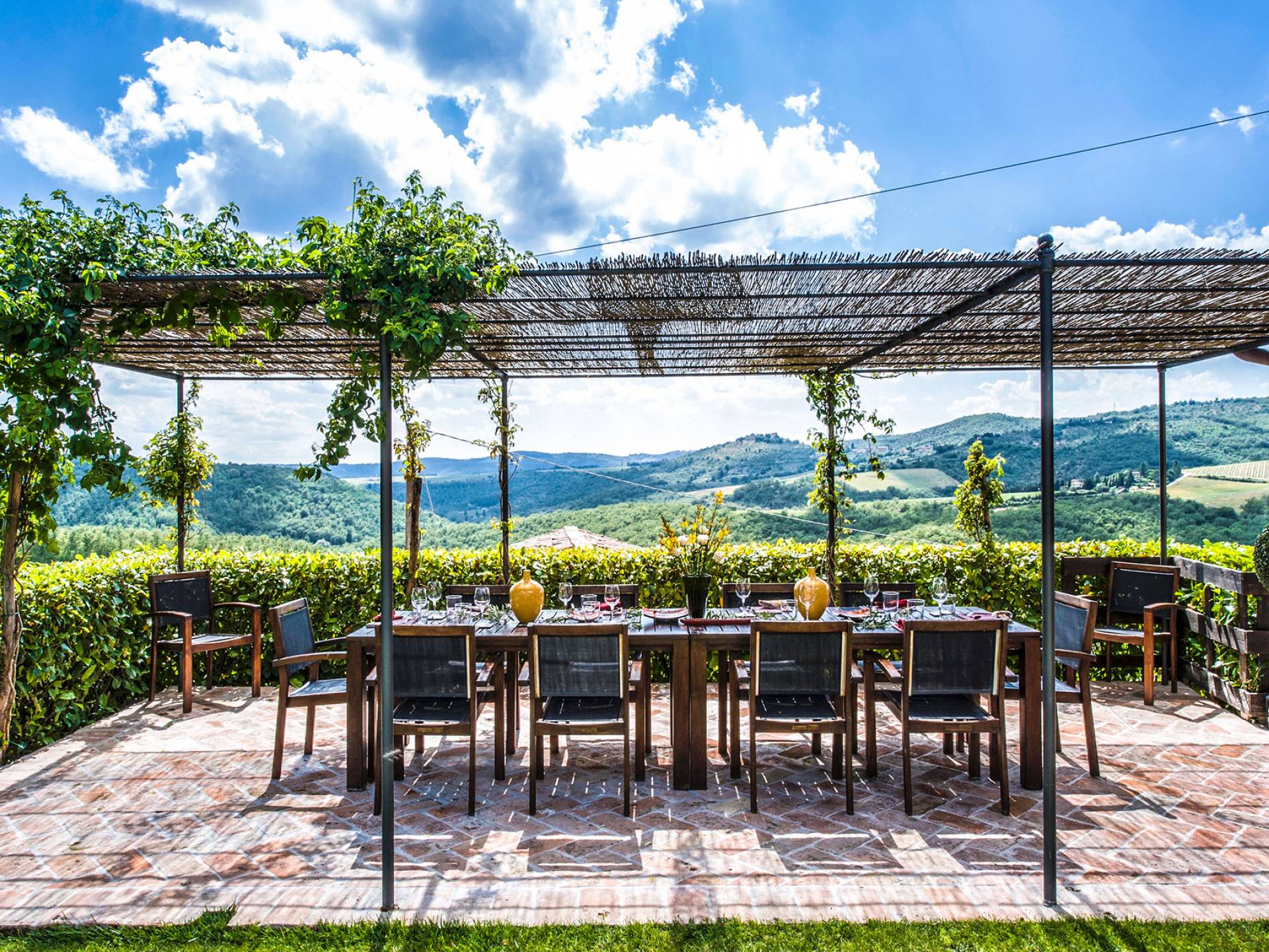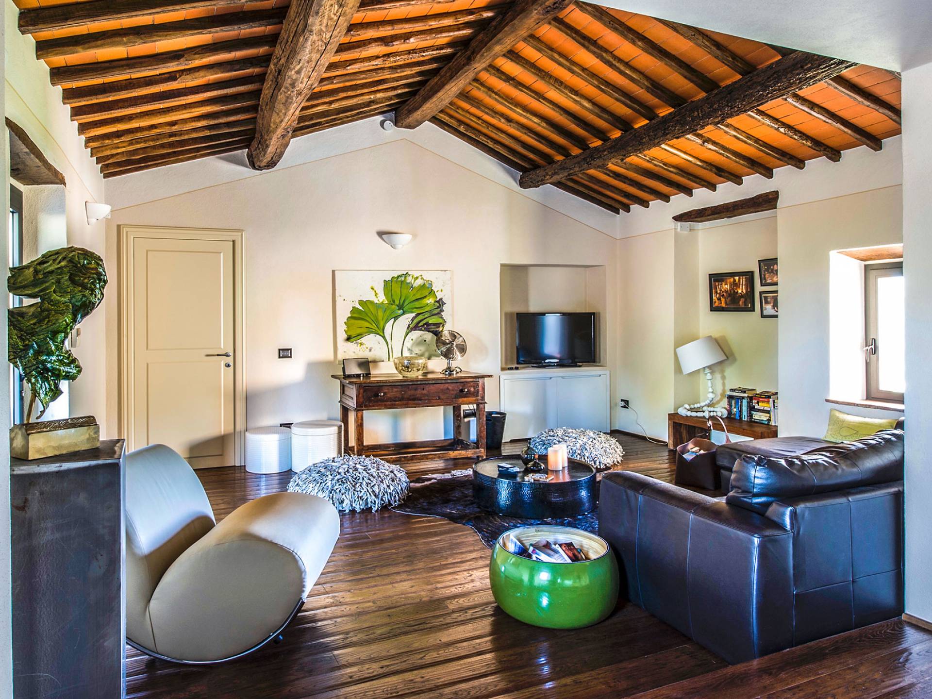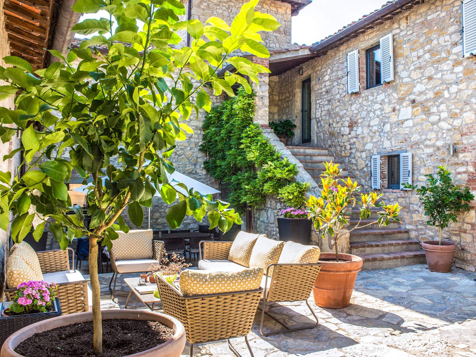 Für Umweltbewusste wird Energie aus Sonnenkollektoren gewonnen, Holz treibt die Fußbodenheizung an und sammelt Regenwasser auf den makellosen Rasenflächen. Für Touristen sind Florenz, Siena, San Gimignano und andere schöne Orte vor der Haustür. Für diejenigen, die gerne essen und trinken, erwartet Sie eine endlose Auswahl an Restaurants, hauseigenen Restaurants oder der Besuch nahegelegener Weingüter.