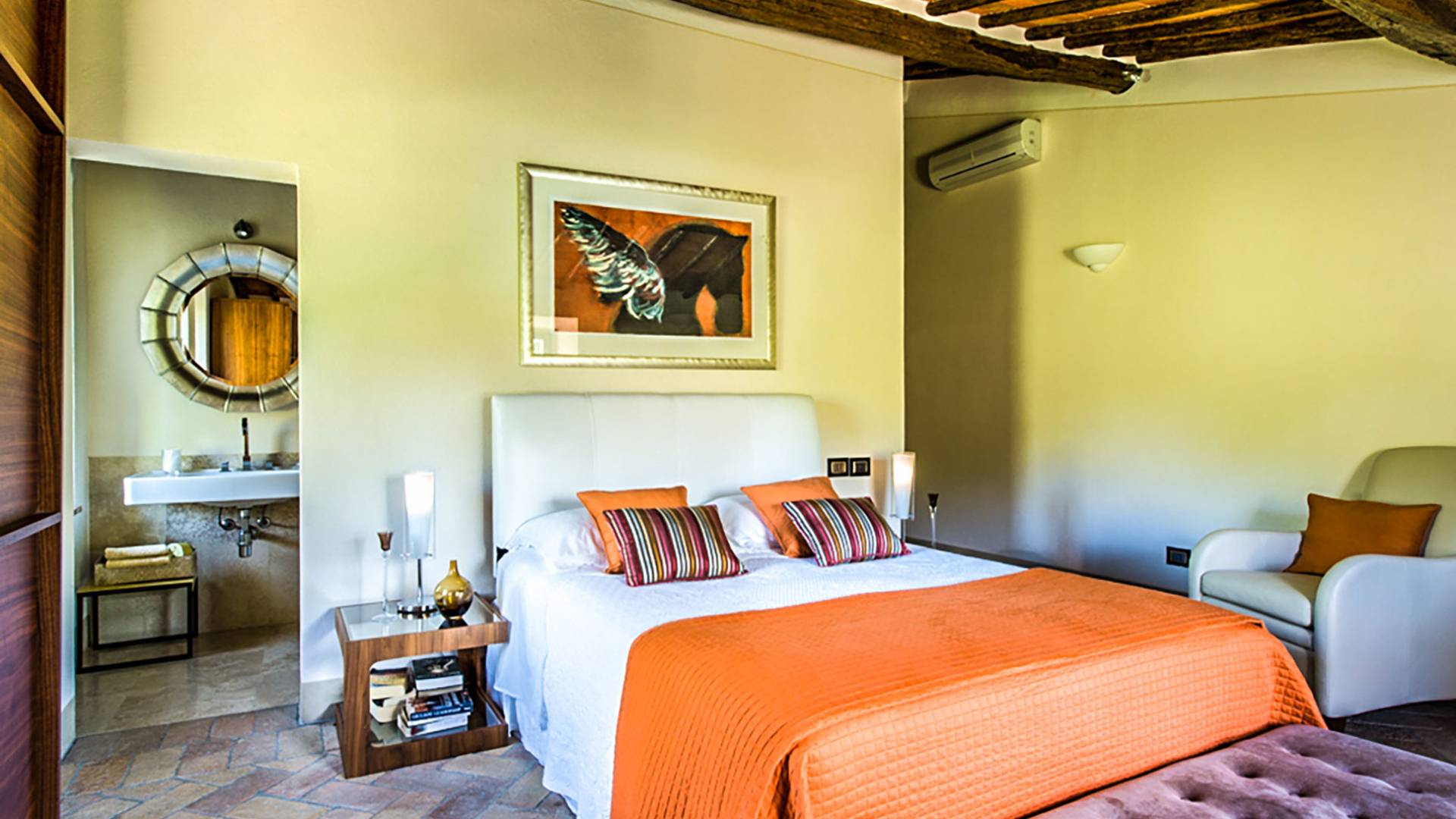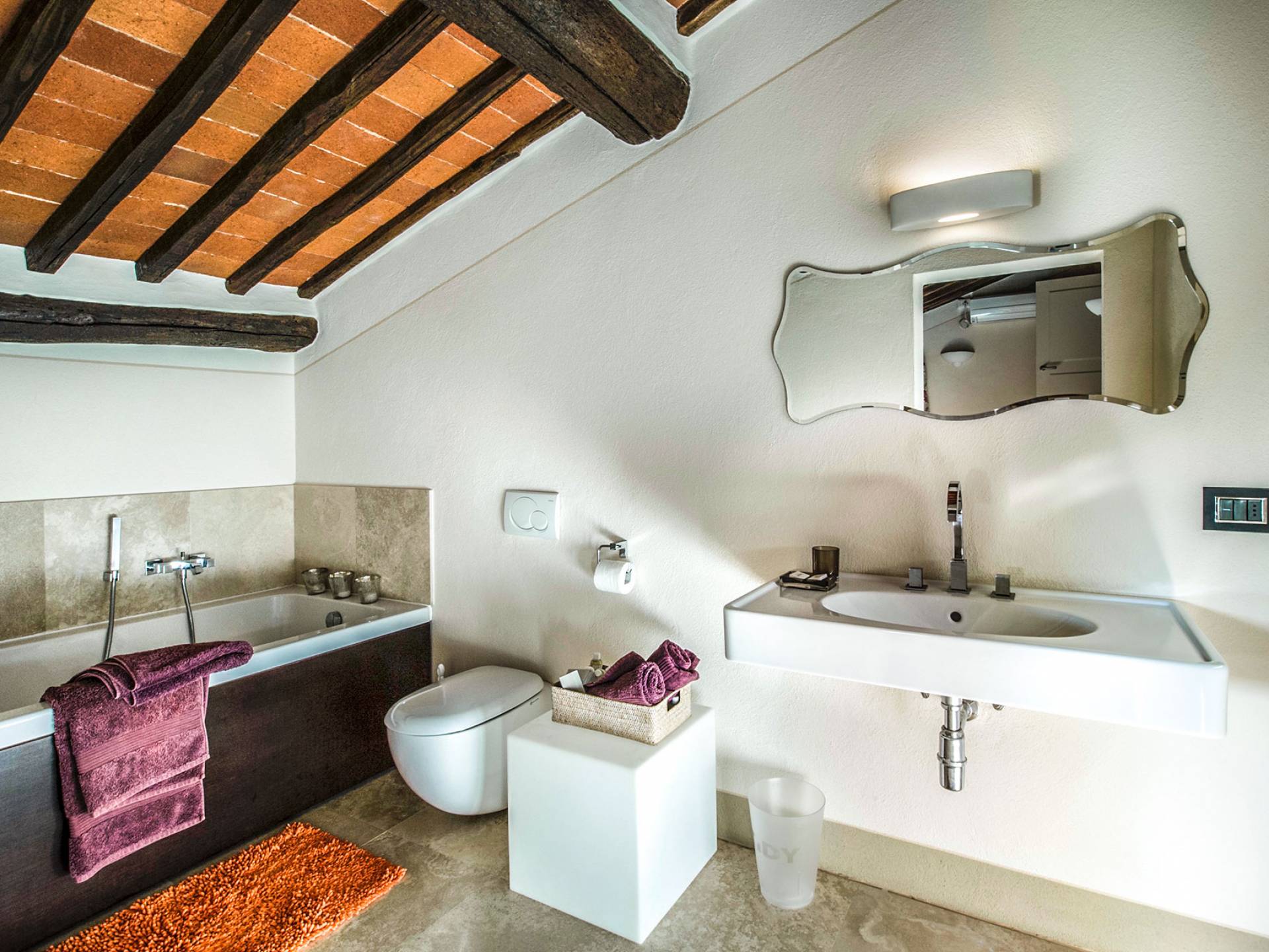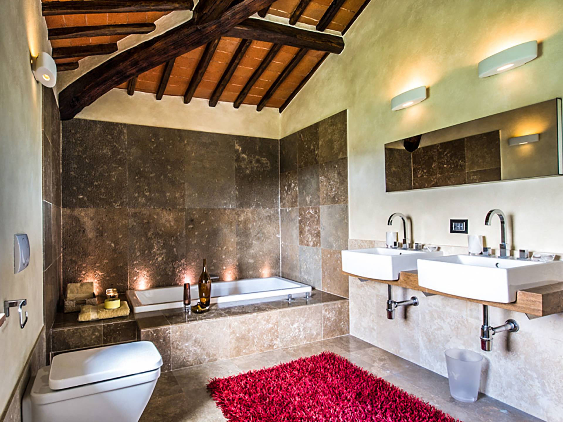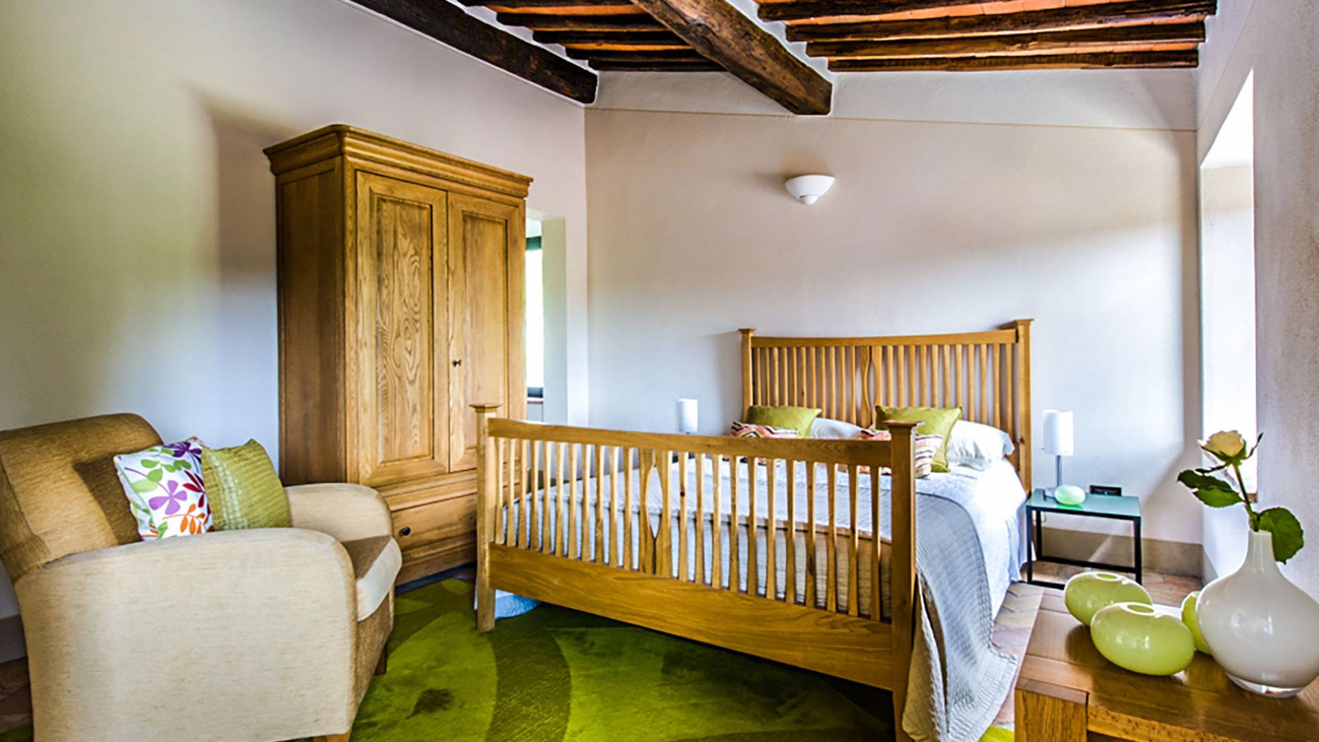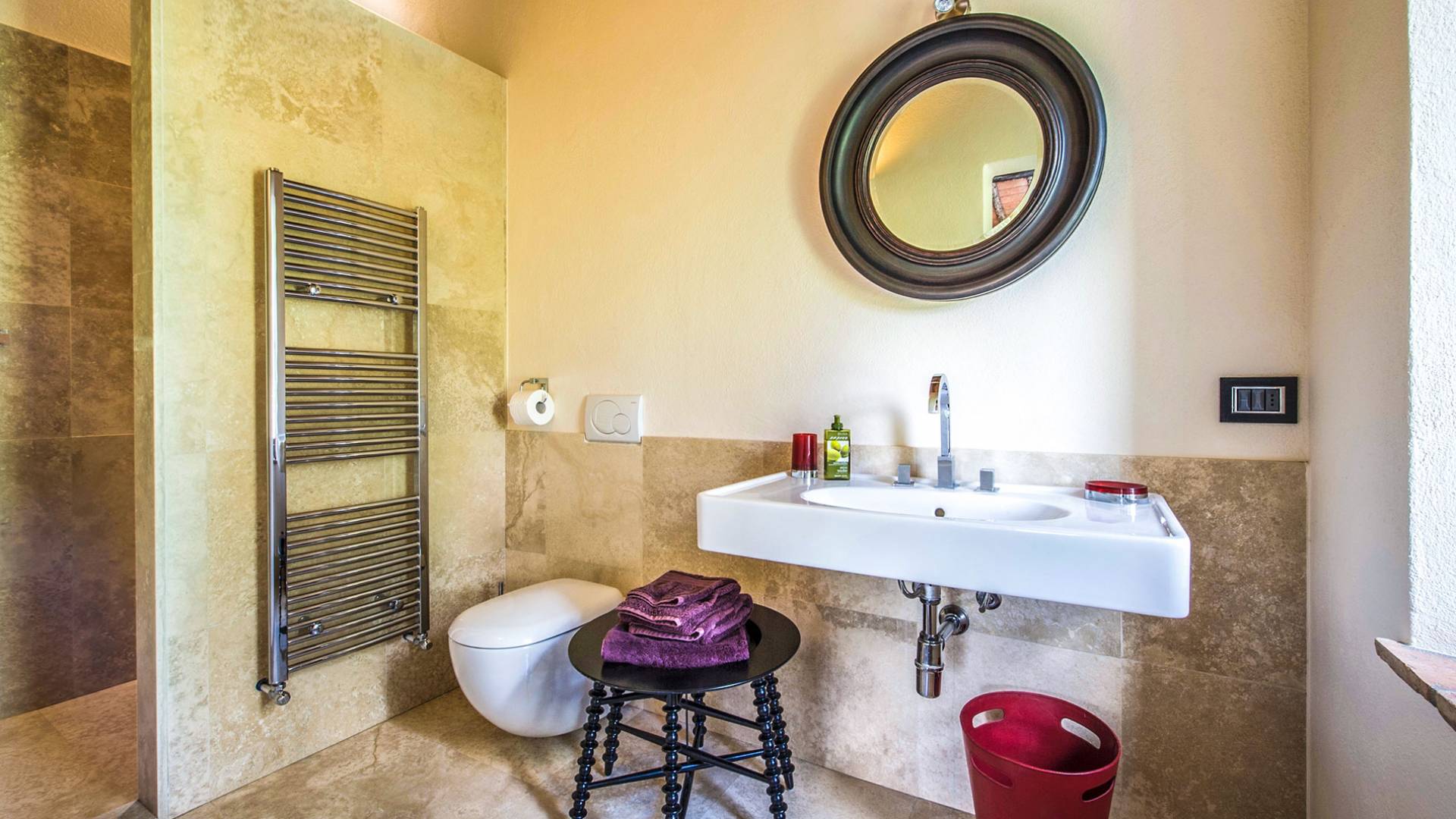 Für Umweltbewusste wird Energie aus Sonnenkollektoren gewonnen, Holz treibt die Fußbodenheizung an und sammelt Regenwasser auf den makellosen Rasenflächen. Für Touristen sind Florenz, Siena, San Gimignano und andere schöne Orte vor der Haustür. Für diejenigen, die gerne essen und trinken, erwartet Sie eine endlose Auswahl an Restaurants, hauseigenen Restaurants oder der Besuch nahegelegener Weingüter.