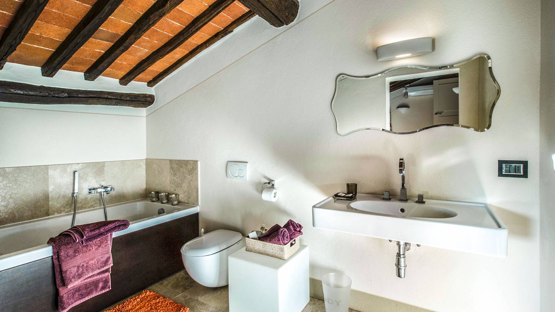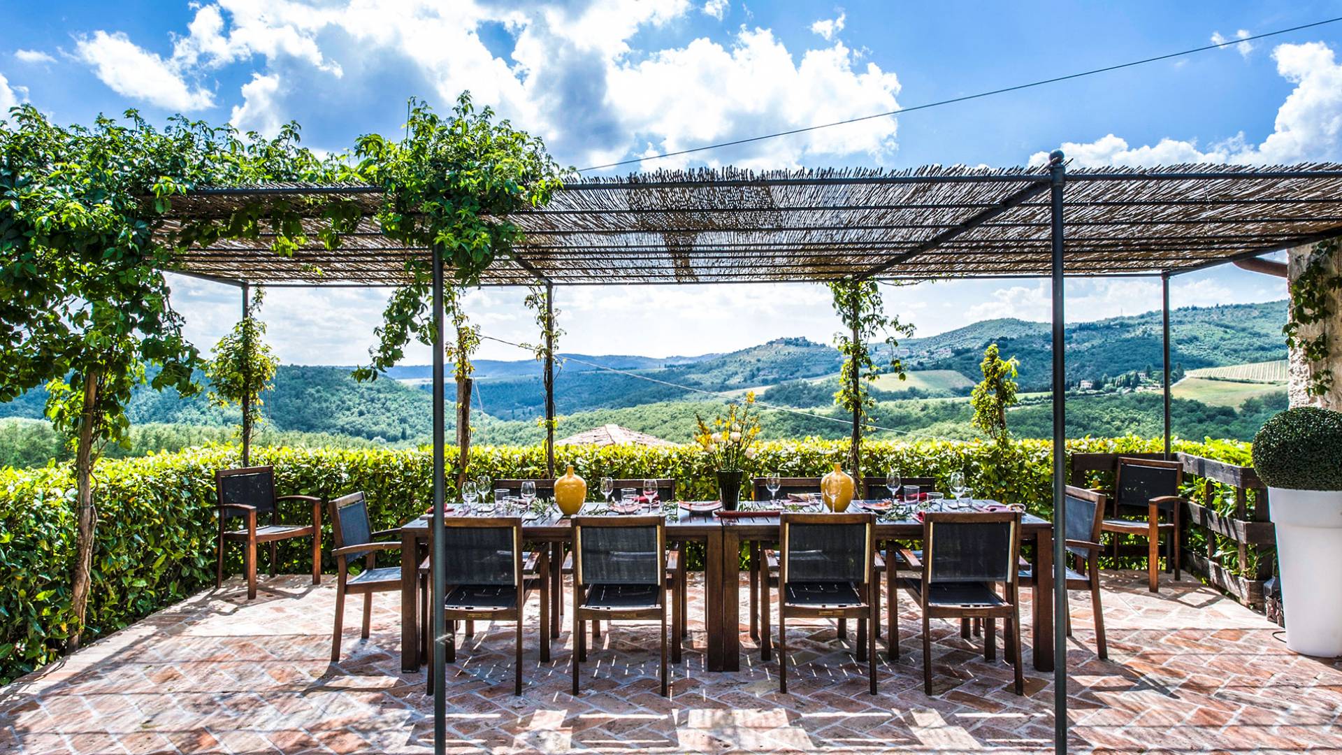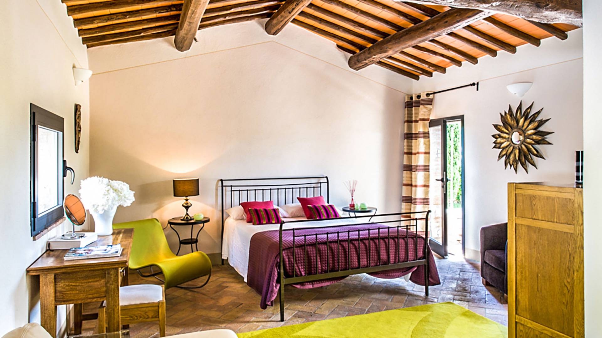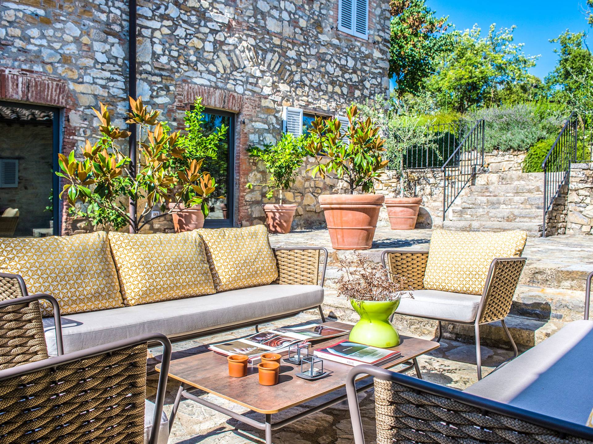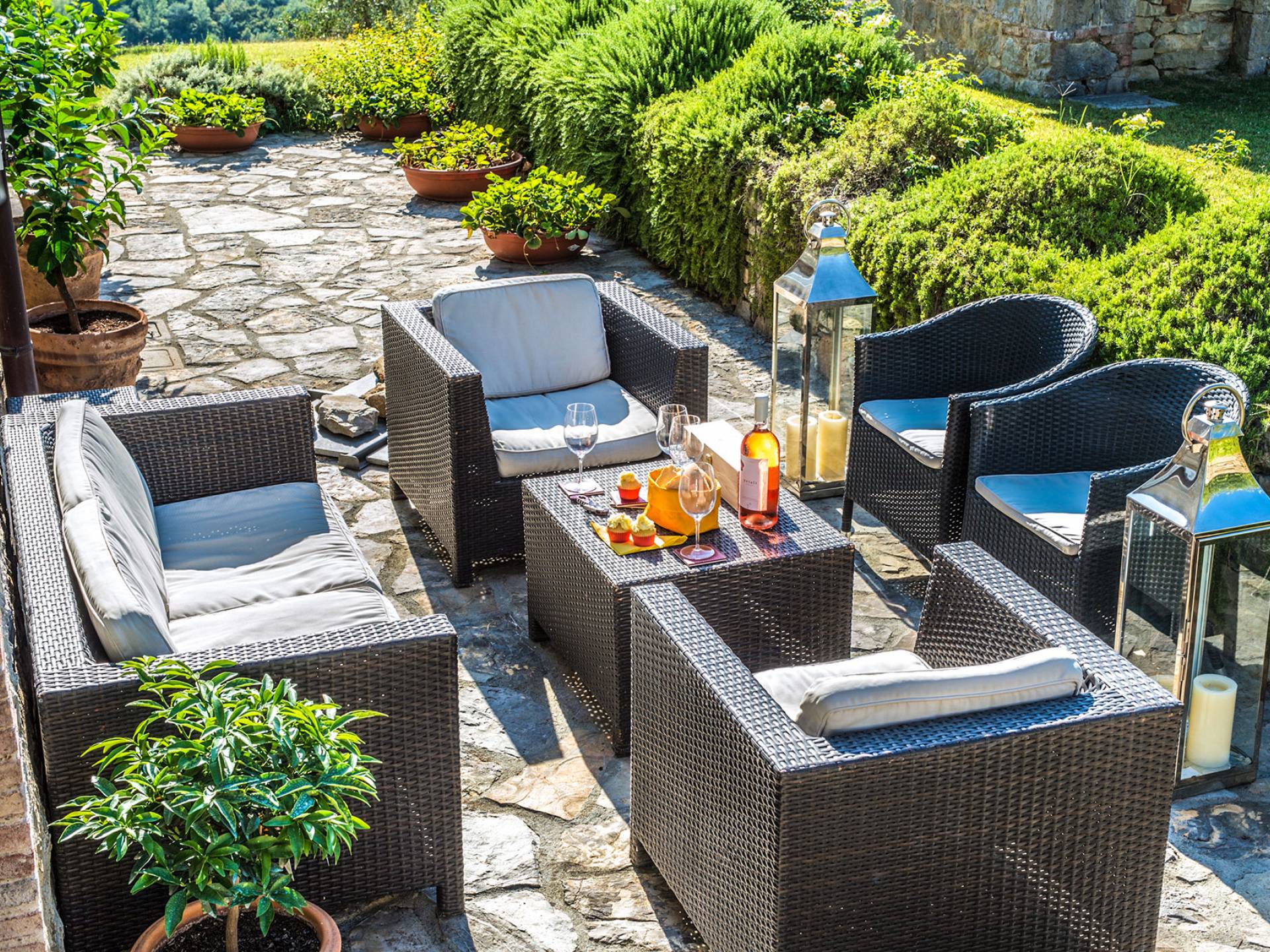 Für Umweltbewusste wird Energie aus Sonnenkollektoren gewonnen, Holz treibt die Fußbodenheizung an und sammelt Regenwasser auf den makellosen Rasenflächen. Für Touristen sind Florenz, Siena, San Gimignano und andere schöne Orte vor der Haustür. Für diejenigen, die gerne essen und trinken, erwartet Sie eine endlose Auswahl an Restaurants, hauseigenen Restaurants oder der Besuch nahegelegener Weingüter.