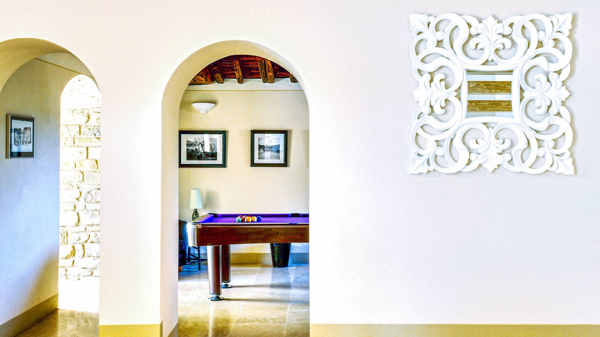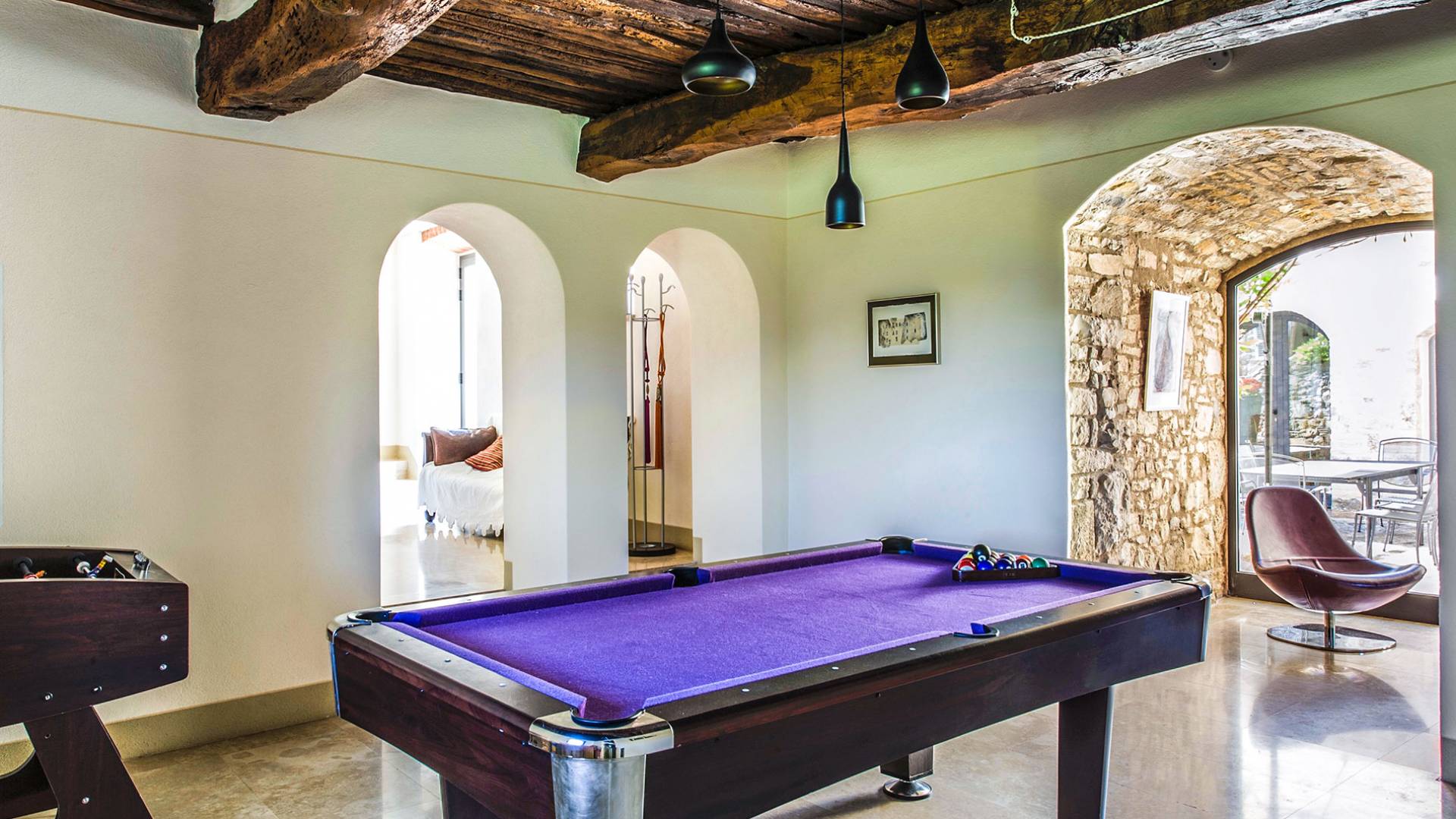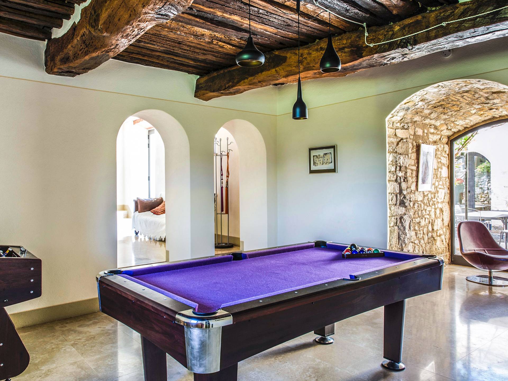 Als ganzjähriges Anwesen und ein fabelhafter Rückzugsort für besondere Zusammenkünfte bietet das prächtige Anwesen die Flexibilität und Freiheit einer Selbstversorger-Vermietung bis hin zu einem voll besetzten Erlebnis. Auf sechshundert Quadratmetern umfasst es fünf Schlafzimmer, sechs Badezimmer, zwei Wohnzimmer, ein Esszimmer, eine moderne Designerküche, ein Spielzimmer und einen Fitnessraum. Um einen zentralen Innenhof mit Pizzaofen und Grillplatz angeordnet, gibt es auch zwei weitere Terrassen für das Erlebnis im Freien. Der Pool liegt im Olivenhain und bietet eine atemberaubende Aussicht. Villa Anna Toskana ist für totale Entspannung und Leichtigkeit konzipiert. Für Familien hat der Pool eine ferngesteuerte Sicherheitsabdeckung zum Schutz der Kleinen, dazu gibt es Spielzeug, Spiele, Bücher, Filme und endlose Schlaf- und Fütterungsgeräte.