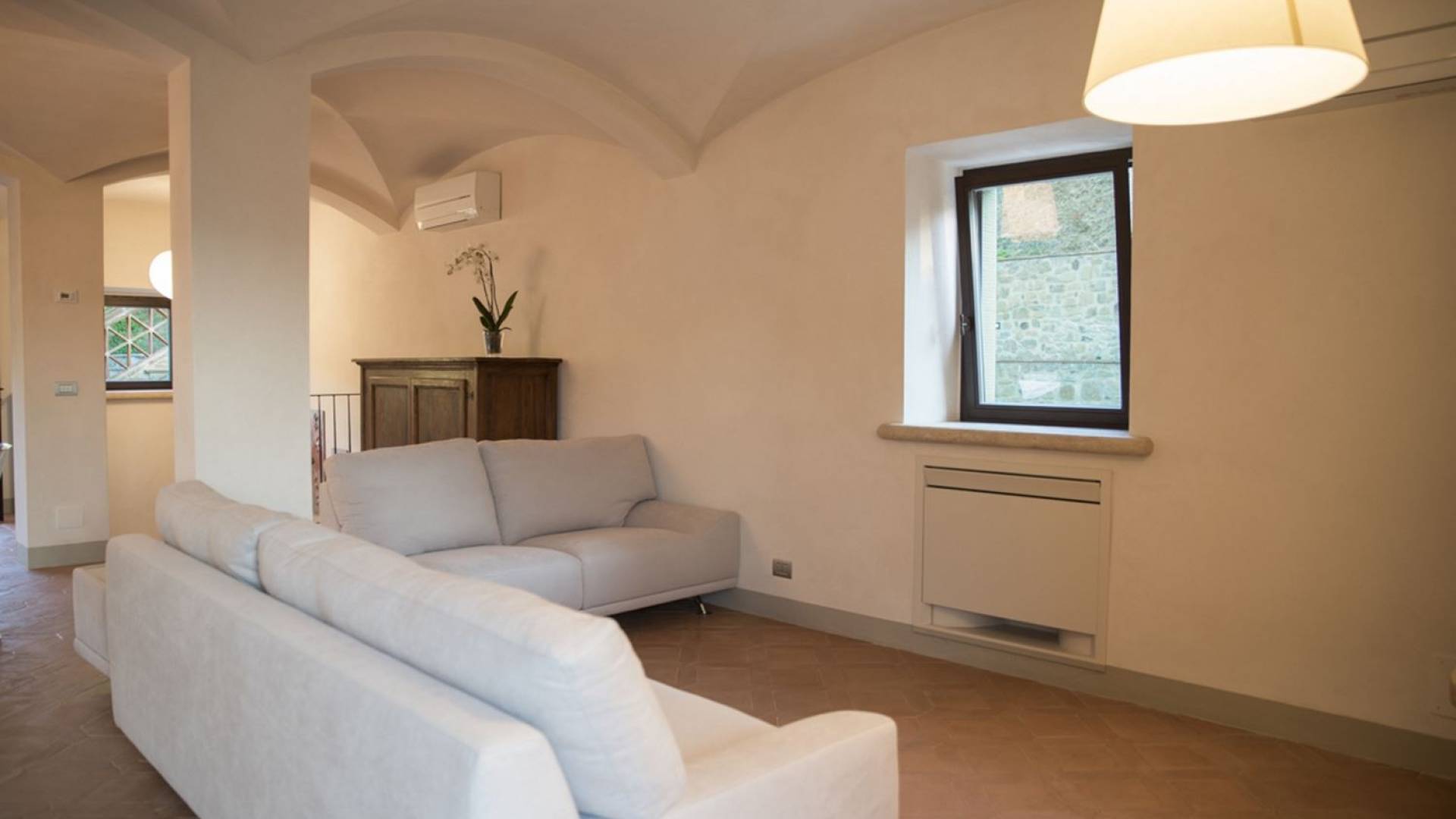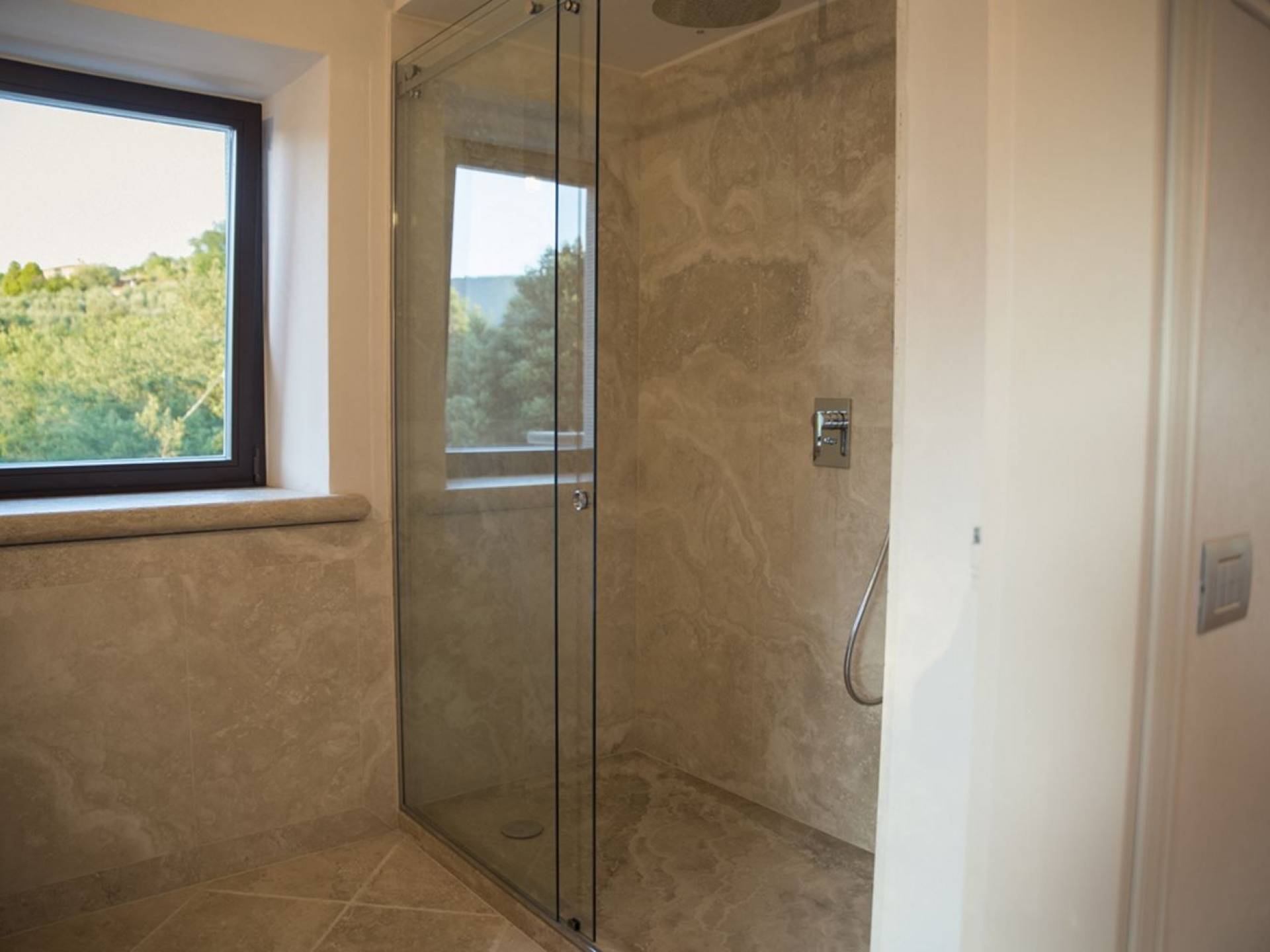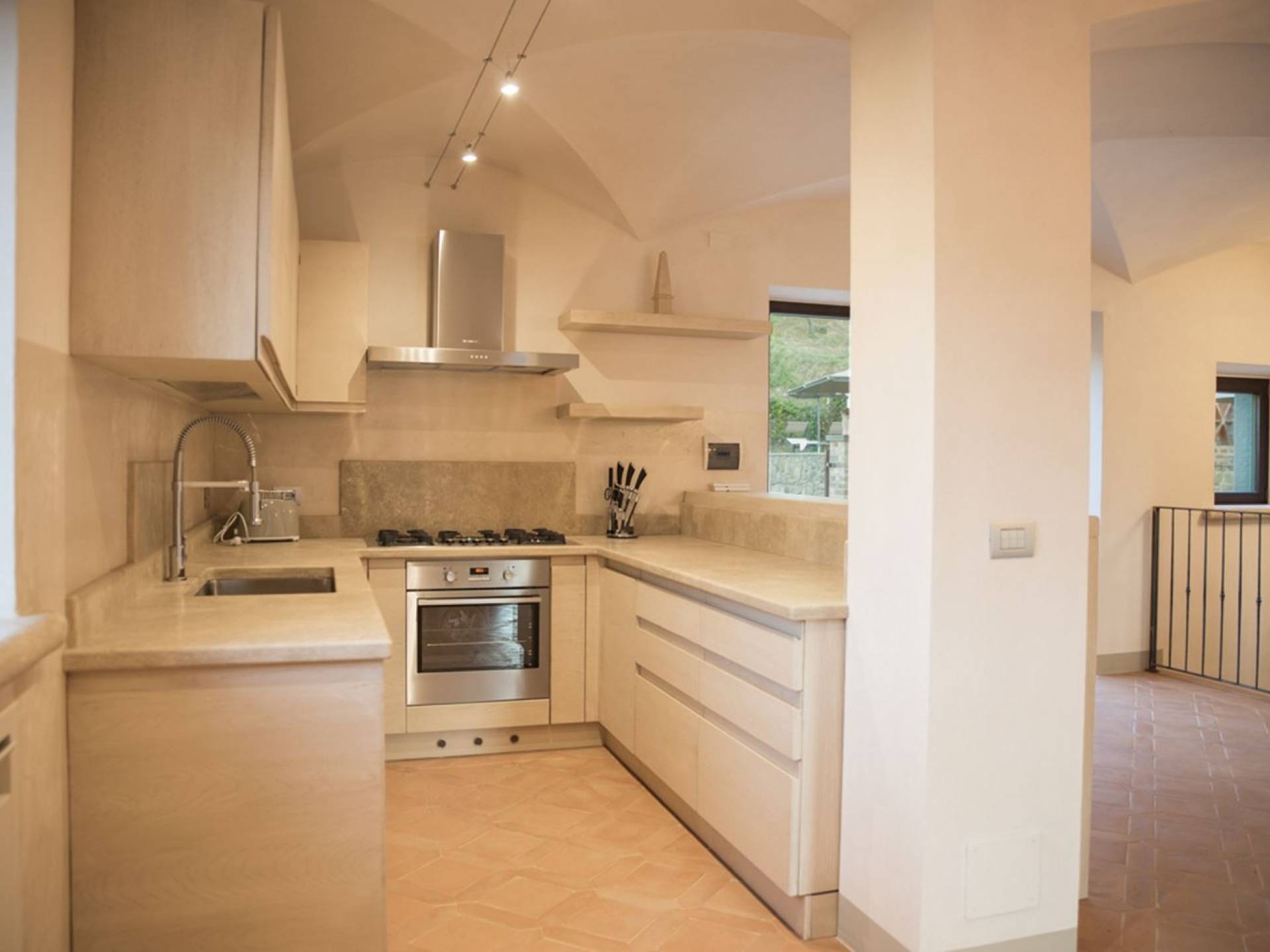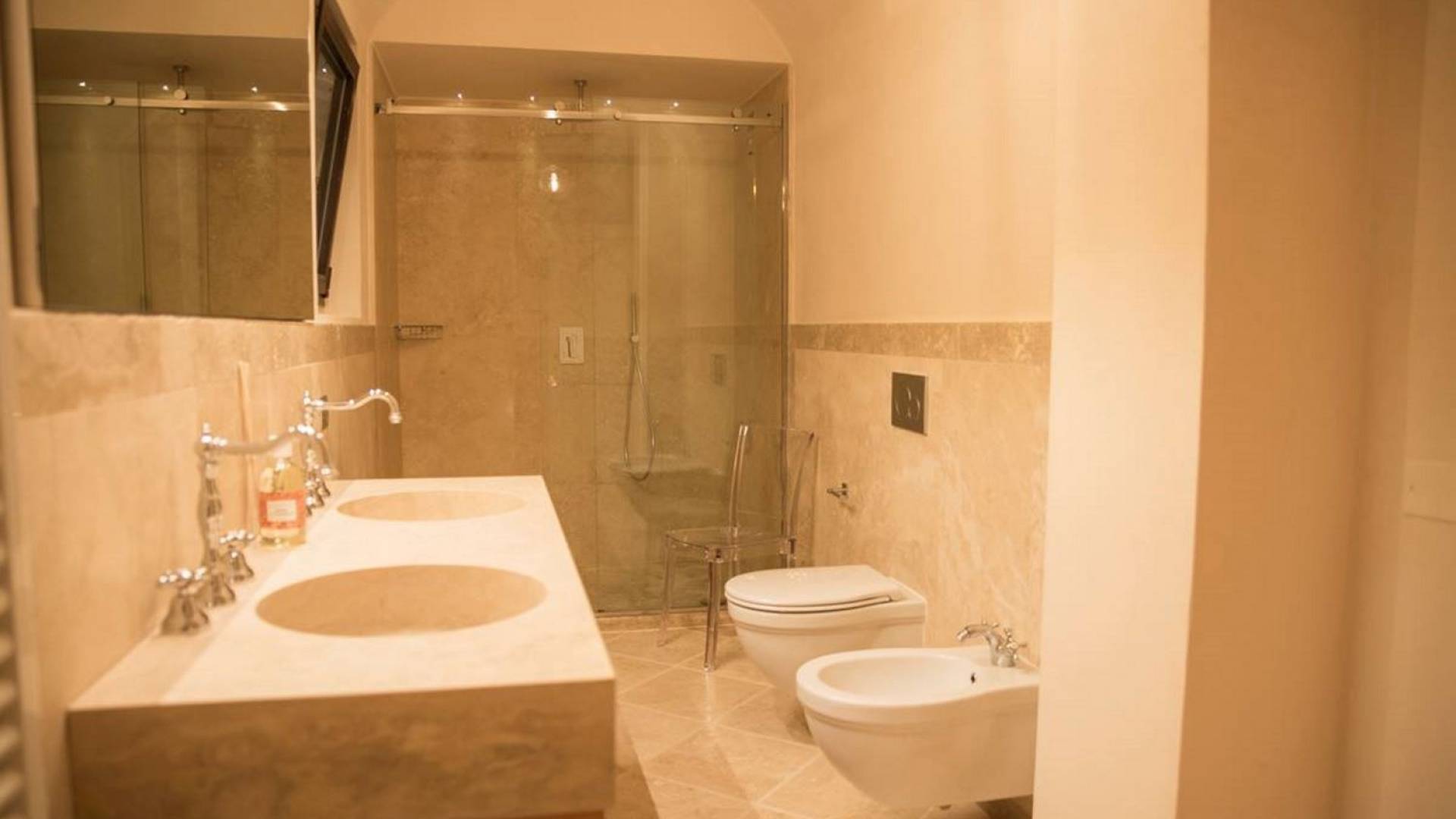Ausgestattet mit drei Doppelzimmern im Erdgeschoss mit jeweils einem Badezimmer, im Wohnbereich im ersten Stock bietet es einen großen Entspannungsbereich mit bequemen Sofas und eine große, maßgefertigte Vollholzküche komplett ausgestattet mit Backofen, Geschirrspüler, Mikrowelle, Wasserkocher, Weinkeller. Die komfortable Halbinsel aus Travertin, immer in der Küche, bietet die Möglichkeit, die Zubereitung von Mittag- und Abendessen auch mit den anderen Gästen zu teilen. Die Innenräume werden auch durch das Vorhandensein eines Kristalltisches verschönert, ein einzigartiges Stück, das aus dem Stamm eines Baumes gewonnen wurde, der auf dem Grundstück geborgen wurde.