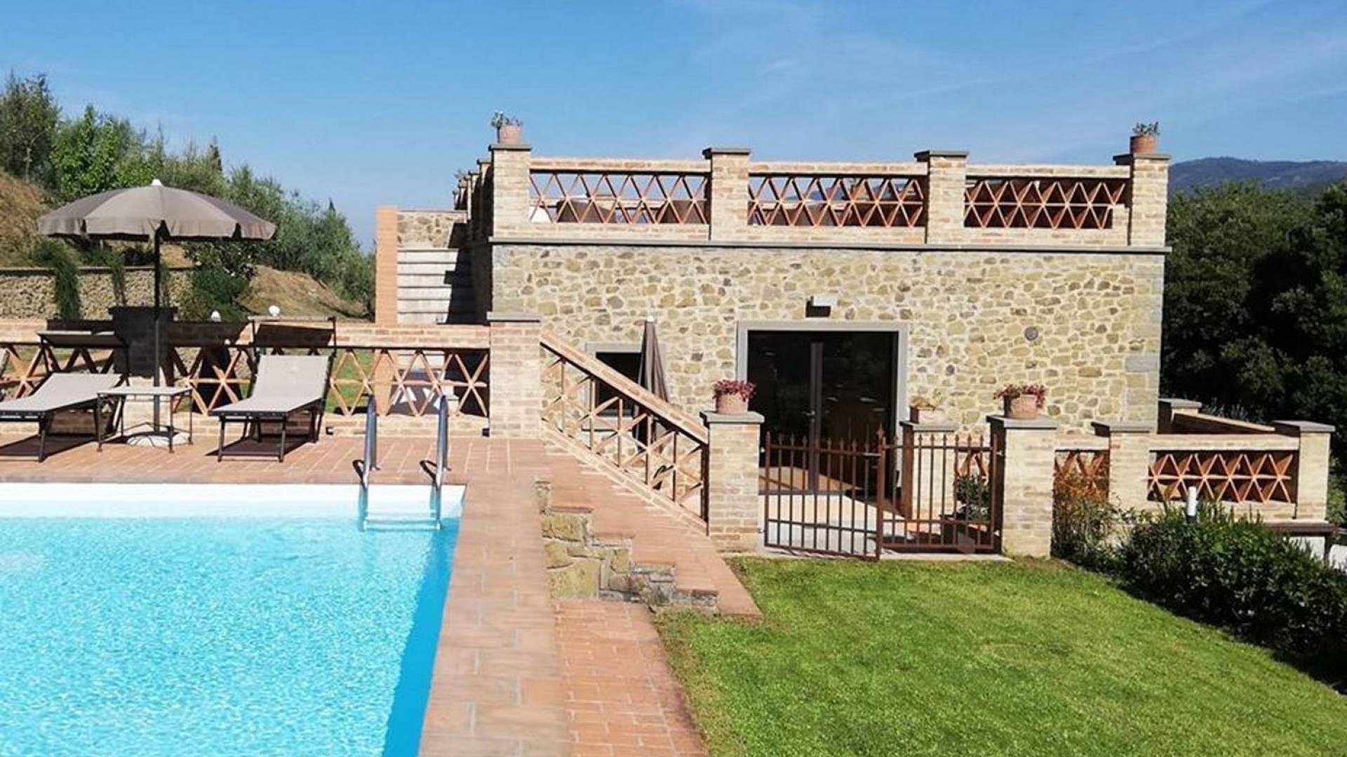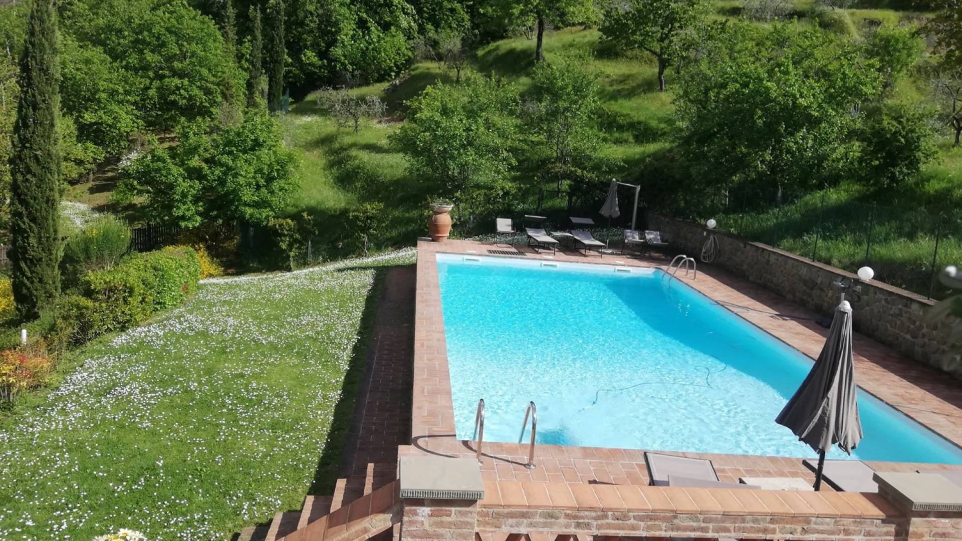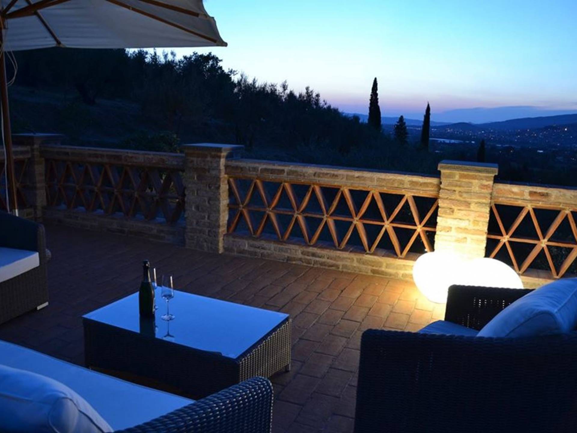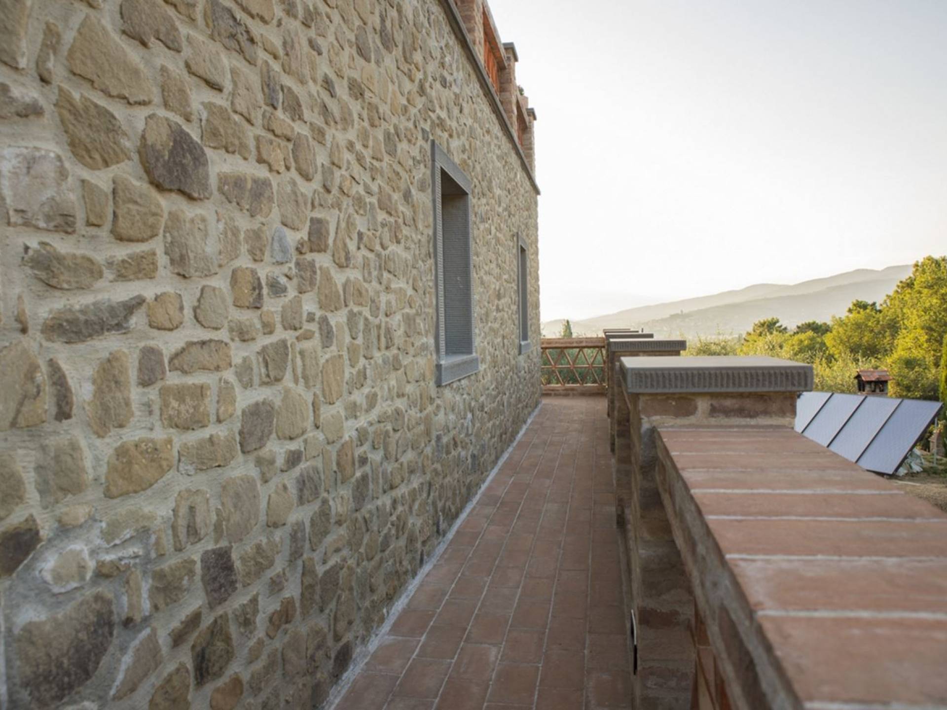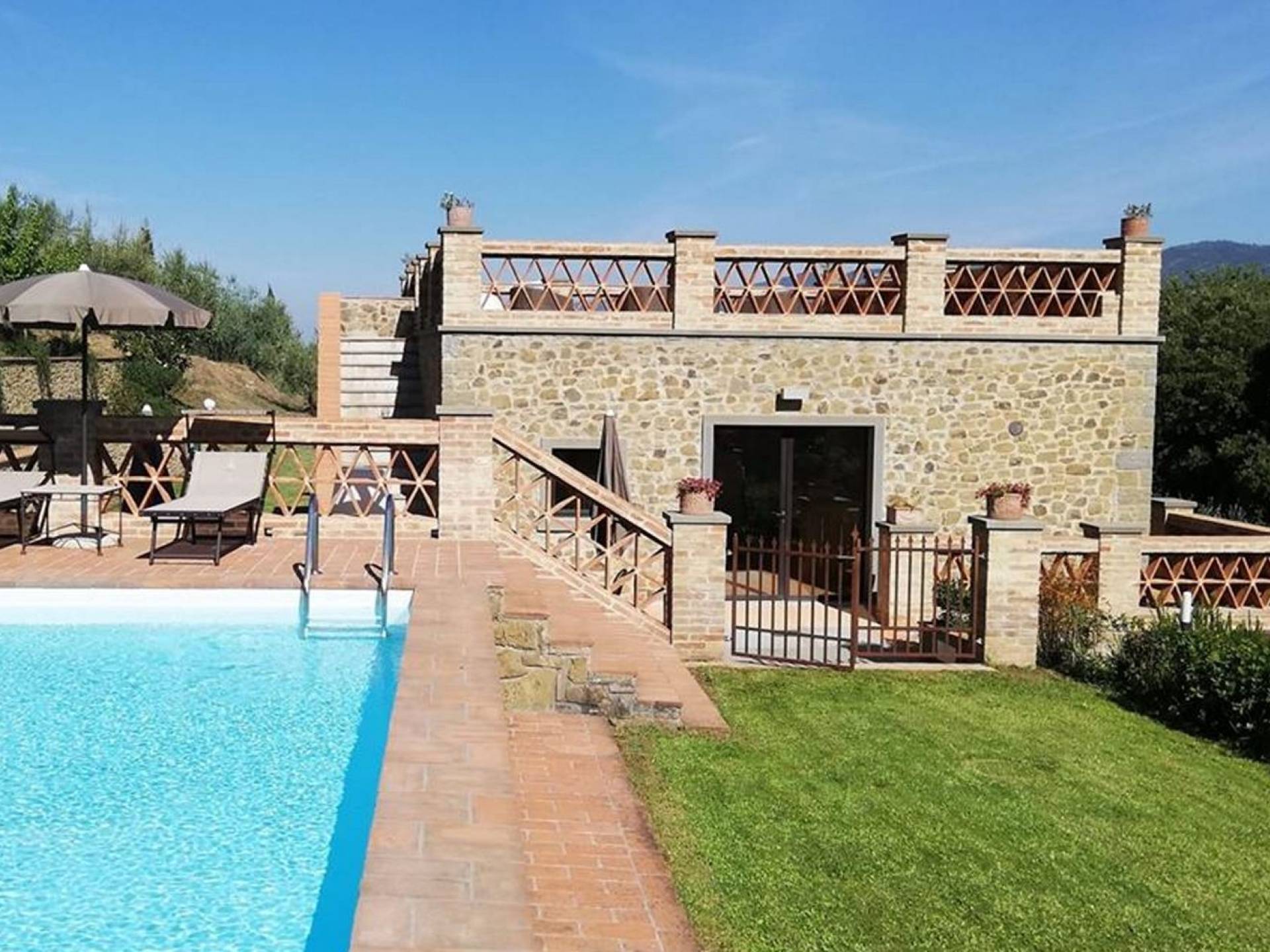 Draußen bietet das große Schwimmbad jedoch die Möglichkeit, alleine oder in der Gruppe Spaß zu haben und zu entspannen. Unmittelbar außerhalb des Wohnbereichs befindet sich auch ein Bereich, in dem Sie Ihre Mahlzeiten genießen können. Auf der Panoramaterrasse auf dem Dach der Villa befindet sich auch eine kleine beleuchtete Lounge, von der aus Sie den herrlichen Sonnenuntergang über Castiglion Fiorentino genießen können, einer Stadt etruskischen Ursprungs, die ihren Namen der florentinischen Herrschaft im Mittelalter verdankt und die, Noch heute sind fast die mittelalterlichen Mauern erhalten, die vom Bergfried dominiert werden. Eine zehnminütige Autofahrt entfernt finden Sie auch die Burg von Montecchio, eine alte Burg auf einem Hügel mit Blick auf das Val di Chiana.