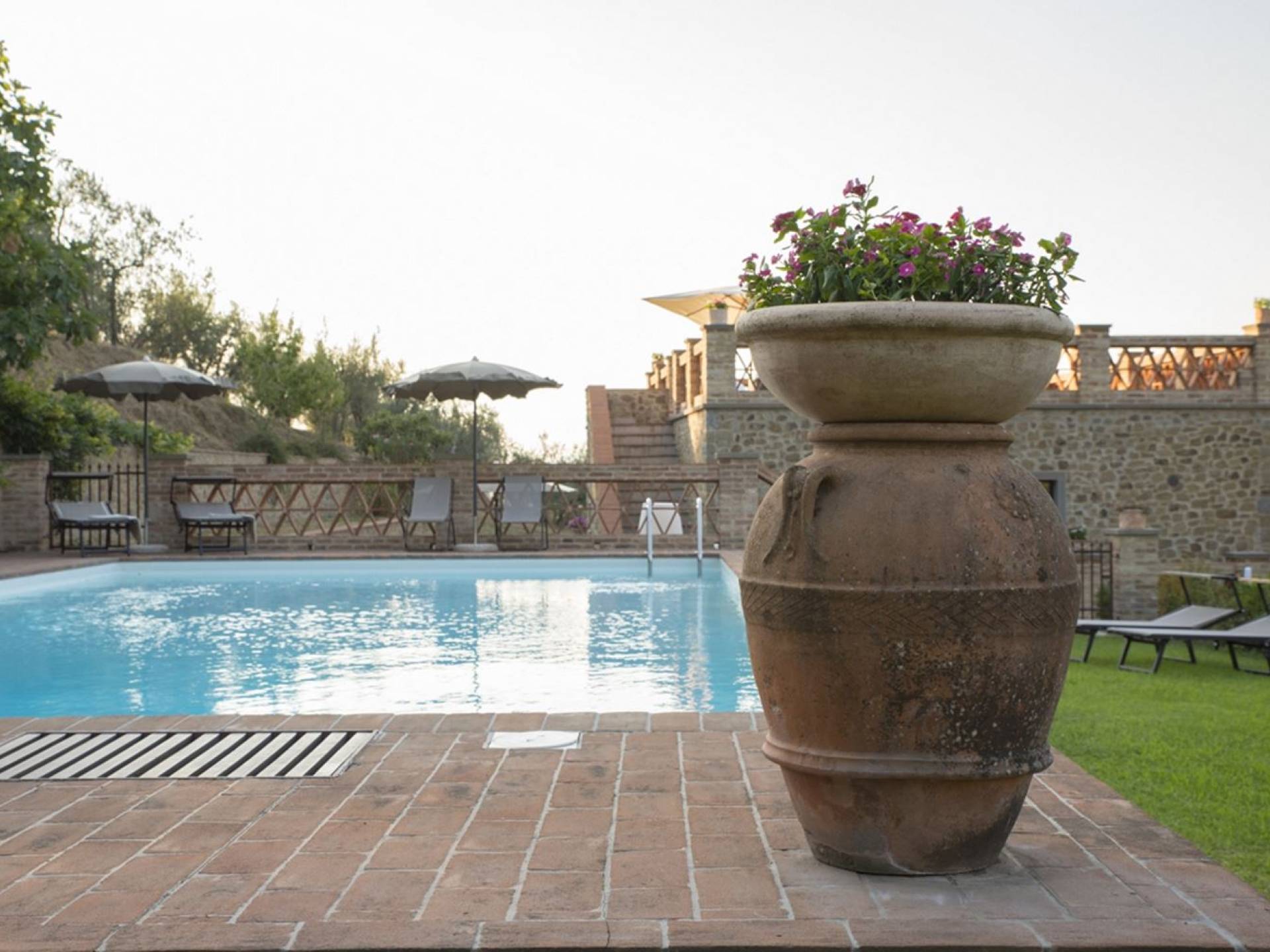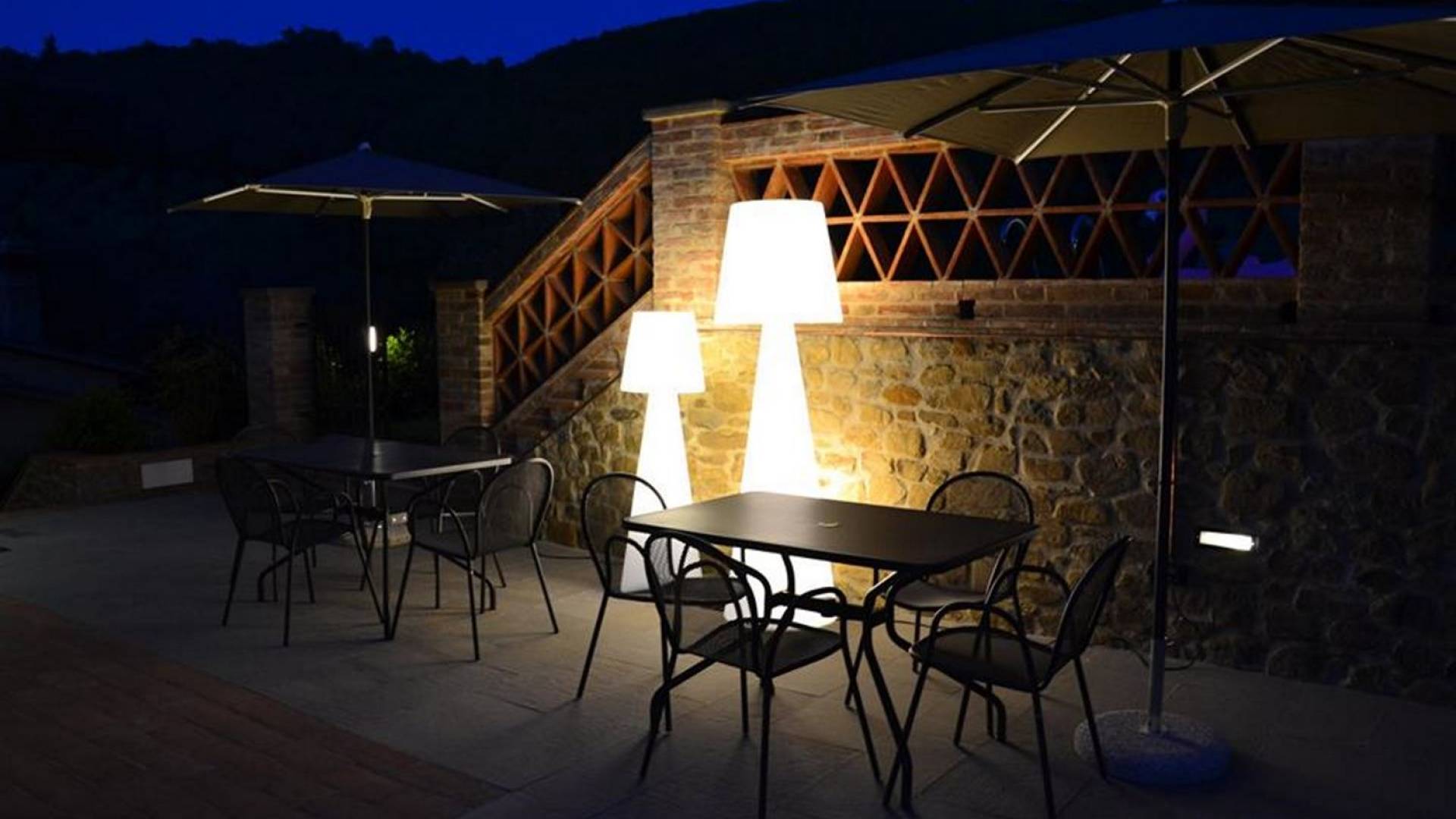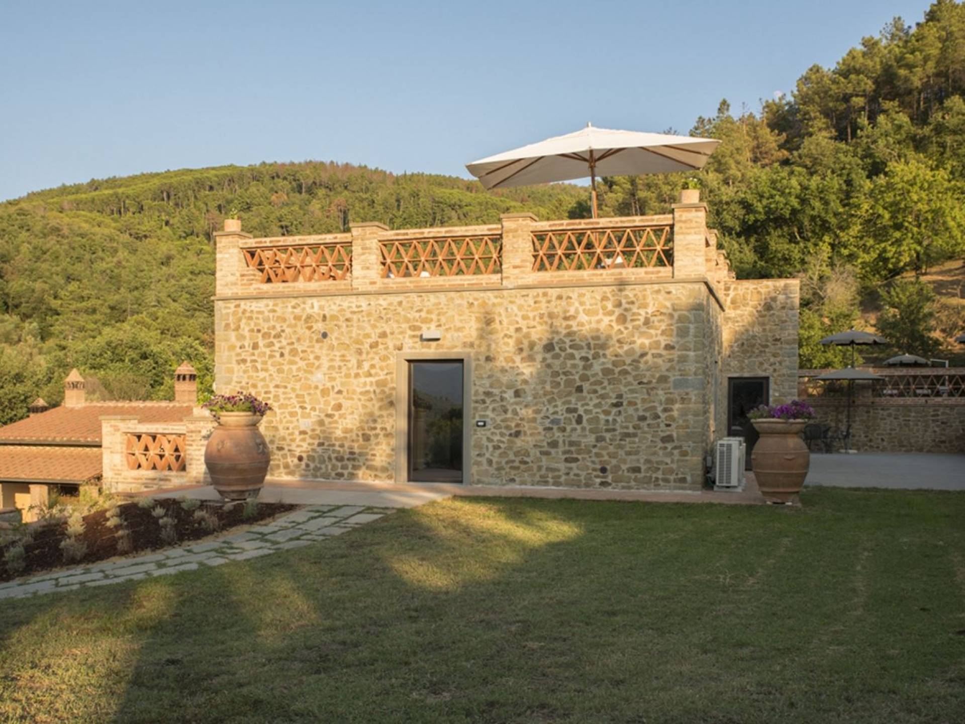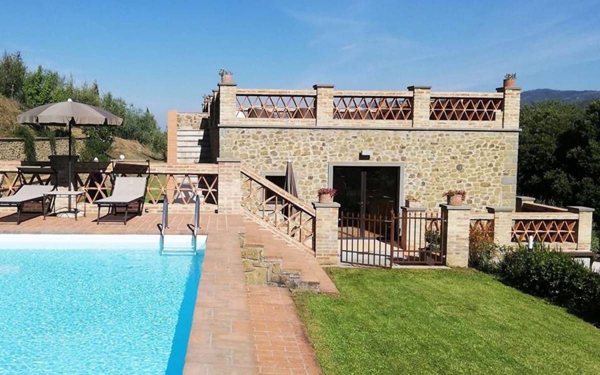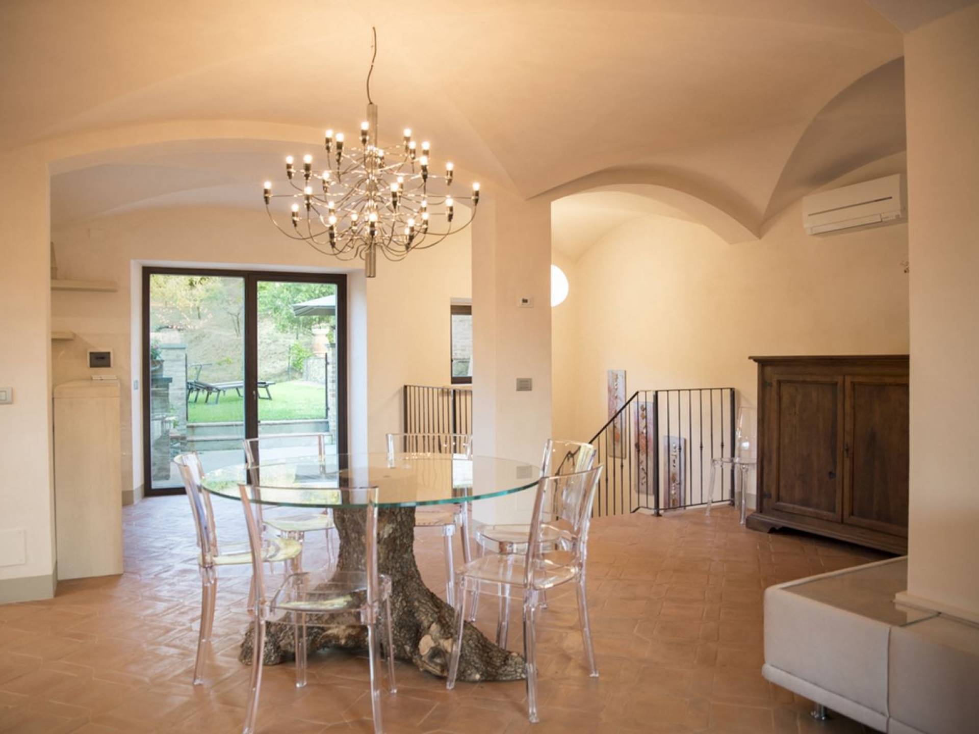 Draußen bietet das große Schwimmbad jedoch die Möglichkeit, alleine oder in der Gruppe Spaß zu haben und zu entspannen. Unmittelbar außerhalb des Wohnbereichs befindet sich auch ein Bereich, in dem Sie Ihre Mahlzeiten genießen können. Auf der Panoramaterrasse auf dem Dach der Villa befindet sich auch eine kleine beleuchtete Lounge, von der aus Sie den herrlichen Sonnenuntergang über Castiglion Fiorentino genießen können, einer Stadt etruskischen Ursprungs, die ihren Namen der florentinischen Herrschaft im Mittelalter verdankt und die, Noch heute sind fast die mittelalterlichen Mauern erhalten, die vom Bergfried dominiert werden. Eine zehnminütige Autofahrt entfernt finden Sie auch die Burg von Montecchio, eine alte Burg auf einem Hügel mit Blick auf das Val di Chiana.